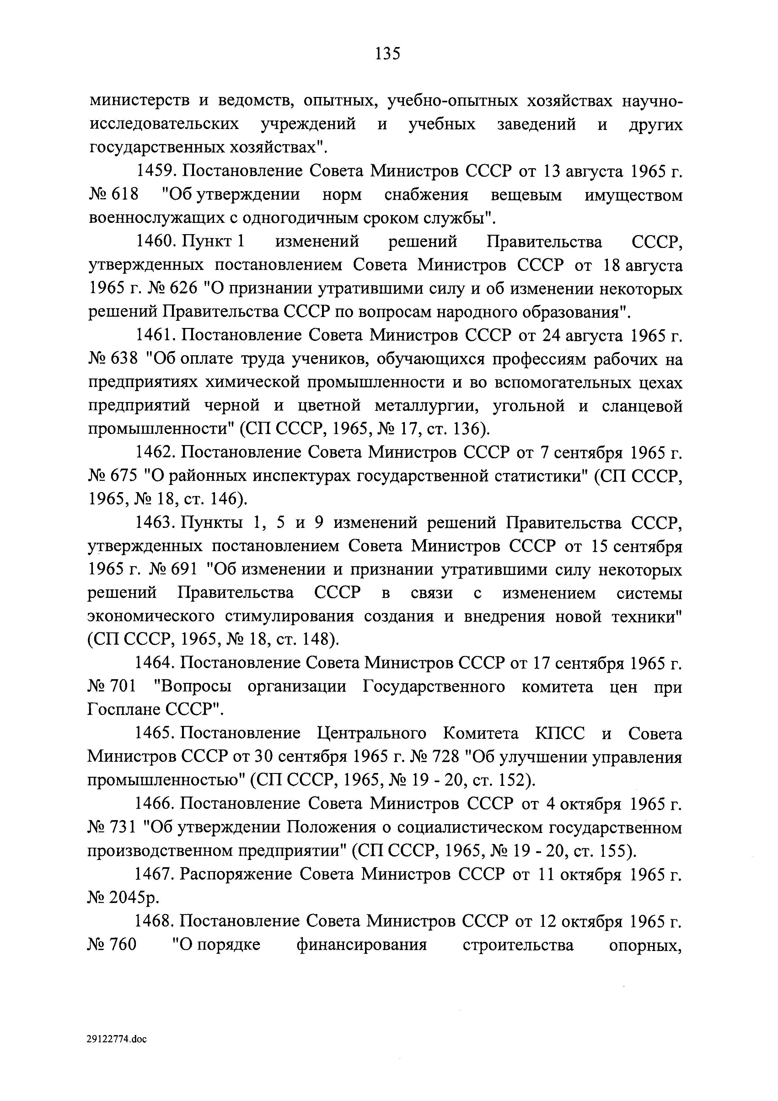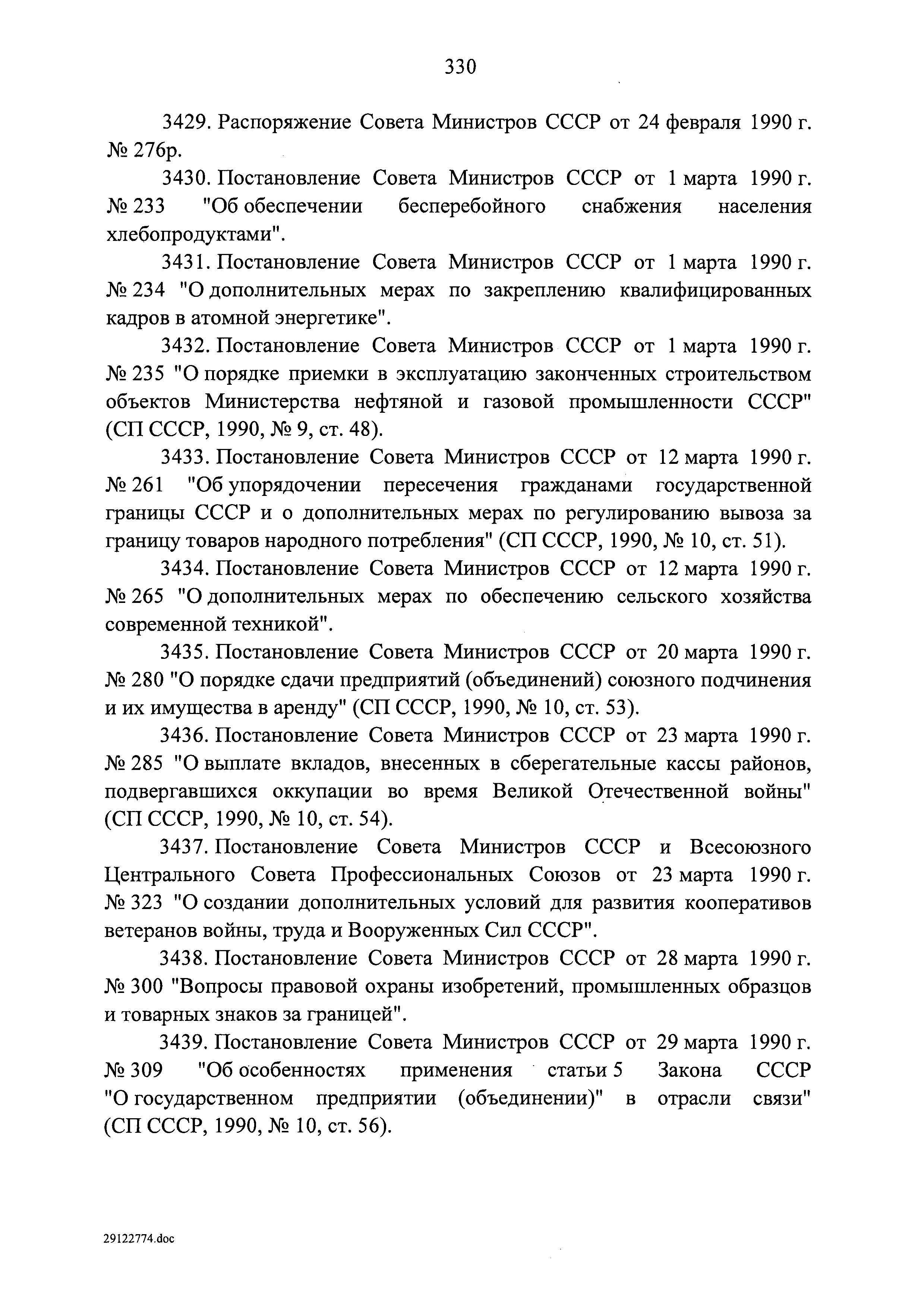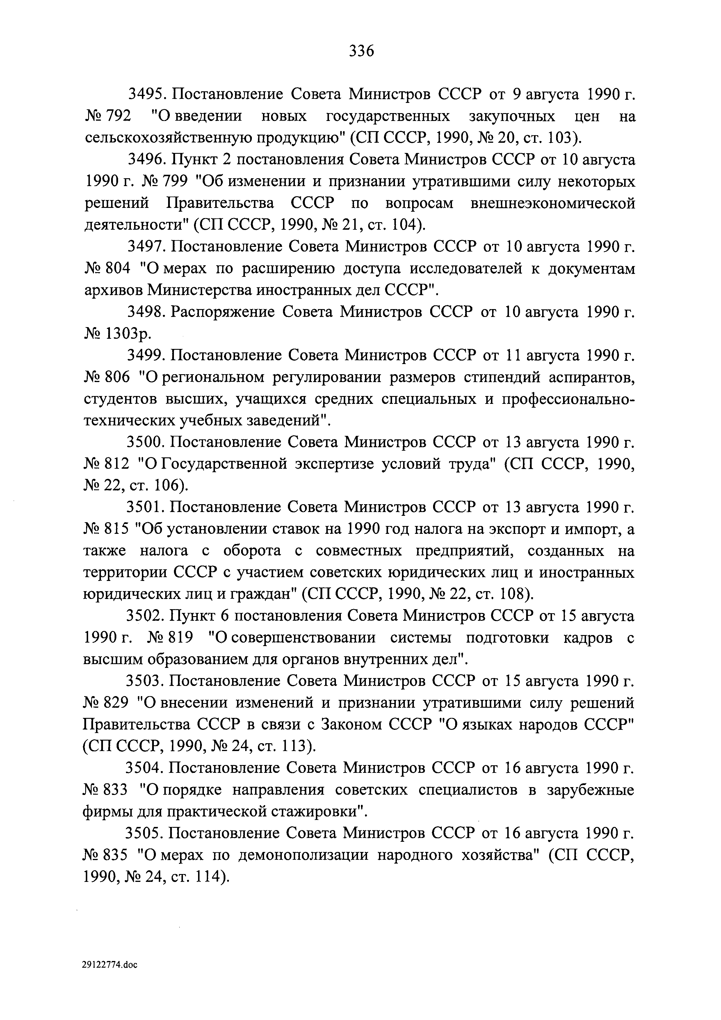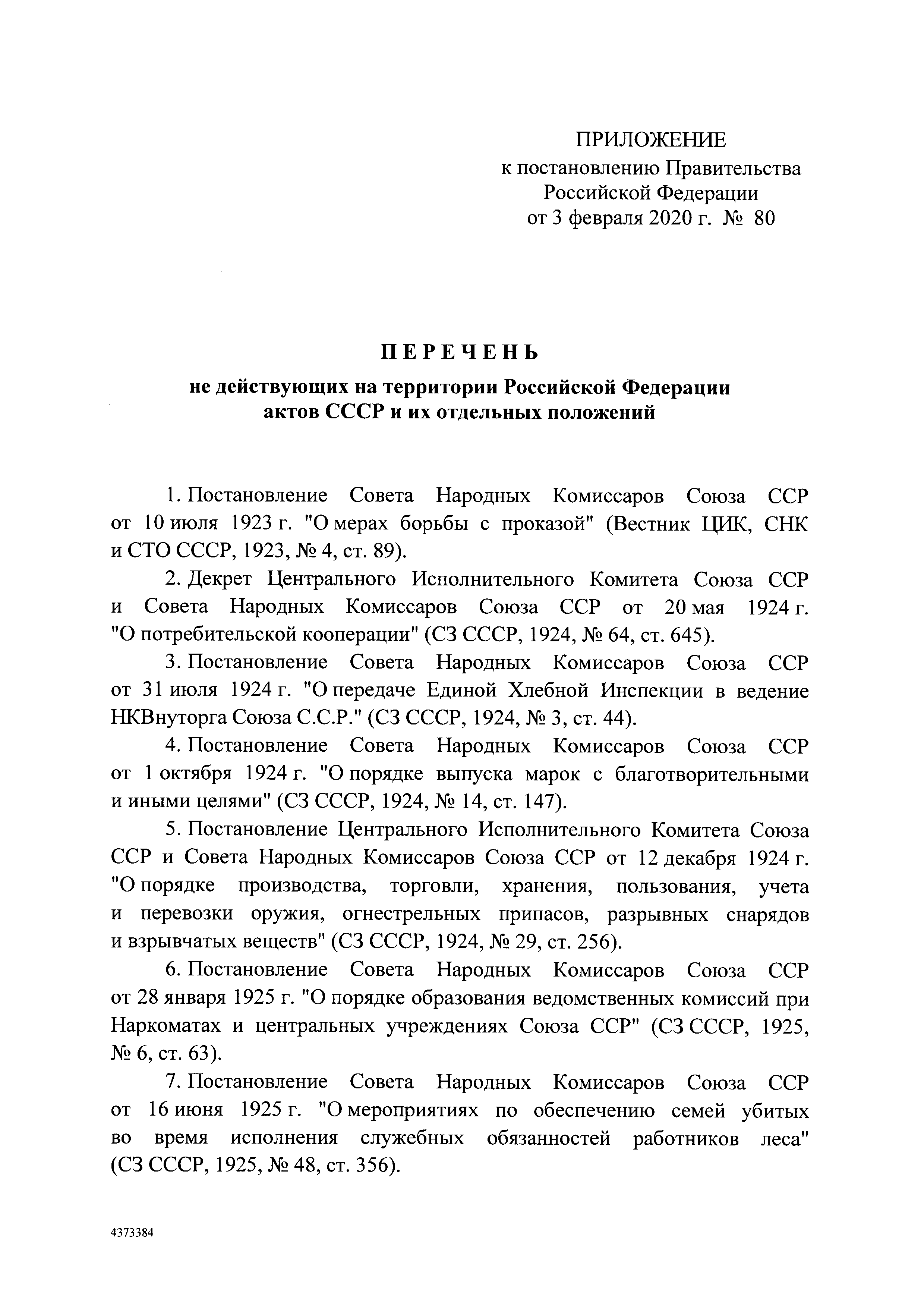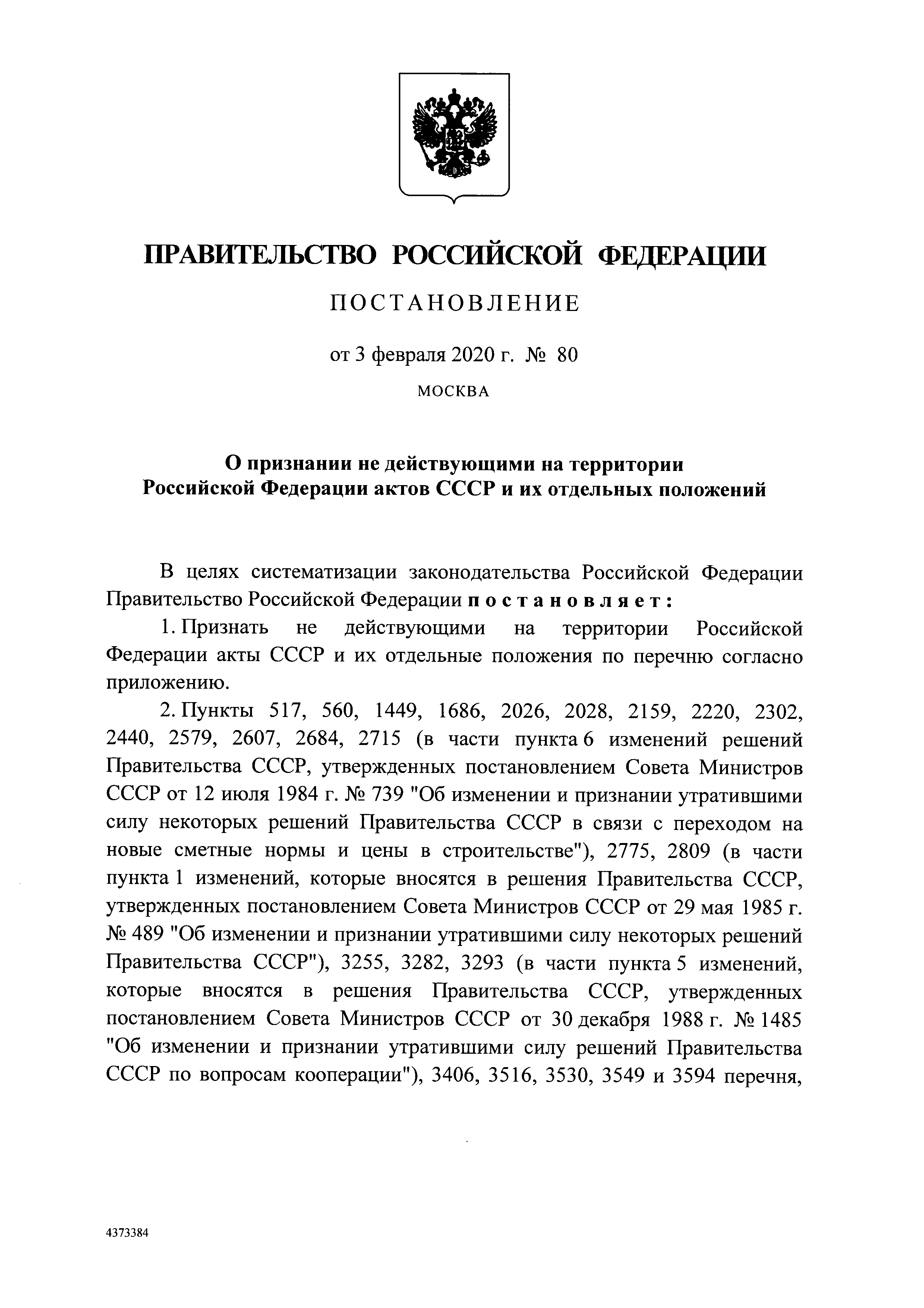 Перечень не действующих на территории Российской Федерации актов СССР и их отдельных положений| Статус: | действует | | Название рус.: | Перечень не действующих на территории Российской Федерации актов СССР и их отдельных положений | | Дата добавления в базу: | 01.01.2021 | | Дата актуализации: | 01.01.2021 | | Дата введения: | 21.02.2020 | | Утверждён: | 03.02.2020 Правительство Российской Федерации (80)