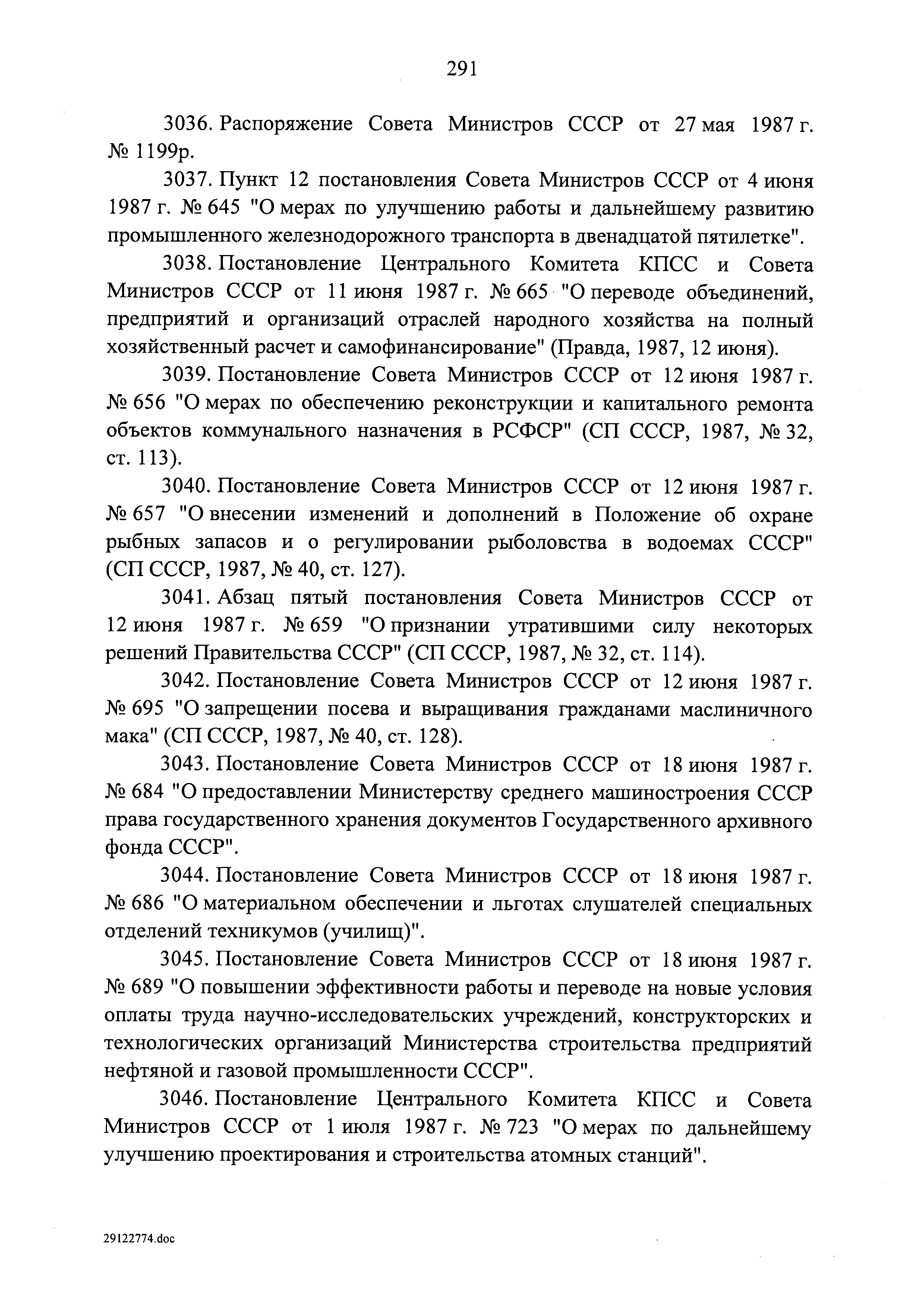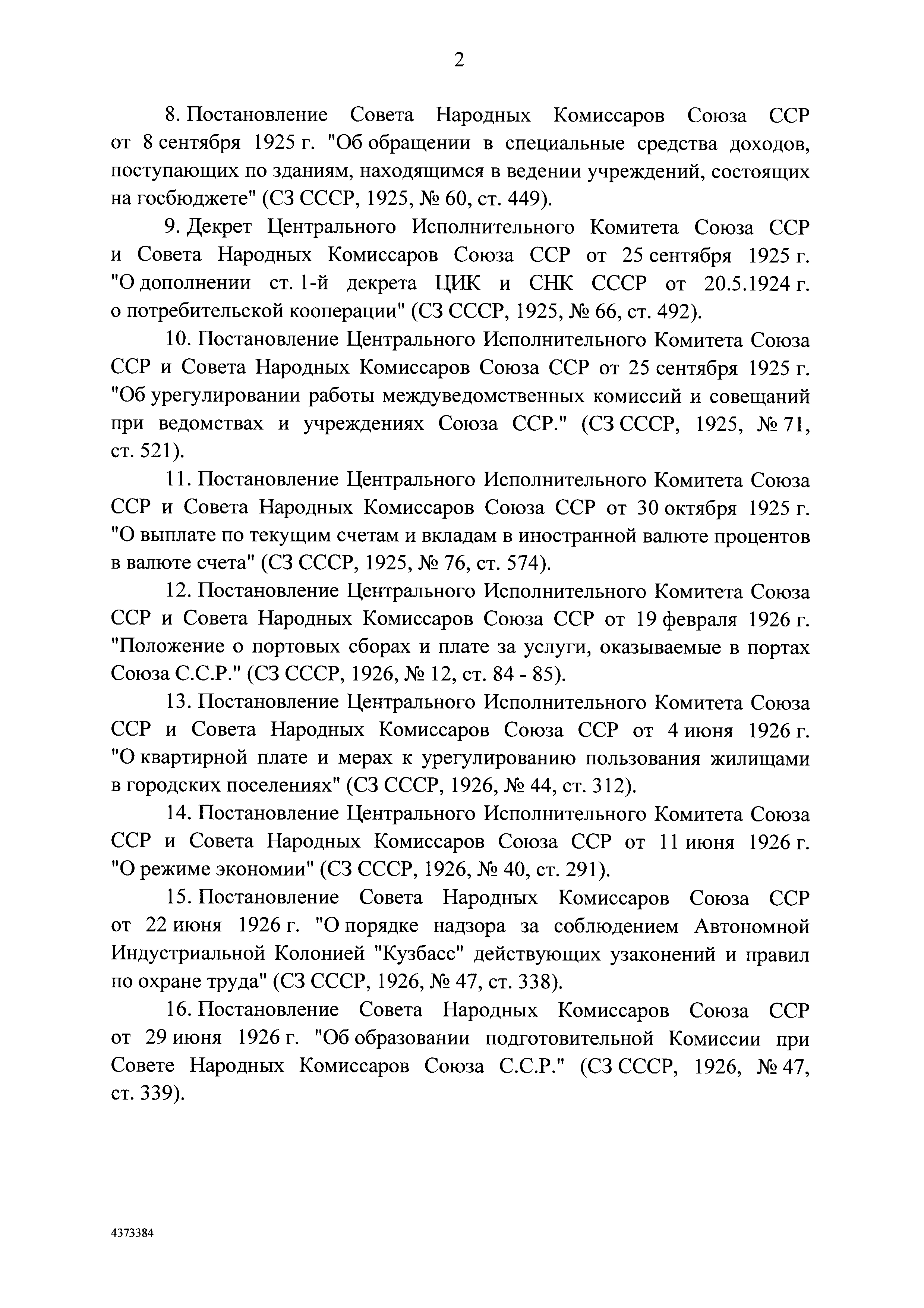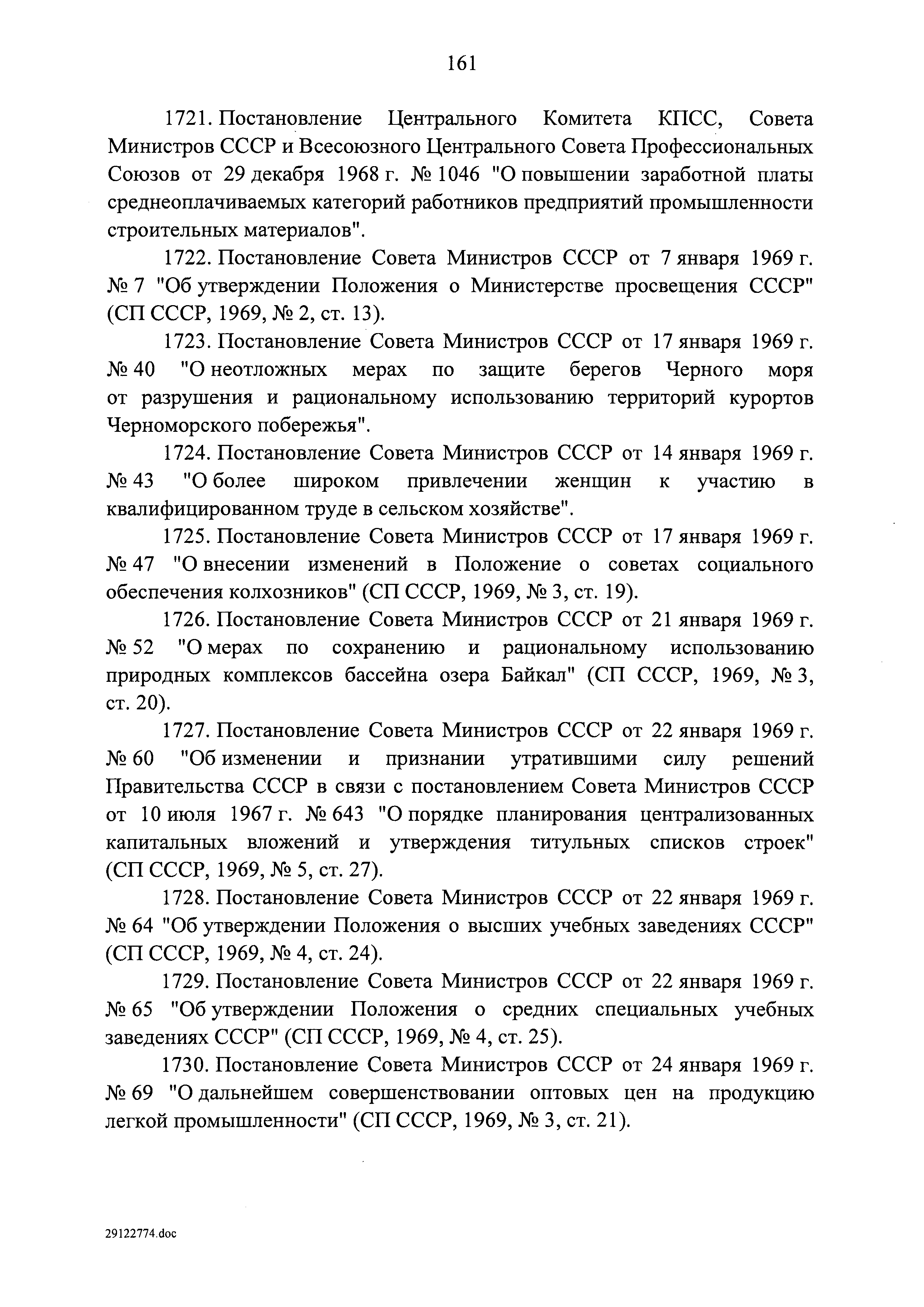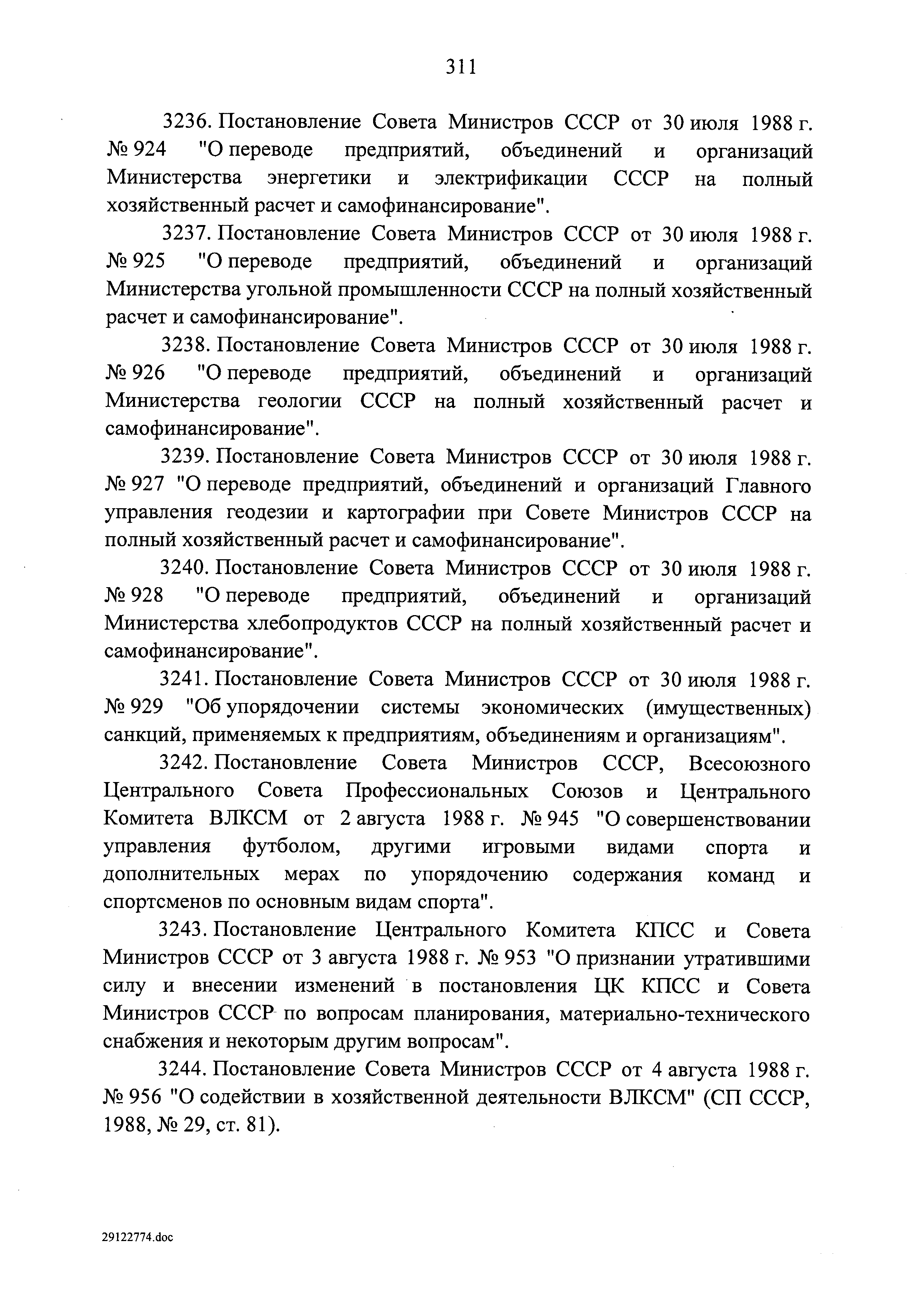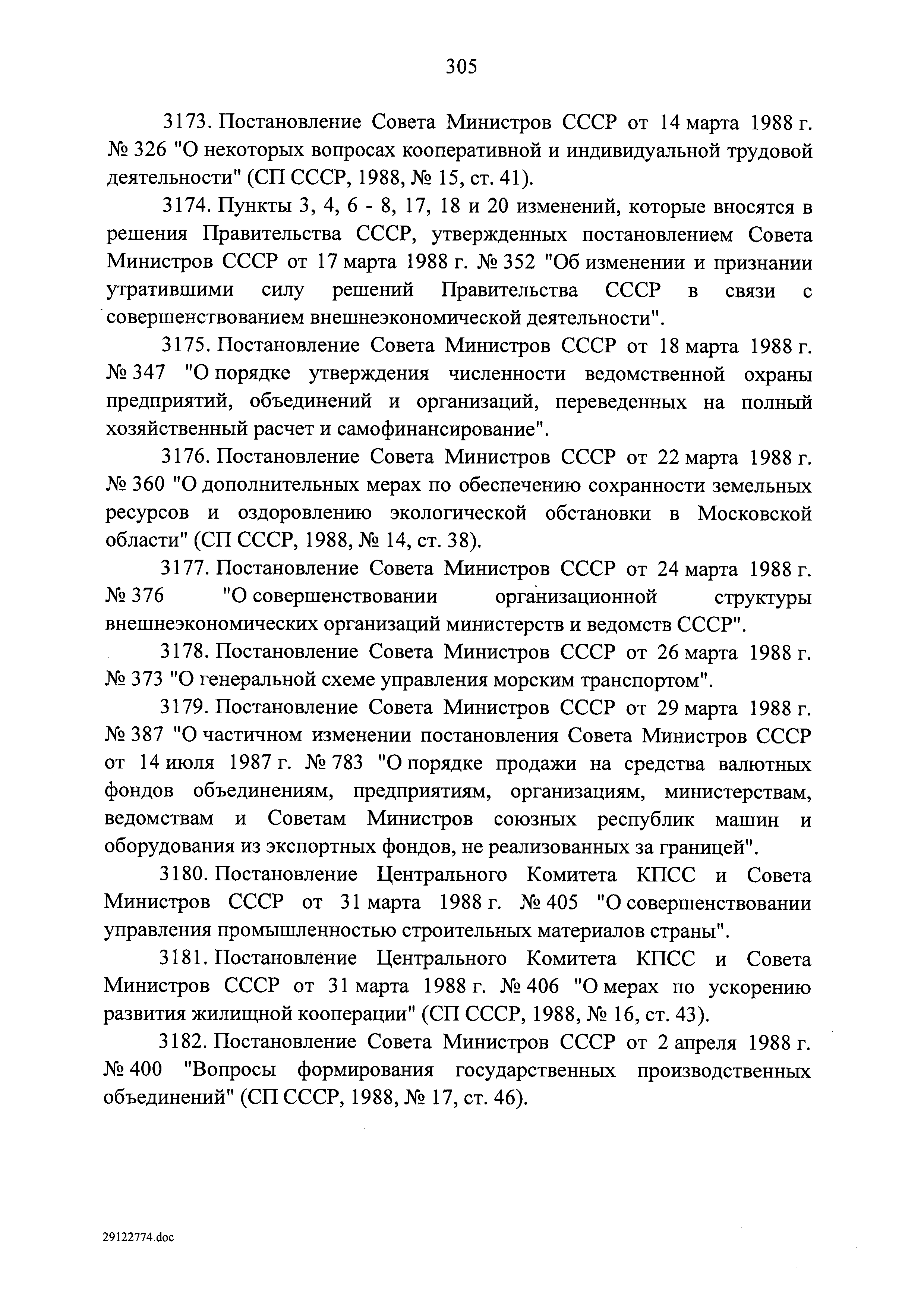 Перечень не действующих на территории Российской Федерации актов СССР и их отдельных положений| Статус: | действует | | Название рус.: | Перечень не действующих на территории Российской Федерации актов СССР и их отдельных положений | | Дата добавления в базу: | 01.01.2021 | | Дата актуализации: | 01.01.2021 | | Дата введения: | 21.02.2020 | | Утверждён: | 03.02.2020 Правительство Российской Федерации (80)