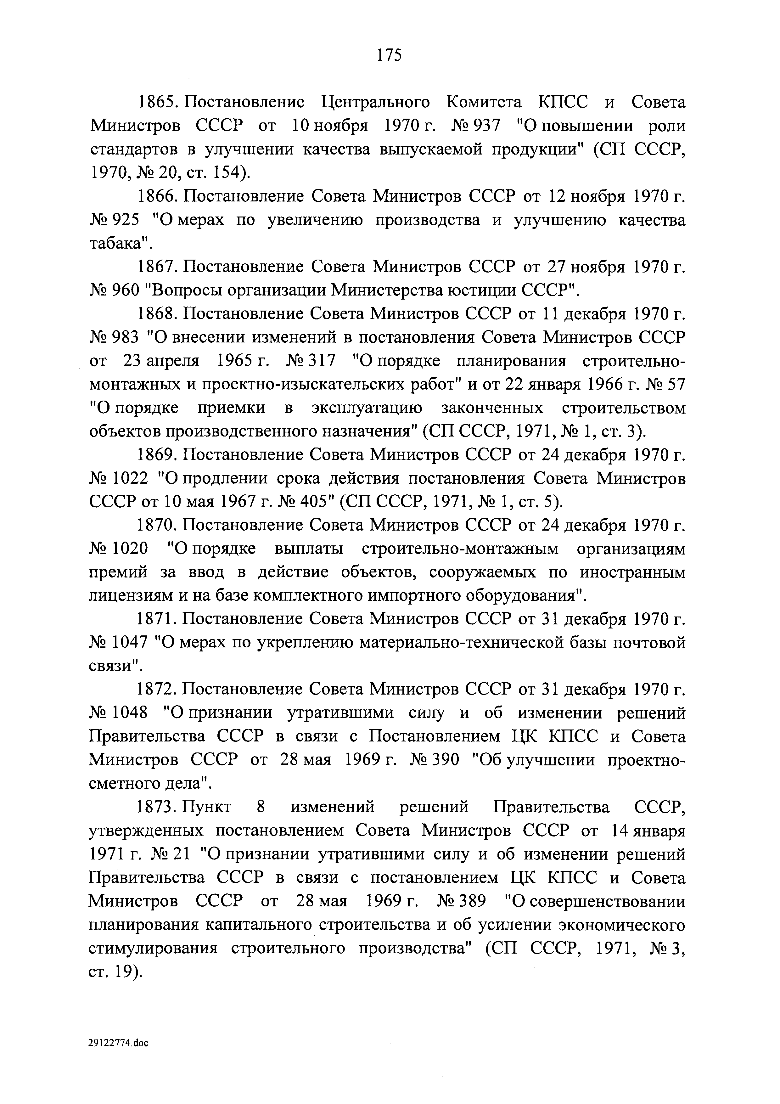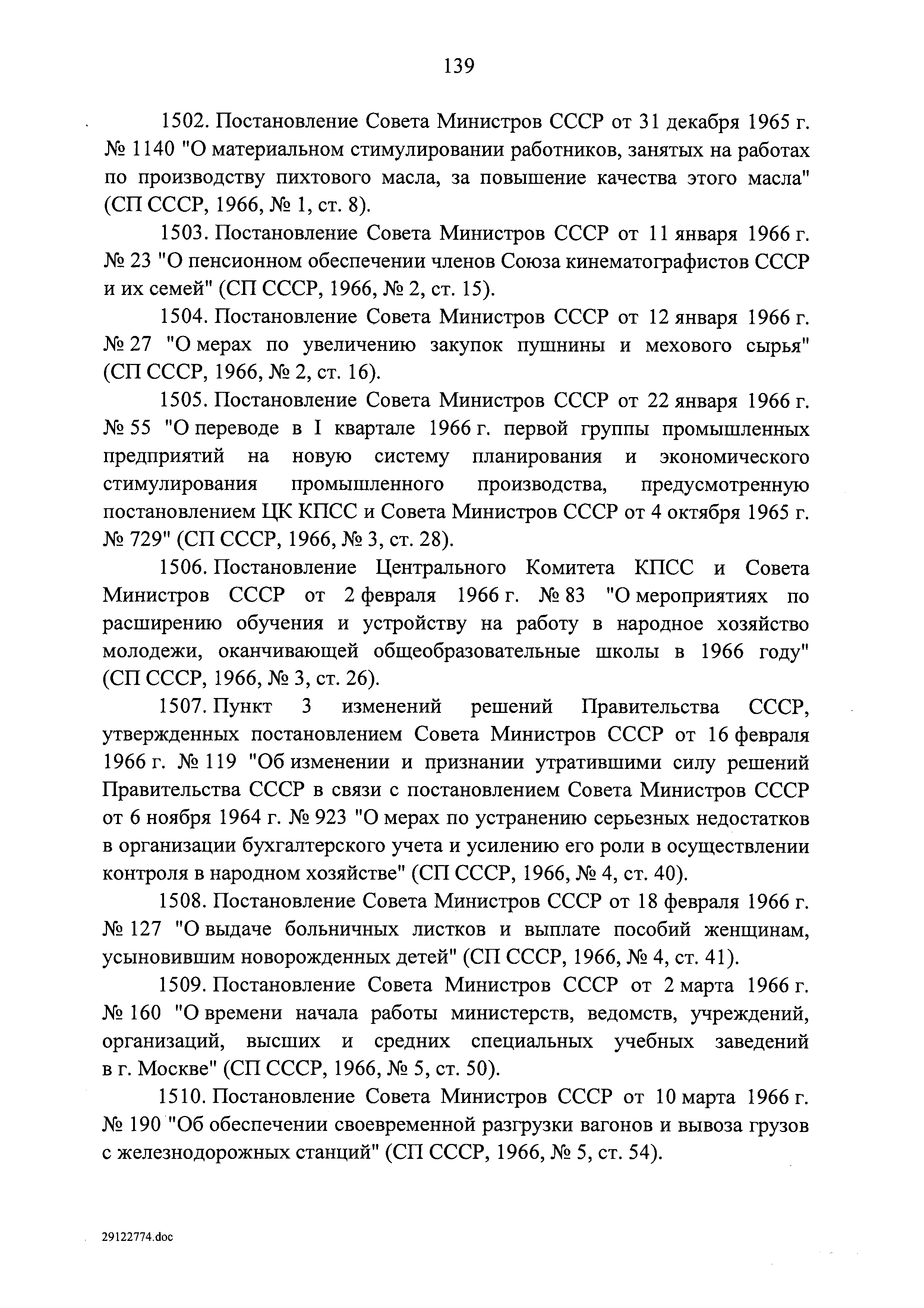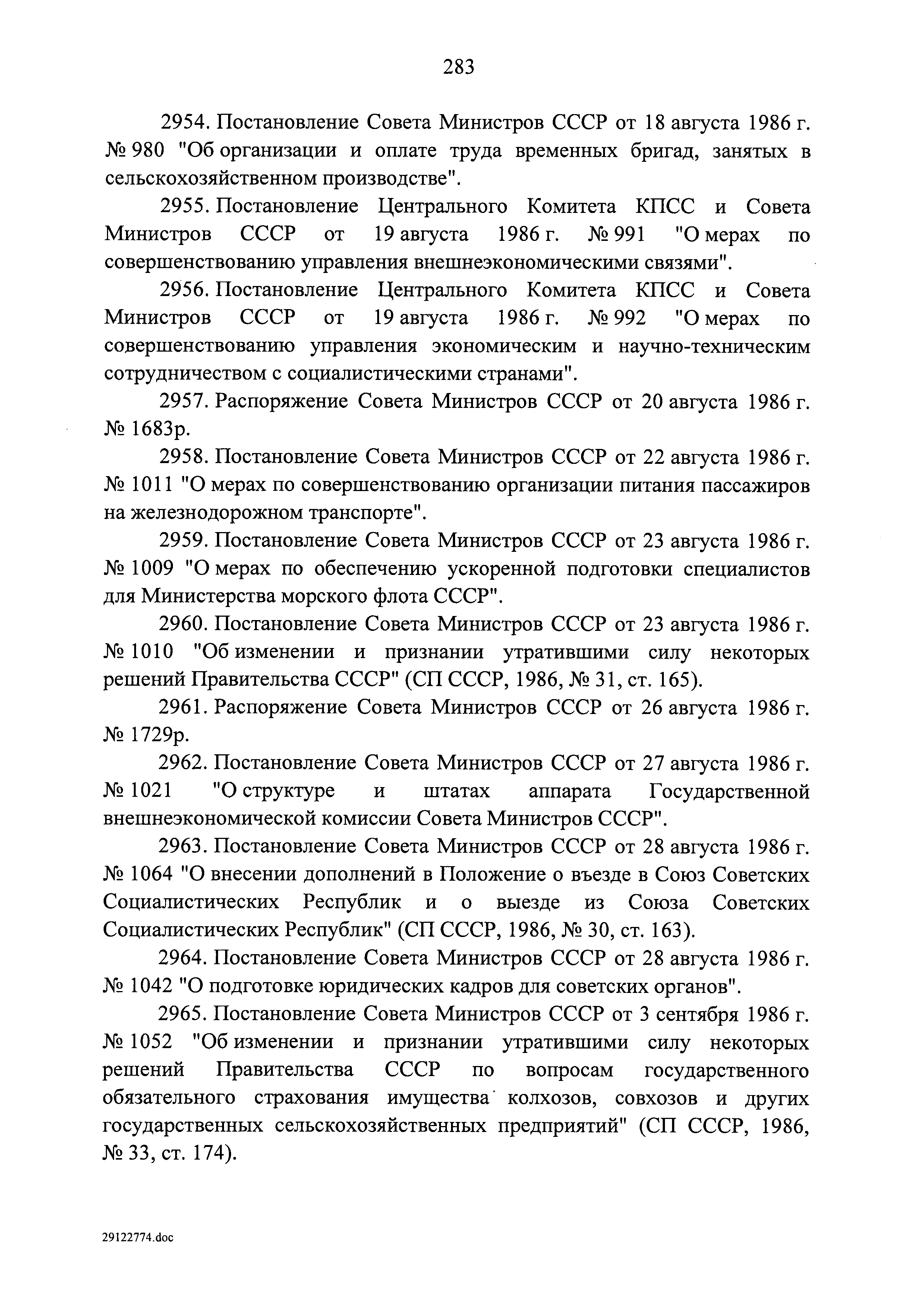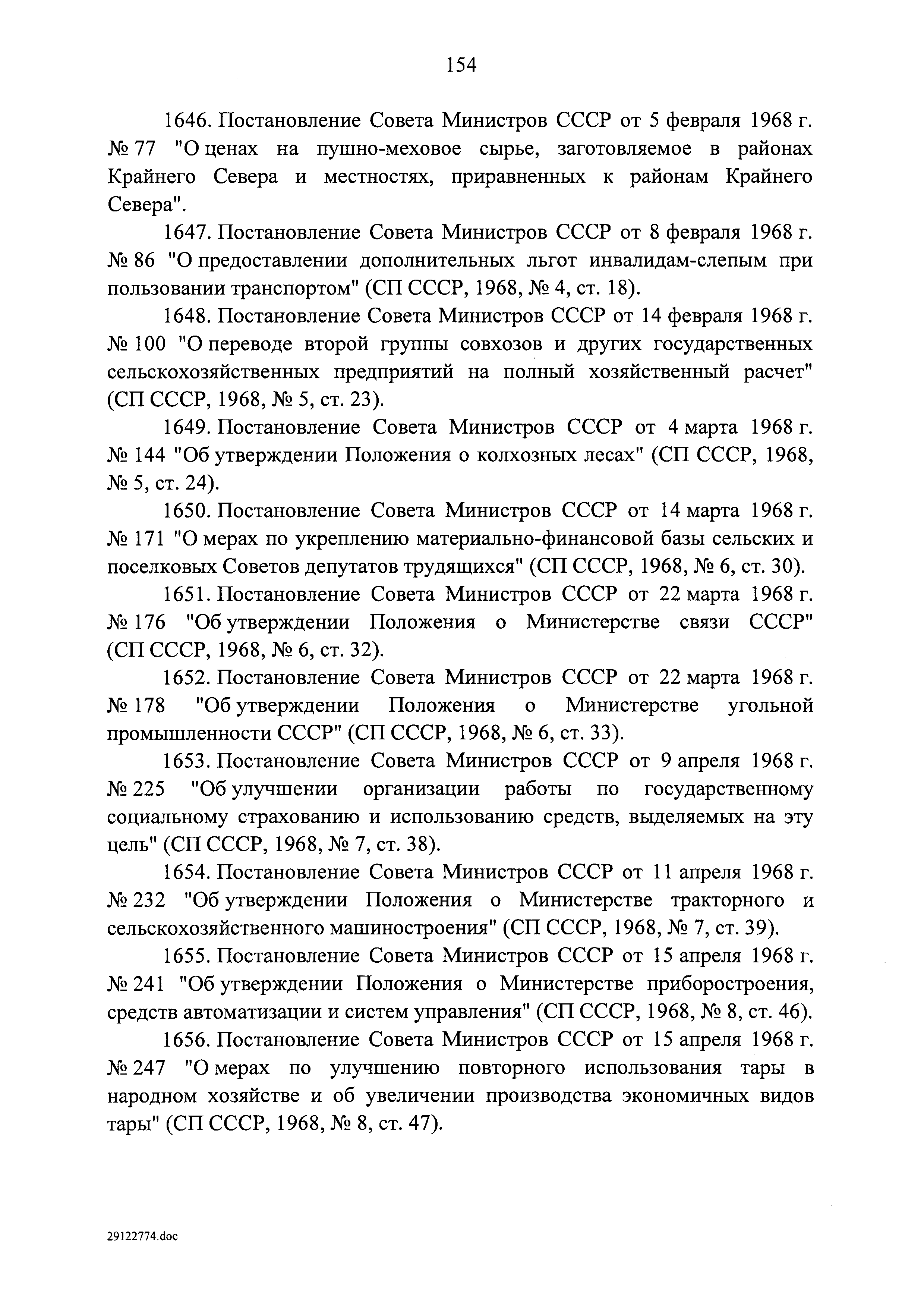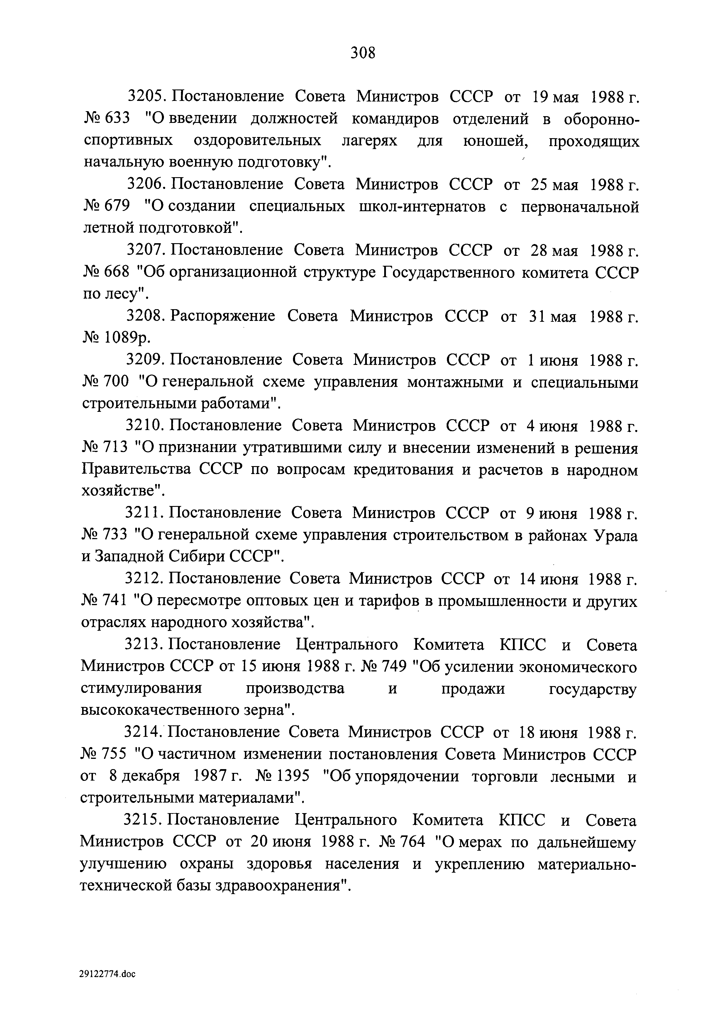 Перечень не действующих на территории Российской Федерации актов СССР и их отдельных положений| Статус: | действует | | Название рус.: | Перечень не действующих на территории Российской Федерации актов СССР и их отдельных положений | | Дата добавления в базу: | 01.01.2021 | | Дата актуализации: | 01.01.2021 | | Дата введения: | 21.02.2020 | | Утверждён: | 03.02.2020 Правительство Российской Федерации (80)