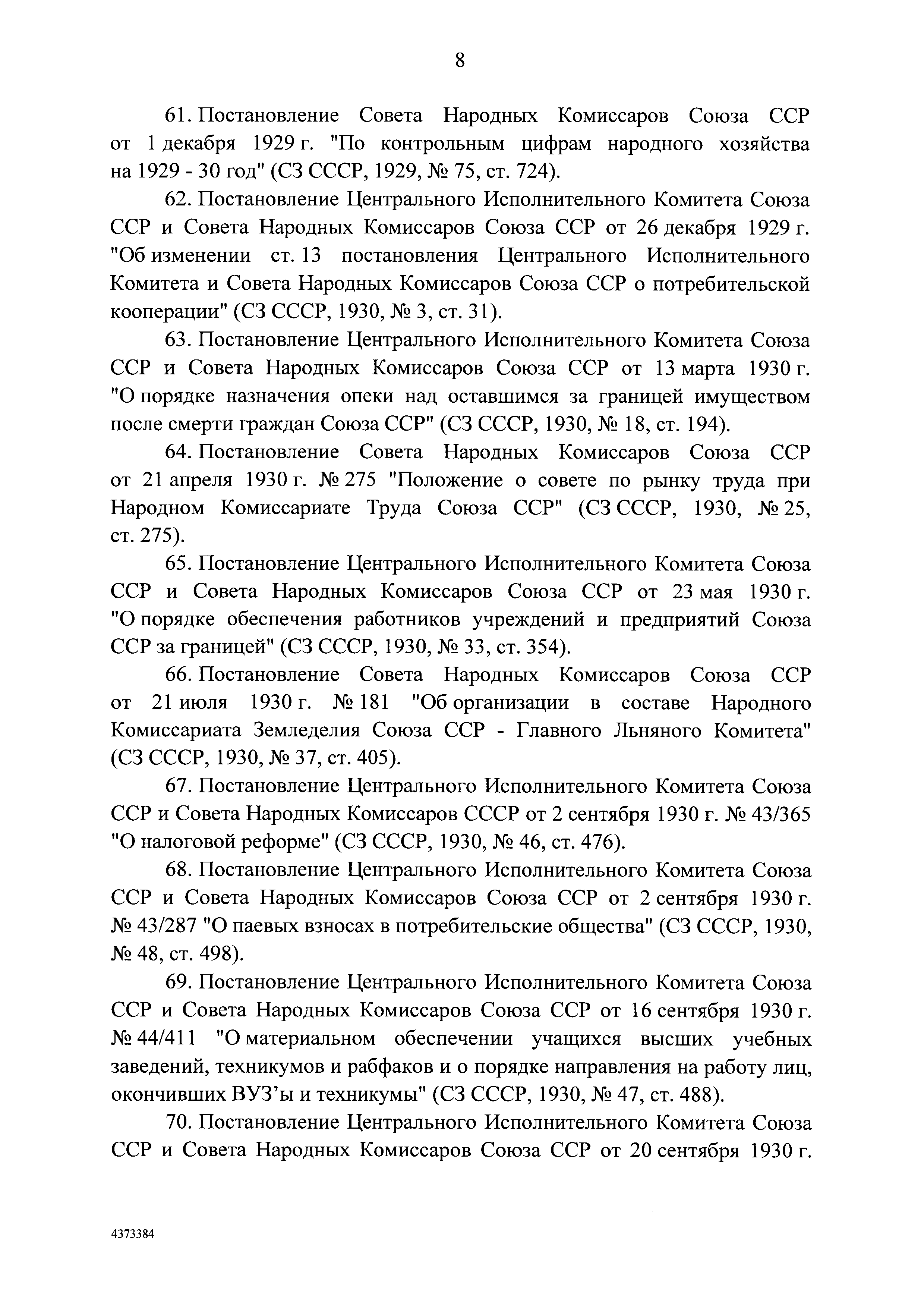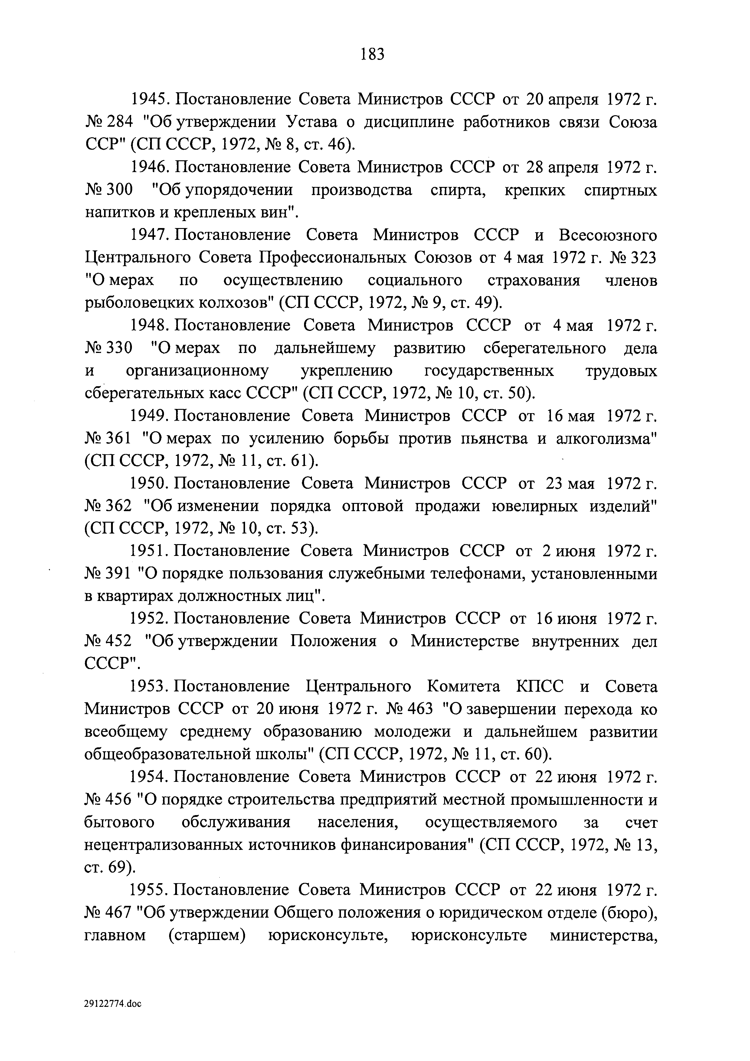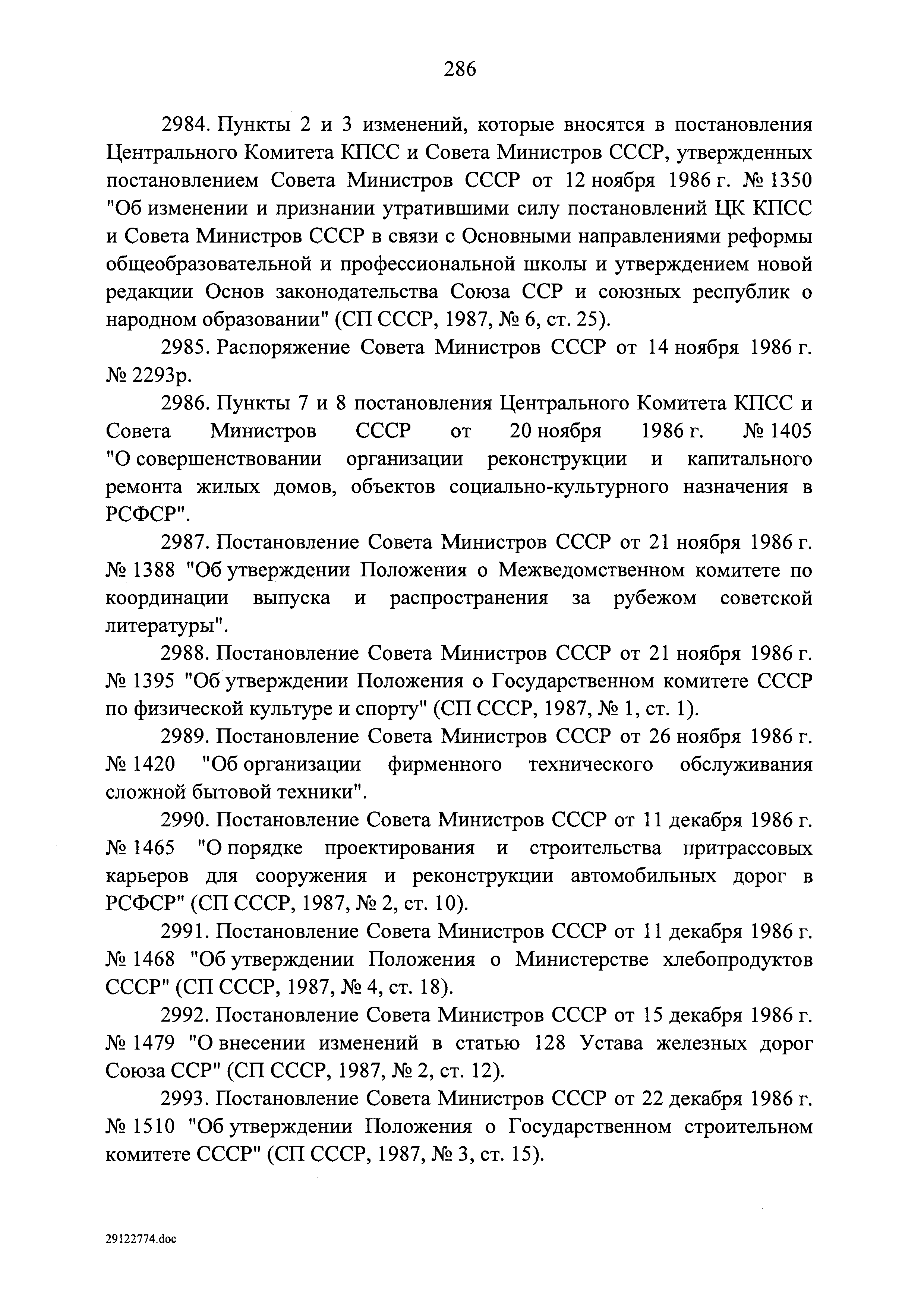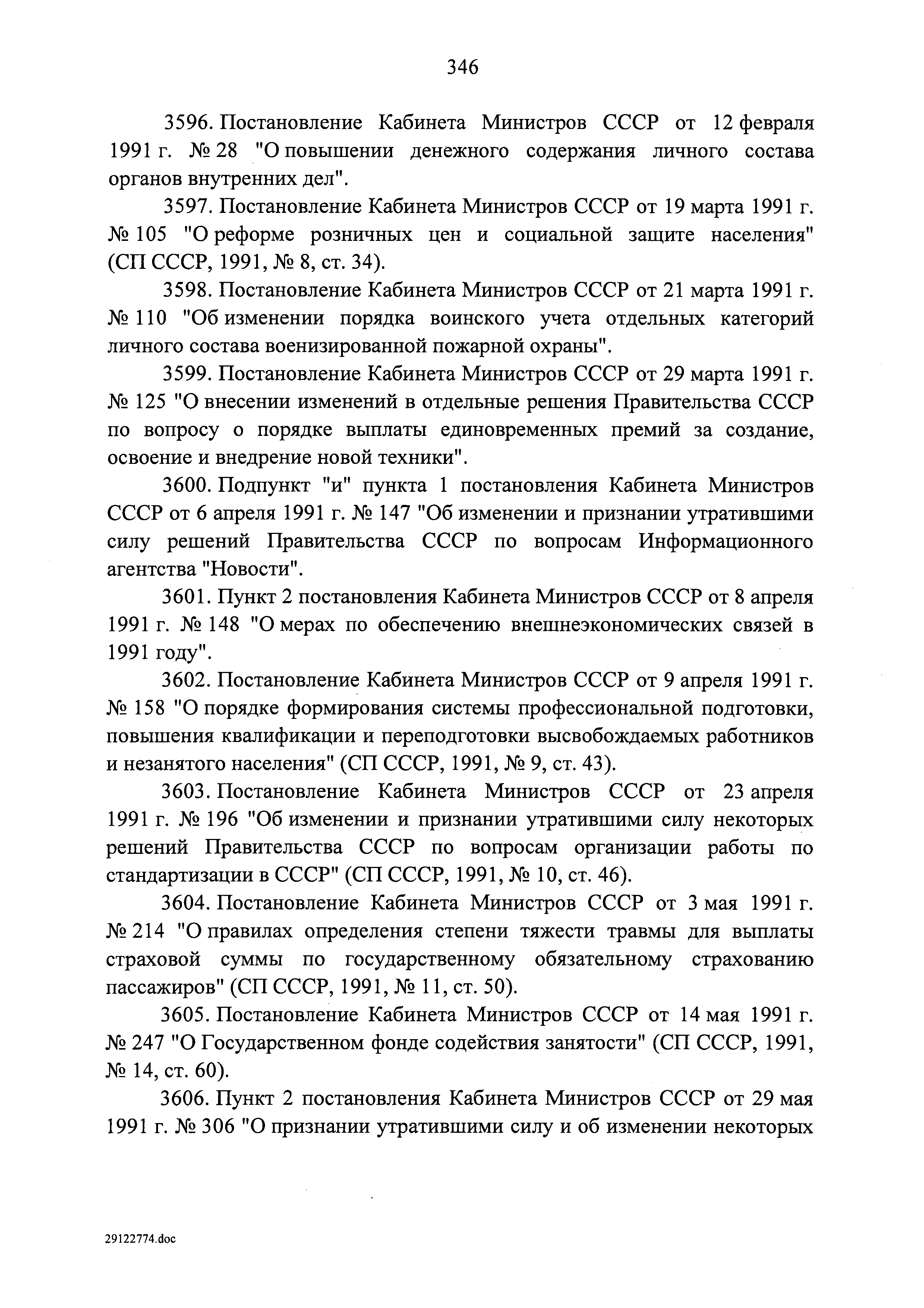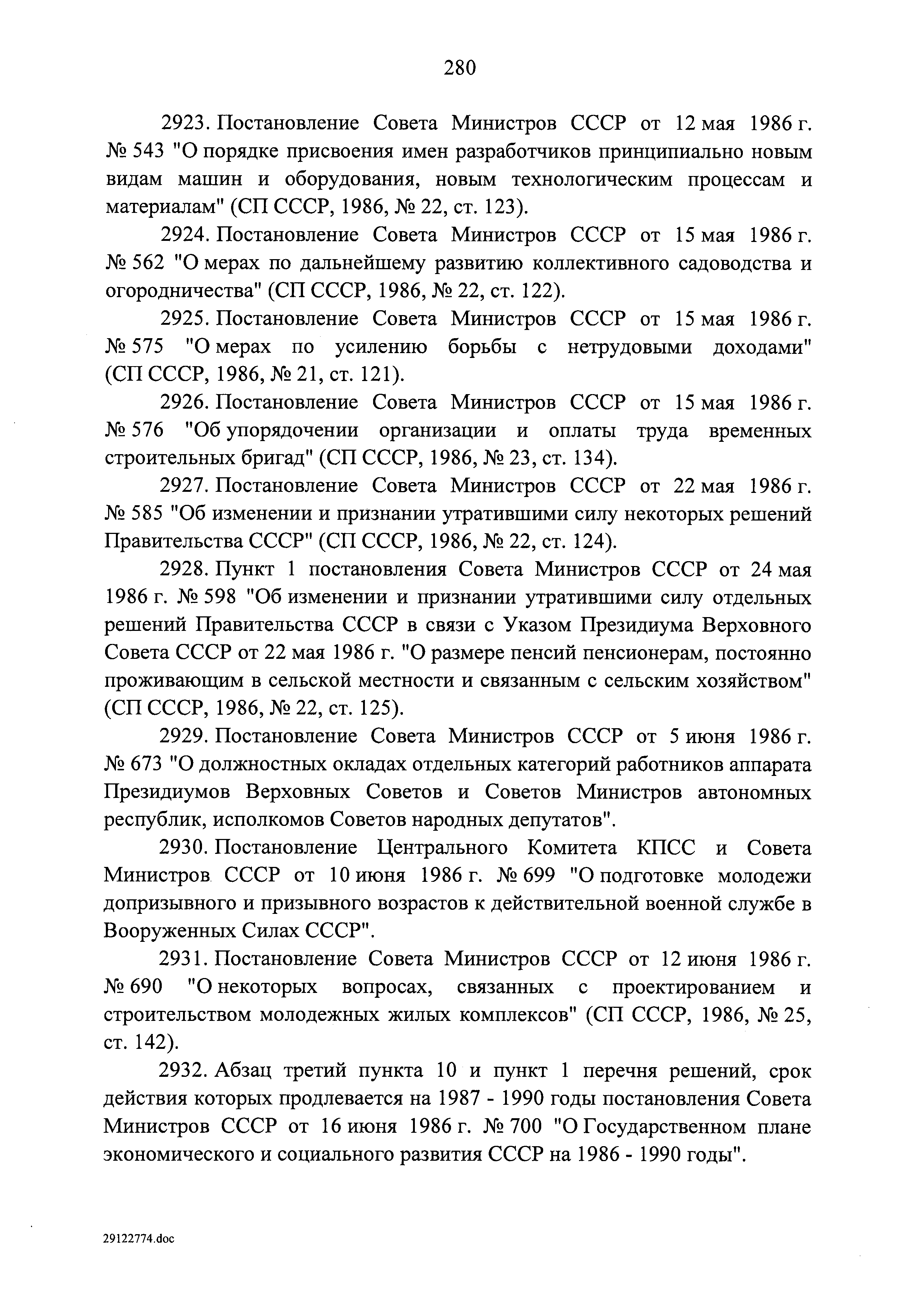Перечень не действующих на территории Российской Федерации актов СССР и их отдельных положений| Статус: | действует | | Название рус.: | Перечень не действующих на территории Российской Федерации актов СССР и их отдельных положений | | Дата добавления в базу: | 01.01.2021 | | Дата актуализации: | 01.01.2021 | | Дата введения: | 21.02.2020 | | Утверждён: | 03.02.2020 Правительство Российской Федерации (80)