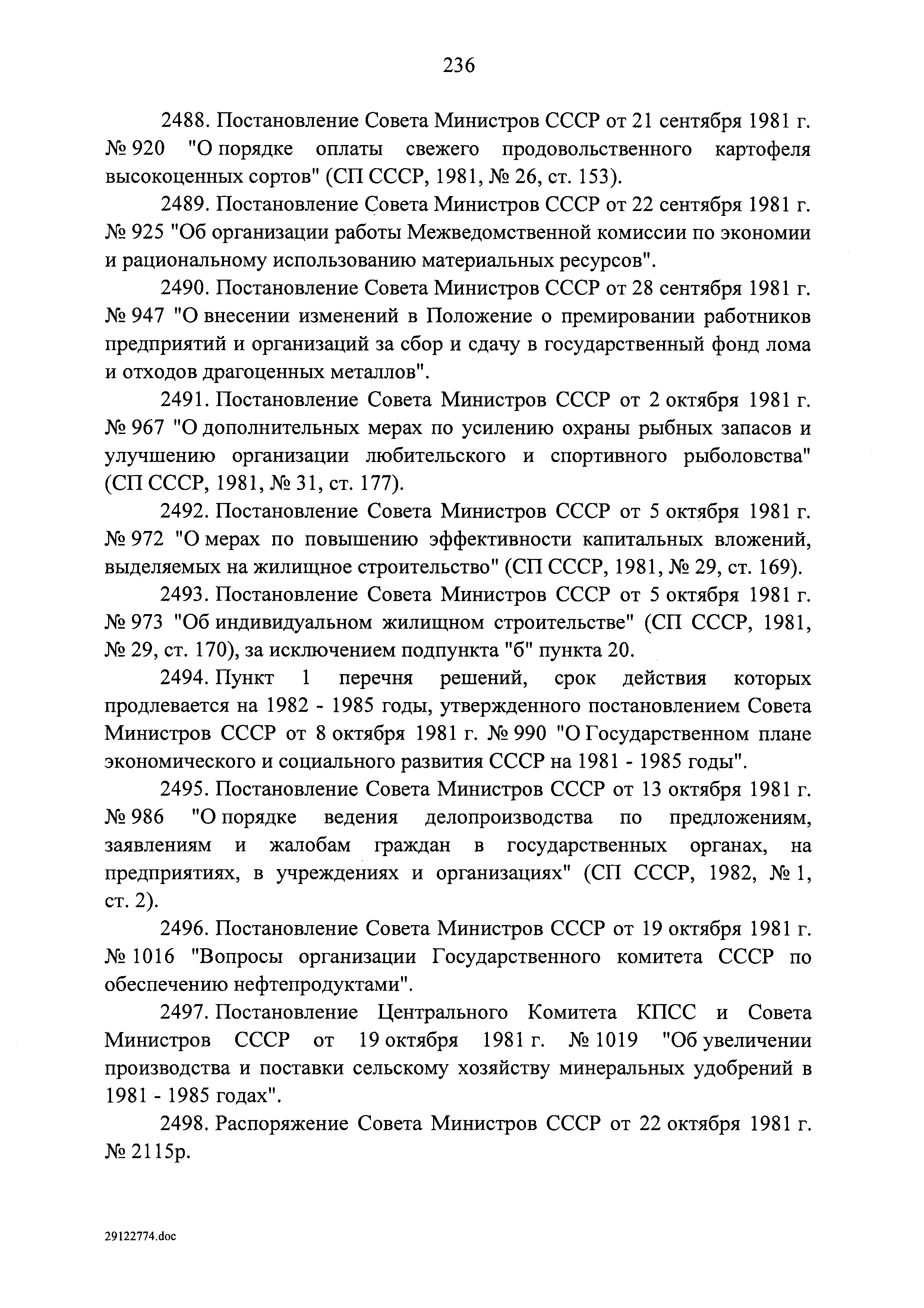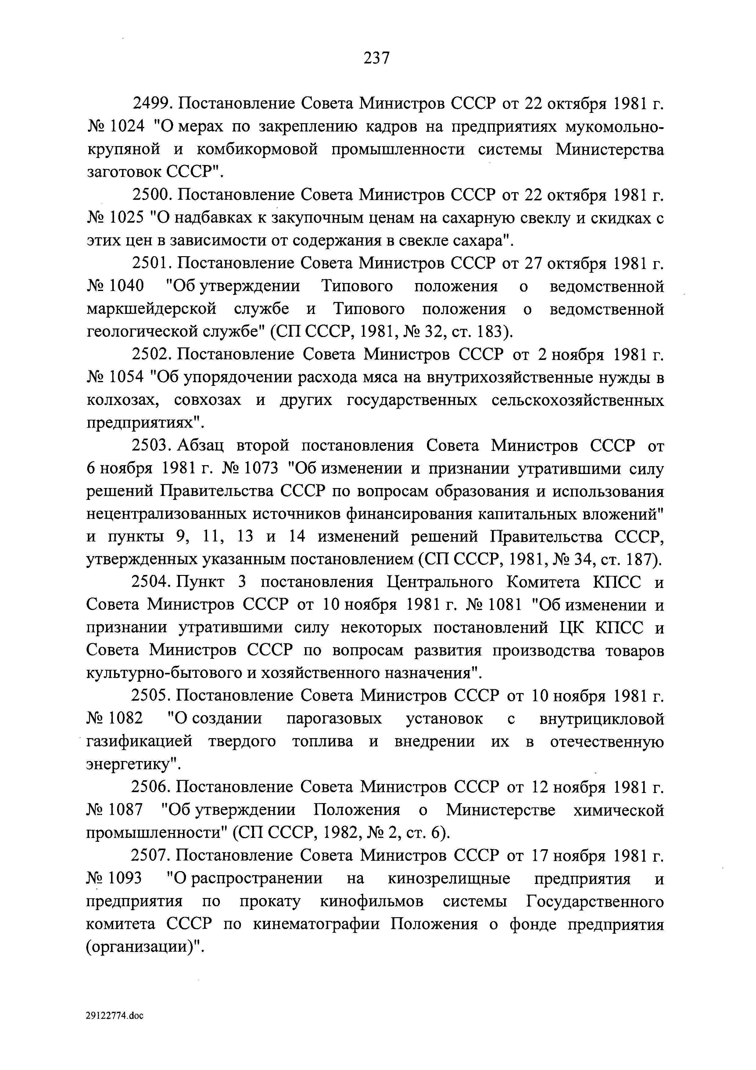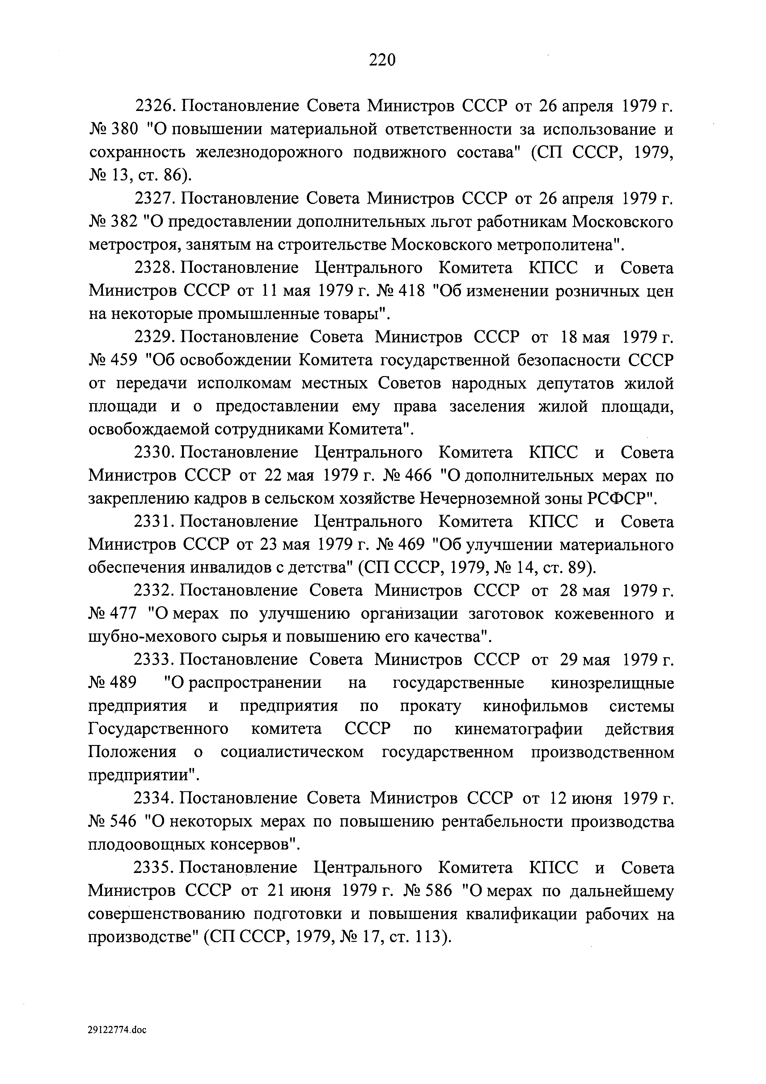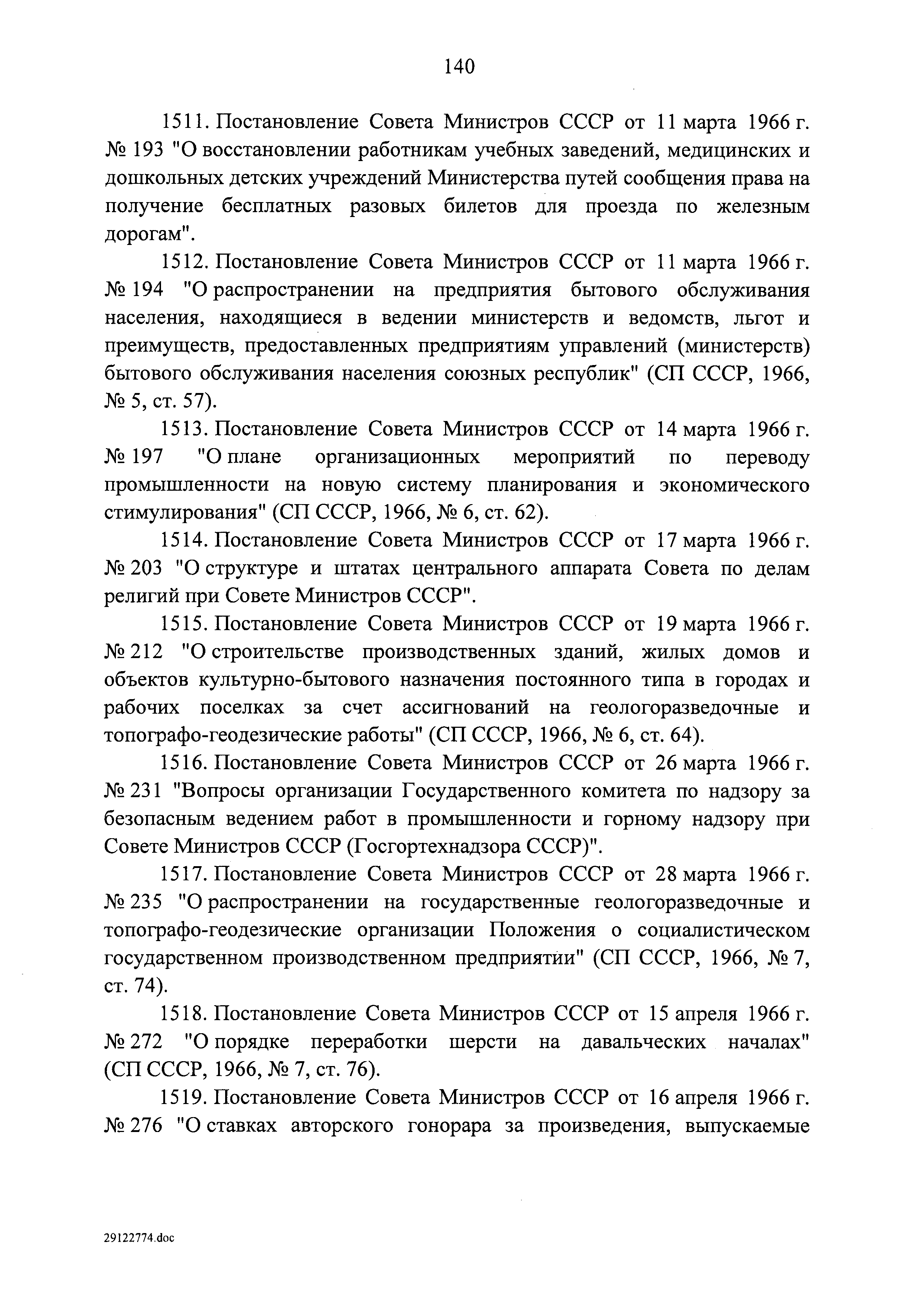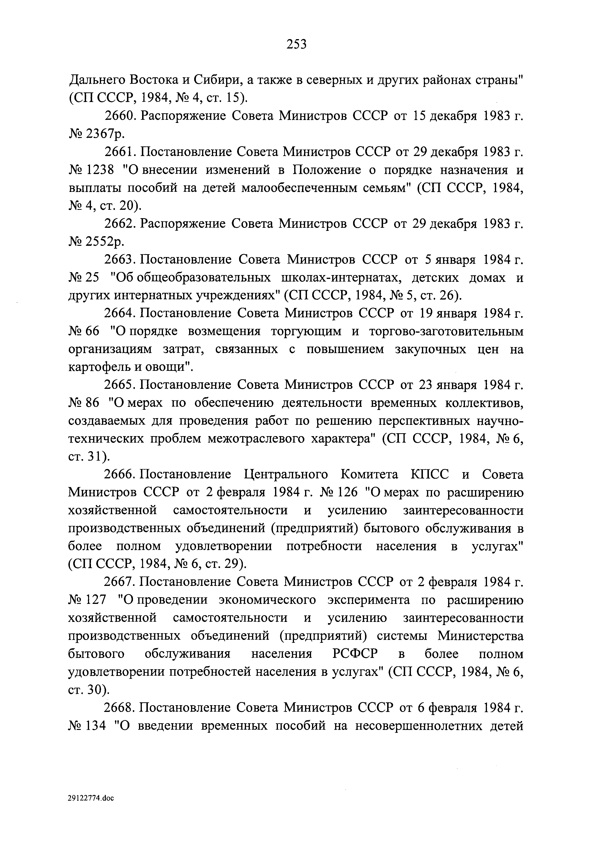 Перечень не действующих на территории Российской Федерации актов СССР и их отдельных положений| Статус: | действует | | Название рус.: | Перечень не действующих на территории Российской Федерации актов СССР и их отдельных положений | | Дата добавления в базу: | 01.01.2021 | | Дата актуализации: | 01.01.2021 | | Дата введения: | 21.02.2020 | | Утверждён: | 03.02.2020 Правительство Российской Федерации (80)