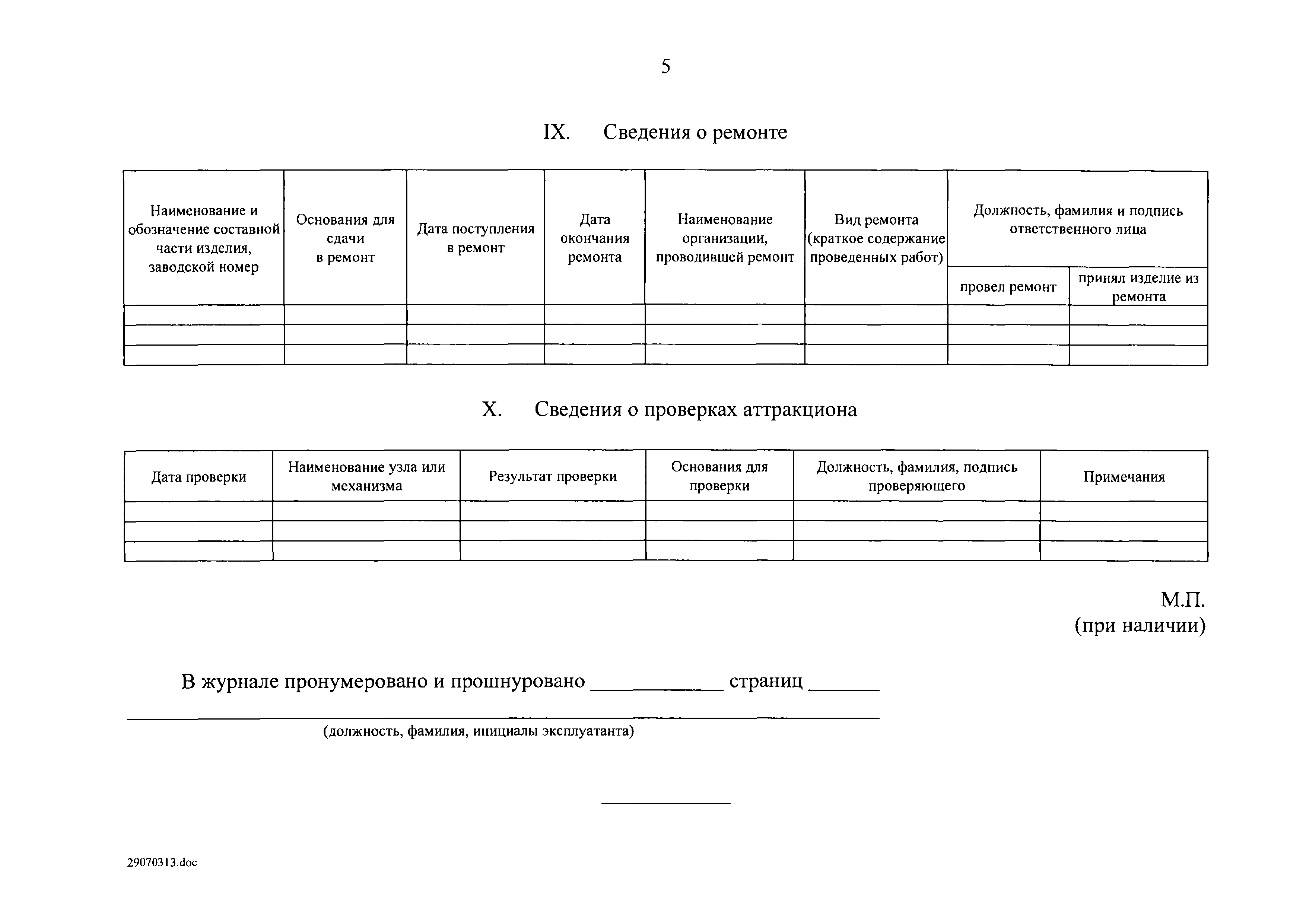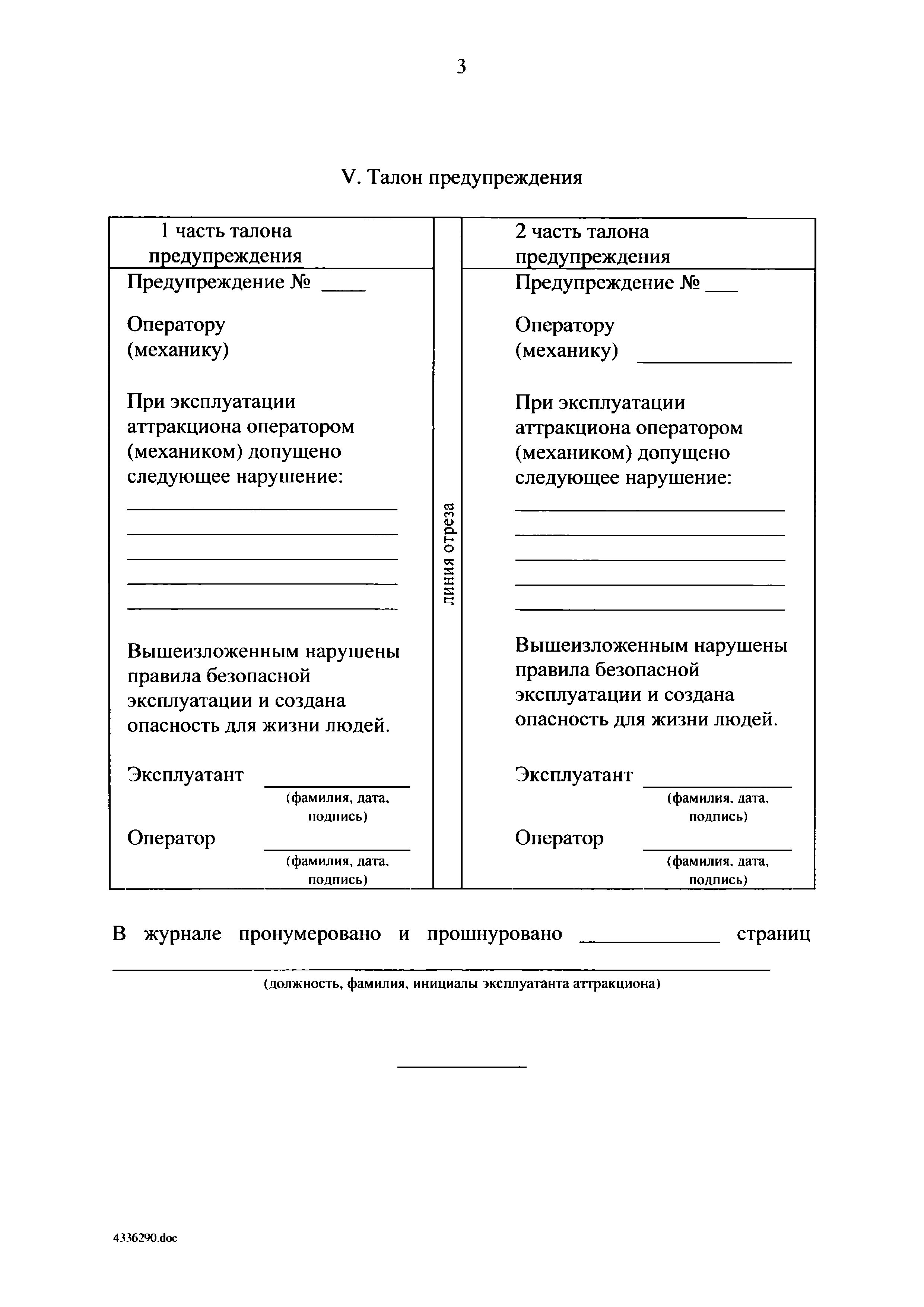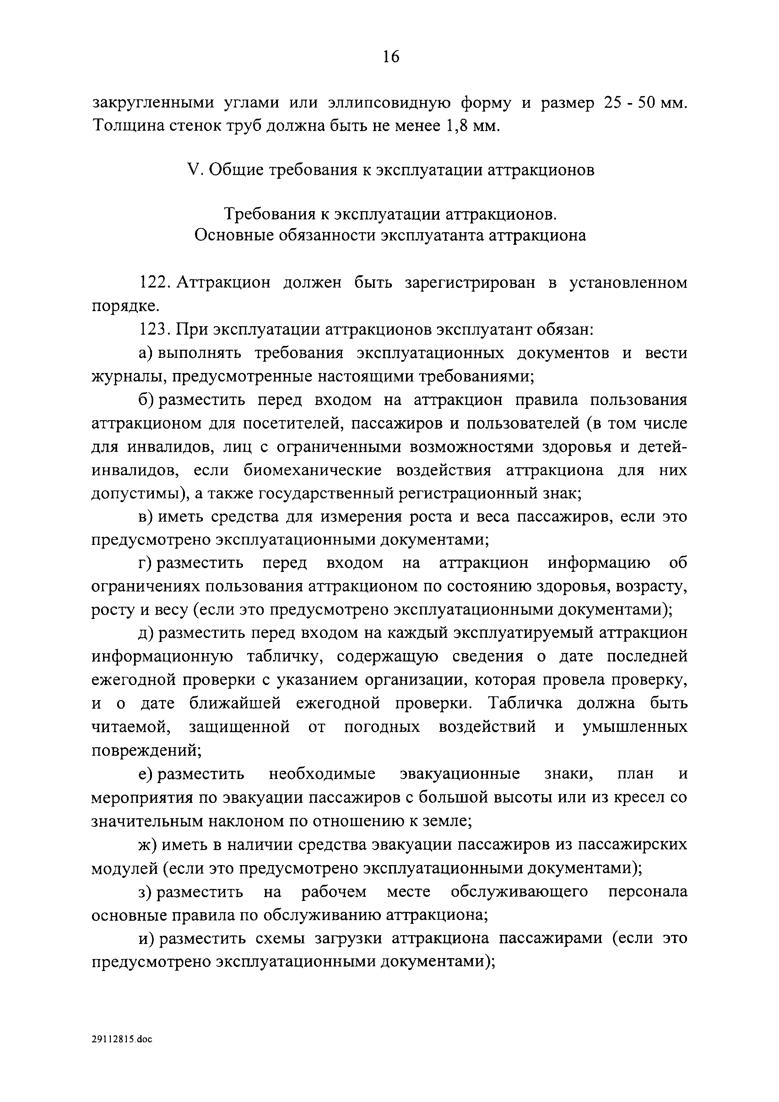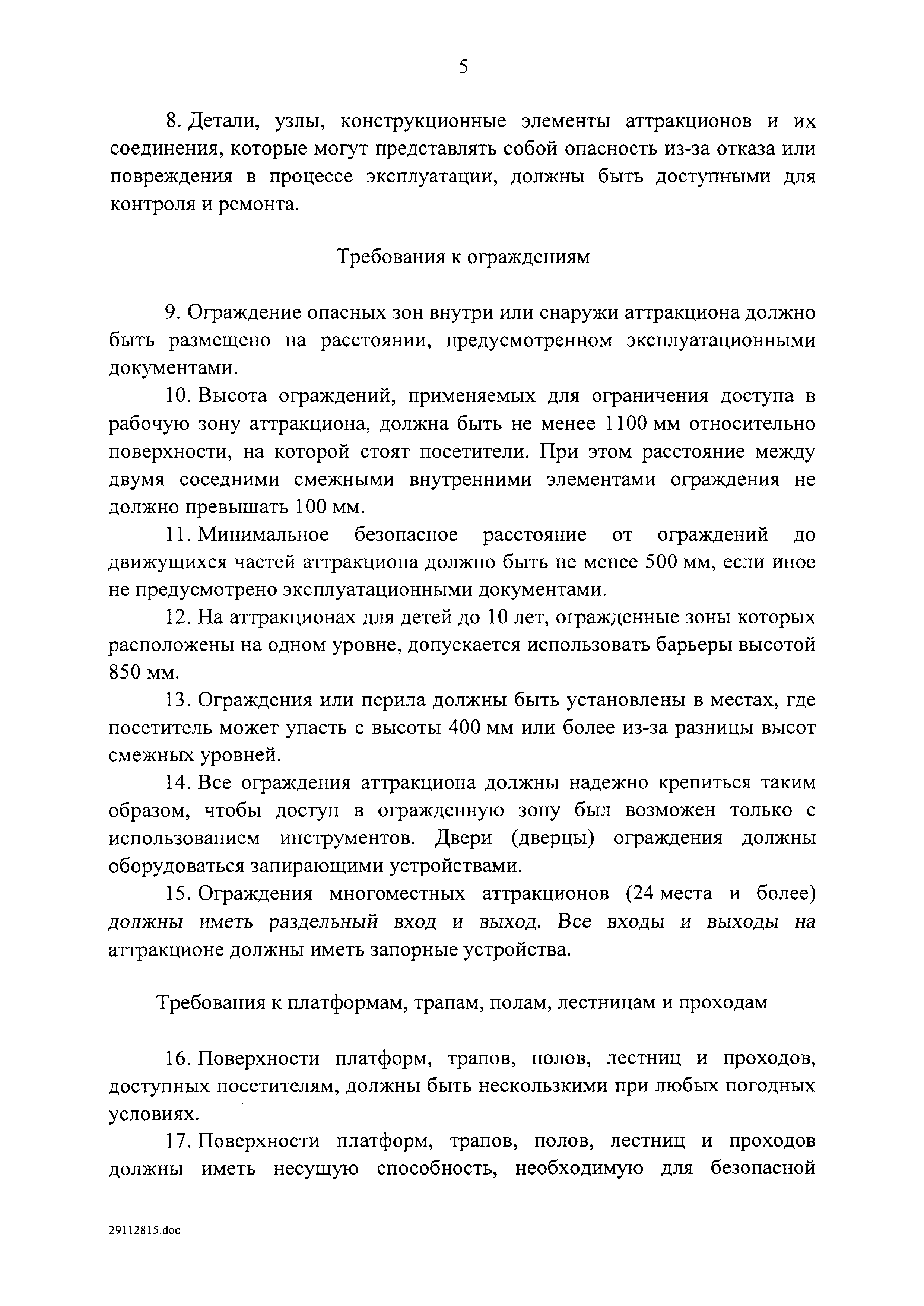 | Оглавление: | I. Область применения II. Основные понятия III. Общие технические требования к аттракционам IV. Требования к техническому состоянию отдельных видов аттракционов V. Общие требования к эксплуатации аттракционов Приложение 1. Форма журнала ежедневного допуска аттракциона к работе Приложение 2. Форма журнала учета технического обслуживания и ремонта аттракциона |