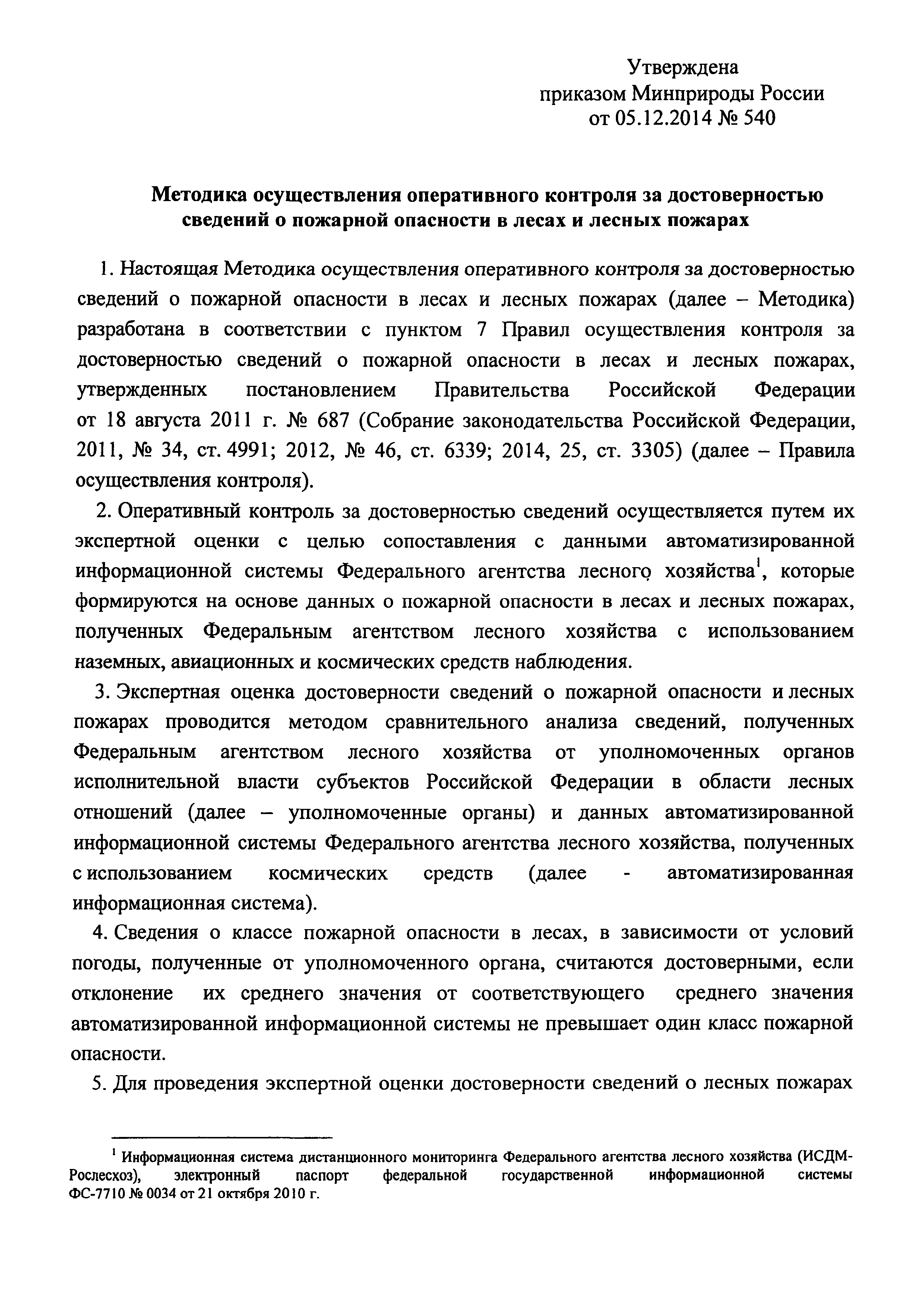 Методика осуществления оперативного контроля за достоверностью сведений о пожарной опасности в лесах и лесных пожарах| Статус: | действует | | Название рус.: | Методика осуществления оперативного контроля за достоверностью сведений о пожарной опасности в лесах и лесных пожарах | | Дата добавления в базу: | 01.01.2021 | | Дата актуализации: | 01.01.2021 | | Утверждён: | 05.12.2014 Минприроды России (Russian Federation Minprirody 540)