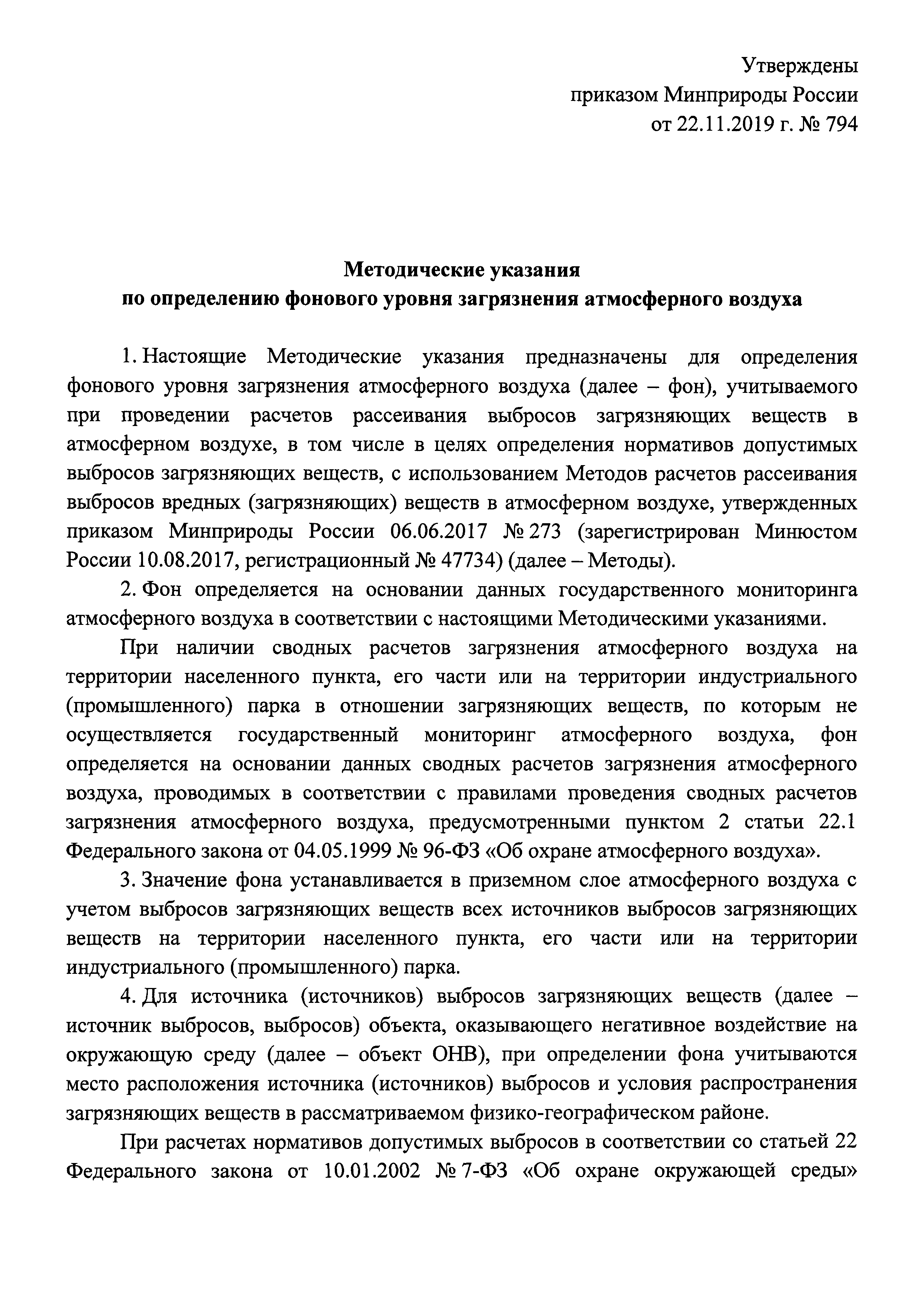 | Область применения: | Методические указания предназначены для определения фонового уровня загрязнения атмосферного воздуха, учитываемого при проведении расчетов рассеивания выбросов загрязняющих веществ в атмосферном воздухе, в том числе в целях определения нормативов допустимых выбросов загрязняющих веществ |
