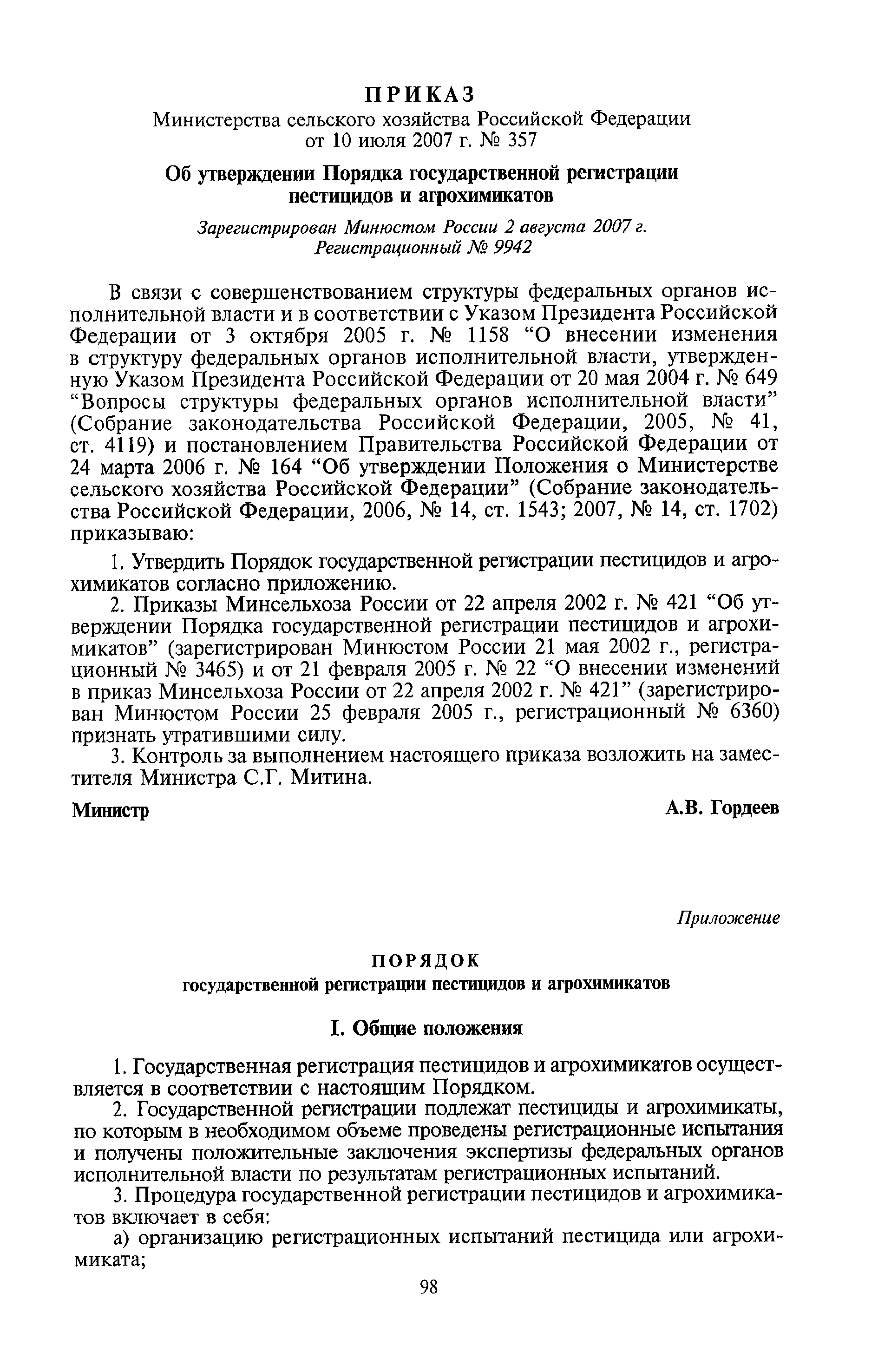 | Утверждён: | 10.07.2007 Министерство сельского хозяйства Российской Федерации (357) |