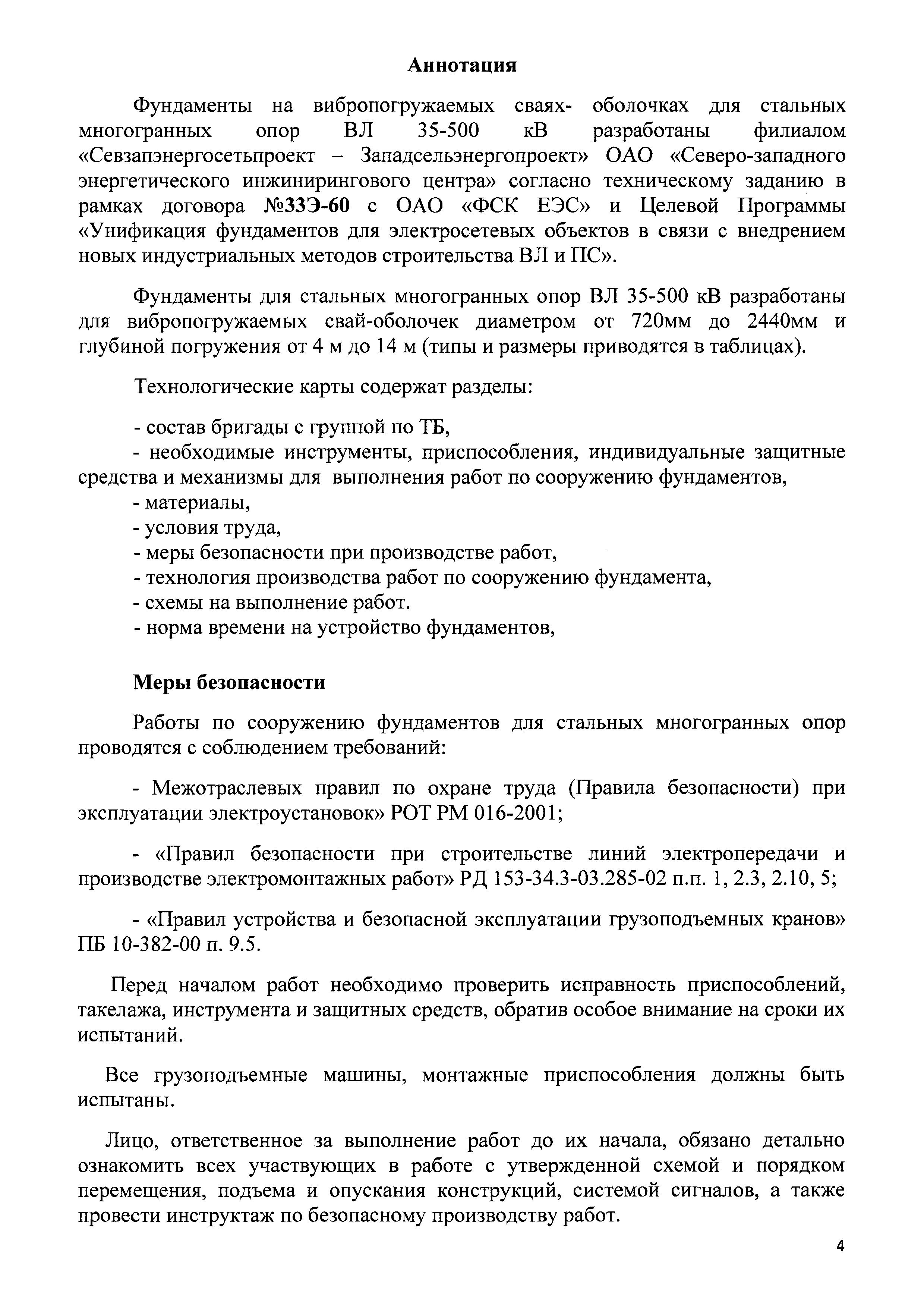 | Название рус.: | Типовая технологическая карта по сооружению фундаментов на вибропогружаемых сваях-оболочках для многогранных опор ВЛ напряжением 35 - 500 КВ |