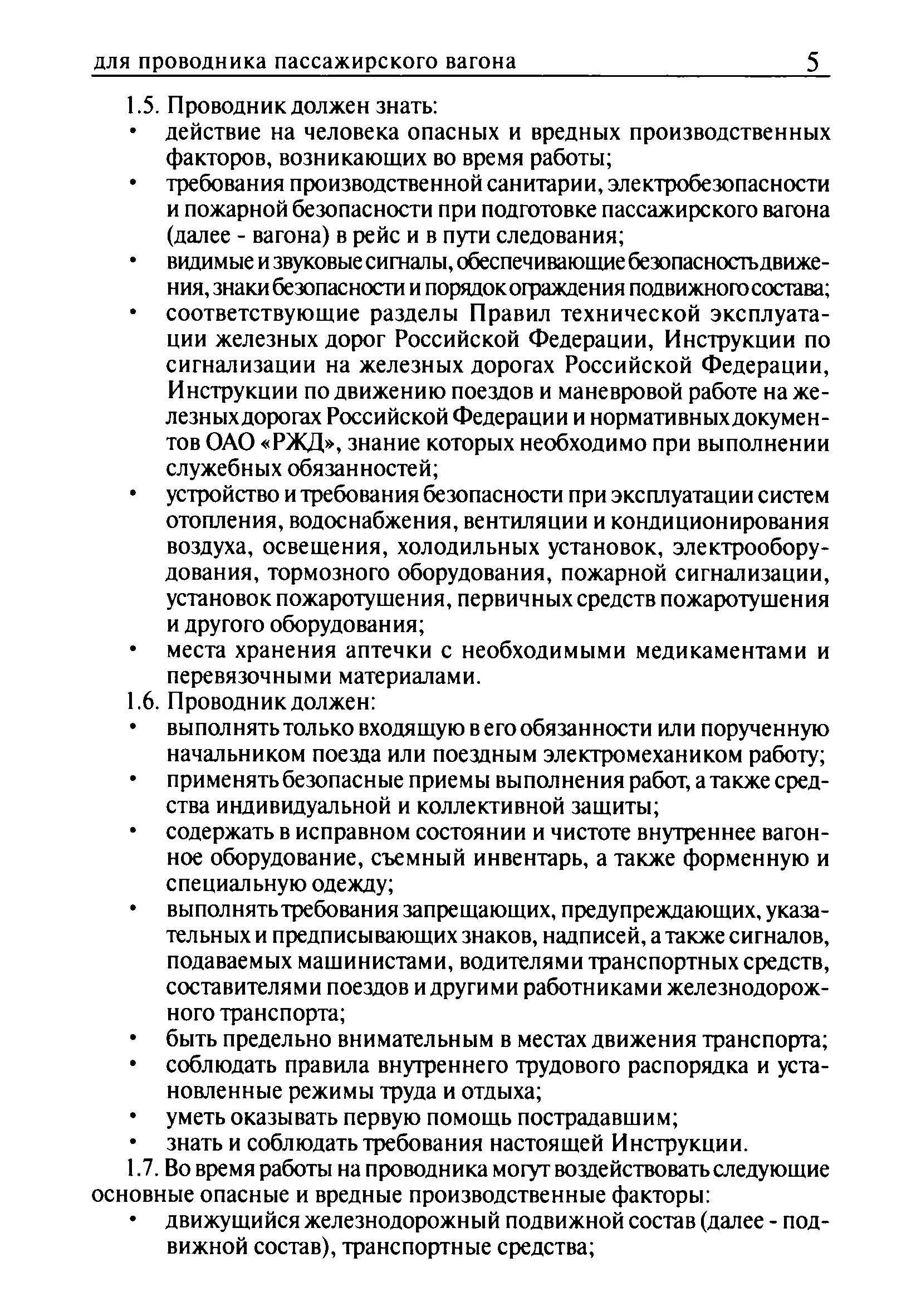 | Название рус.: | Инструкция по охране труда для проводника пассажирского вагона |