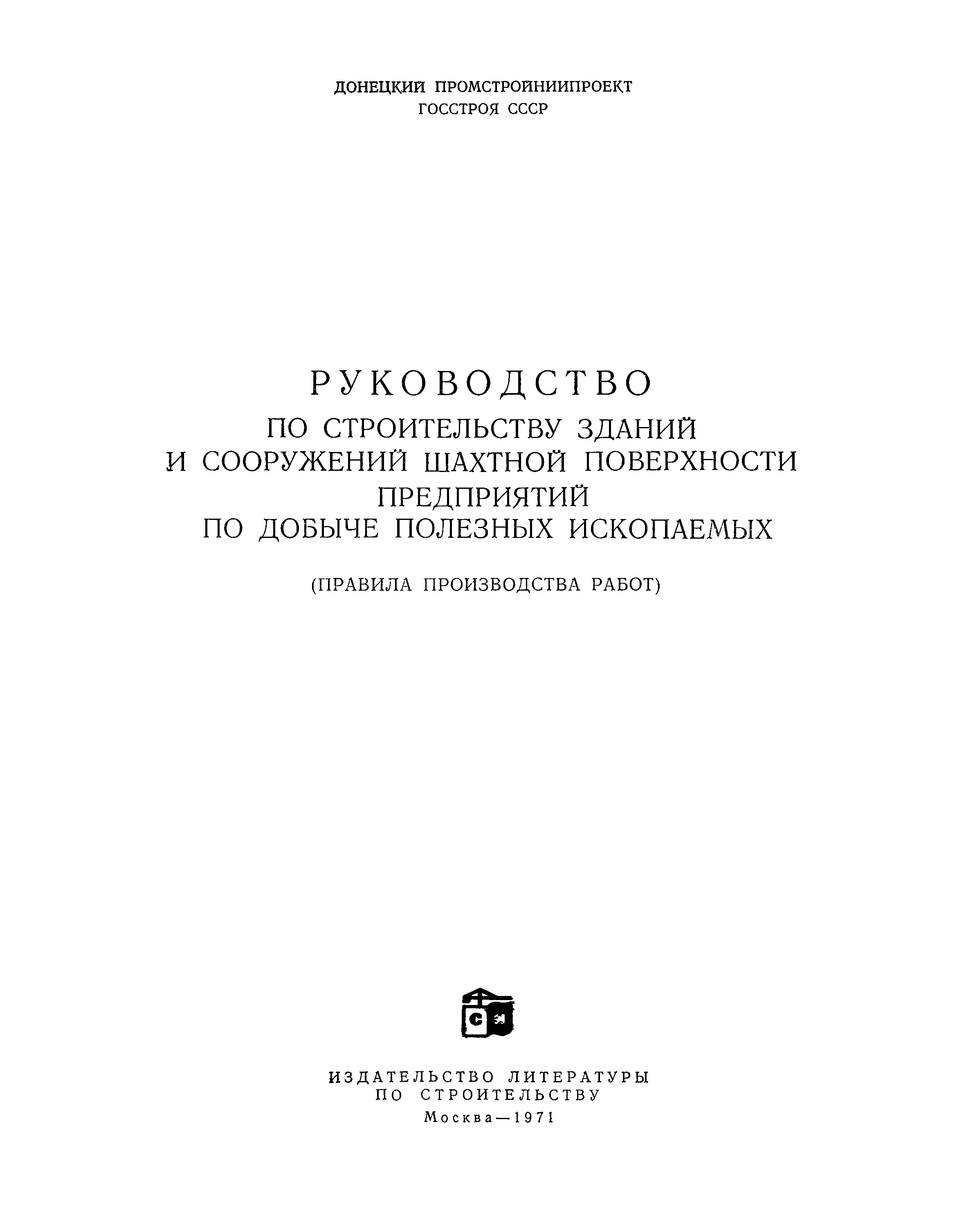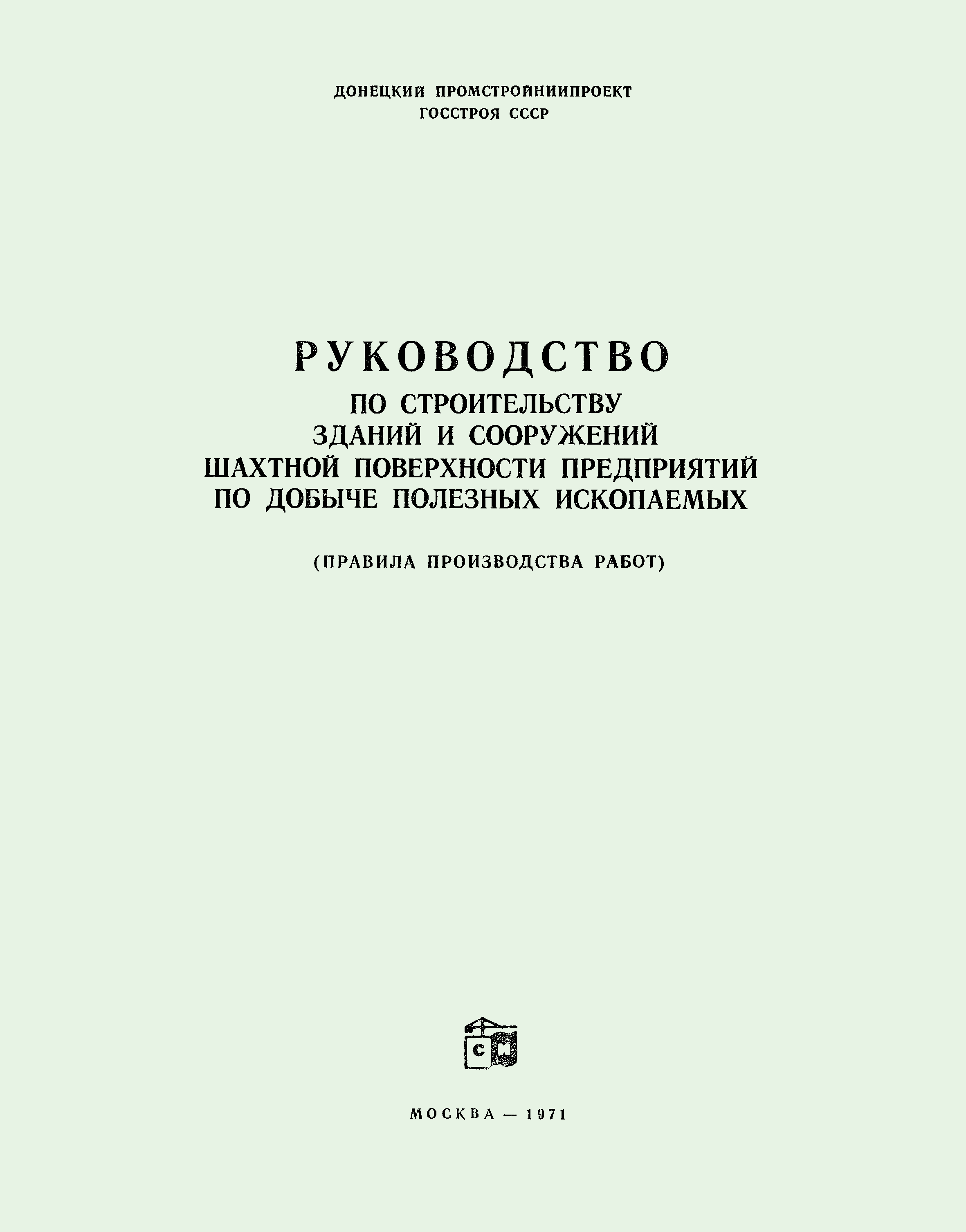 | Название рус.: | Руководство по строительству зданий и сооружений шахтной поверхности предприятий по добыче полезных ископаемых (правила производства работ) |