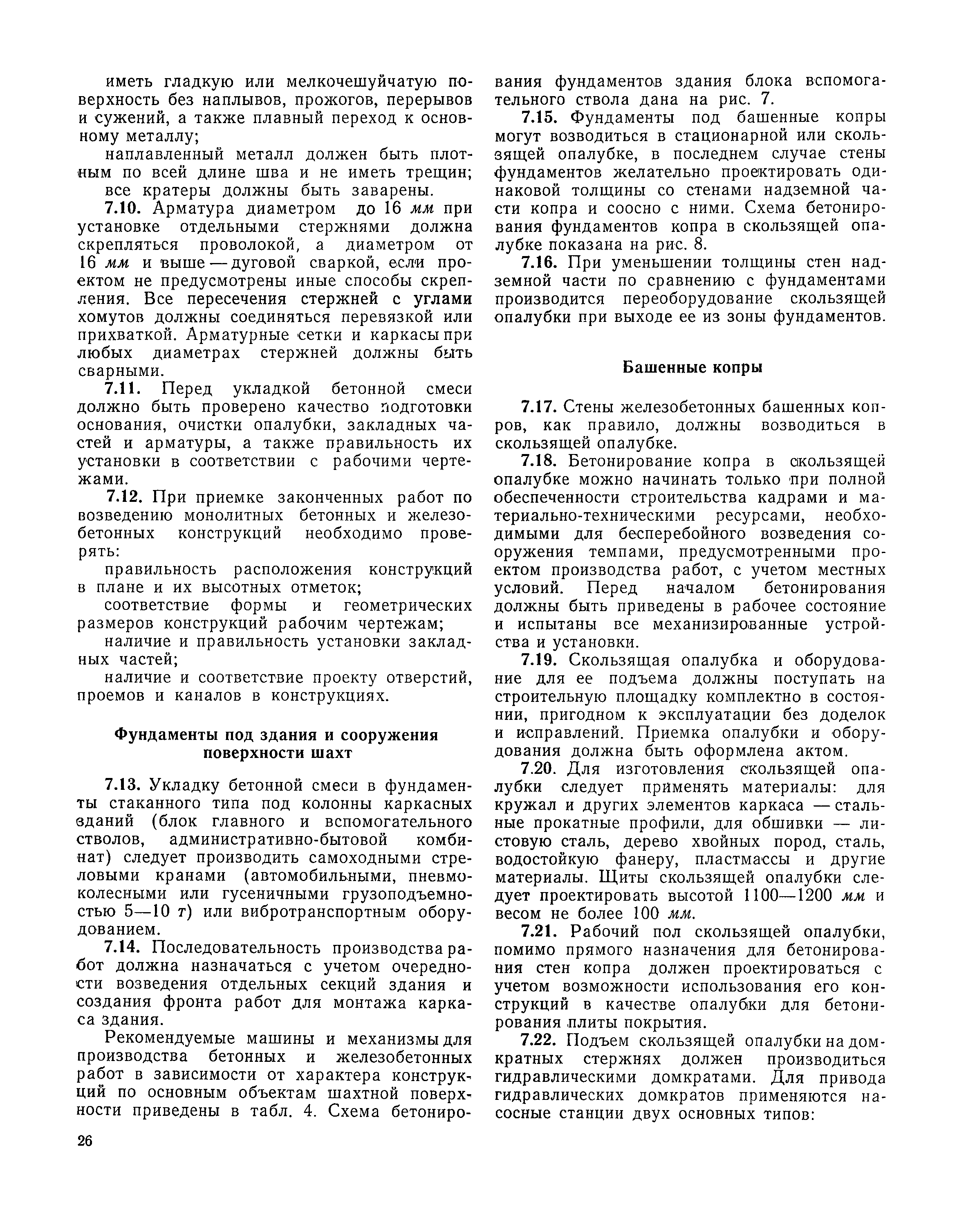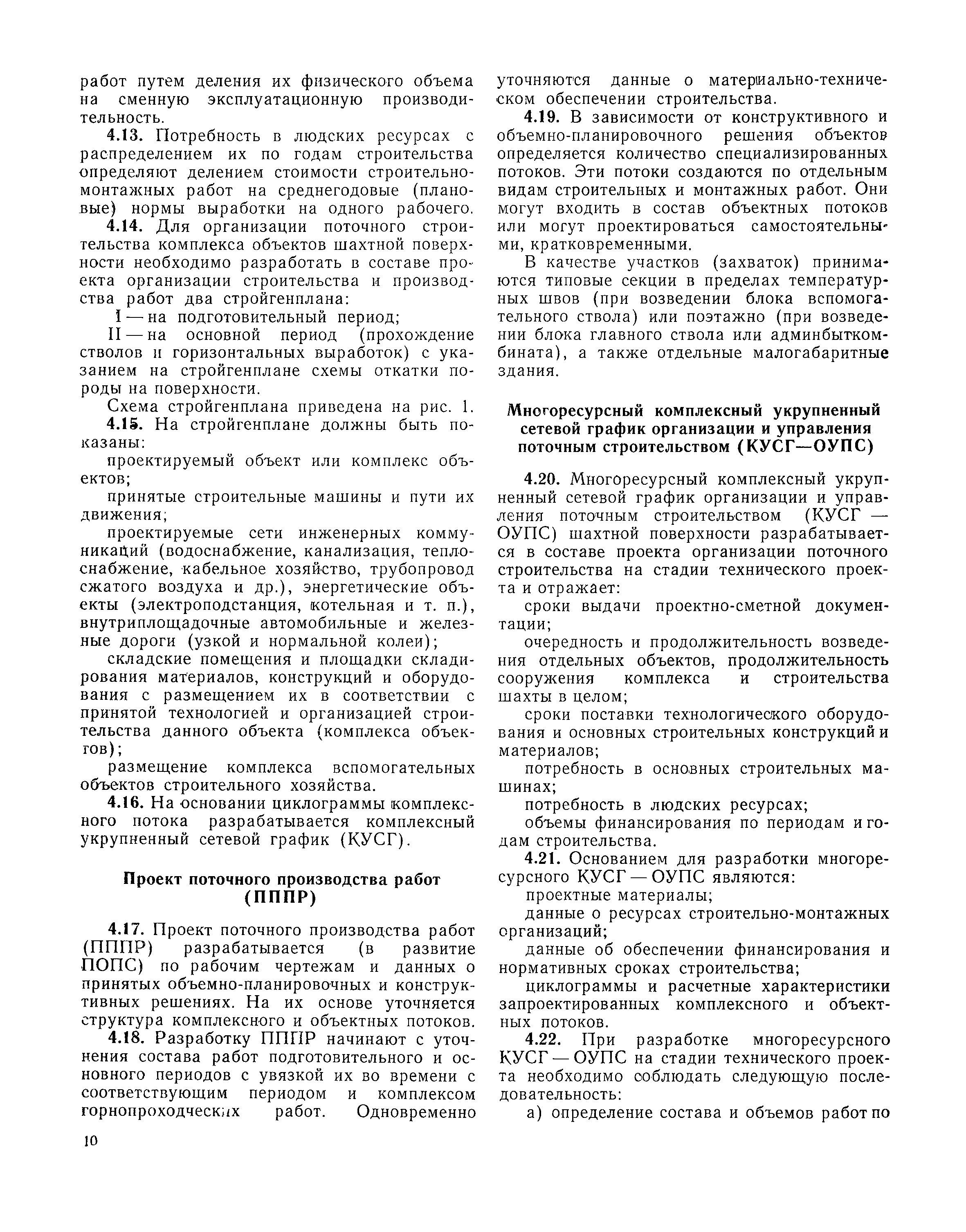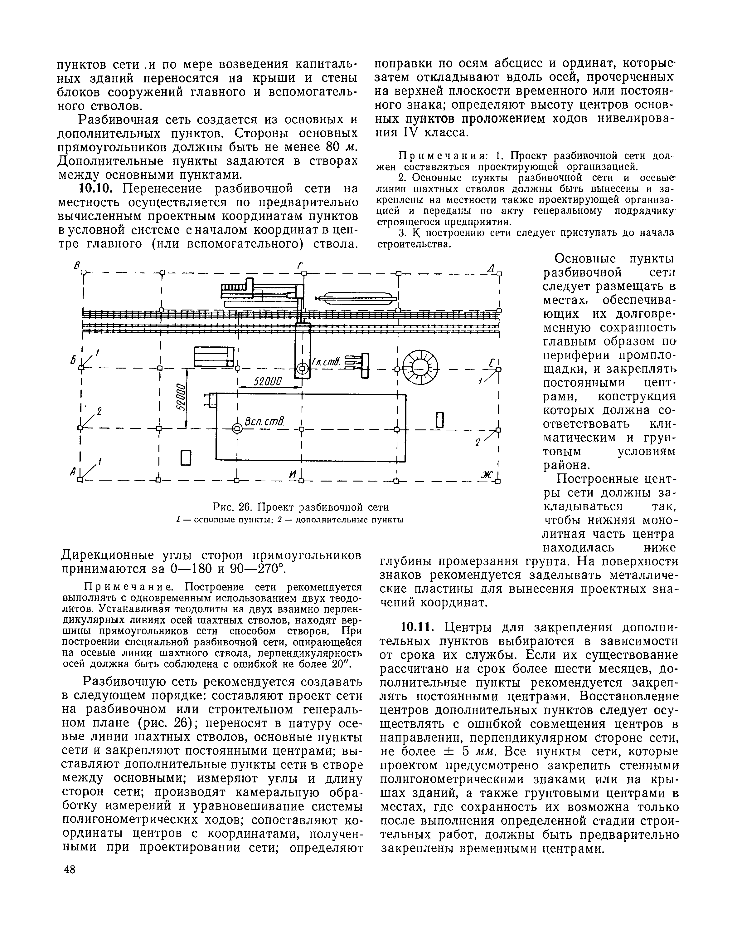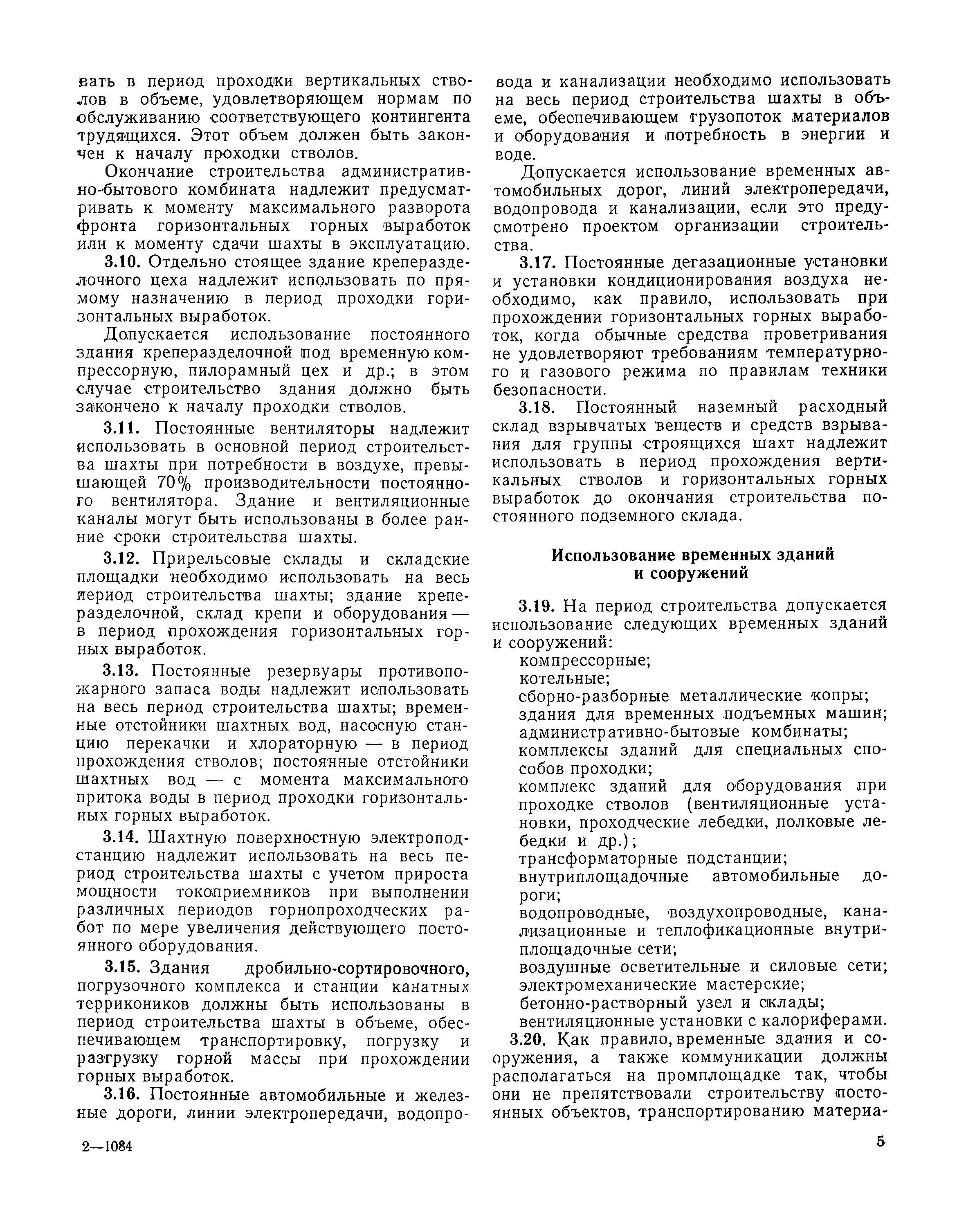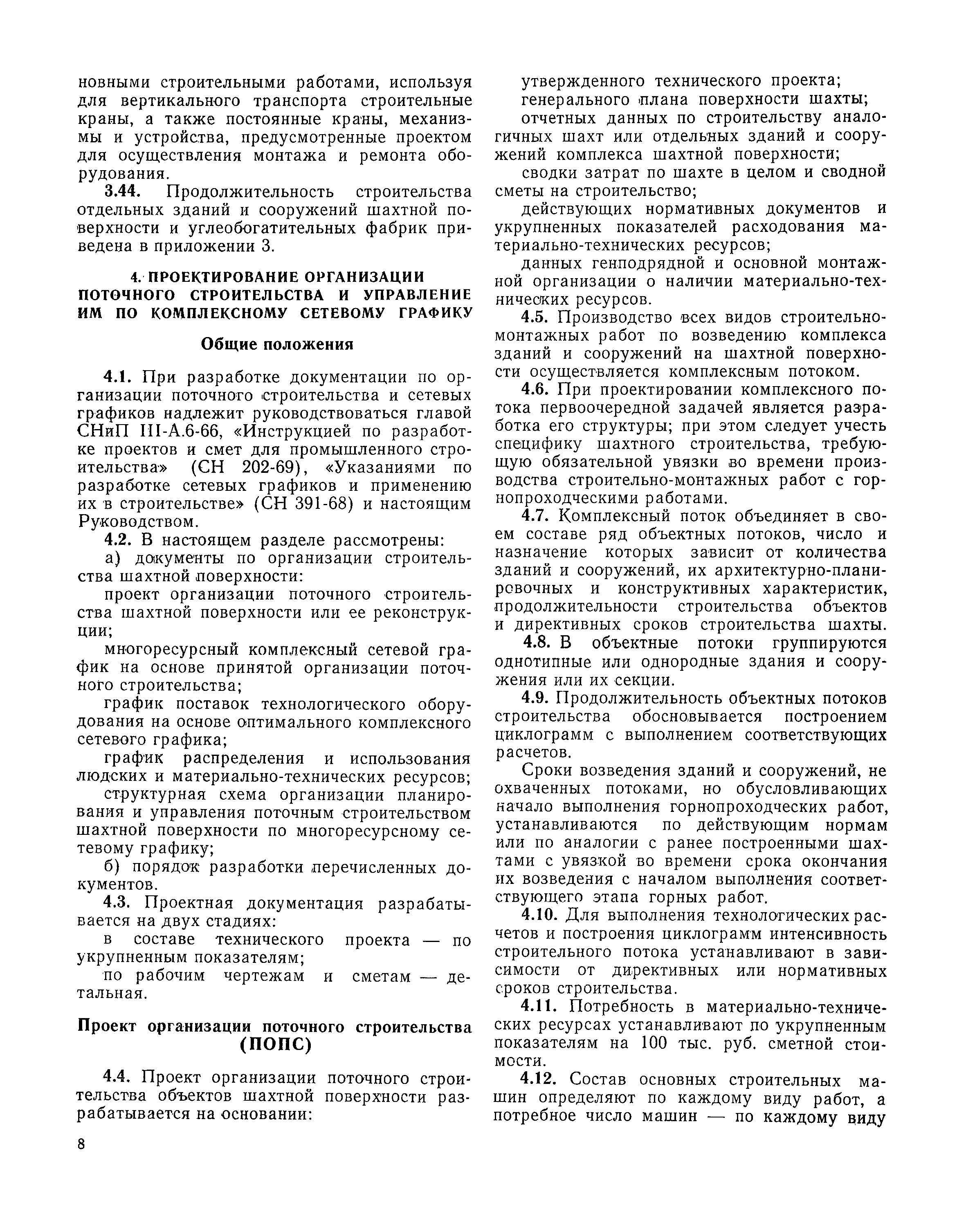 | Оглавление: | I Организация строительства 1 Общие положения 2 Подготовительный период 3 Использование постоянных и временных зданий и сооружений для нужд строительства, очередность и продолжительность их возведения 4 Проектирование организации поточного строительства и управление им по комплексному сетевому графику II Правила производства и приемки работ 5 Общие положения 6 Земляные работы 7 Бетонные и железобетонные работы 8 Монтаж сборных железобетонных конструкций 9 Монтаж металлических конструкций III Маркшейдерские работы 10 Производство маркшейдерских работ Приложение 1. Перечень зданий и сооружений, рекомендуемый к использованию на период строительства шахт Приложение 2. Характеристики сборно-разборных типов временных зданий и сооружений Приложение 3. Продолжительность строительства зданий и сооружений шахтной поверхности и углеобогатительных фабрик Приложение 4. Карточка-определитель работ в составе сетевого графика Приложение 5. Состав комплектов машин и механизмов для некоторых видов работ Приложение 6. Технические характеристики сваебойного оборудования Приложение 7. Описание знаков для закрепления пунктов разбивочной сети, основных сетей сооружений и трасс |