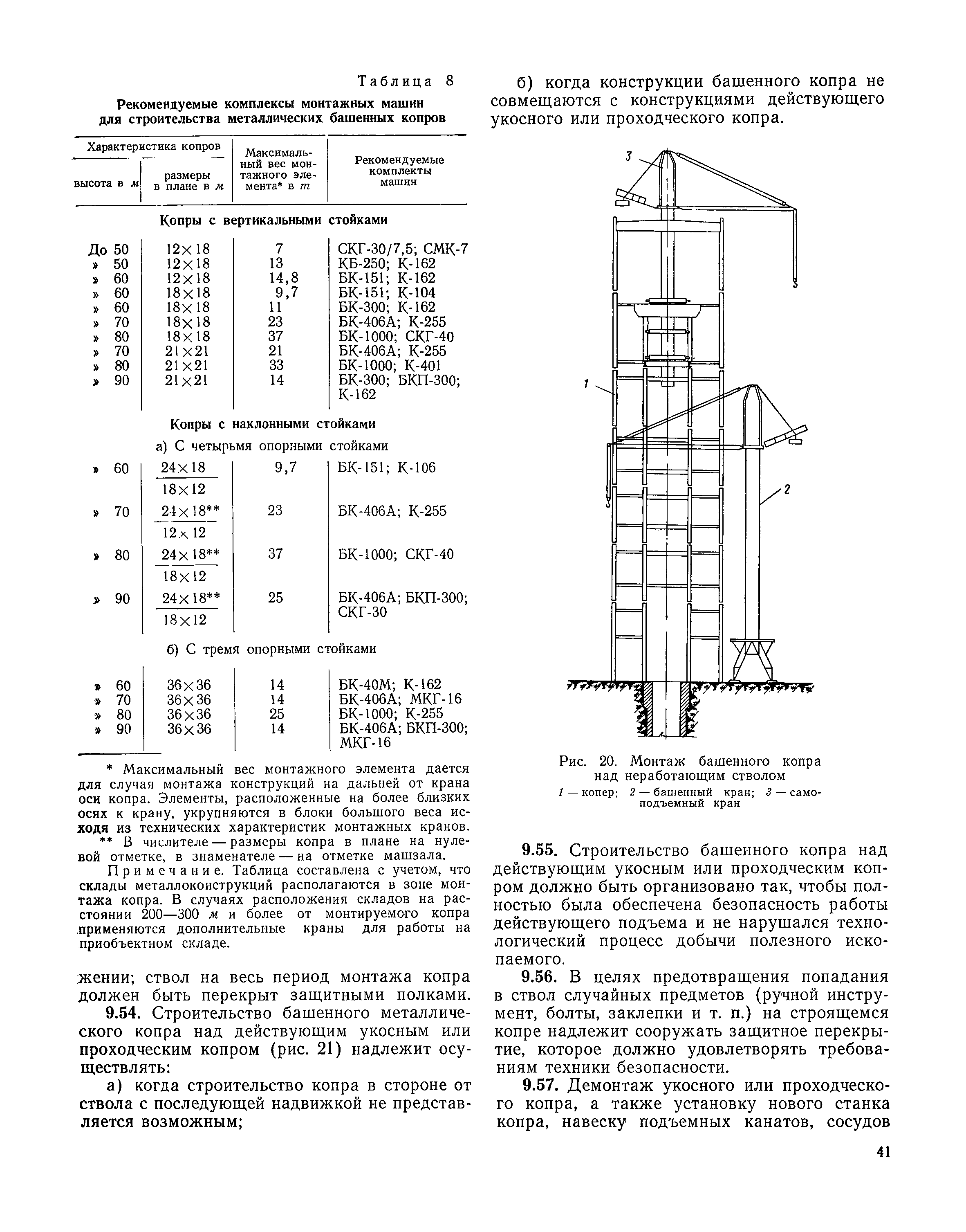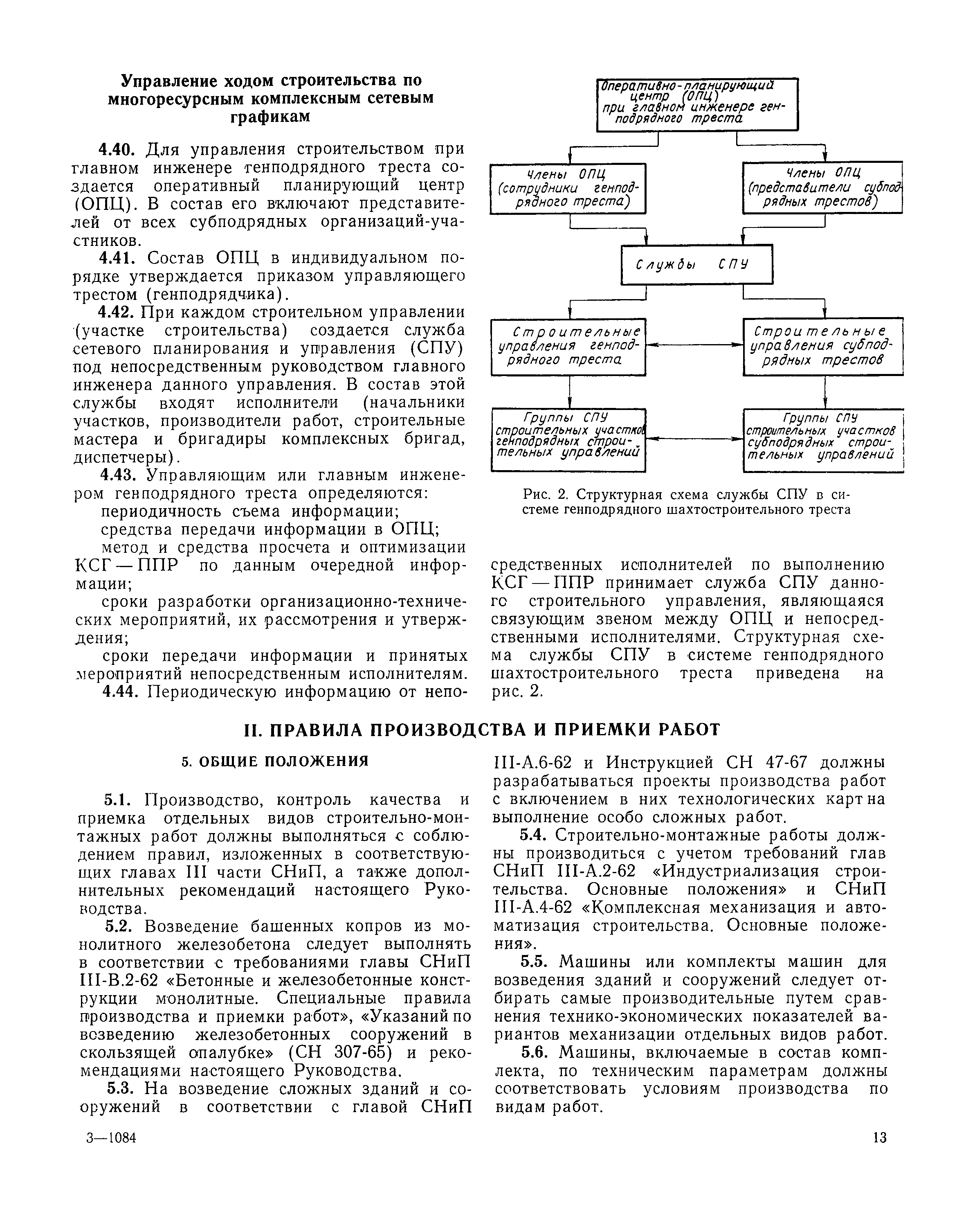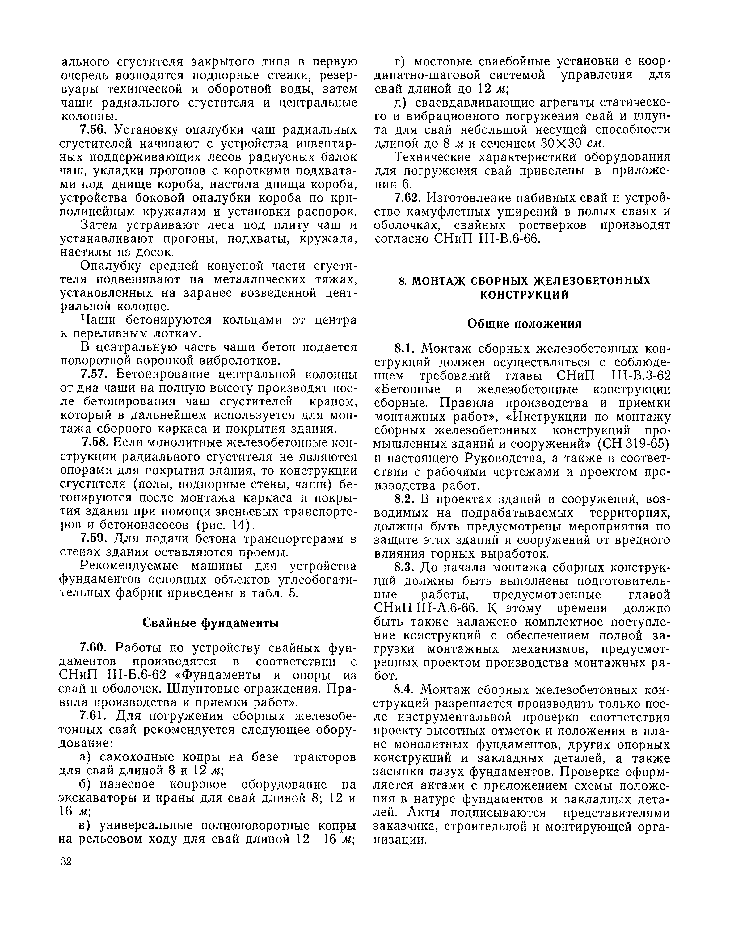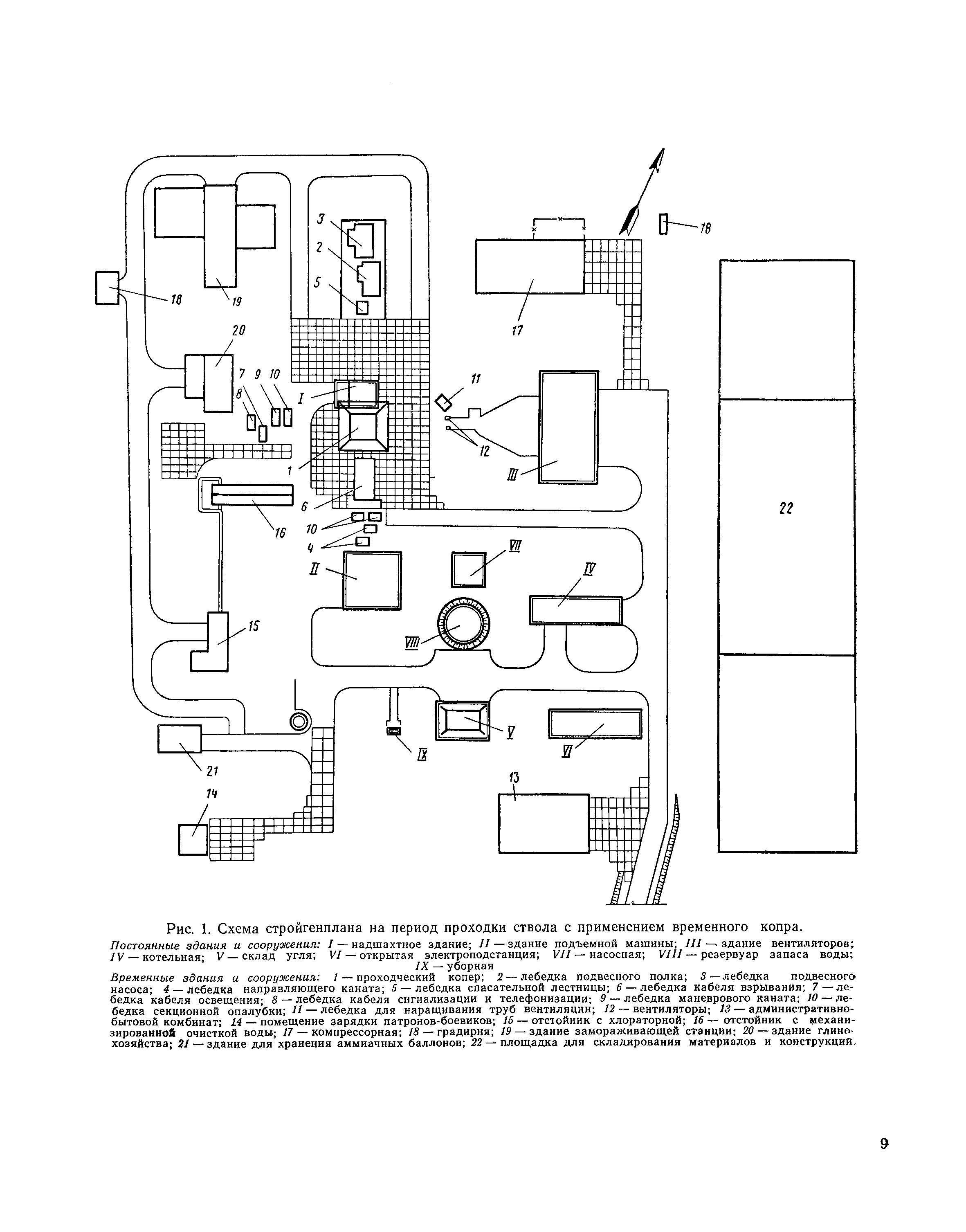| Оглавление: | I Организация строительства 1 Общие положения 2 Подготовительный период 3 Использование постоянных и временных зданий и сооружений для нужд строительства, очередность и продолжительность их возведения 4 Проектирование организации поточного строительства и управление им по комплексному сетевому графику II Правила производства и приемки работ 5 Общие положения 6 Земляные работы 7 Бетонные и железобетонные работы 8 Монтаж сборных железобетонных конструкций 9 Монтаж металлических конструкций III Маркшейдерские работы 10 Производство маркшейдерских работ Приложение 1. Перечень зданий и сооружений, рекомендуемый к использованию на период строительства шахт Приложение 2. Характеристики сборно-разборных типов временных зданий и сооружений Приложение 3. Продолжительность строительства зданий и сооружений шахтной поверхности и углеобогатительных фабрик Приложение 4. Карточка-определитель работ в составе сетевого графика Приложение 5. Состав комплектов машин и механизмов для некоторых видов работ Приложение 6. Технические характеристики сваебойного оборудования Приложение 7. Описание знаков для закрепления пунктов разбивочной сети, основных сетей сооружений и трасс |