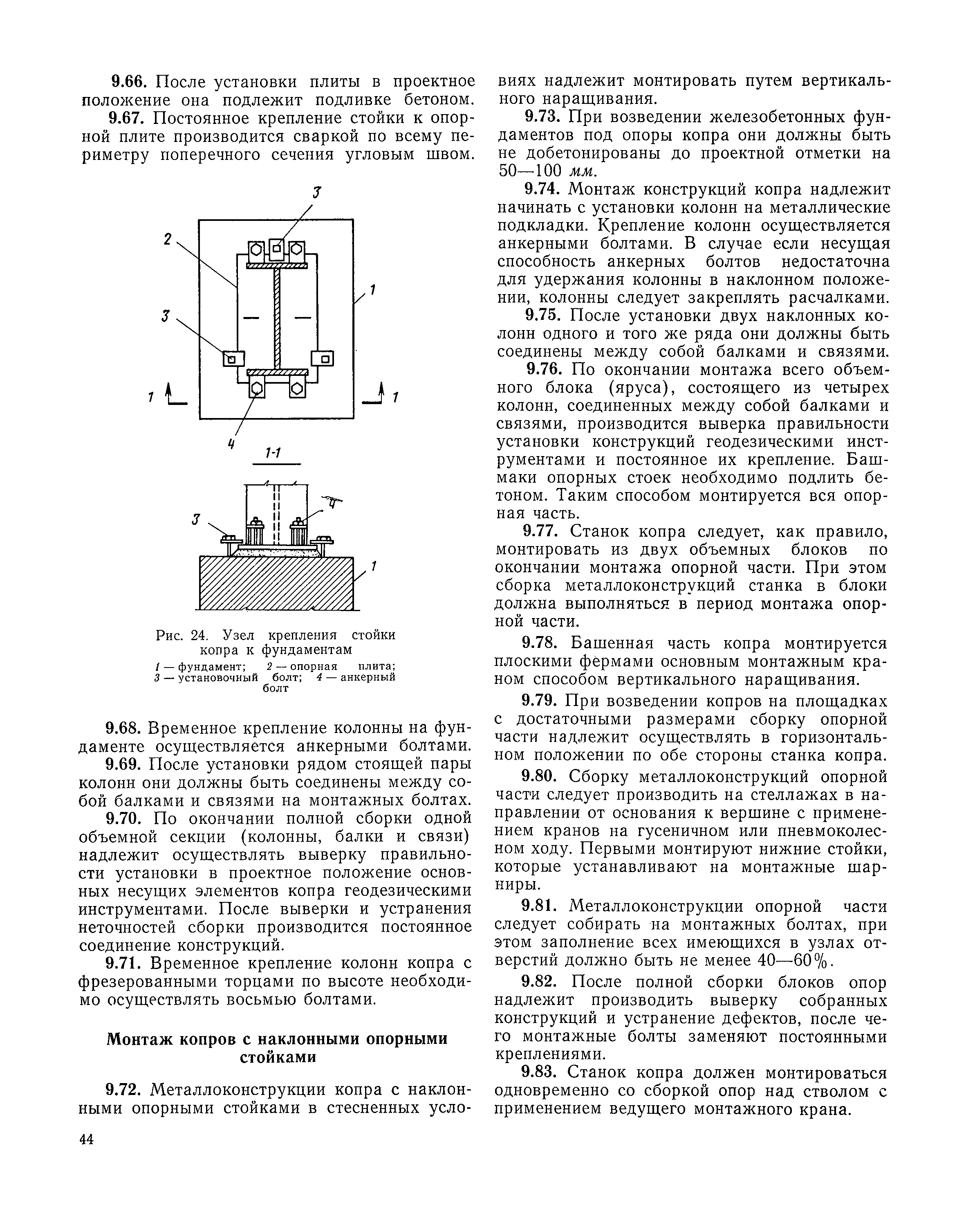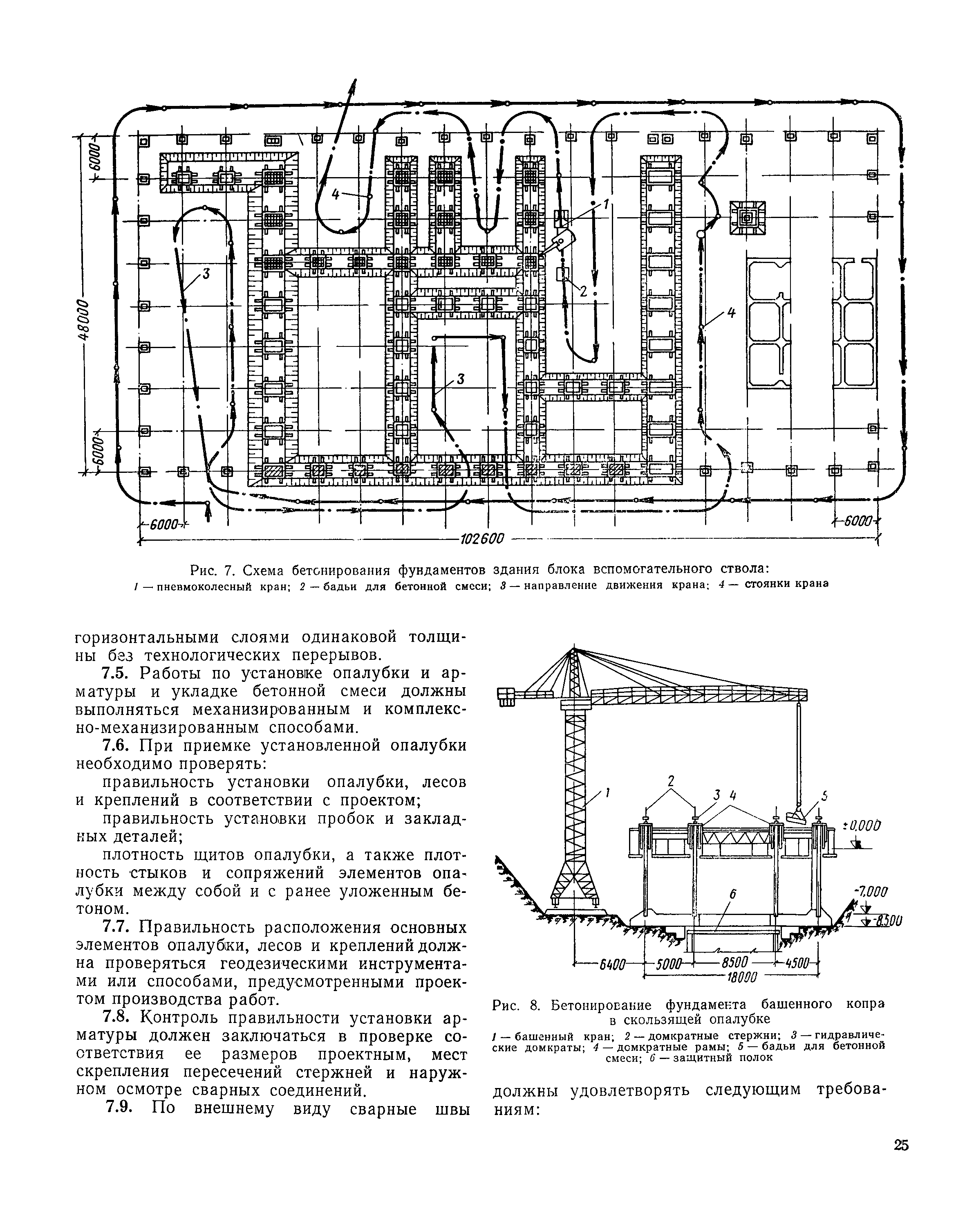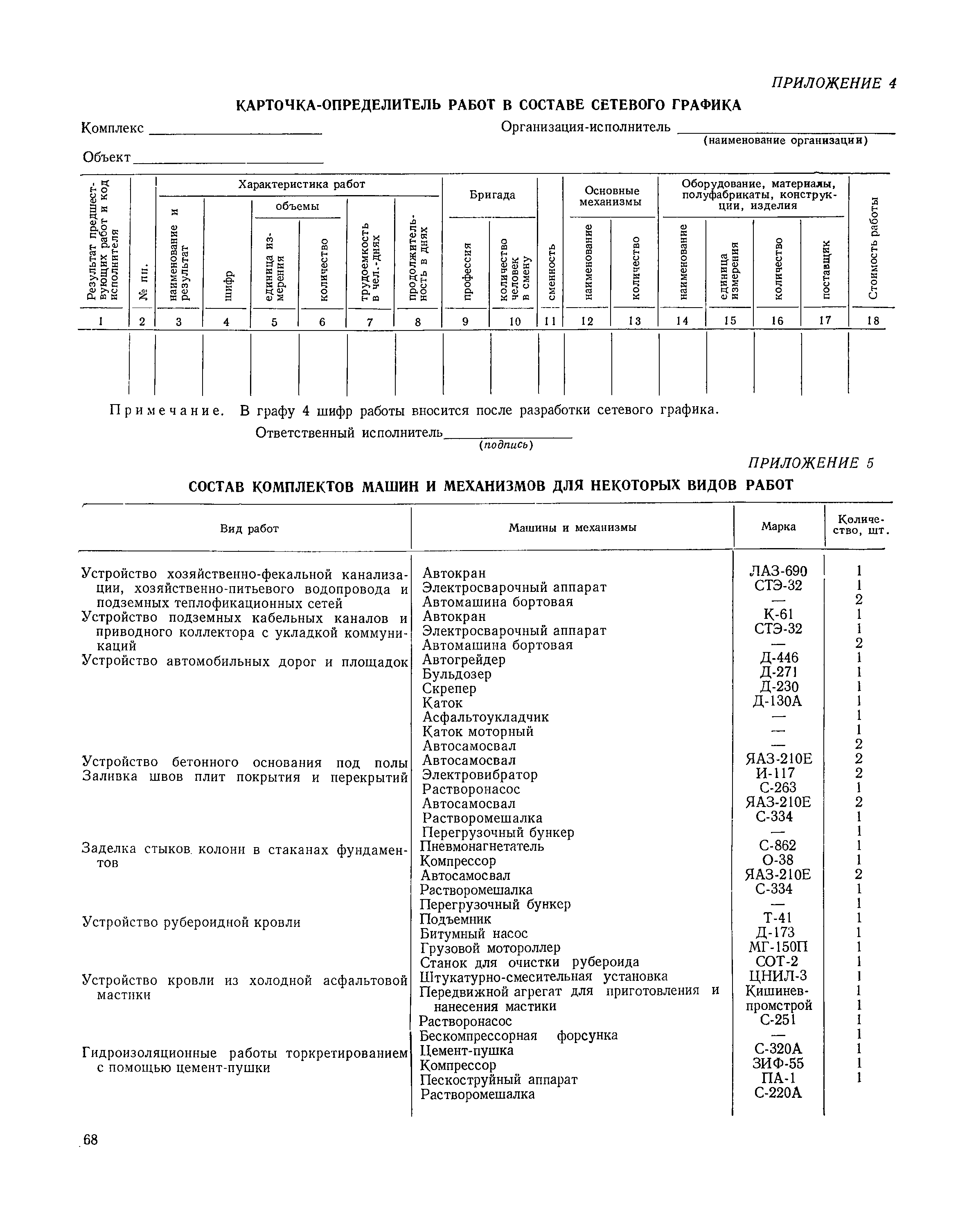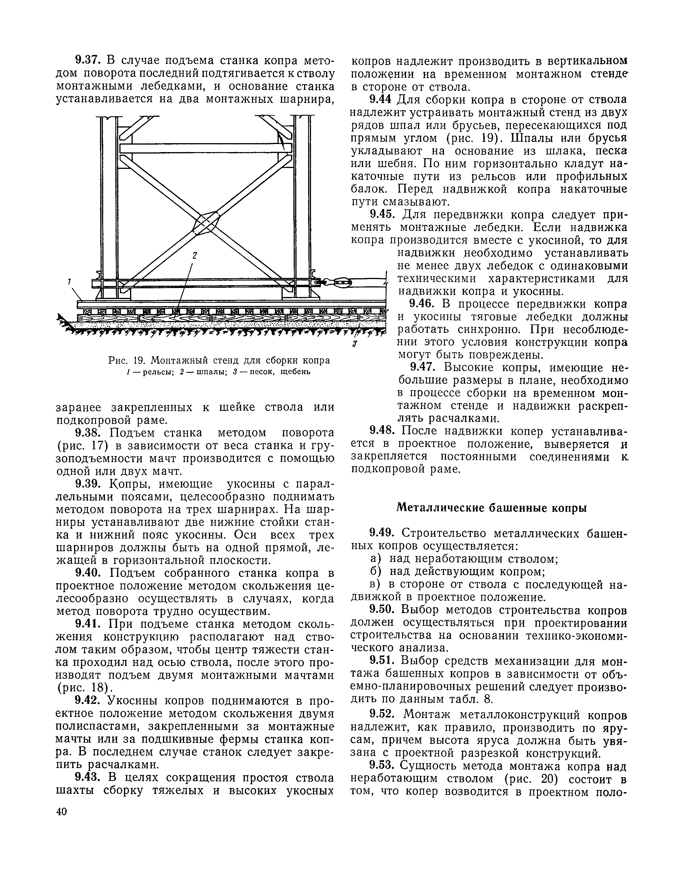 | Оглавление: | I Организация строительства 1 Общие положения 2 Подготовительный период 3 Использование постоянных и временных зданий и сооружений для нужд строительства, очередность и продолжительность их возведения 4 Проектирование организации поточного строительства и управление им по комплексному сетевому графику II Правила производства и приемки работ 5 Общие положения 6 Земляные работы 7 Бетонные и железобетонные работы 8 Монтаж сборных железобетонных конструкций 9 Монтаж металлических конструкций III Маркшейдерские работы 10 Производство маркшейдерских работ Приложение 1. Перечень зданий и сооружений, рекомендуемый к использованию на период строительства шахт Приложение 2. Характеристики сборно-разборных типов временных зданий и сооружений Приложение 3. Продолжительность строительства зданий и сооружений шахтной поверхности и углеобогатительных фабрик Приложение 4. Карточка-определитель работ в составе сетевого графика Приложение 5. Состав комплектов машин и механизмов для некоторых видов работ Приложение 6. Технические характеристики сваебойного оборудования Приложение 7. Описание знаков для закрепления пунктов разбивочной сети, основных сетей сооружений и трасс |