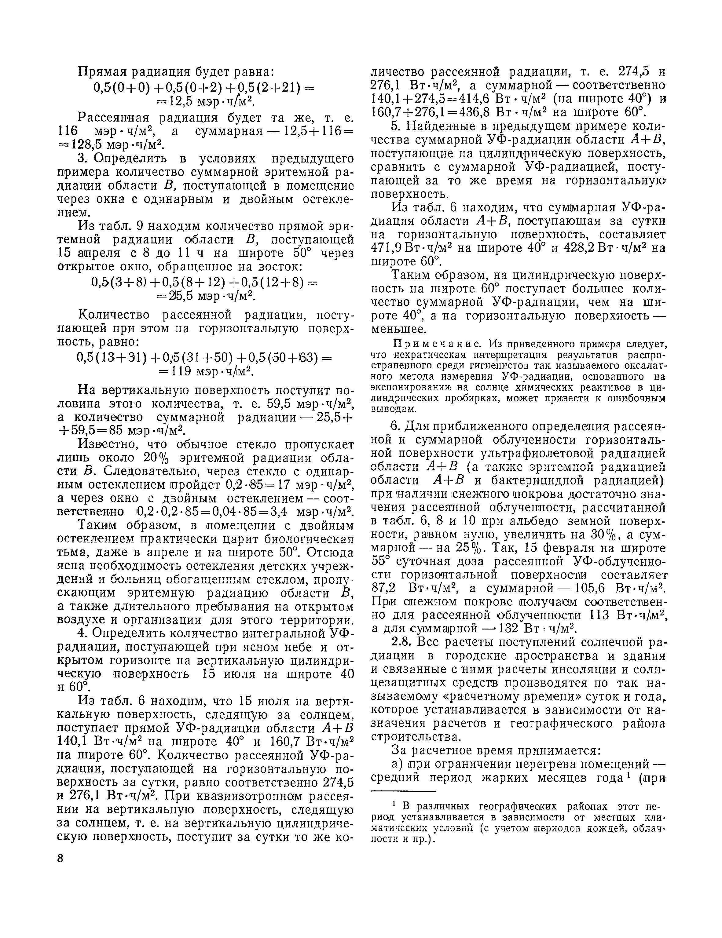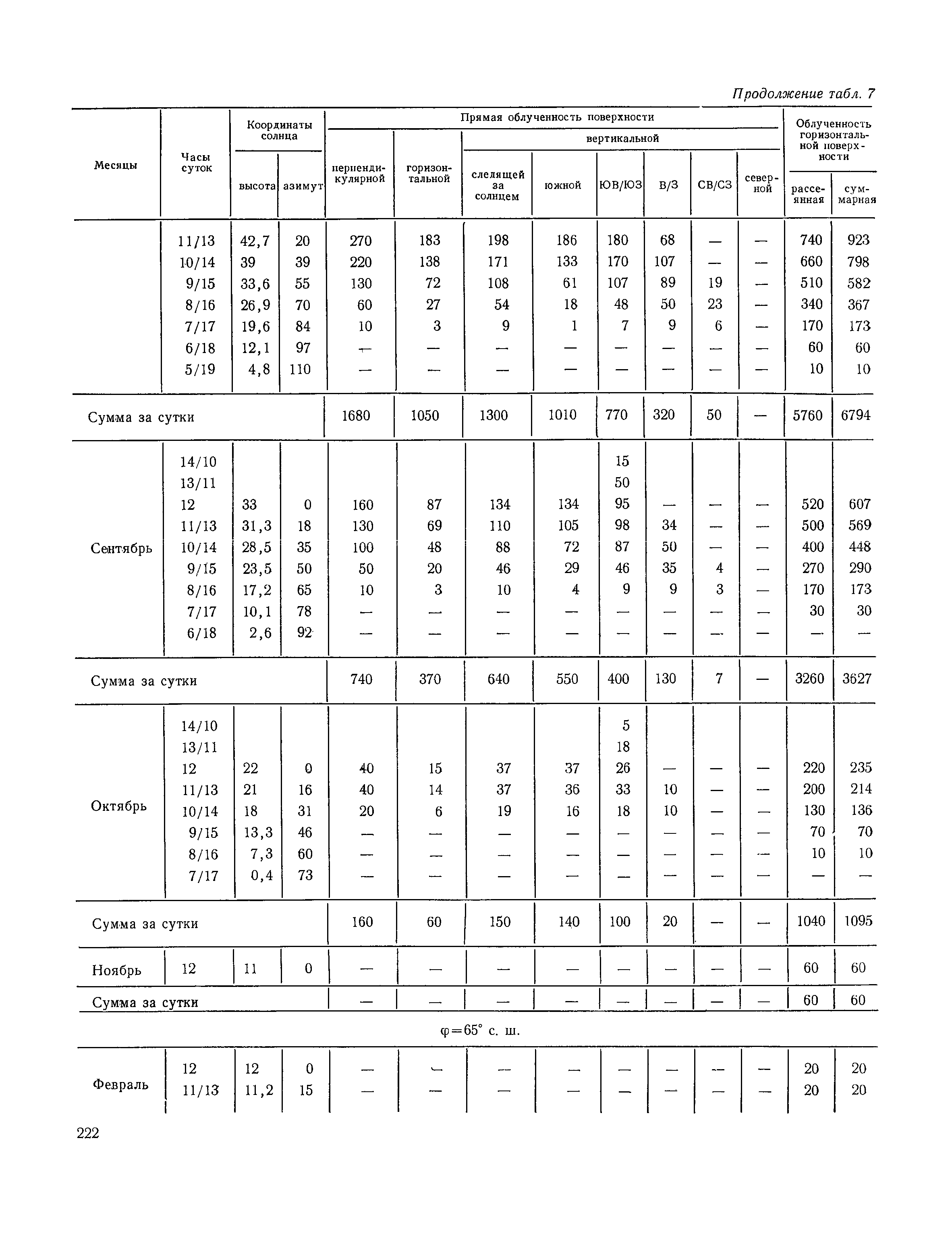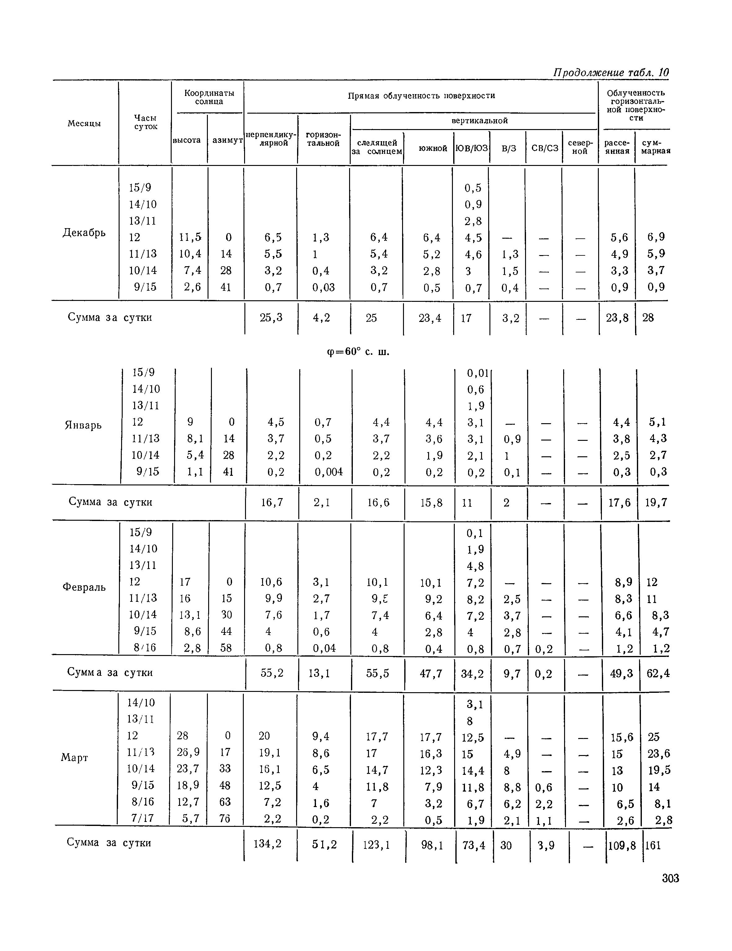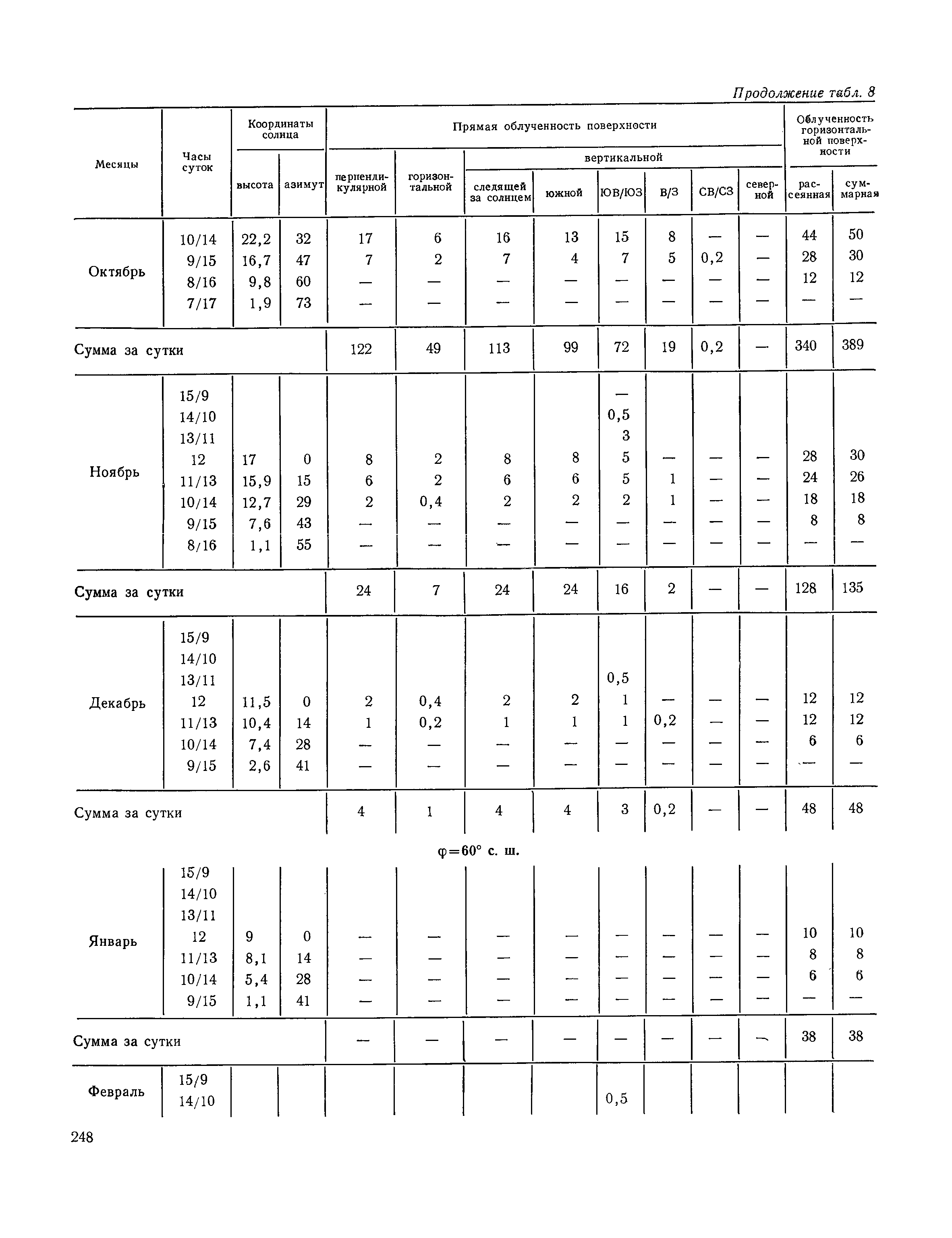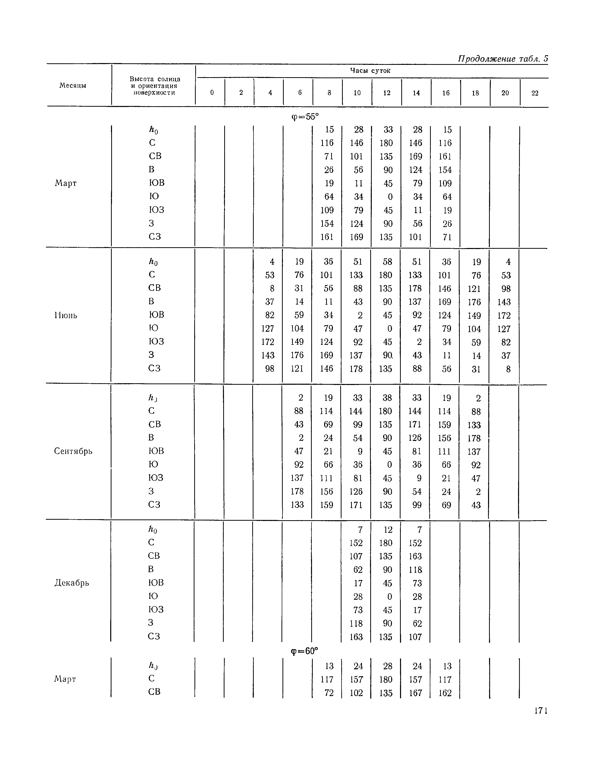 Руководство по строительной климатологии (пособие по проектированию)| Статус: | привязан к недействующему документу | | Название рус.: | Руководство по строительной климатологии (пособие по проектированию) | | Дата добавления в базу: | 01.01.2021 | | Дата актуализации: | 01.01.2021 | | Область применения: | Руководство по строительной климатологии содержит основные климатические показатели, которые могут быть использованы при разработке проектов планировки и застройки населенных мест, проектировании генеральных планов промышленных предприятий, составлении климатического паспорта городов и строительных площадок, при проектировании новых и реконструкции действующих предприятий, зданий и сооружений различного типа. Материалы Руководства используются при расчетах строительных конструкций зданий и сооружений различного назначения, при расчетах теплопотерь и теплопоступлений, a также отопления и вентиляции, при оценке режима увлажнения зданий и определении условий инсоляции и светового режима в различных климатических условиях Советского Союза. Руководство предназначено для архитекторов, инженеров строительных специальностей и научных работников | | Оглавление: | 1. Общие положения 2. Солнечная радиация А. Тепловая радиация Б. Видимая радиация В. Ультрафиолетовая радиация 3. Температура наружного воздуха 4. Атмосферные осадки, выпадающие на вертикальные поверхности ограждений 5. Скорость ветра 6. Оценка планировочных решений с учетом ветрового режима Таблица 1. Суммарная (прямая/рассеянная) радиация, поступающая на вертикальные поверхности различной ориентации при безоблачном небе в зависимости от широты и времени суток Таблица 2. Суммарная (прямая/рассеянная) радиация, поступающая на горизонтальную поверхность при безоблачном небе в зависимости от широты и времени суток Таблица 3. Суммарная солнечная радиация, поступающая на вертикальные поверхности различной ориентации при действительных условиях облачности и прозрачности атмосферы Таблица 4. Прямая, рассеянная и суммарная освещенность горизонтальных и вертикальных поверхностей в зависимости от широты и времени суток Таблица 5. Высота солнца и азимут нормали к вертикальной поверхности, отсчитанной от вертикали солнца для различных широт Таблица 6. Ультрафиолетовая (области А + В) облученность Таблица 7. Ультрафиолетовая (области В) облученность Таблица 8. Эритемная (области А + В) облученность Таблица 9. Эритемная (области В) облученность Таблица 10. Бактерицидная облученность Таблица 11. Средняя за январь температура воздуха, повторяемость, и скорость ветров различных направлений по отдельным пунктам СССР Таблица 12. Количество осадков, выпадающих под действием ветра на вертикальную поверхность наветренной ориентации по отдельным пунктам СССР Таблица 13. Средняя скорость ветра на высоте 10 м при низких температурах наружного воздуха Таблица 14. Планировочные схемы первой группы Таблица 15. Планировочные схемы второй группы | | Разработан: | НИИСФ
