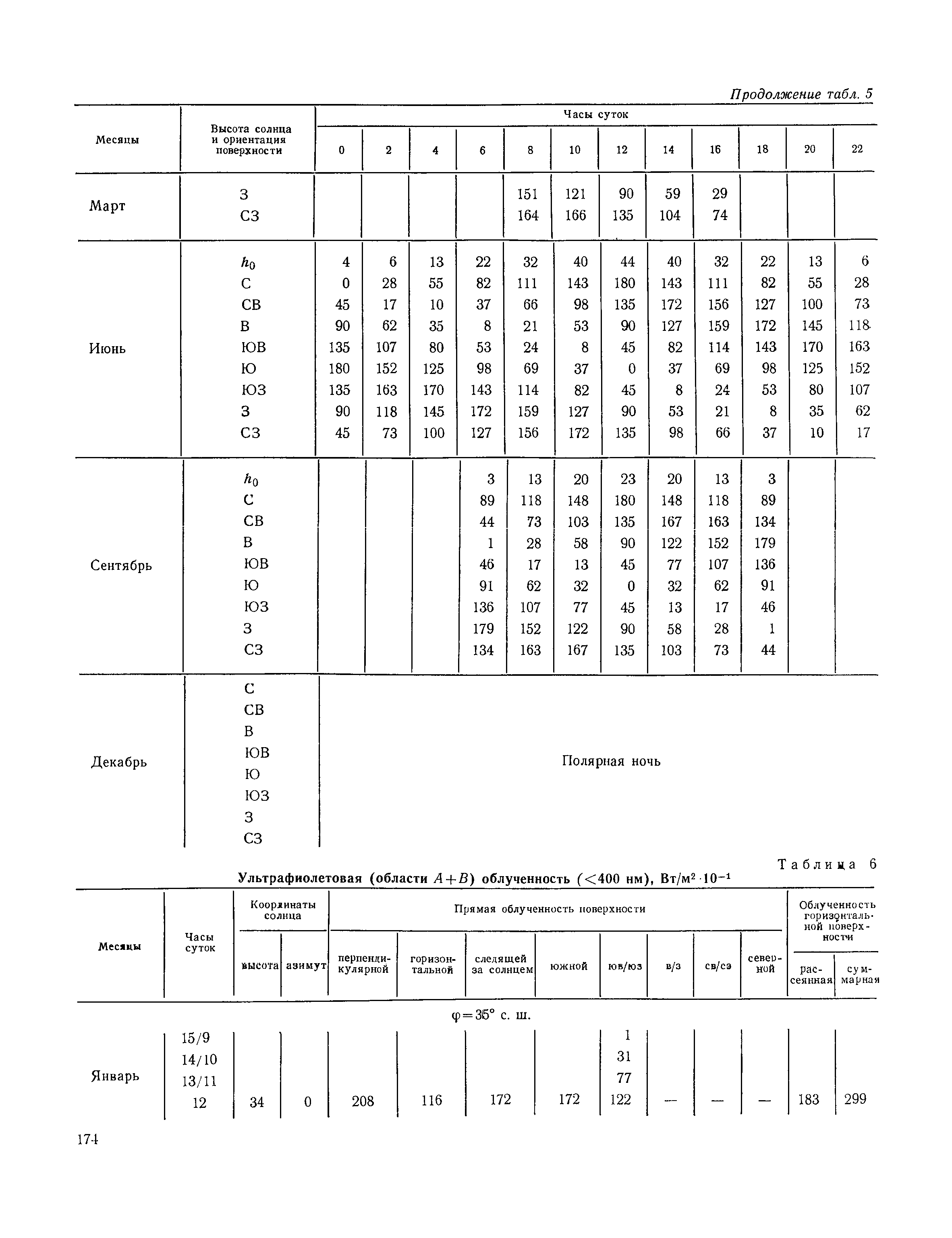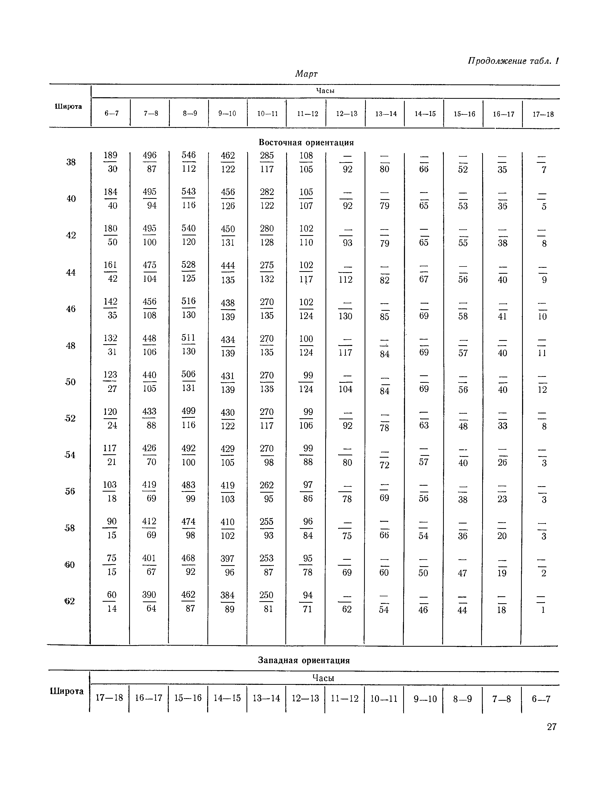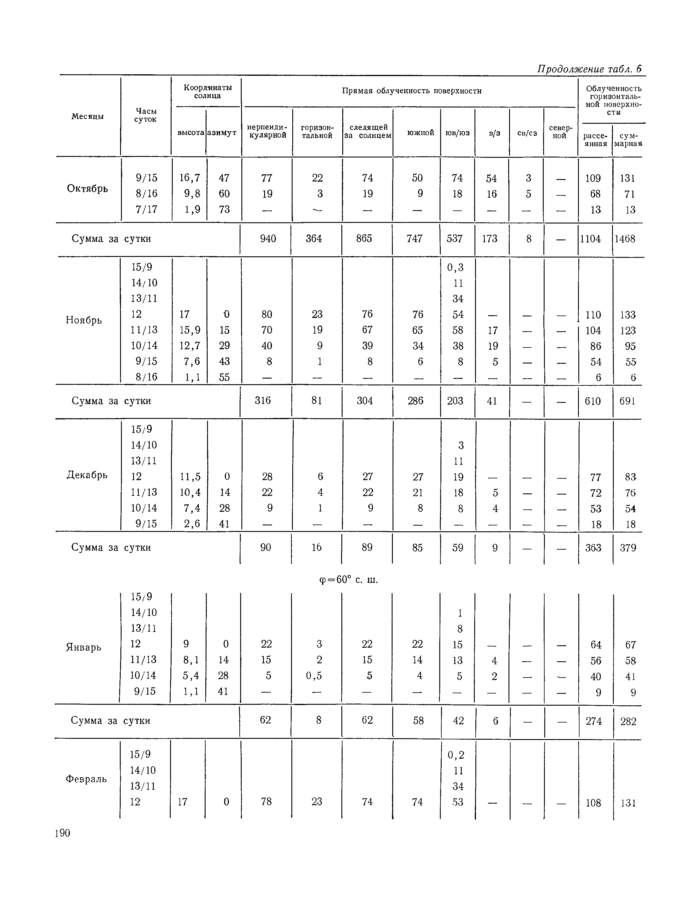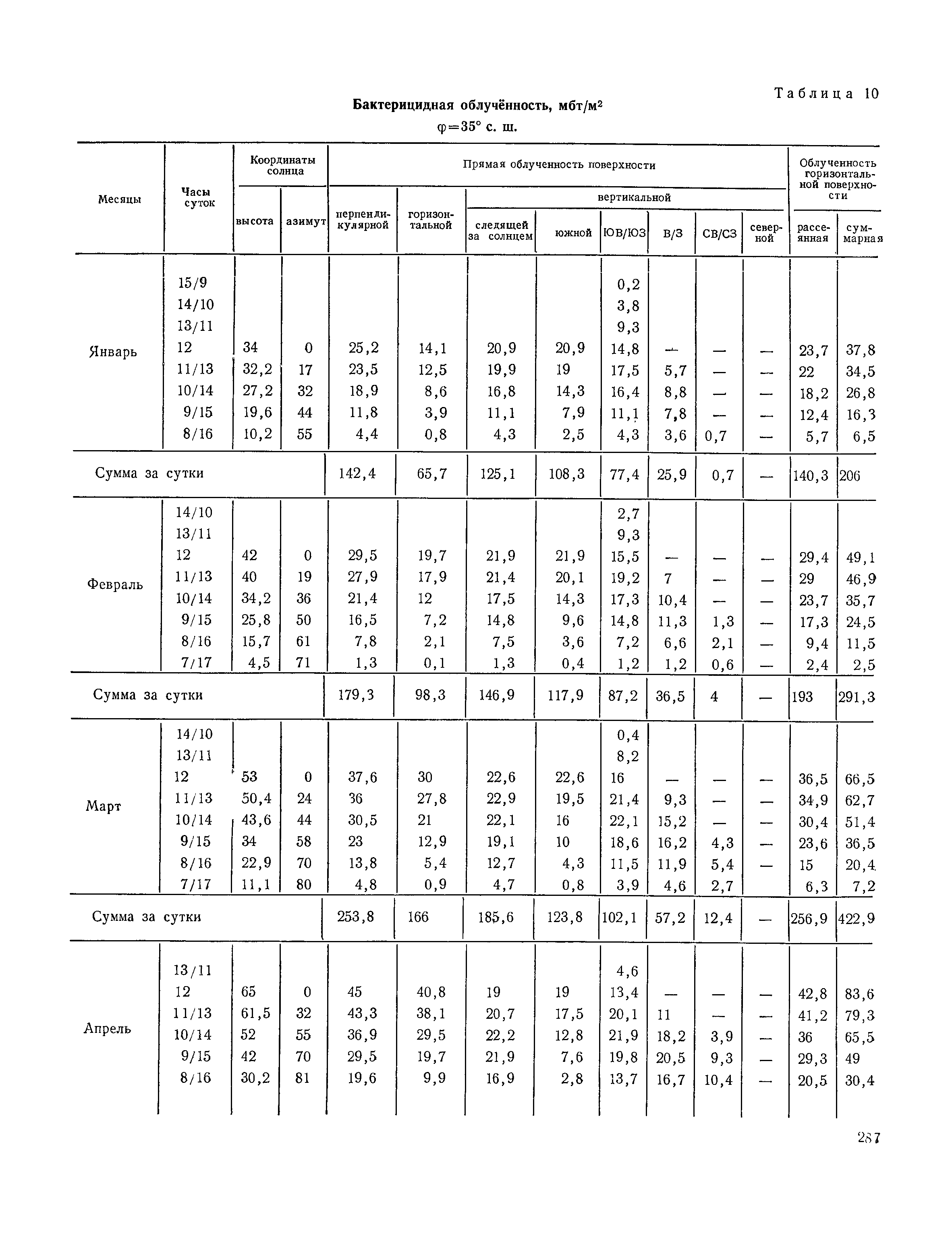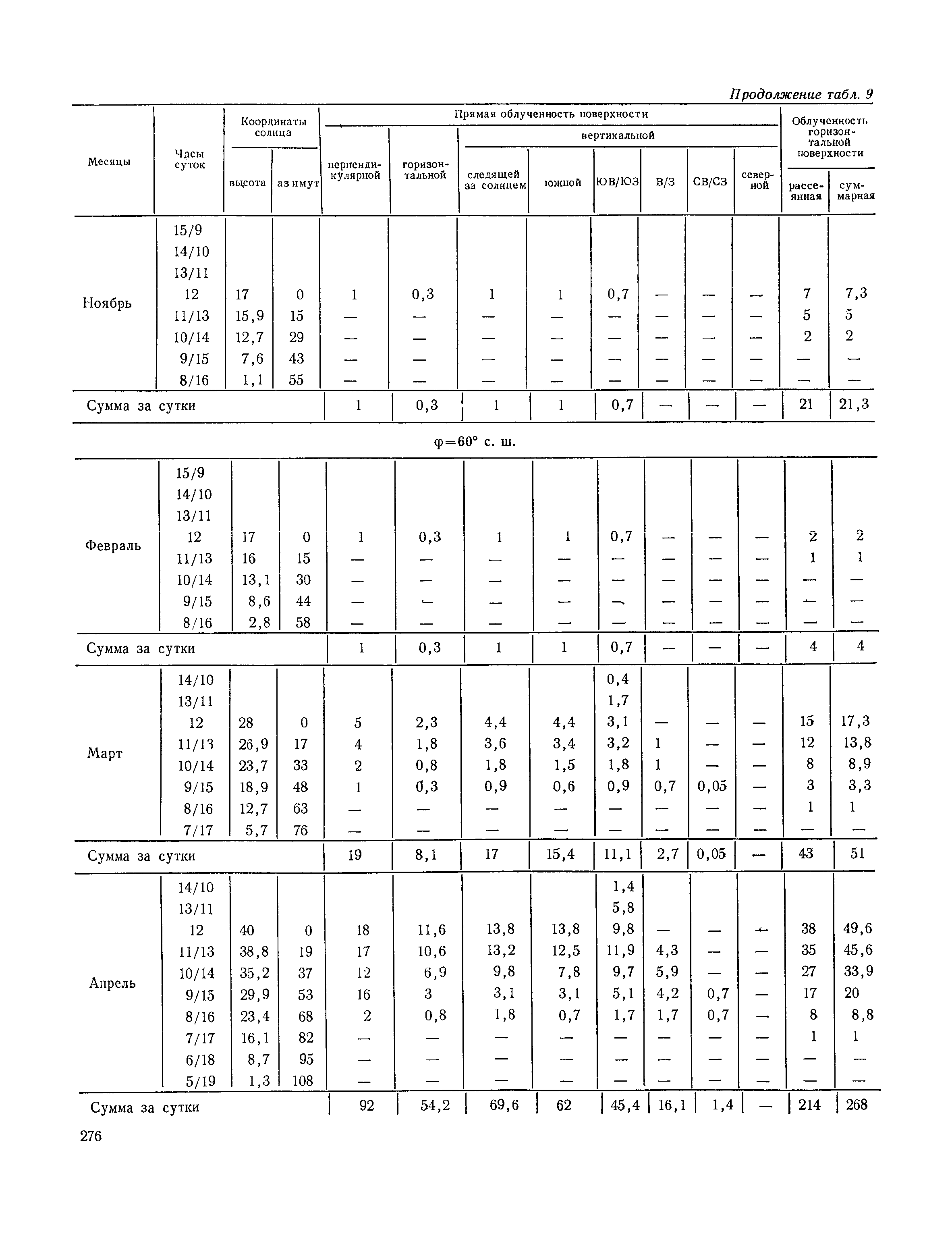 Руководство по строительной климатологии (пособие по проектированию)| Статус: | привязан к недействующему документу | | Название рус.: | Руководство по строительной климатологии (пособие по проектированию) | | Дата добавления в базу: | 01.01.2021 | | Дата актуализации: | 01.01.2021 | | Область применения: | Руководство по строительной климатологии содержит основные климатические показатели, которые могут быть использованы при разработке проектов планировки и застройки населенных мест, проектировании генеральных планов промышленных предприятий, составлении климатического паспорта городов и строительных площадок, при проектировании новых и реконструкции действующих предприятий, зданий и сооружений различного типа. Материалы Руководства используются при расчетах строительных конструкций зданий и сооружений различного назначения, при расчетах теплопотерь и теплопоступлений, a также отопления и вентиляции, при оценке режима увлажнения зданий и определении условий инсоляции и светового режима в различных климатических условиях Советского Союза. Руководство предназначено для архитекторов, инженеров строительных специальностей и научных работников | | Оглавление: | 1. Общие положения 2. Солнечная радиация А. Тепловая радиация Б. Видимая радиация В. Ультрафиолетовая радиация 3. Температура наружного воздуха 4. Атмосферные осадки, выпадающие на вертикальные поверхности ограждений 5. Скорость ветра 6. Оценка планировочных решений с учетом ветрового режима Таблица 1. Суммарная (прямая/рассеянная) радиация, поступающая на вертикальные поверхности различной ориентации при безоблачном небе в зависимости от широты и времени суток Таблица 2. Суммарная (прямая/рассеянная) радиация, поступающая на горизонтальную поверхность при безоблачном небе в зависимости от широты и времени суток Таблица 3. Суммарная солнечная радиация, поступающая на вертикальные поверхности различной ориентации при действительных условиях облачности и прозрачности атмосферы Таблица 4. Прямая, рассеянная и суммарная освещенность горизонтальных и вертикальных поверхностей в зависимости от широты и времени суток Таблица 5. Высота солнца и азимут нормали к вертикальной поверхности, отсчитанной от вертикали солнца для различных широт Таблица 6. Ультрафиолетовая (области А + В) облученность Таблица 7. Ультрафиолетовая (области В) облученность Таблица 8. Эритемная (области А + В) облученность Таблица 9. Эритемная (области В) облученность Таблица 10. Бактерицидная облученность Таблица 11. Средняя за январь температура воздуха, повторяемость, и скорость ветров различных направлений по отдельным пунктам СССР Таблица 12. Количество осадков, выпадающих под действием ветра на вертикальную поверхность наветренной ориентации по отдельным пунктам СССР Таблица 13. Средняя скорость ветра на высоте 10 м при низких температурах наружного воздуха Таблица 14. Планировочные схемы первой группы Таблица 15. Планировочные схемы второй группы | | Разработан: | НИИСФ