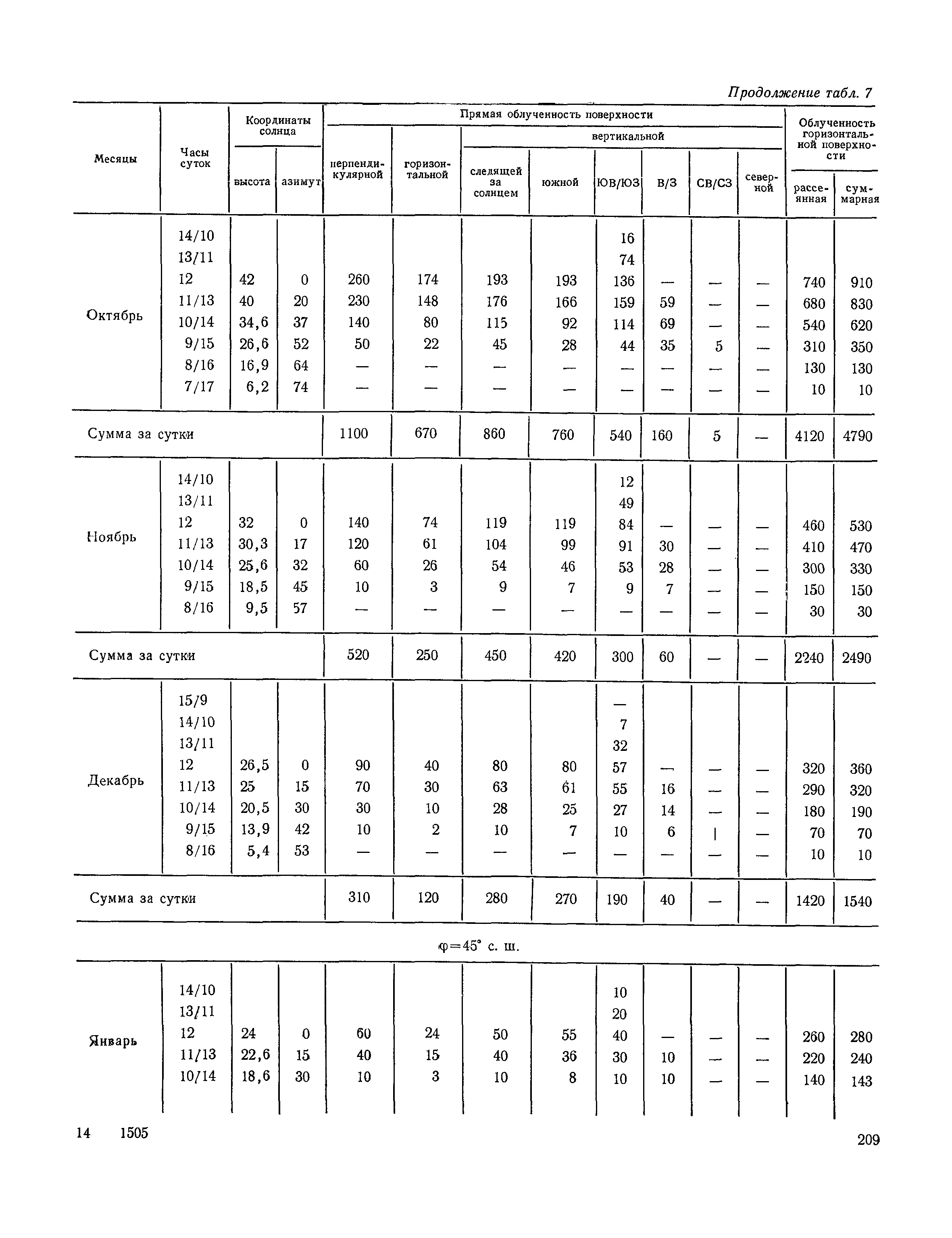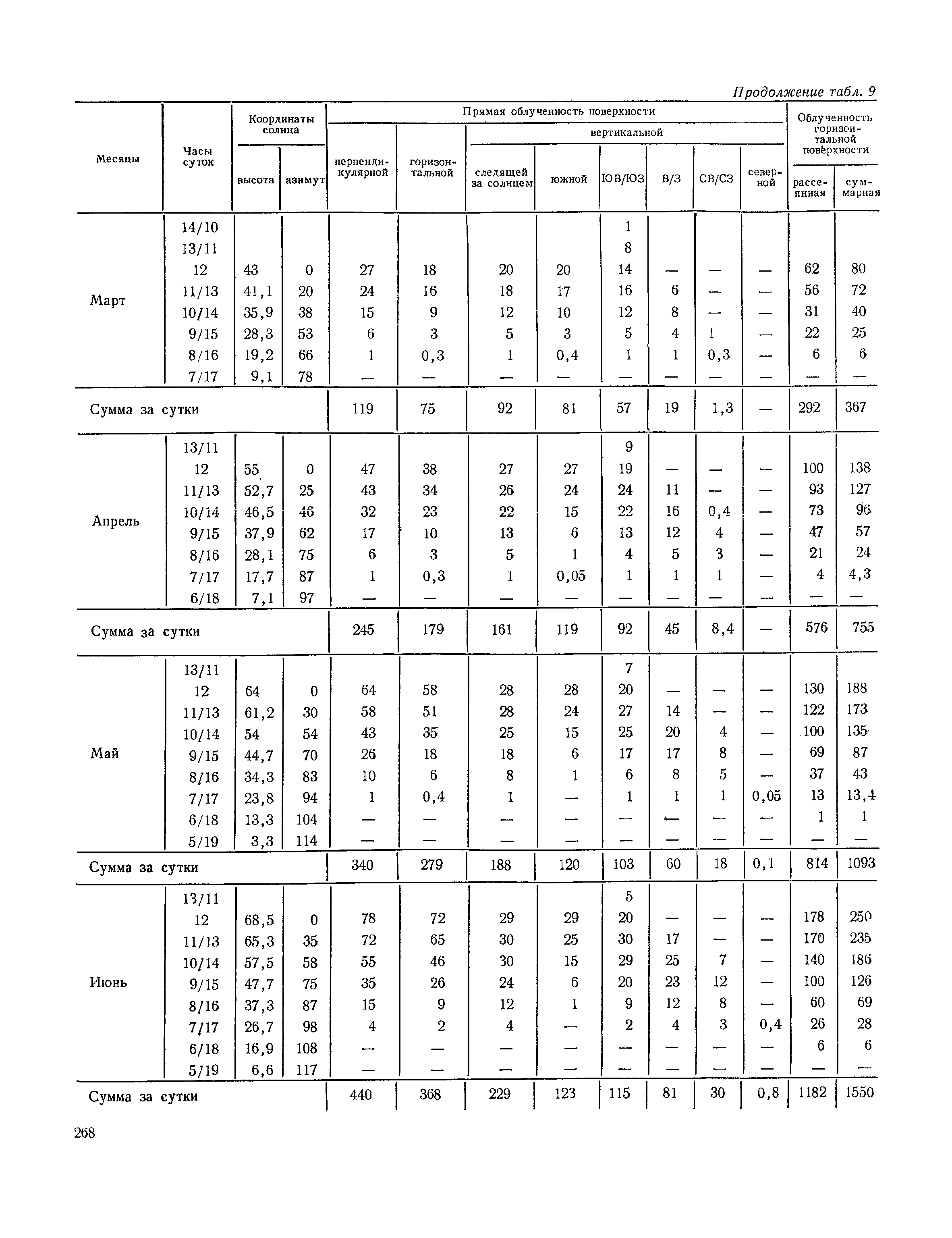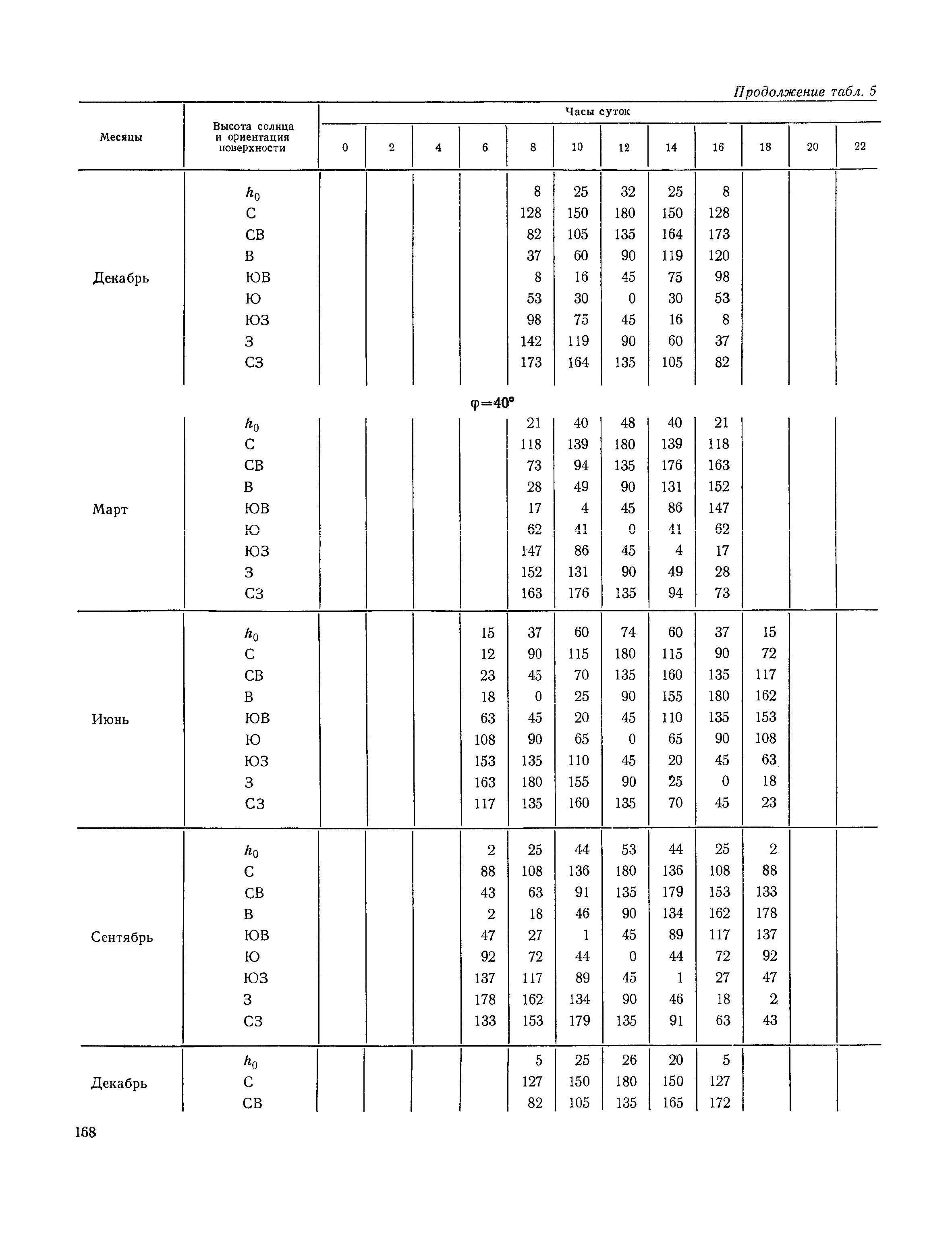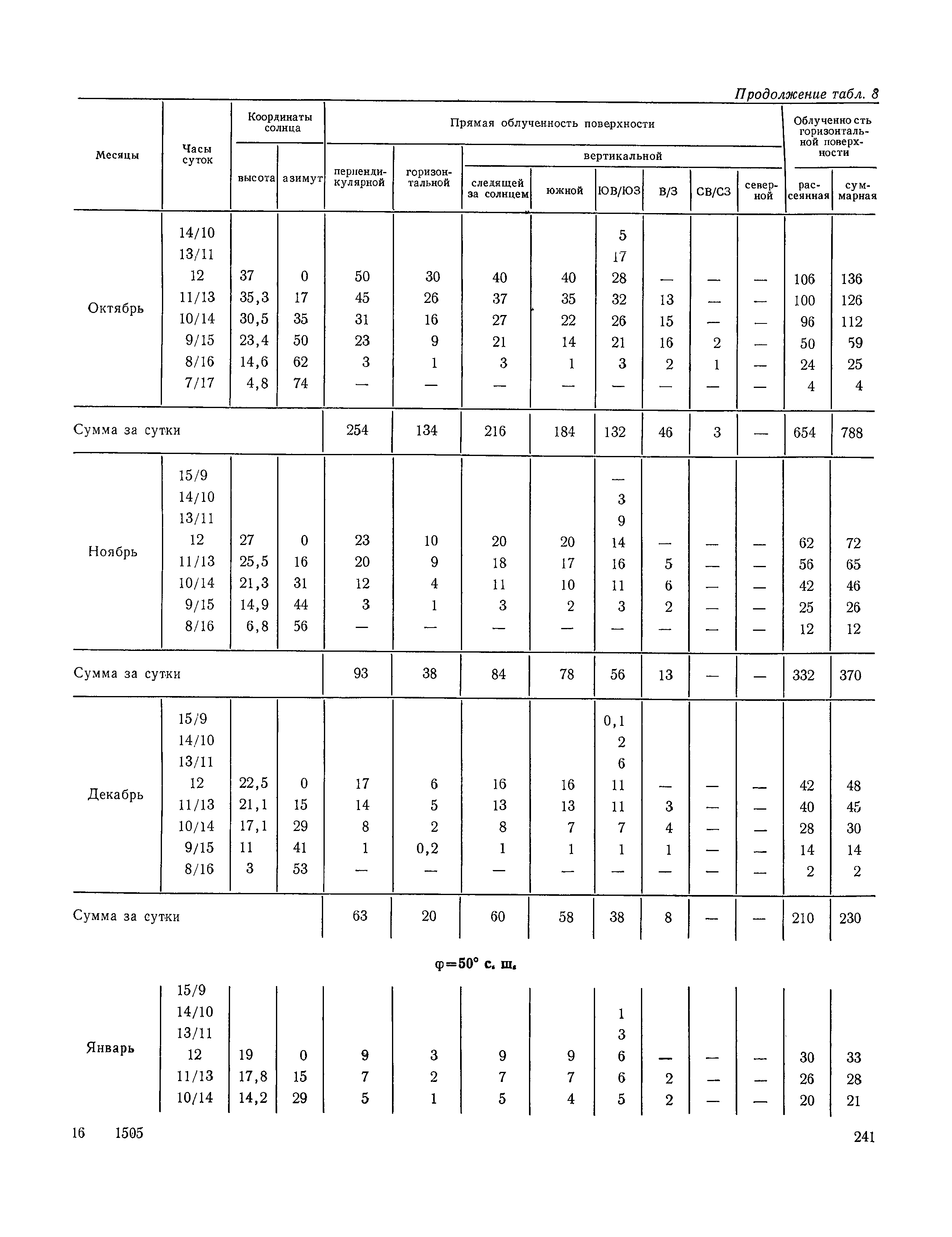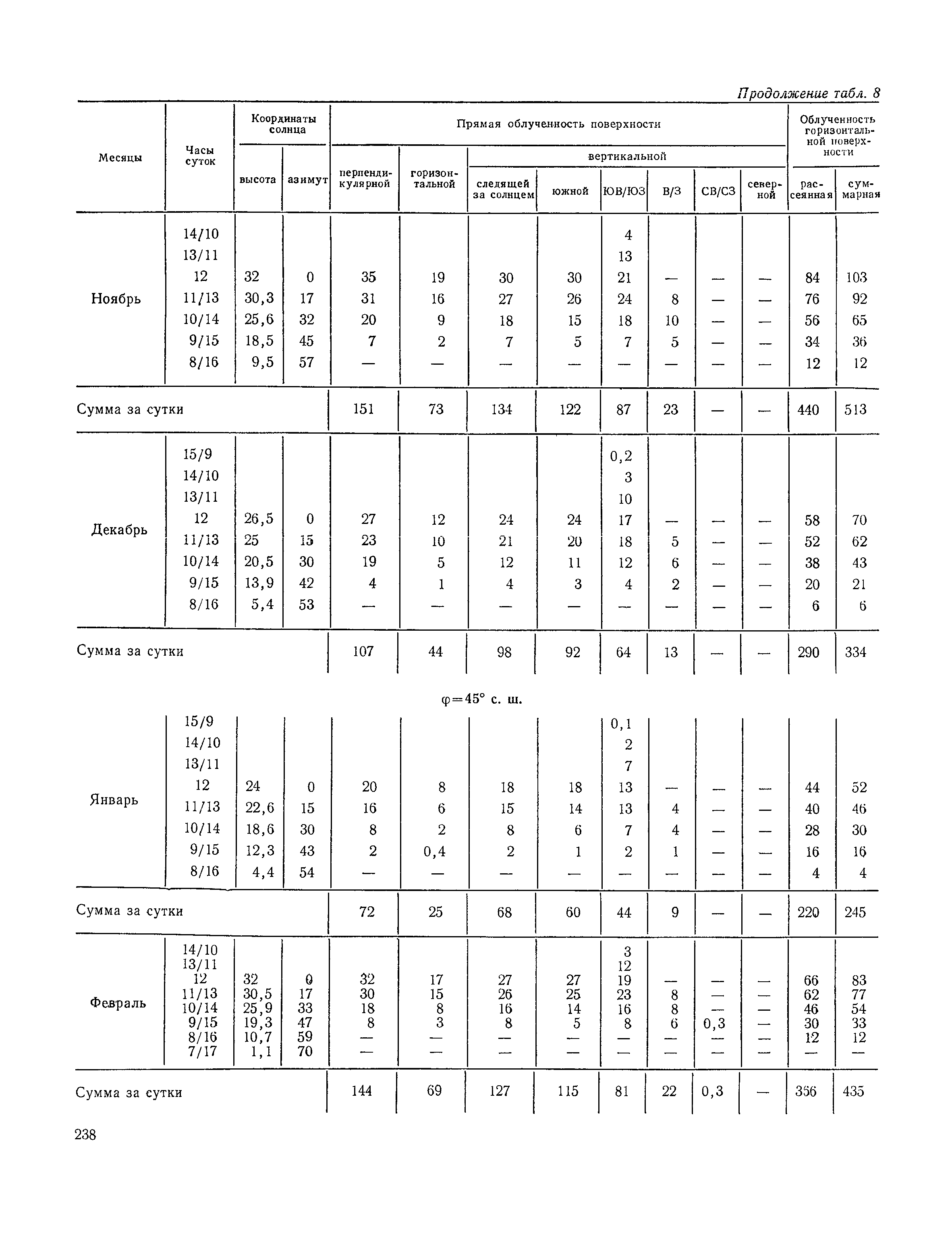 Руководство по строительной климатологии (пособие по проектированию)| Статус: | привязан к недействующему документу | | Название рус.: | Руководство по строительной климатологии (пособие по проектированию) | | Дата добавления в базу: | 01.01.2021 | | Дата актуализации: | 01.01.2021 | | Область применения: | Руководство по строительной климатологии содержит основные климатические показатели, которые могут быть использованы при разработке проектов планировки и застройки населенных мест, проектировании генеральных планов промышленных предприятий, составлении климатического паспорта городов и строительных площадок, при проектировании новых и реконструкции действующих предприятий, зданий и сооружений различного типа. Материалы Руководства используются при расчетах строительных конструкций зданий и сооружений различного назначения, при расчетах теплопотерь и теплопоступлений, a также отопления и вентиляции, при оценке режима увлажнения зданий и определении условий инсоляции и светового режима в различных климатических условиях Советского Союза. Руководство предназначено для архитекторов, инженеров строительных специальностей и научных работников | | Оглавление: | 1. Общие положения 2. Солнечная радиация А. Тепловая радиация Б. Видимая радиация В. Ультрафиолетовая радиация 3. Температура наружного воздуха 4. Атмосферные осадки, выпадающие на вертикальные поверхности ограждений 5. Скорость ветра 6. Оценка планировочных решений с учетом ветрового режима Таблица 1. Суммарная (прямая/рассеянная) радиация, поступающая на вертикальные поверхности различной ориентации при безоблачном небе в зависимости от широты и времени суток Таблица 2. Суммарная (прямая/рассеянная) радиация, поступающая на горизонтальную поверхность при безоблачном небе в зависимости от широты и времени суток Таблица 3. Суммарная солнечная радиация, поступающая на вертикальные поверхности различной ориентации при действительных условиях облачности и прозрачности атмосферы Таблица 4. Прямая, рассеянная и суммарная освещенность горизонтальных и вертикальных поверхностей в зависимости от широты и времени суток Таблица 5. Высота солнца и азимут нормали к вертикальной поверхности, отсчитанной от вертикали солнца для различных широт Таблица 6. Ультрафиолетовая (области А + В) облученность Таблица 7. Ультрафиолетовая (области В) облученность Таблица 8. Эритемная (области А + В) облученность Таблица 9. Эритемная (области В) облученность Таблица 10. Бактерицидная облученность Таблица 11. Средняя за январь температура воздуха, повторяемость, и скорость ветров различных направлений по отдельным пунктам СССР Таблица 12. Количество осадков, выпадающих под действием ветра на вертикальную поверхность наветренной ориентации по отдельным пунктам СССР Таблица 13. Средняя скорость ветра на высоте 10 м при низких температурах наружного воздуха Таблица 14. Планировочные схемы первой группы Таблица 15. Планировочные схемы второй группы | | Разработан: | НИИСФ