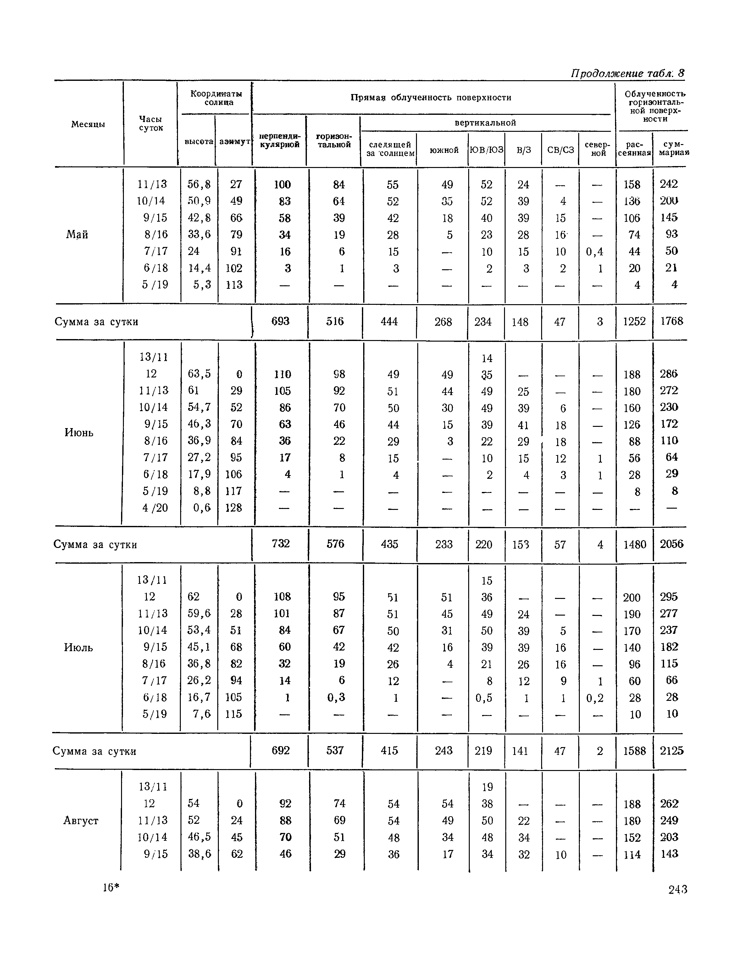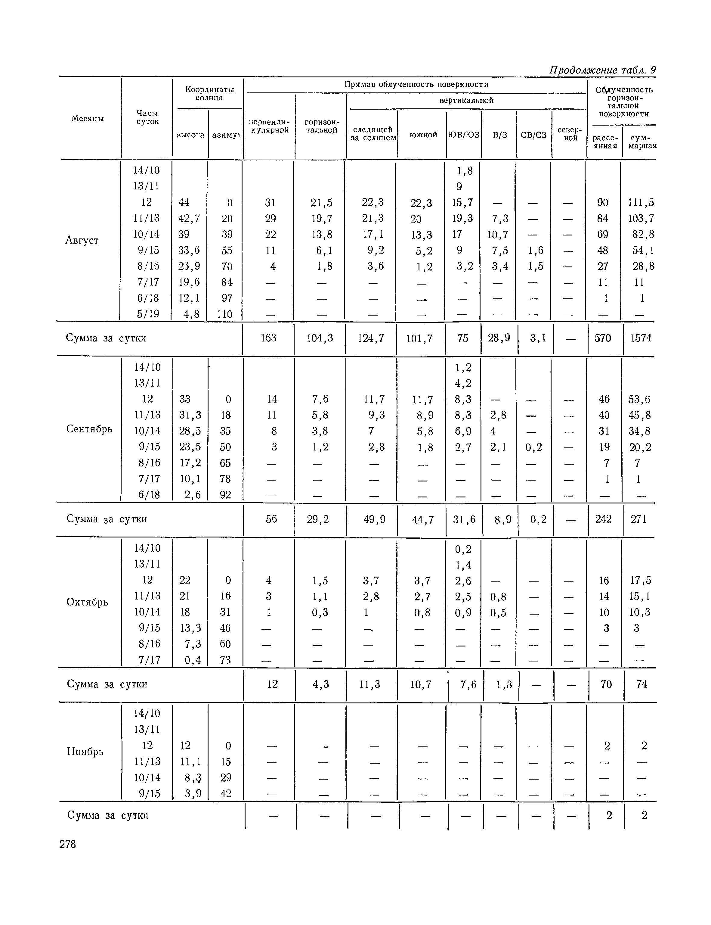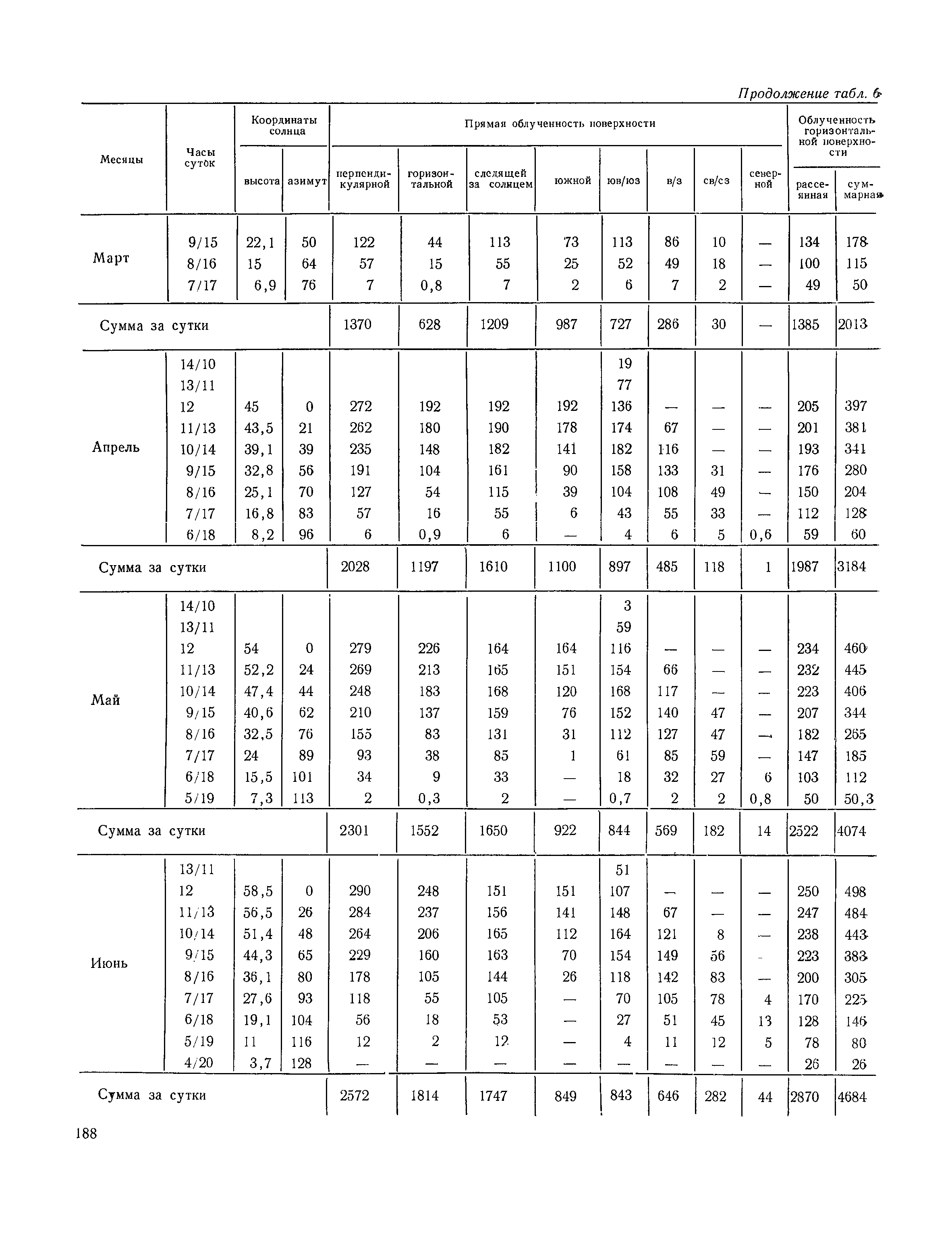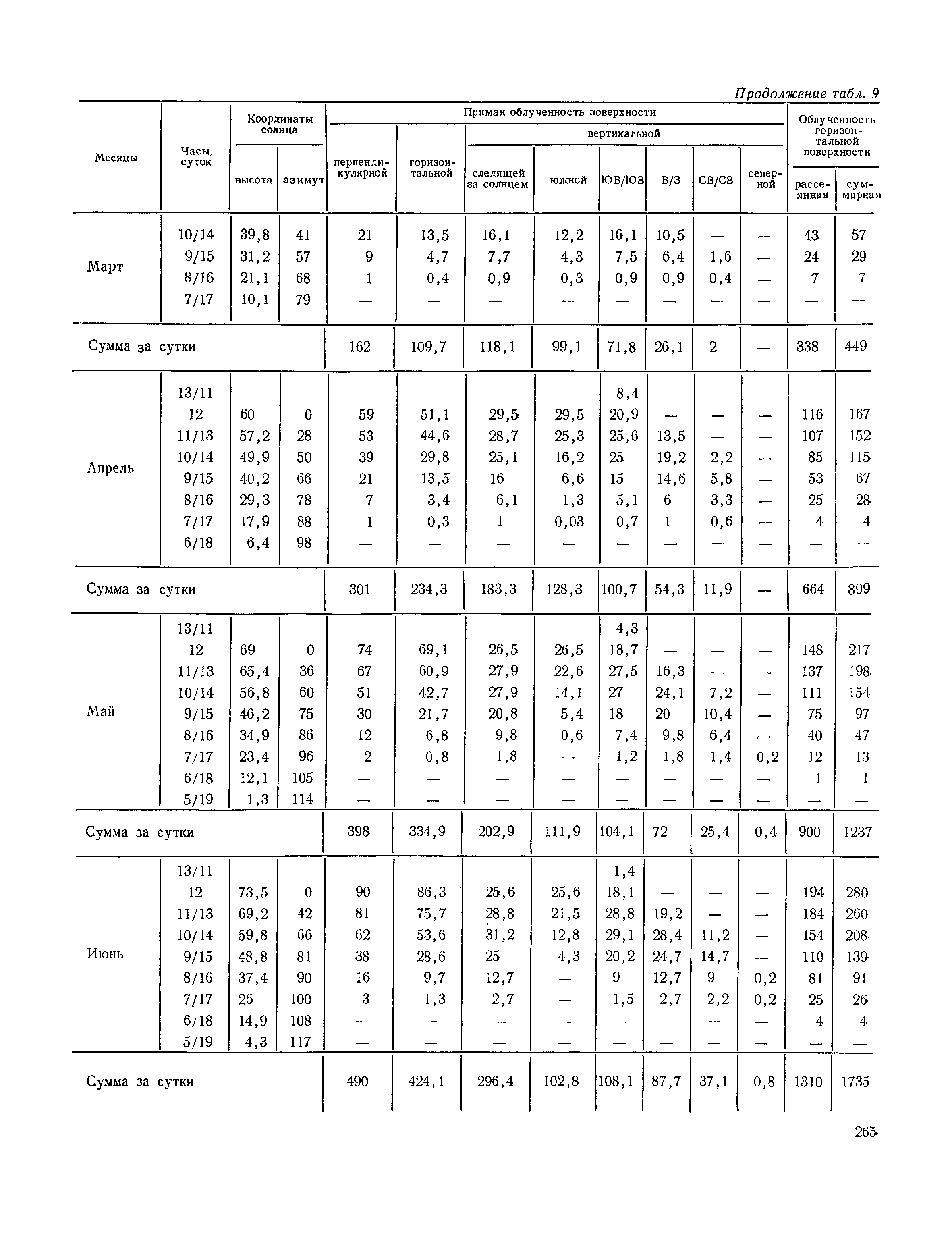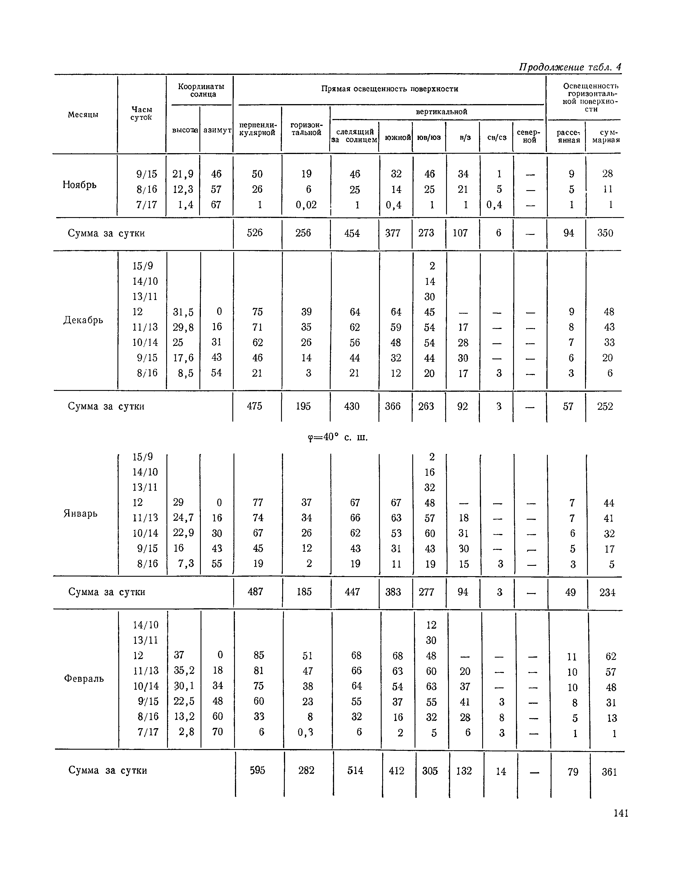 Руководство по строительной климатологии (пособие по проектированию)| Статус: | привязан к недействующему документу | | Название рус.: | Руководство по строительной климатологии (пособие по проектированию) | | Дата добавления в базу: | 01.01.2021 | | Дата актуализации: | 01.01.2021 | | Область применения: | Руководство по строительной климатологии содержит основные климатические показатели, которые могут быть использованы при разработке проектов планировки и застройки населенных мест, проектировании генеральных планов промышленных предприятий, составлении климатического паспорта городов и строительных площадок, при проектировании новых и реконструкции действующих предприятий, зданий и сооружений различного типа. Материалы Руководства используются при расчетах строительных конструкций зданий и сооружений различного назначения, при расчетах теплопотерь и теплопоступлений, a также отопления и вентиляции, при оценке режима увлажнения зданий и определении условий инсоляции и светового режима в различных климатических условиях Советского Союза. Руководство предназначено для архитекторов, инженеров строительных специальностей и научных работников | | Оглавление: | 1. Общие положения 2. Солнечная радиация А. Тепловая радиация Б. Видимая радиация В. Ультрафиолетовая радиация 3. Температура наружного воздуха 4. Атмосферные осадки, выпадающие на вертикальные поверхности ограждений 5. Скорость ветра 6. Оценка планировочных решений с учетом ветрового режима Таблица 1. Суммарная (прямая/рассеянная) радиация, поступающая на вертикальные поверхности различной ориентации при безоблачном небе в зависимости от широты и времени суток Таблица 2. Суммарная (прямая/рассеянная) радиация, поступающая на горизонтальную поверхность при безоблачном небе в зависимости от широты и времени суток Таблица 3. Суммарная солнечная радиация, поступающая на вертикальные поверхности различной ориентации при действительных условиях облачности и прозрачности атмосферы Таблица 4. Прямая, рассеянная и суммарная освещенность горизонтальных и вертикальных поверхностей в зависимости от широты и времени суток Таблица 5. Высота солнца и азимут нормали к вертикальной поверхности, отсчитанной от вертикали солнца для различных широт Таблица 6. Ультрафиолетовая (области А + В) облученность Таблица 7. Ультрафиолетовая (области В) облученность Таблица 8. Эритемная (области А + В) облученность Таблица 9. Эритемная (области В) облученность Таблица 10. Бактерицидная облученность Таблица 11. Средняя за январь температура воздуха, повторяемость, и скорость ветров различных направлений по отдельным пунктам СССР Таблица 12. Количество осадков, выпадающих под действием ветра на вертикальную поверхность наветренной ориентации по отдельным пунктам СССР Таблица 13. Средняя скорость ветра на высоте 10 м при низких температурах наружного воздуха Таблица 14. Планировочные схемы первой группы Таблица 15. Планировочные схемы второй группы | | Разработан: | НИИСФ