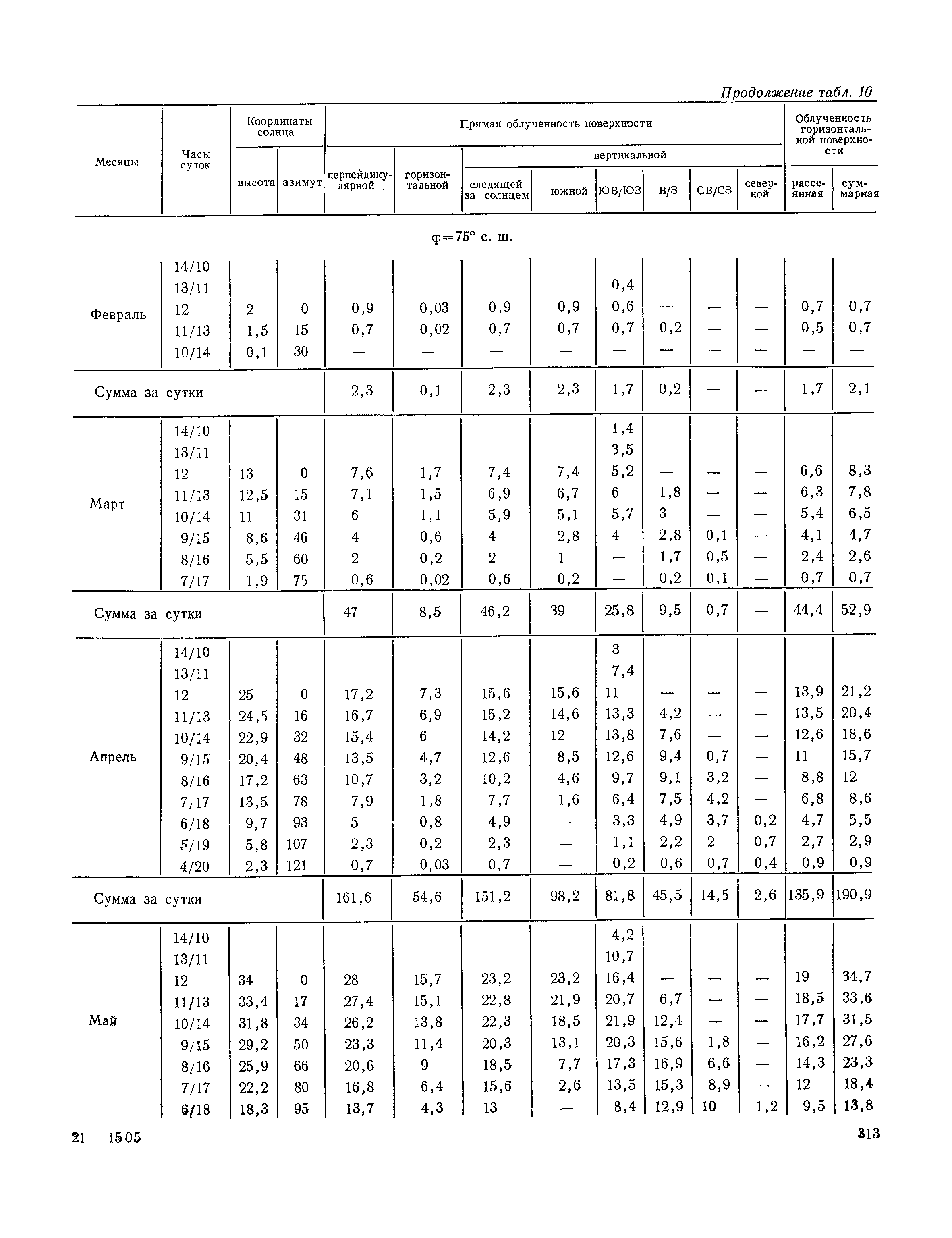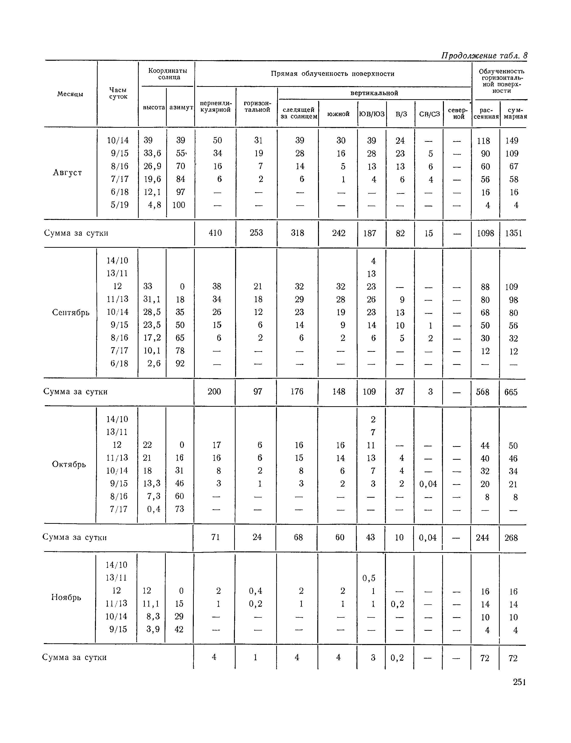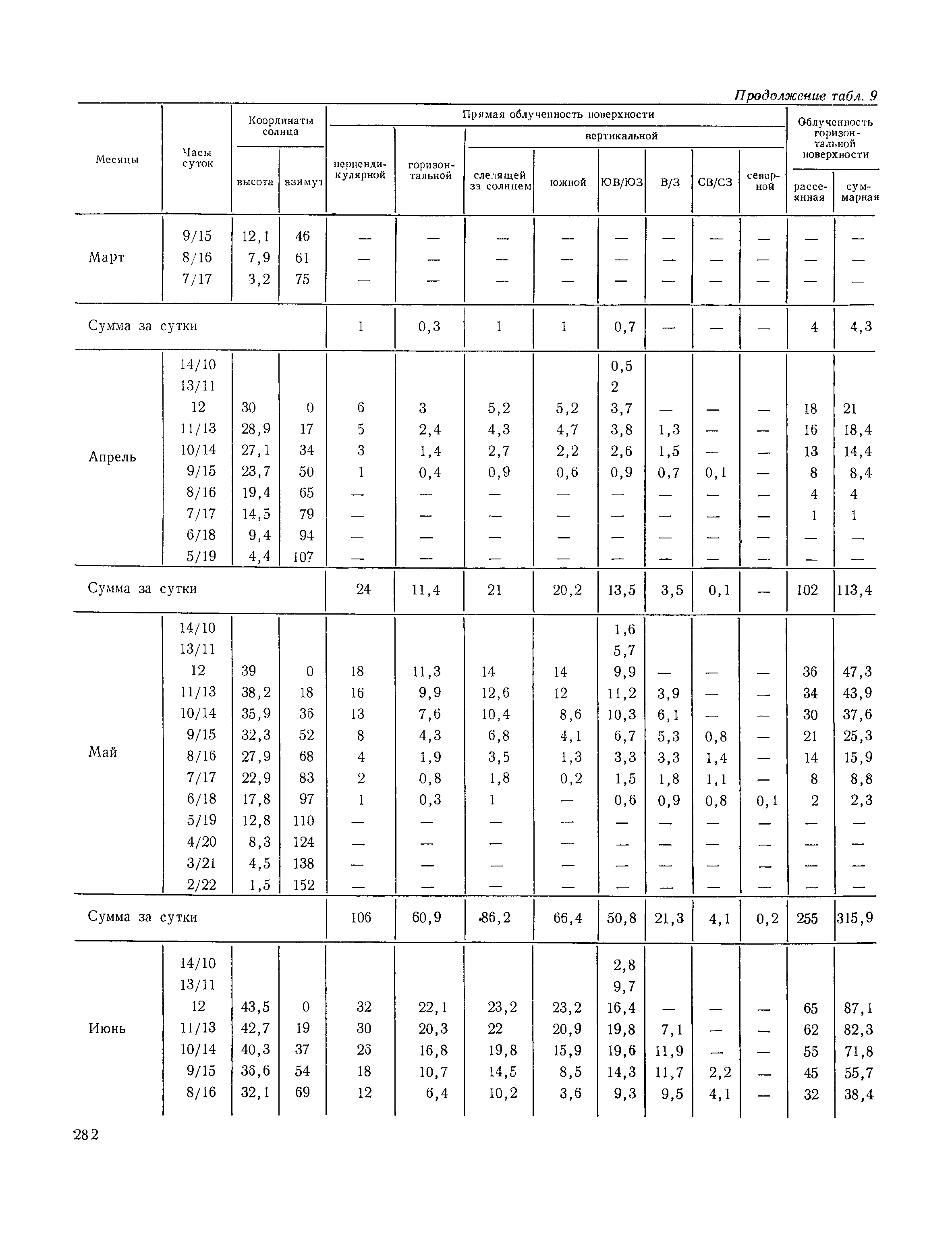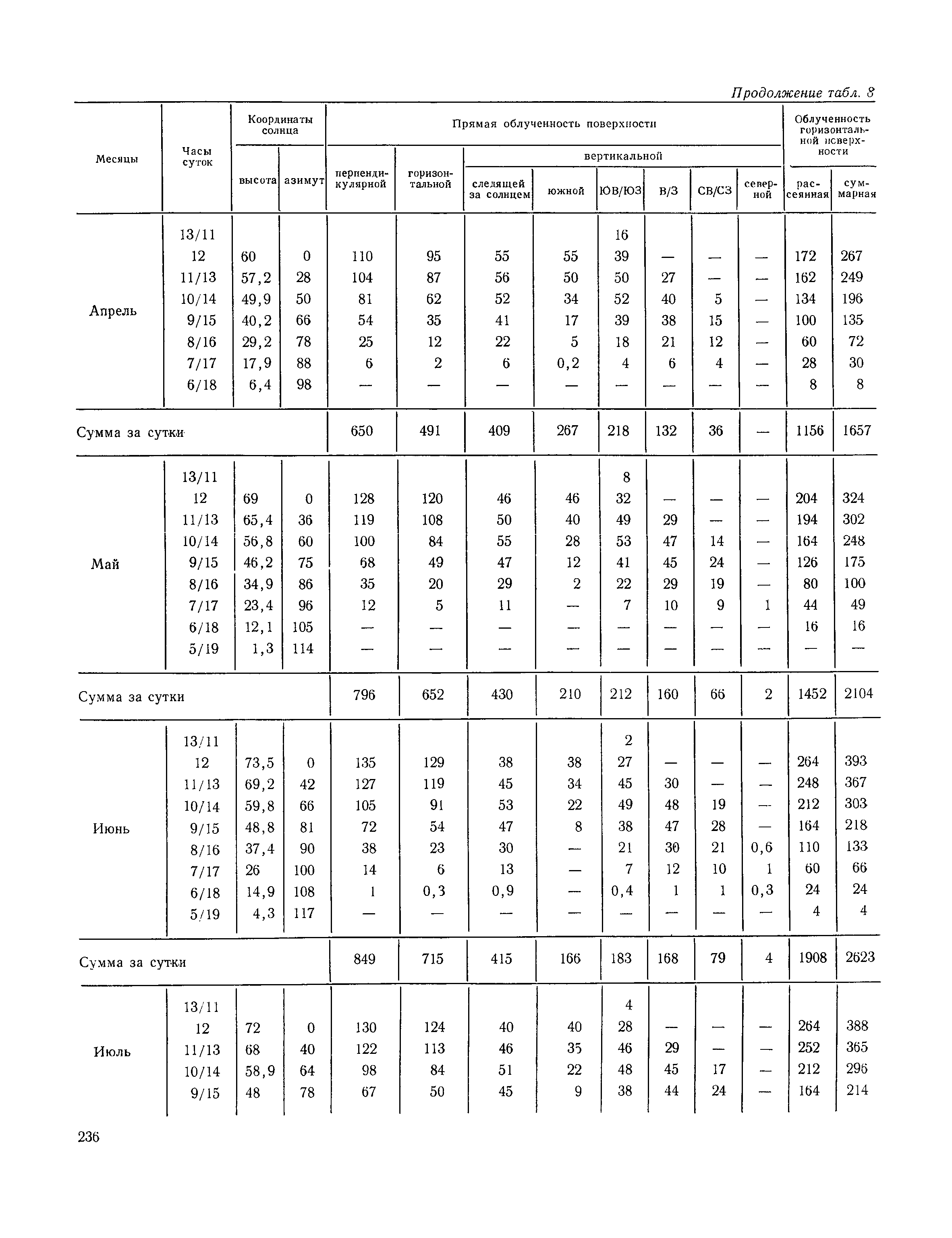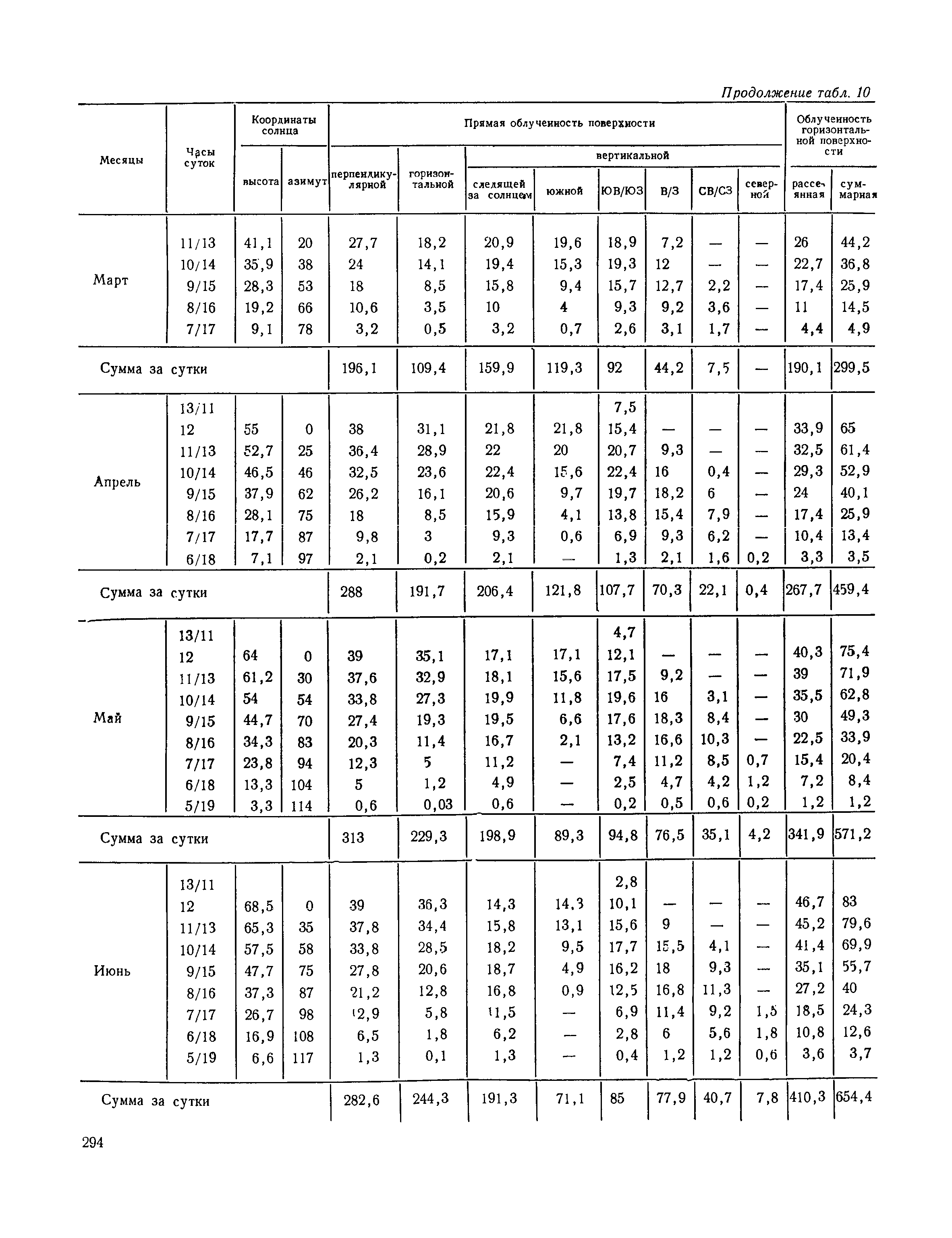 Руководство по строительной климатологии (пособие по проектированию)| Статус: | привязан к недействующему документу | | Название рус.: | Руководство по строительной климатологии (пособие по проектированию) | | Дата добавления в базу: | 01.01.2021 | | Дата актуализации: | 01.01.2021 | | Область применения: | Руководство по строительной климатологии содержит основные климатические показатели, которые могут быть использованы при разработке проектов планировки и застройки населенных мест, проектировании генеральных планов промышленных предприятий, составлении климатического паспорта городов и строительных площадок, при проектировании новых и реконструкции действующих предприятий, зданий и сооружений различного типа. Материалы Руководства используются при расчетах строительных конструкций зданий и сооружений различного назначения, при расчетах теплопотерь и теплопоступлений, a также отопления и вентиляции, при оценке режима увлажнения зданий и определении условий инсоляции и светового режима в различных климатических условиях Советского Союза. Руководство предназначено для архитекторов, инженеров строительных специальностей и научных работников | | Оглавление: | 1. Общие положения 2. Солнечная радиация А. Тепловая радиация Б. Видимая радиация В. Ультрафиолетовая радиация 3. Температура наружного воздуха 4. Атмосферные осадки, выпадающие на вертикальные поверхности ограждений 5. Скорость ветра 6. Оценка планировочных решений с учетом ветрового режима Таблица 1. Суммарная (прямая/рассеянная) радиация, поступающая на вертикальные поверхности различной ориентации при безоблачном небе в зависимости от широты и времени суток Таблица 2. Суммарная (прямая/рассеянная) радиация, поступающая на горизонтальную поверхность при безоблачном небе в зависимости от широты и времени суток Таблица 3. Суммарная солнечная радиация, поступающая на вертикальные поверхности различной ориентации при действительных условиях облачности и прозрачности атмосферы Таблица 4. Прямая, рассеянная и суммарная освещенность горизонтальных и вертикальных поверхностей в зависимости от широты и времени суток Таблица 5. Высота солнца и азимут нормали к вертикальной поверхности, отсчитанной от вертикали солнца для различных широт Таблица 6. Ультрафиолетовая (области А + В) облученность Таблица 7. Ультрафиолетовая (области В) облученность Таблица 8. Эритемная (области А + В) облученность Таблица 9. Эритемная (области В) облученность Таблица 10. Бактерицидная облученность Таблица 11. Средняя за январь температура воздуха, повторяемость, и скорость ветров различных направлений по отдельным пунктам СССР Таблица 12. Количество осадков, выпадающих под действием ветра на вертикальную поверхность наветренной ориентации по отдельным пунктам СССР Таблица 13. Средняя скорость ветра на высоте 10 м при низких температурах наружного воздуха Таблица 14. Планировочные схемы первой группы Таблица 15. Планировочные схемы второй группы | | Разработан: | НИИСФ
