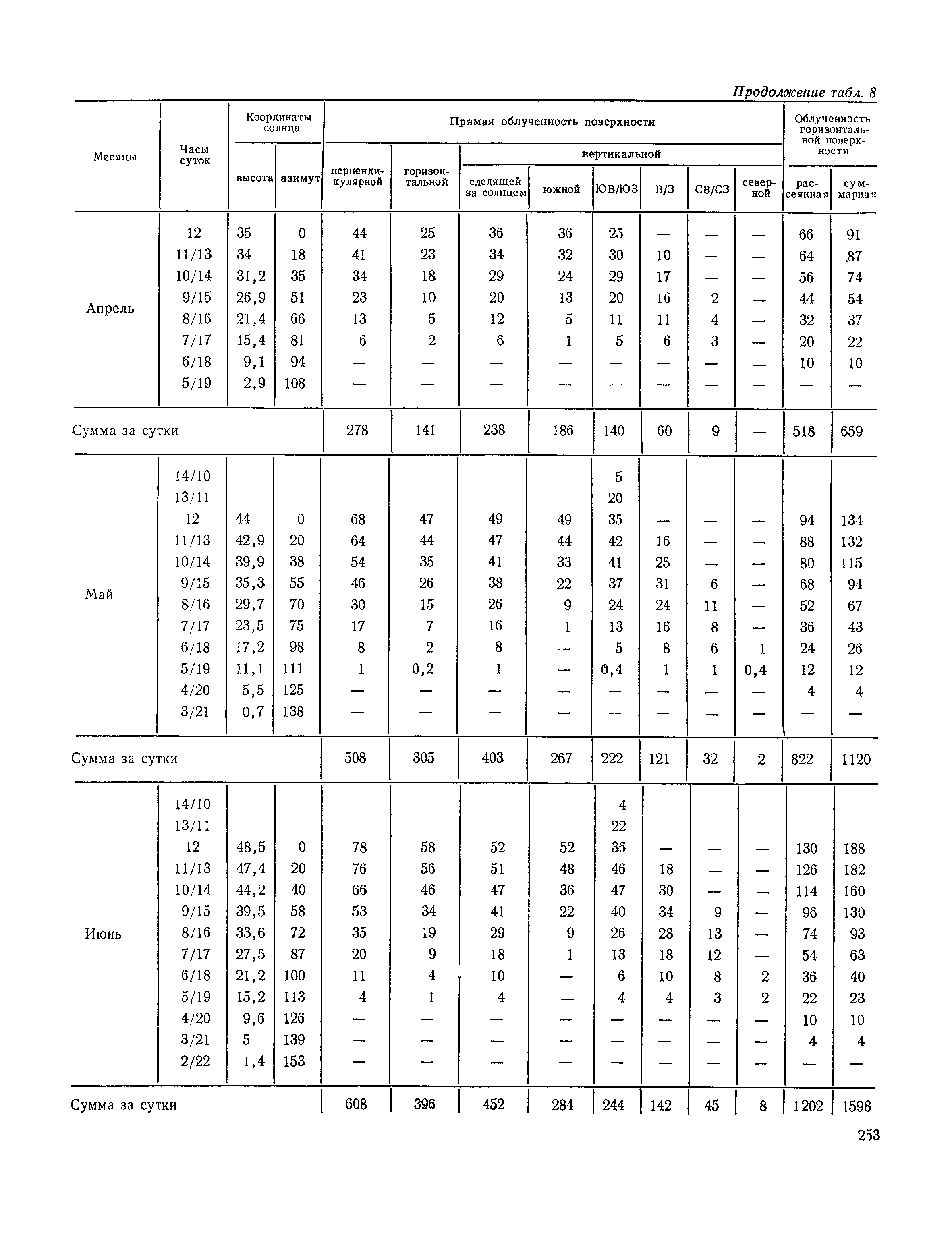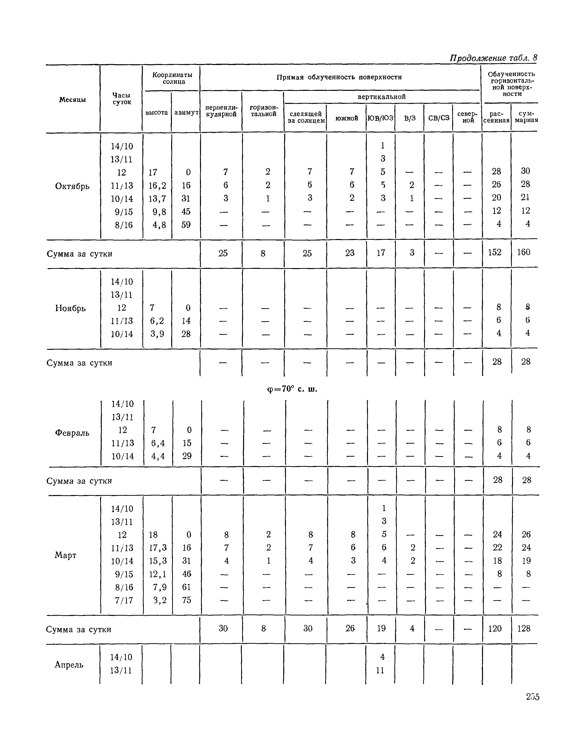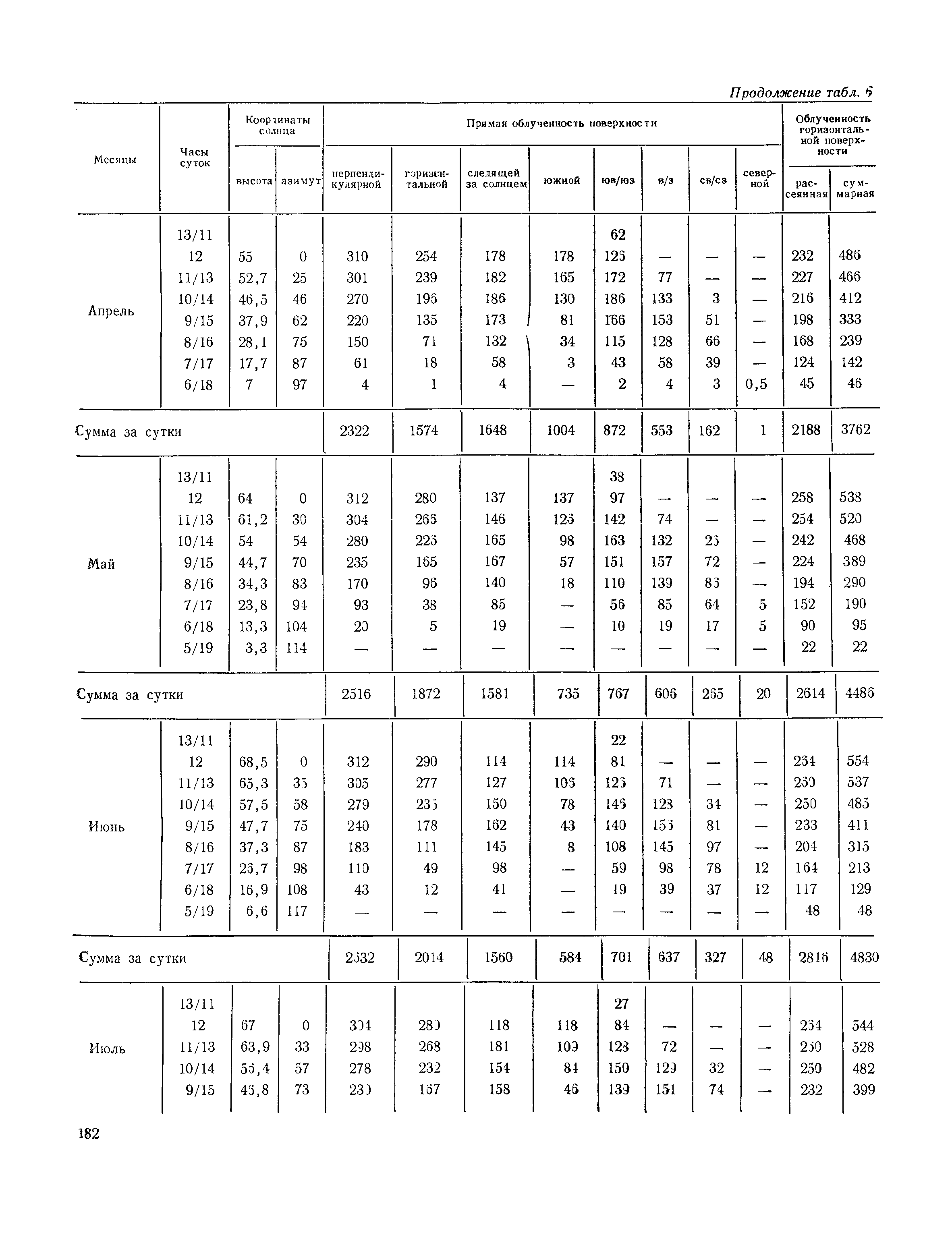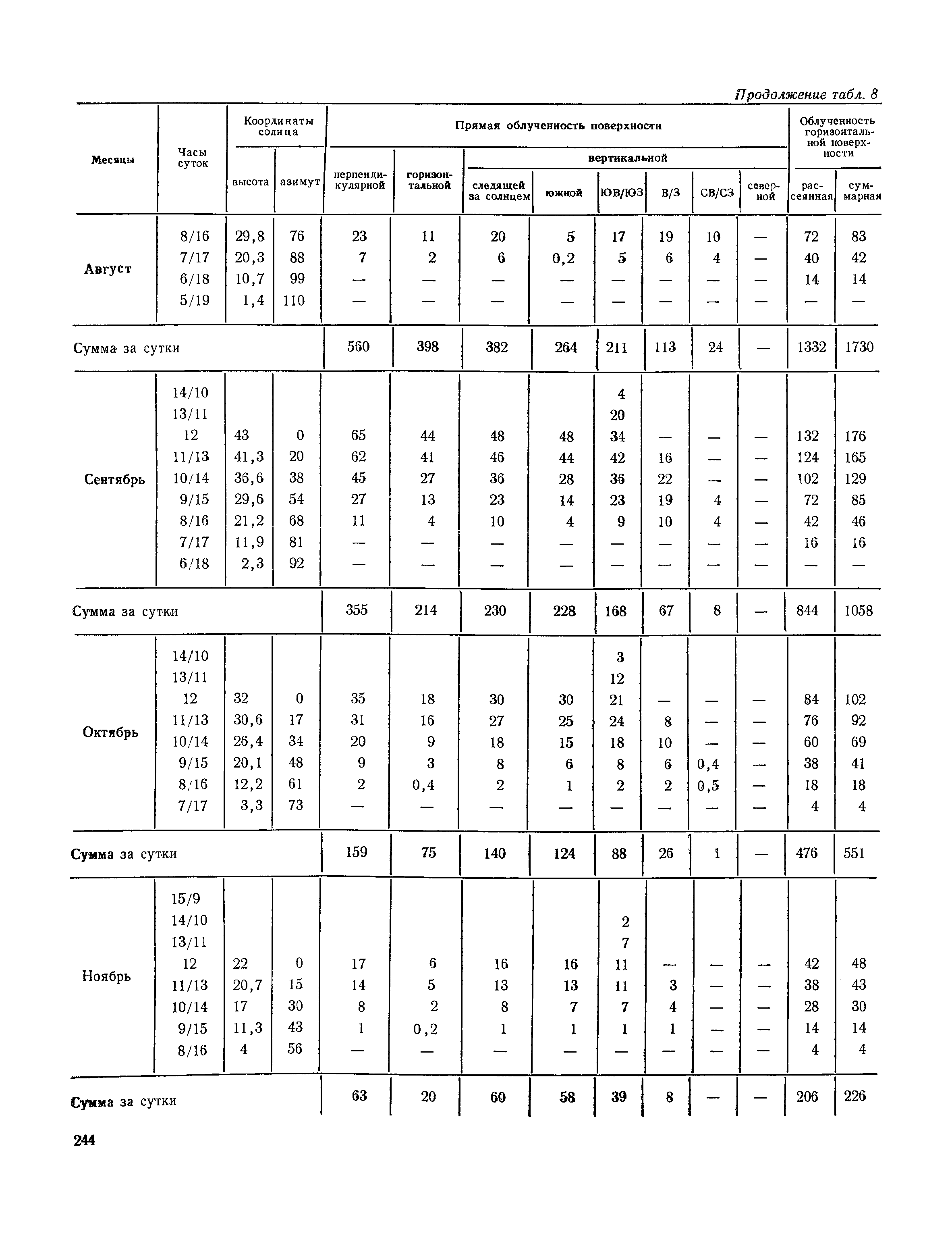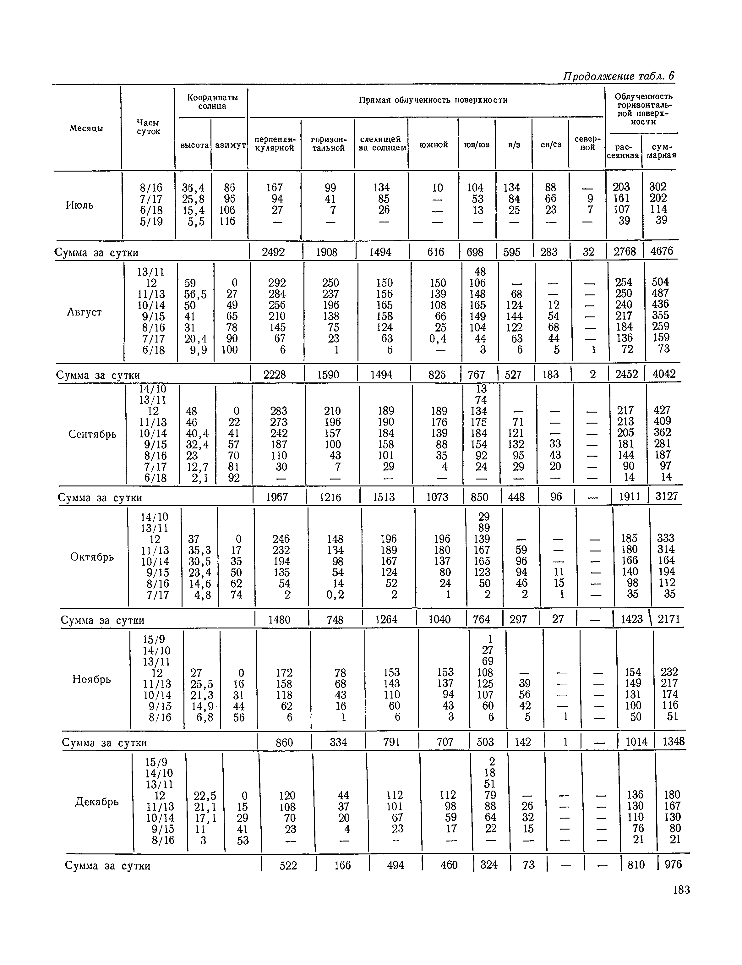 Руководство по строительной климатологии (пособие по проектированию)| Статус: | привязан к недействующему документу | | Название рус.: | Руководство по строительной климатологии (пособие по проектированию) | | Дата добавления в базу: | 01.01.2021 | | Дата актуализации: | 01.01.2021 | | Область применения: | Руководство по строительной климатологии содержит основные климатические показатели, которые могут быть использованы при разработке проектов планировки и застройки населенных мест, проектировании генеральных планов промышленных предприятий, составлении климатического паспорта городов и строительных площадок, при проектировании новых и реконструкции действующих предприятий, зданий и сооружений различного типа. Материалы Руководства используются при расчетах строительных конструкций зданий и сооружений различного назначения, при расчетах теплопотерь и теплопоступлений, a также отопления и вентиляции, при оценке режима увлажнения зданий и определении условий инсоляции и светового режима в различных климатических условиях Советского Союза. Руководство предназначено для архитекторов, инженеров строительных специальностей и научных работников | | Оглавление: | 1. Общие положения 2. Солнечная радиация А. Тепловая радиация Б. Видимая радиация В. Ультрафиолетовая радиация 3. Температура наружного воздуха 4. Атмосферные осадки, выпадающие на вертикальные поверхности ограждений 5. Скорость ветра 6. Оценка планировочных решений с учетом ветрового режима Таблица 1. Суммарная (прямая/рассеянная) радиация, поступающая на вертикальные поверхности различной ориентации при безоблачном небе в зависимости от широты и времени суток Таблица 2. Суммарная (прямая/рассеянная) радиация, поступающая на горизонтальную поверхность при безоблачном небе в зависимости от широты и времени суток Таблица 3. Суммарная солнечная радиация, поступающая на вертикальные поверхности различной ориентации при действительных условиях облачности и прозрачности атмосферы Таблица 4. Прямая, рассеянная и суммарная освещенность горизонтальных и вертикальных поверхностей в зависимости от широты и времени суток Таблица 5. Высота солнца и азимут нормали к вертикальной поверхности, отсчитанной от вертикали солнца для различных широт Таблица 6. Ультрафиолетовая (области А + В) облученность Таблица 7. Ультрафиолетовая (области В) облученность Таблица 8. Эритемная (области А + В) облученность Таблица 9. Эритемная (области В) облученность Таблица 10. Бактерицидная облученность Таблица 11. Средняя за январь температура воздуха, повторяемость, и скорость ветров различных направлений по отдельным пунктам СССР Таблица 12. Количество осадков, выпадающих под действием ветра на вертикальную поверхность наветренной ориентации по отдельным пунктам СССР Таблица 13. Средняя скорость ветра на высоте 10 м при низких температурах наружного воздуха Таблица 14. Планировочные схемы первой группы Таблица 15. Планировочные схемы второй группы | | Разработан: | НИИСФ