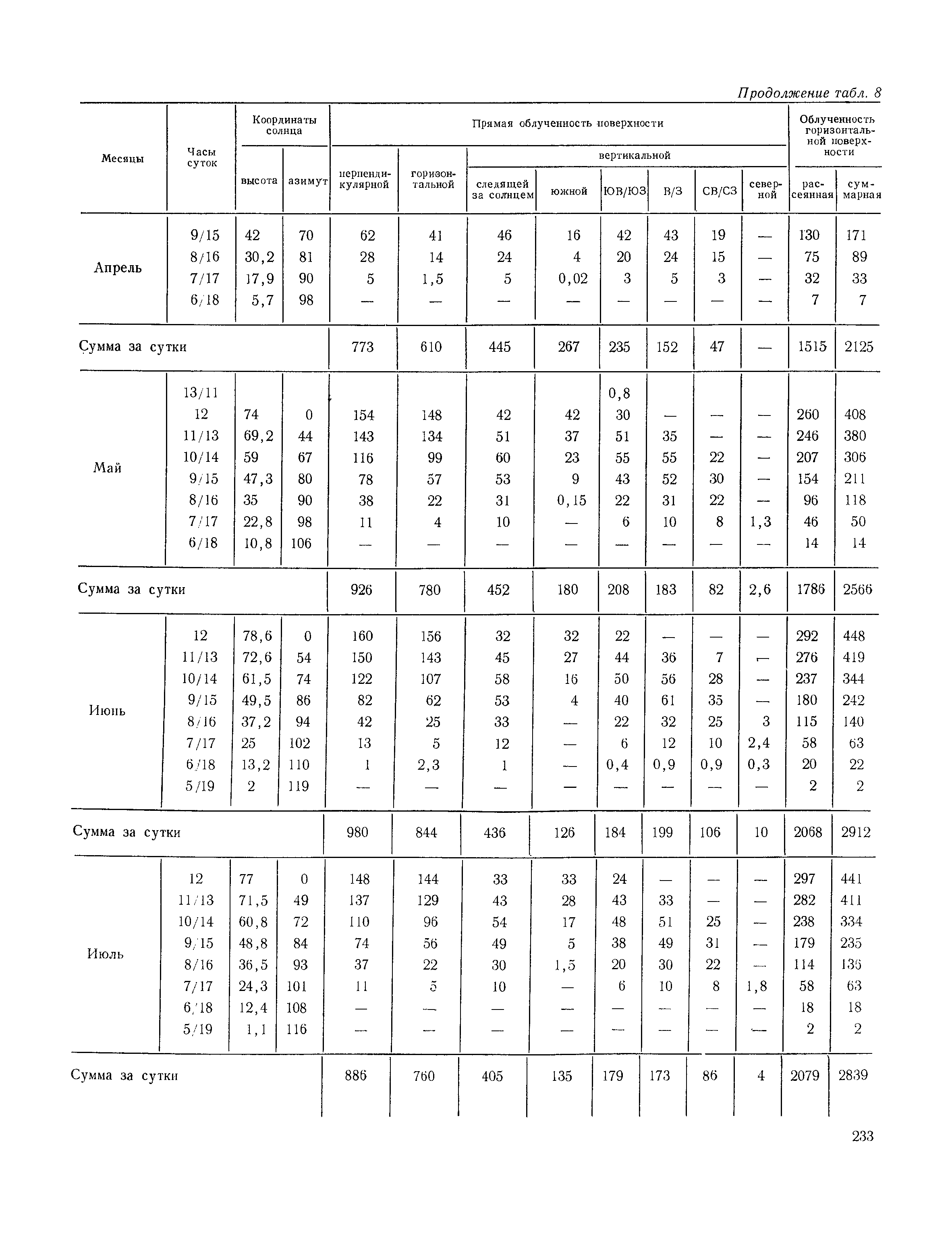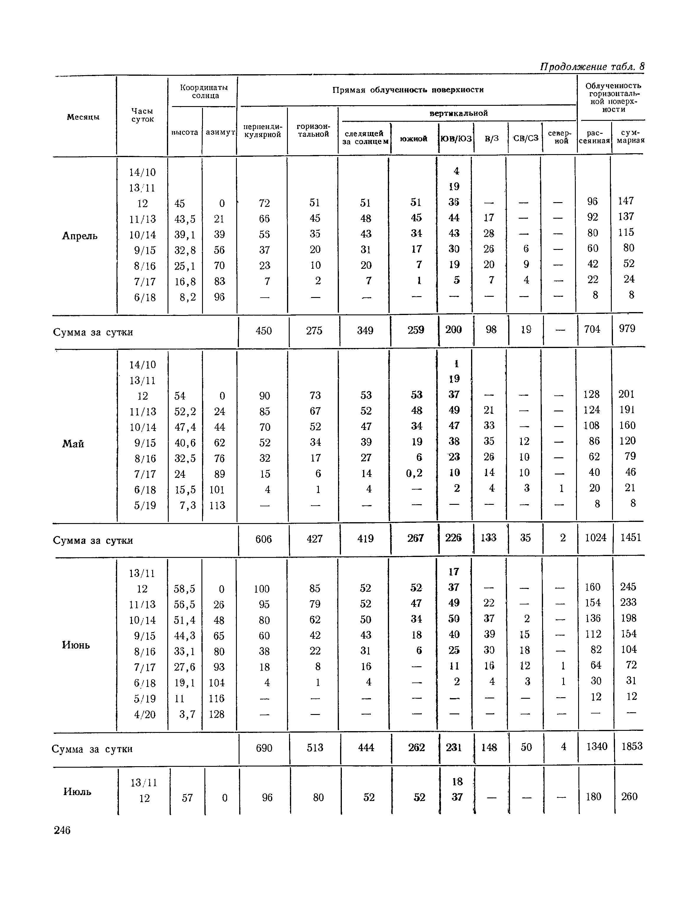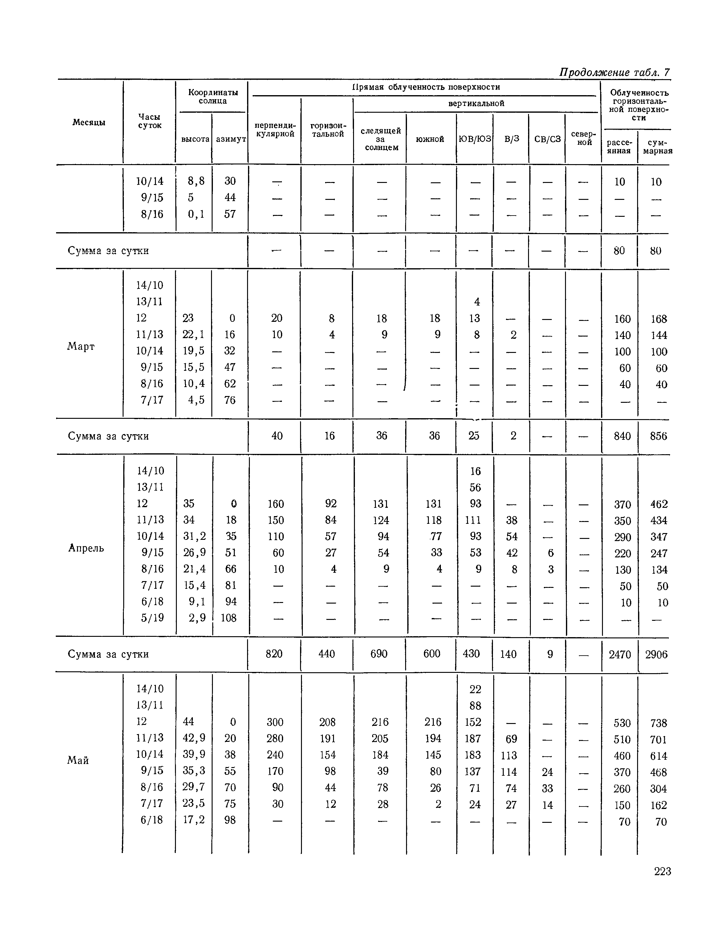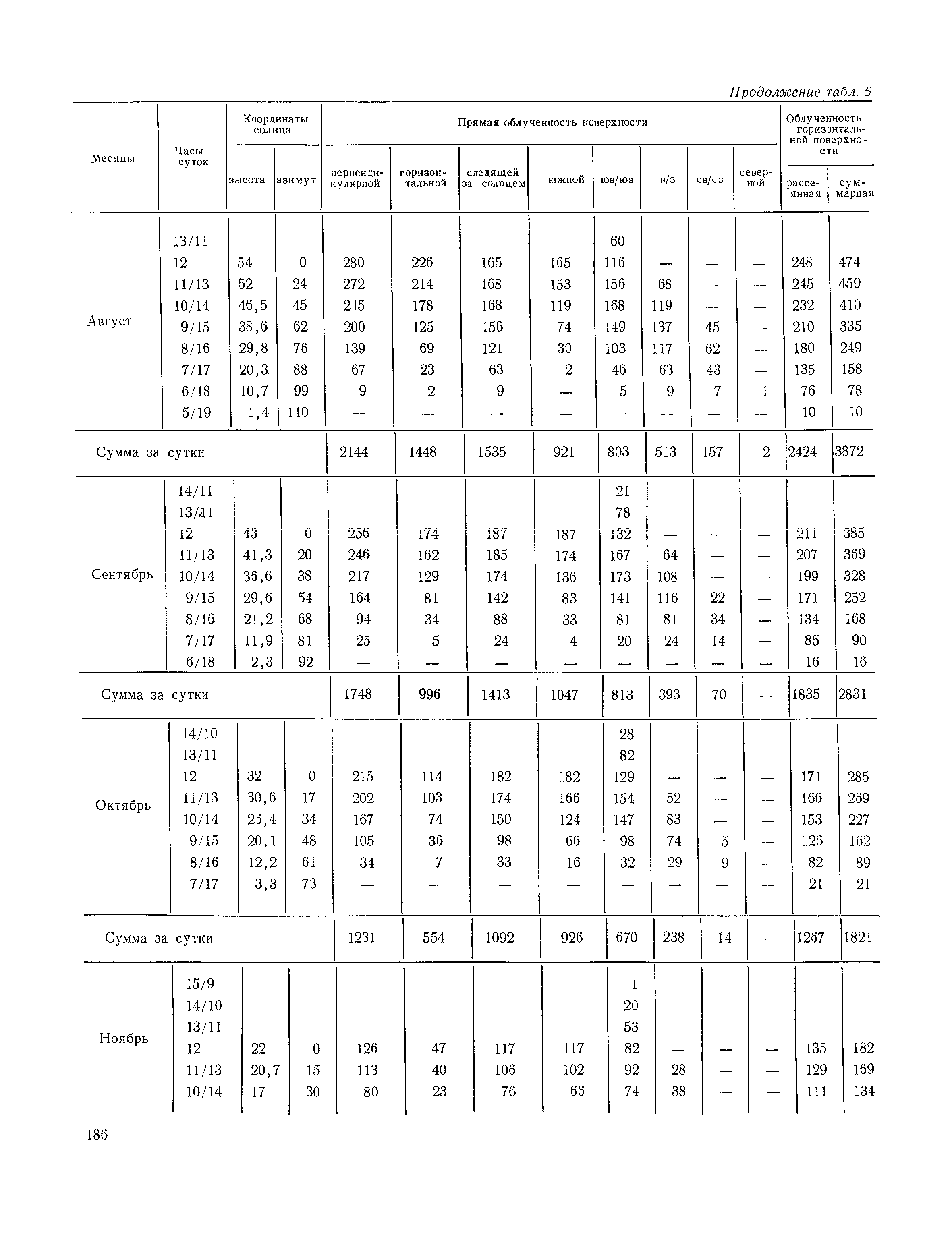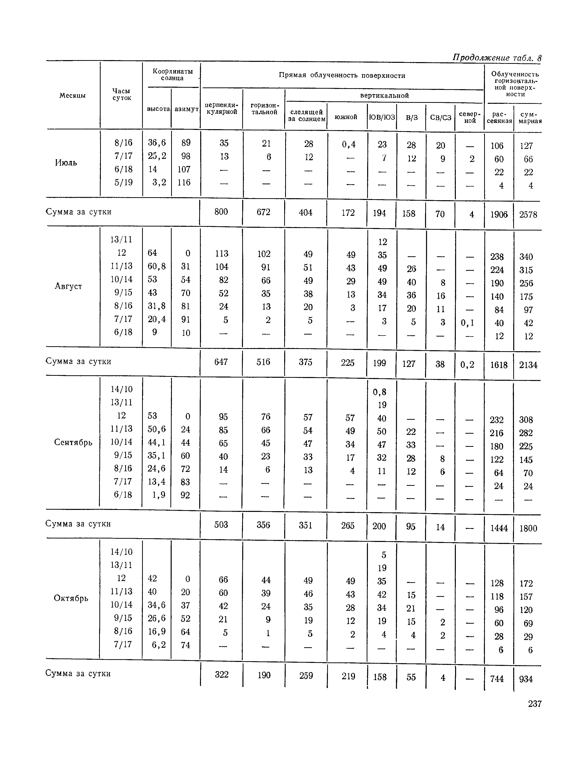 Руководство по строительной климатологии (пособие по проектированию)| Статус: | привязан к недействующему документу | | Название рус.: | Руководство по строительной климатологии (пособие по проектированию) | | Дата добавления в базу: | 01.01.2021 | | Дата актуализации: | 01.01.2021 | | Область применения: | Руководство по строительной климатологии содержит основные климатические показатели, которые могут быть использованы при разработке проектов планировки и застройки населенных мест, проектировании генеральных планов промышленных предприятий, составлении климатического паспорта городов и строительных площадок, при проектировании новых и реконструкции действующих предприятий, зданий и сооружений различного типа. Материалы Руководства используются при расчетах строительных конструкций зданий и сооружений различного назначения, при расчетах теплопотерь и теплопоступлений, a также отопления и вентиляции, при оценке режима увлажнения зданий и определении условий инсоляции и светового режима в различных климатических условиях Советского Союза. Руководство предназначено для архитекторов, инженеров строительных специальностей и научных работников | | Оглавление: | 1. Общие положения 2. Солнечная радиация А. Тепловая радиация Б. Видимая радиация В. Ультрафиолетовая радиация 3. Температура наружного воздуха 4. Атмосферные осадки, выпадающие на вертикальные поверхности ограждений 5. Скорость ветра 6. Оценка планировочных решений с учетом ветрового режима Таблица 1. Суммарная (прямая/рассеянная) радиация, поступающая на вертикальные поверхности различной ориентации при безоблачном небе в зависимости от широты и времени суток Таблица 2. Суммарная (прямая/рассеянная) радиация, поступающая на горизонтальную поверхность при безоблачном небе в зависимости от широты и времени суток Таблица 3. Суммарная солнечная радиация, поступающая на вертикальные поверхности различной ориентации при действительных условиях облачности и прозрачности атмосферы Таблица 4. Прямая, рассеянная и суммарная освещенность горизонтальных и вертикальных поверхностей в зависимости от широты и времени суток Таблица 5. Высота солнца и азимут нормали к вертикальной поверхности, отсчитанной от вертикали солнца для различных широт Таблица 6. Ультрафиолетовая (области А + В) облученность Таблица 7. Ультрафиолетовая (области В) облученность Таблица 8. Эритемная (области А + В) облученность Таблица 9. Эритемная (области В) облученность Таблица 10. Бактерицидная облученность Таблица 11. Средняя за январь температура воздуха, повторяемость, и скорость ветров различных направлений по отдельным пунктам СССР Таблица 12. Количество осадков, выпадающих под действием ветра на вертикальную поверхность наветренной ориентации по отдельным пунктам СССР Таблица 13. Средняя скорость ветра на высоте 10 м при низких температурах наружного воздуха Таблица 14. Планировочные схемы первой группы Таблица 15. Планировочные схемы второй группы | | Разработан: | НИИСФ