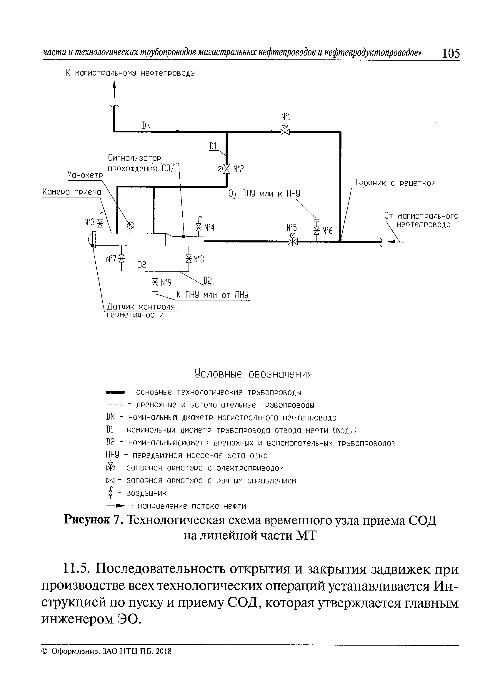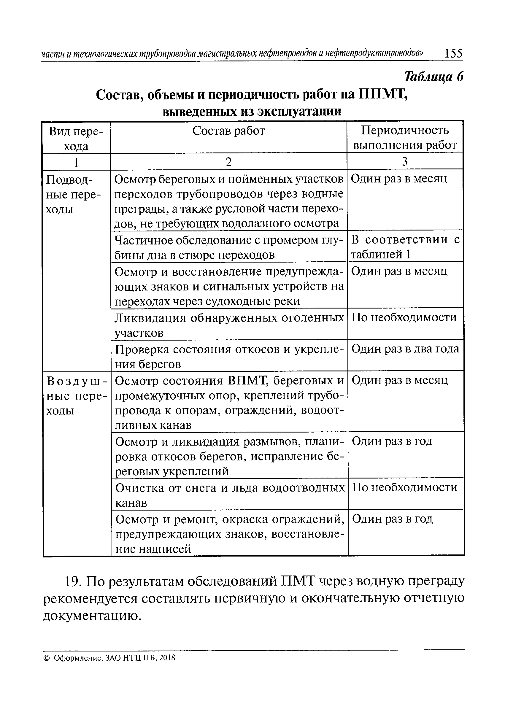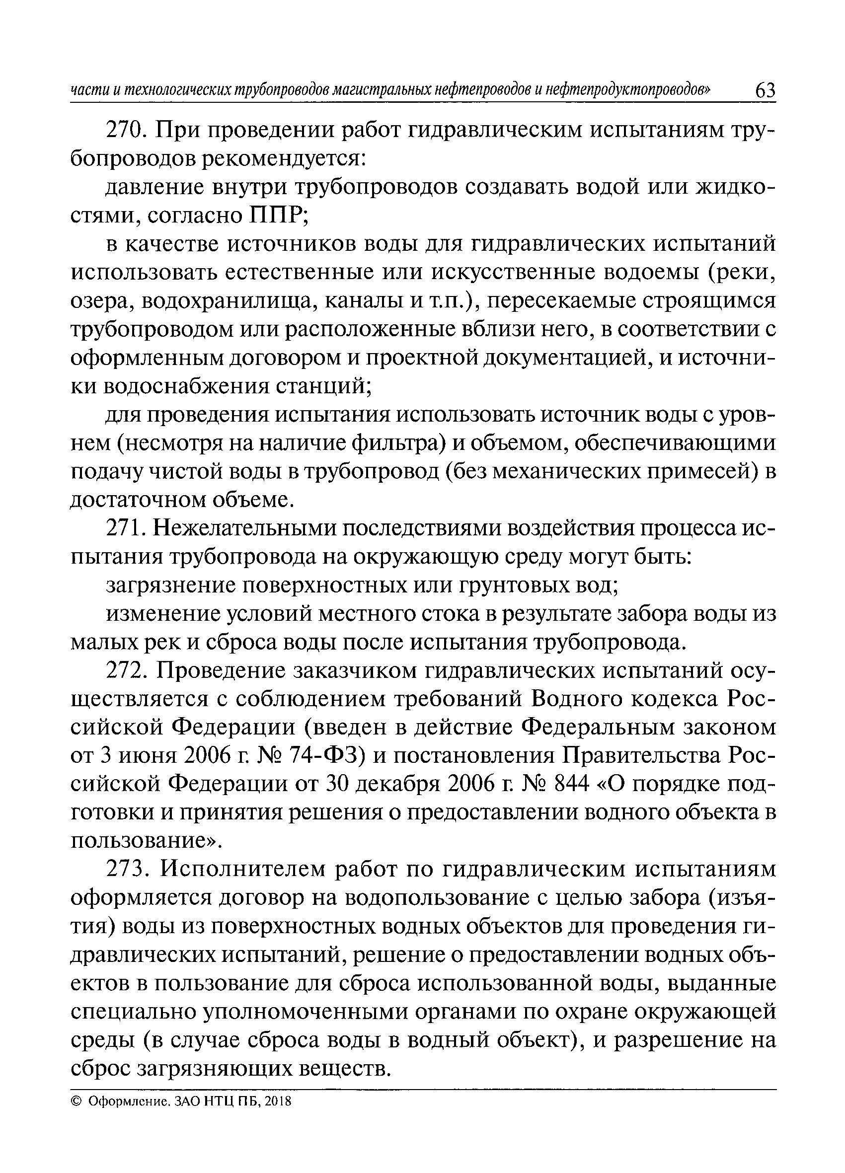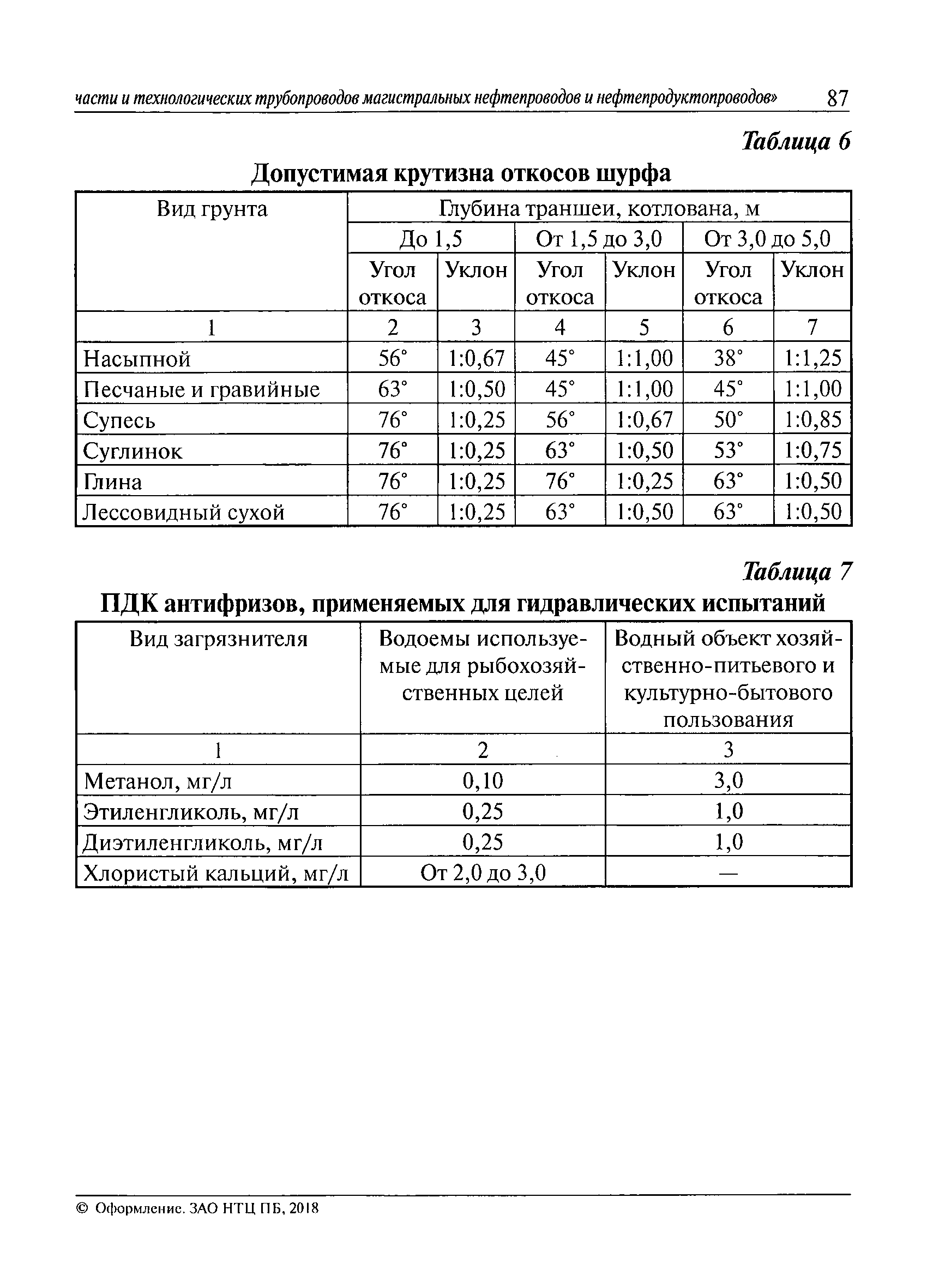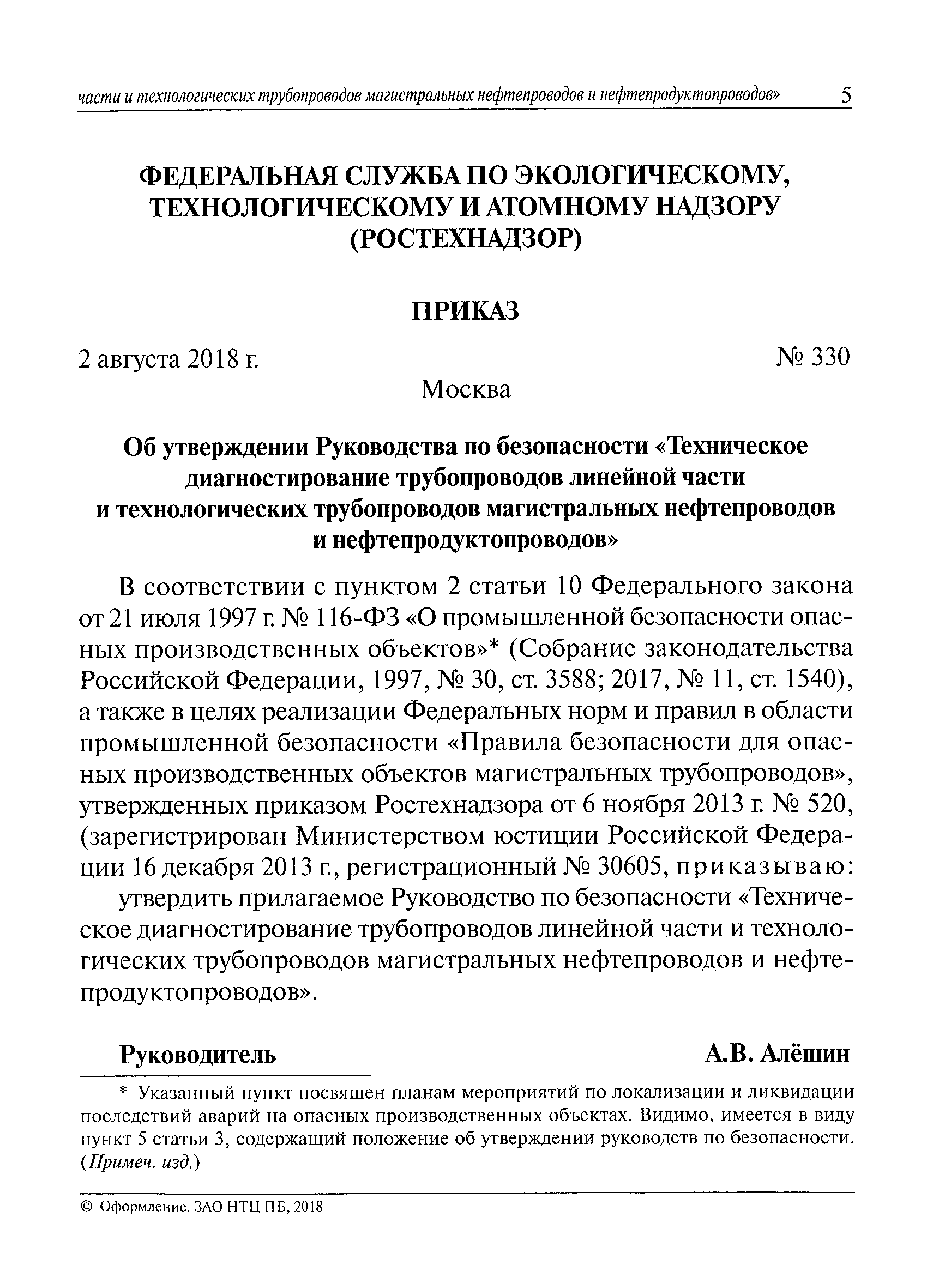 | Оглавление: | I Общие положения II Виды технического диагностирования III Техническое диагностирование линейной части магистральных трубопроводов, законченных строительством. Виды технического диагностирования, выполняемые на трубопроводах, законченных строительством IV Техническое диагностирование линейной части магистральных трубопроводов, находящихся в эксплуатации. Виды технического диагностирования, выполняемые на магистральных трубопроводах, находящихся в эксплуатации V Техническое диагностирование трубопроводов, находящихся в консервации. Виды технического диагностирования, применяемые на трубопроводах, находящихся в консервации, и сроки их проведения VI Техническое диагностирование технологических трубопроводов. Классификация технологических трубопроводов VII Мероприятия по безопасности при испытаниях, очистке и диагностировании трубопровод Приложение 1. Перечень сокращений и их расшифровка Приложение 2. Термины и их определения Приложение 3. Рисунки и таблицы Приложение 4. Рекомендации по методике проведения внутритрубного диагностирования Приложение 5. Рекомендации по видам и срокам проведения технического диагностирования магистральных трубопроводов, находящихся в эксплуатации Приложение 6. Рекомендации по методике выполнения неразрушающего контроля магистральных трубопроводов Приложение 7. Рекомендации по методике проведения работ по электрометрии Приложение 8. Виды работ, проводимые при наружном диагностировании переходов магистральных трубопроводов через водные преграды Приложение 9. Формы предупреждающих знаков Приложение 10. Форма акта на обозначение оборудования и открытых участков трубопровода перед проведением испытаний Приложение 11. Основные рекомендации к выполнению шурфов Приложение 12. Рекомендуемые формы актов при проведении технического диагностирования трубопровода |