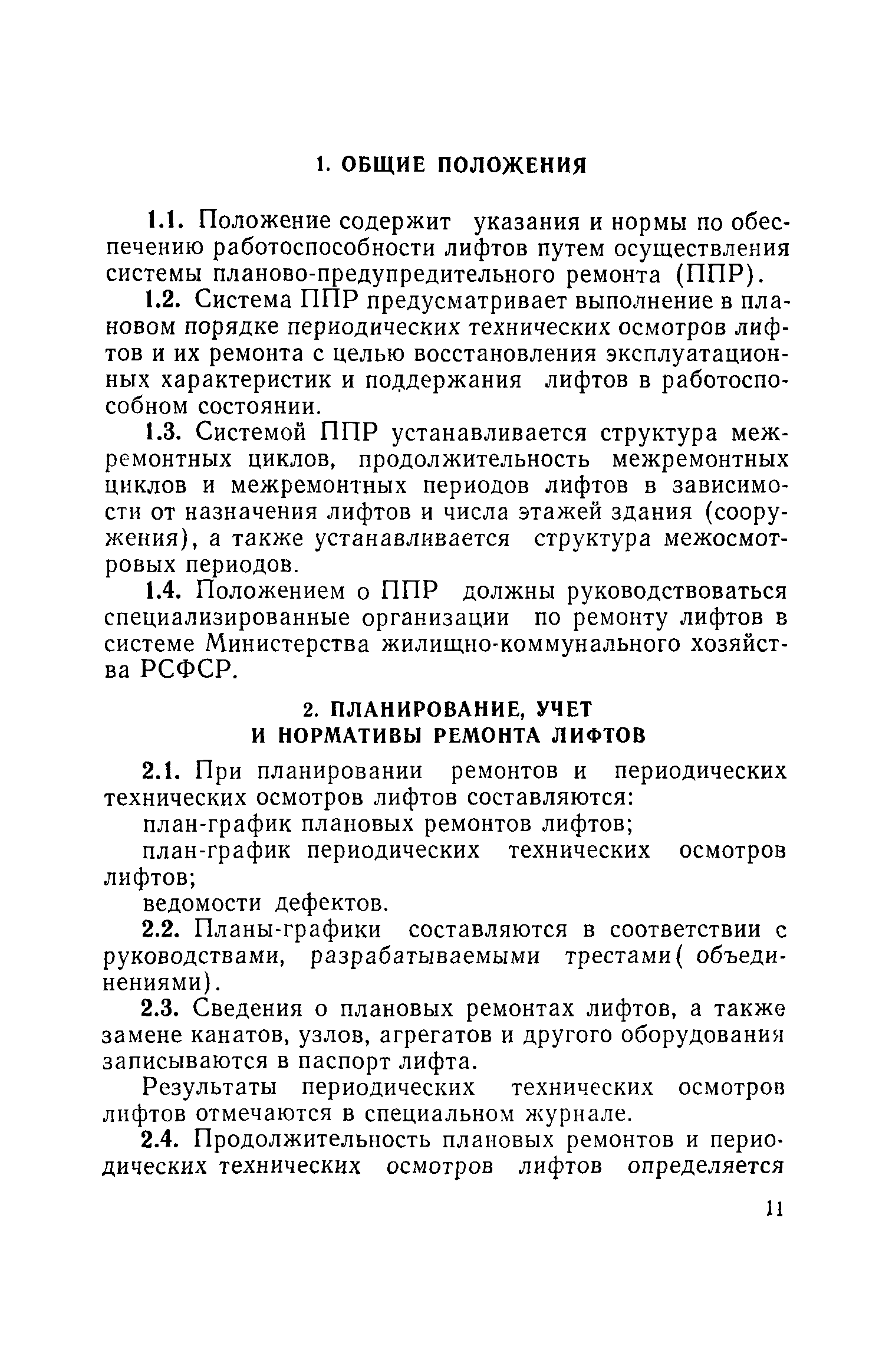 | Название рус.: | Положение о планово-предупредительном ремонте лифтов |