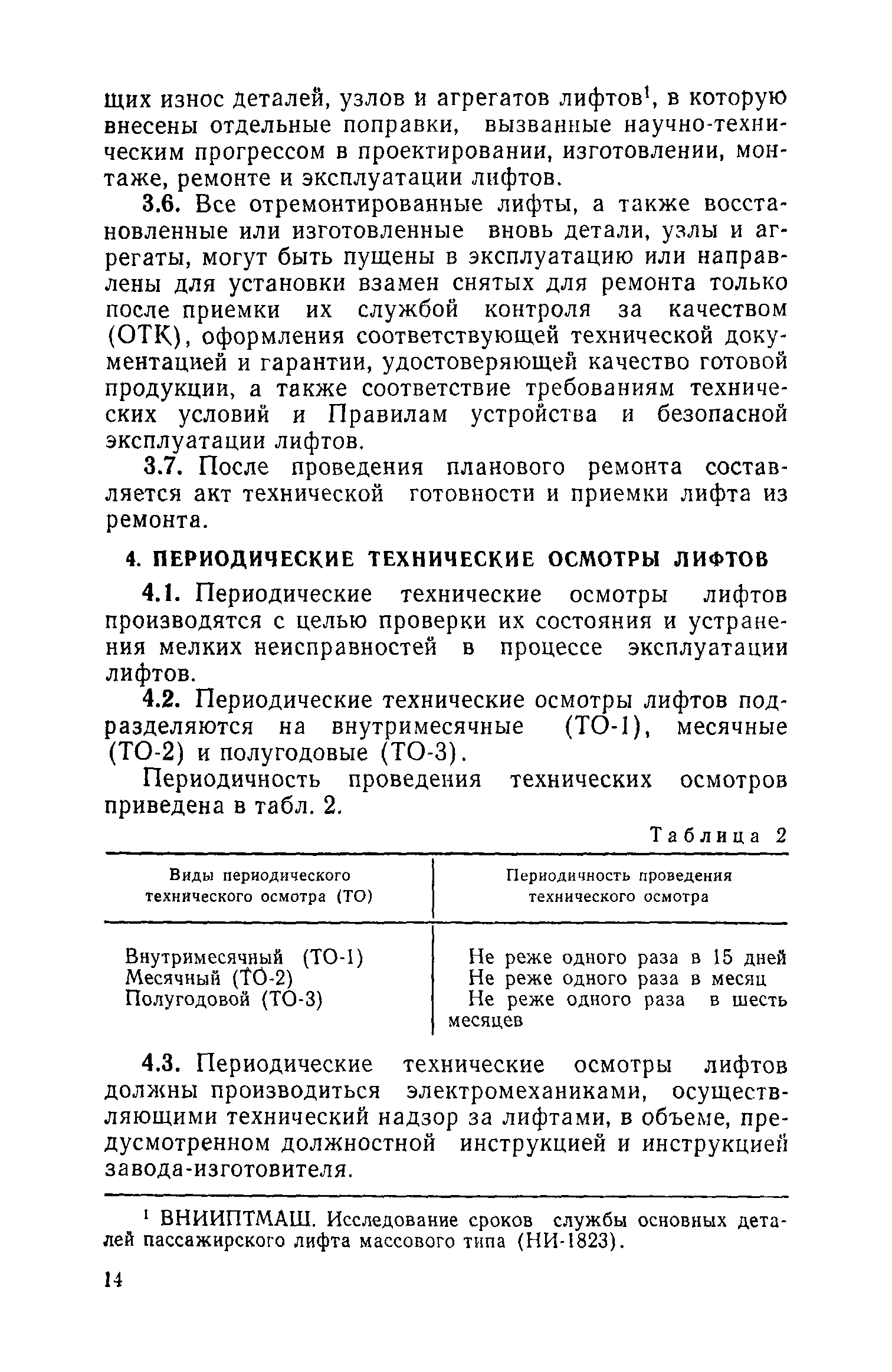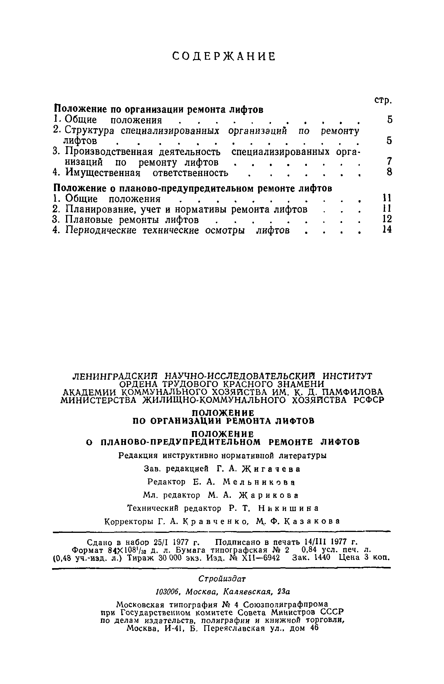 | Оглавление: | 1. Общие положения 2. Планирование, учет и нормативы ремонта лифтов 3. Плановые ремонты лифтов 4. Периодические технические осмотры лифтов |