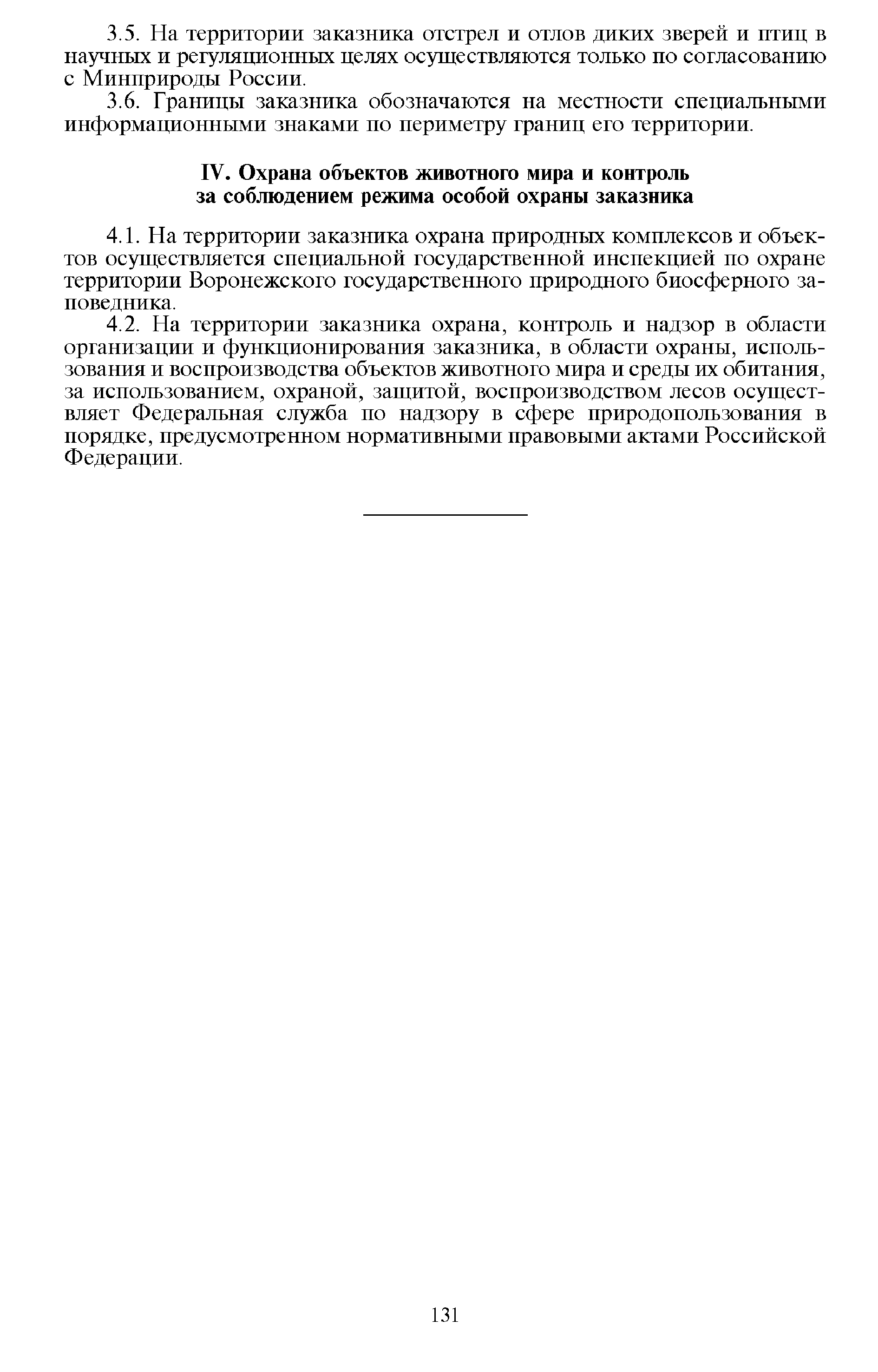 | Оглавление: | I. Общие положения II. Задачи заказника III. Режим особой охраны территории заказника IV. Охрана объектов животного мира и контроль за соблюдением режима особой охраны заказника Приложение. Координаты поворотных точек границы государственного природного заказника федерального значения "Воронежский" |
