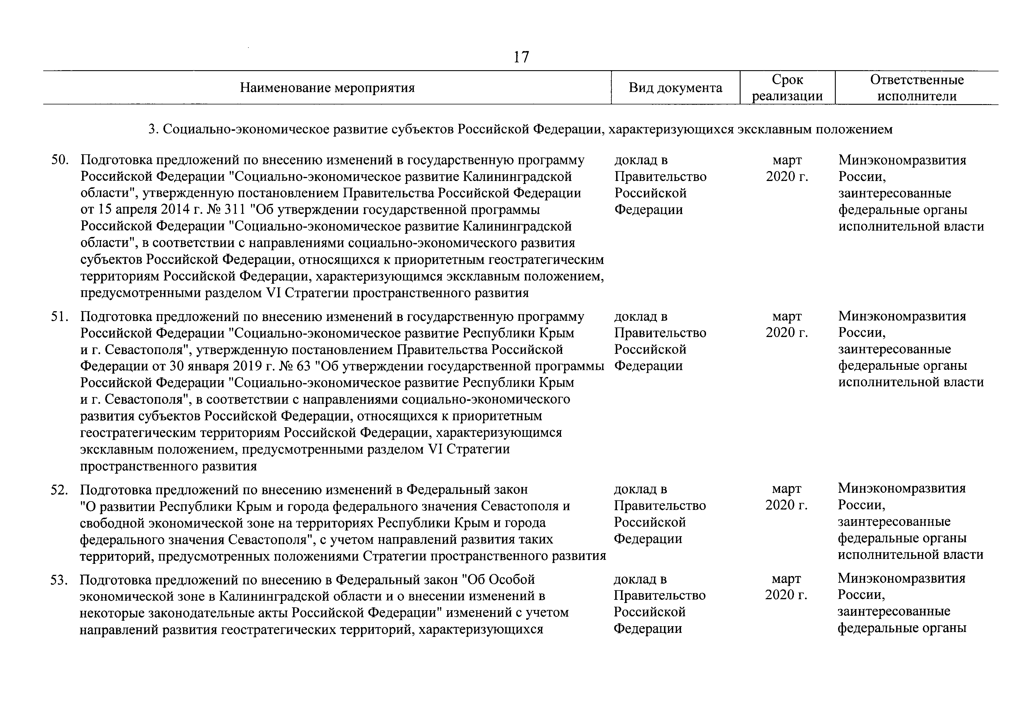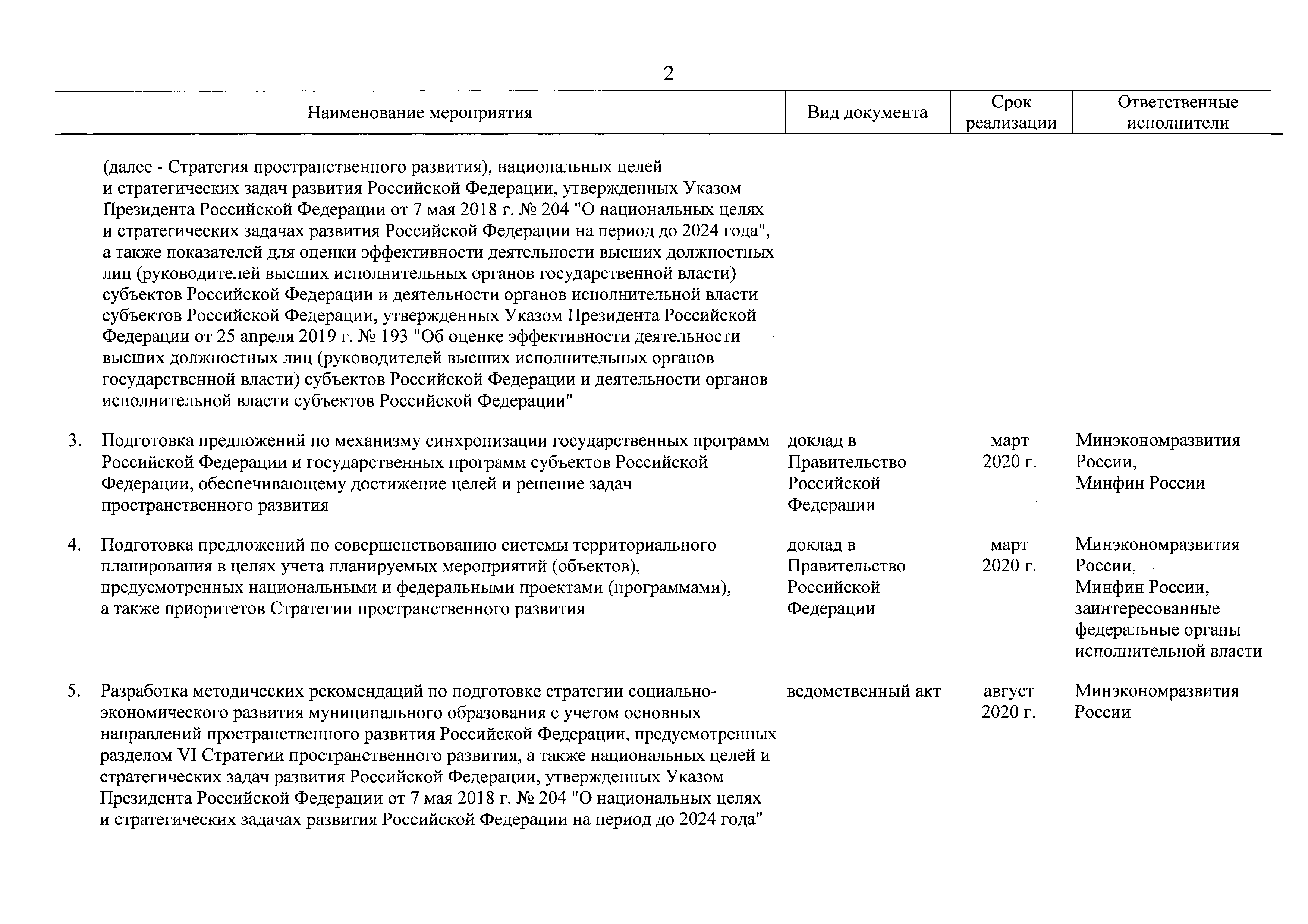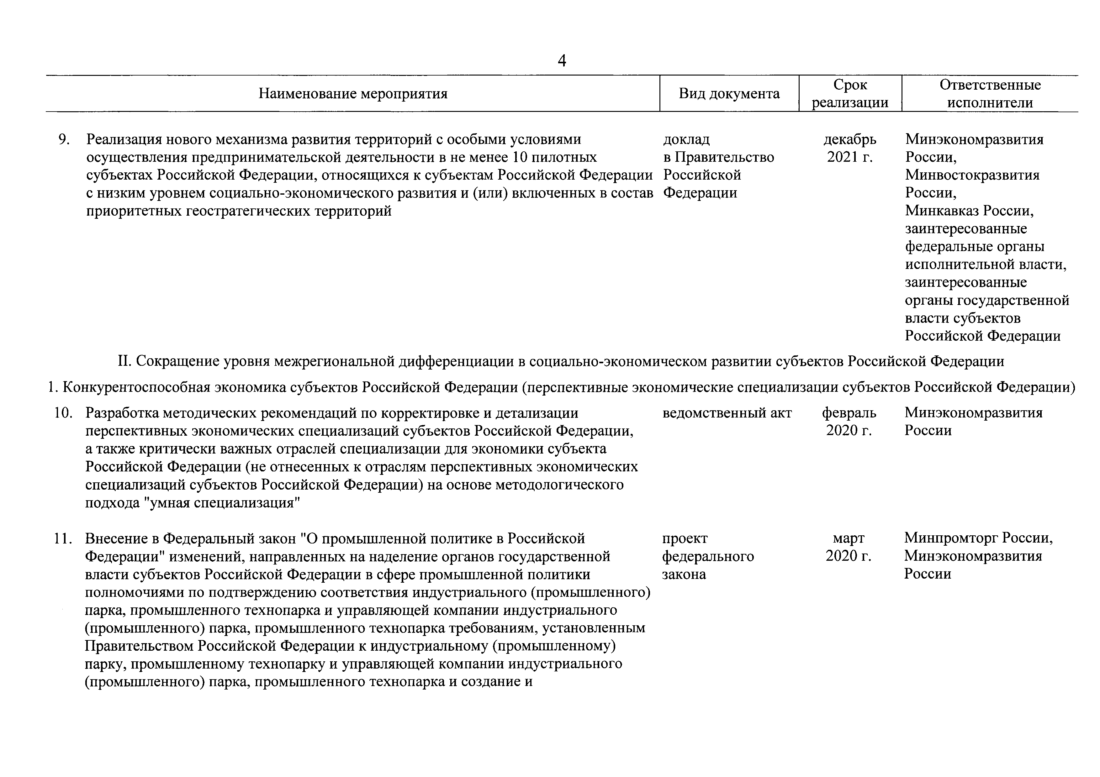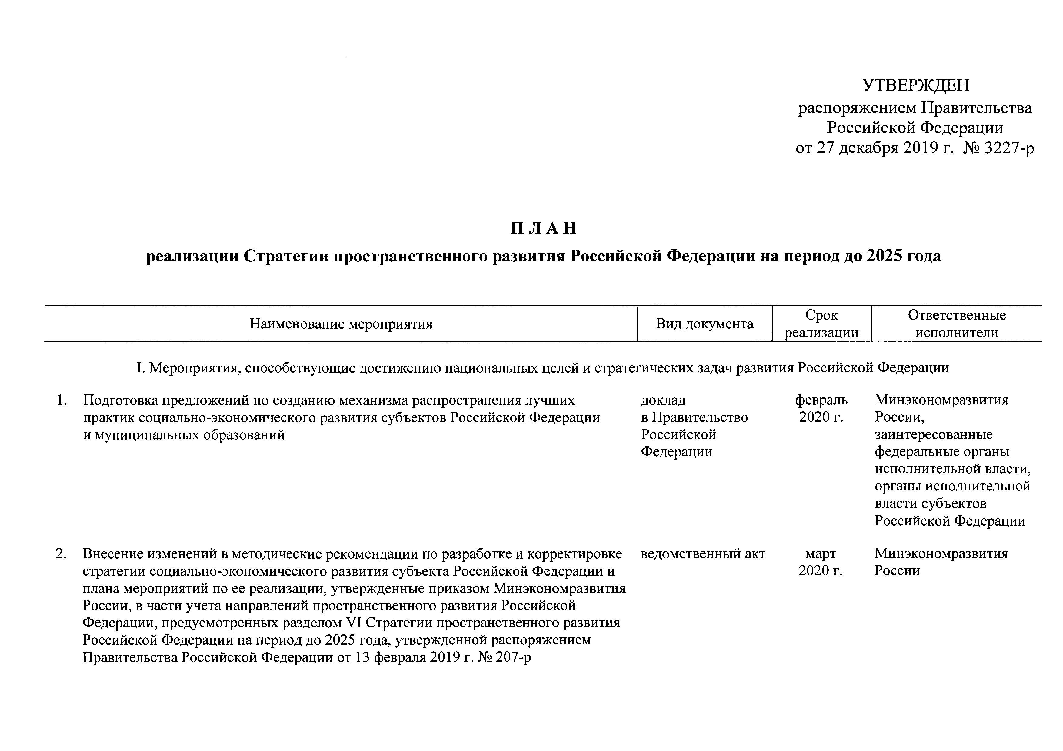 План реализации Стратегии пространственного развития Российской Федерации на период до 2025 года