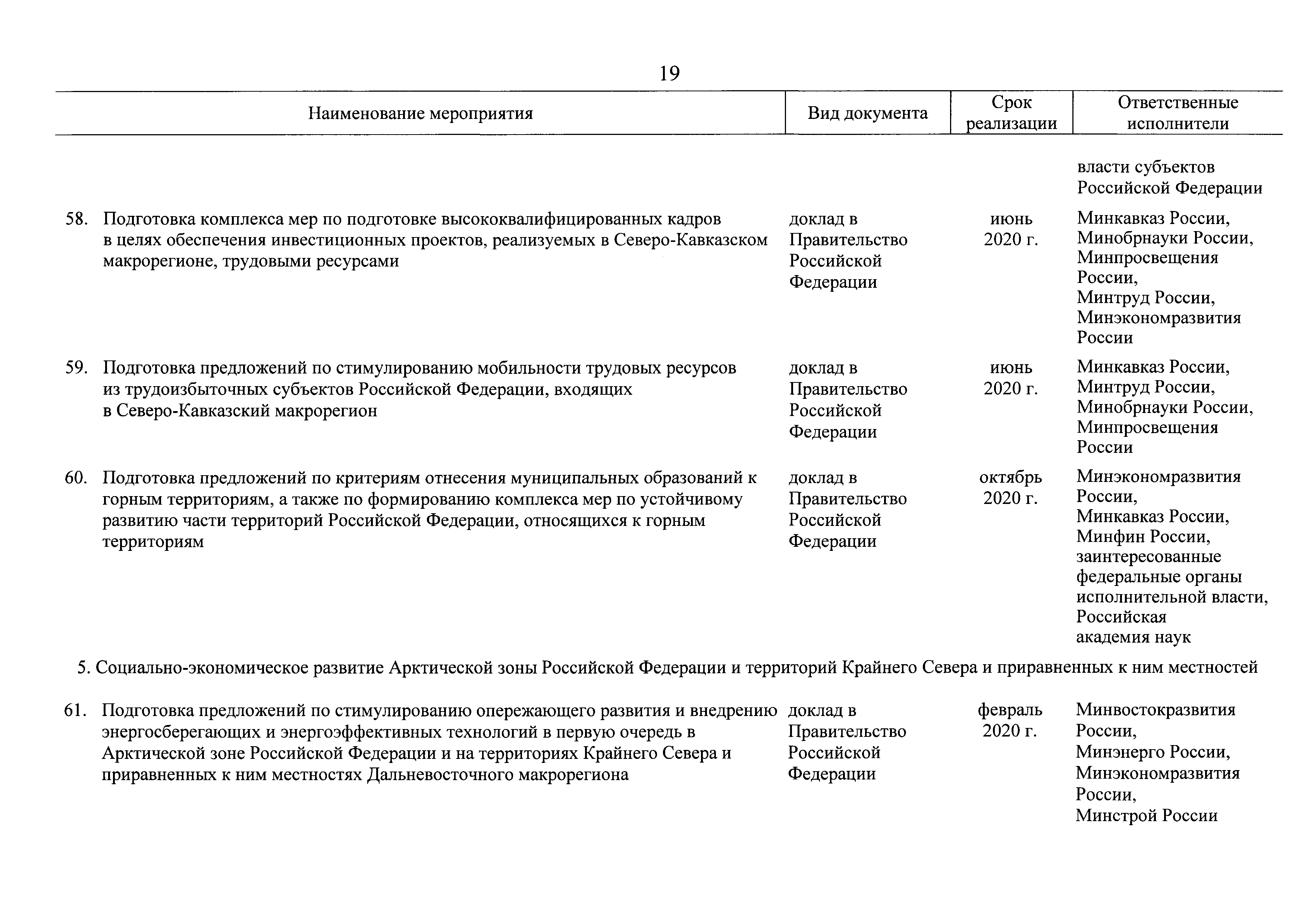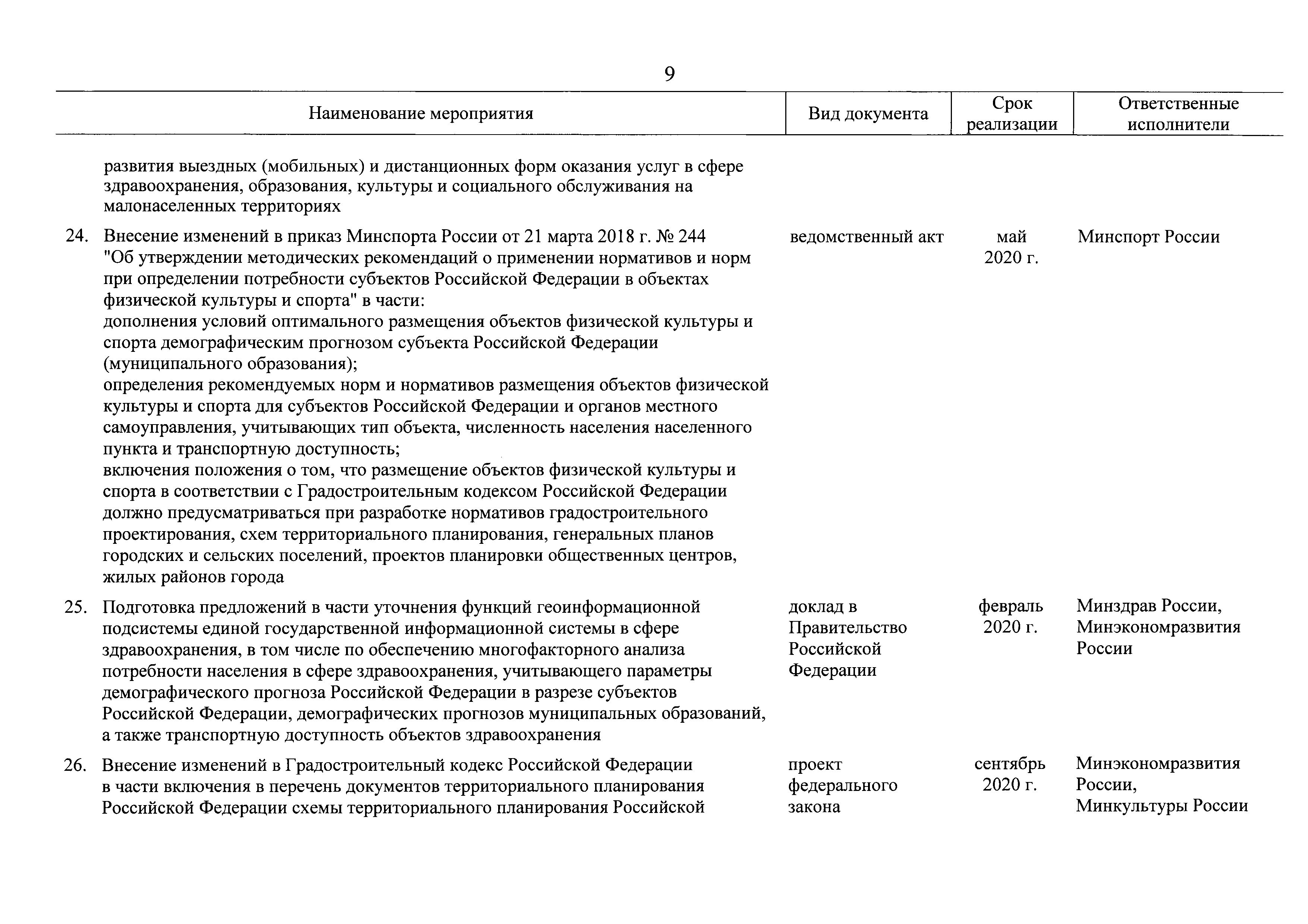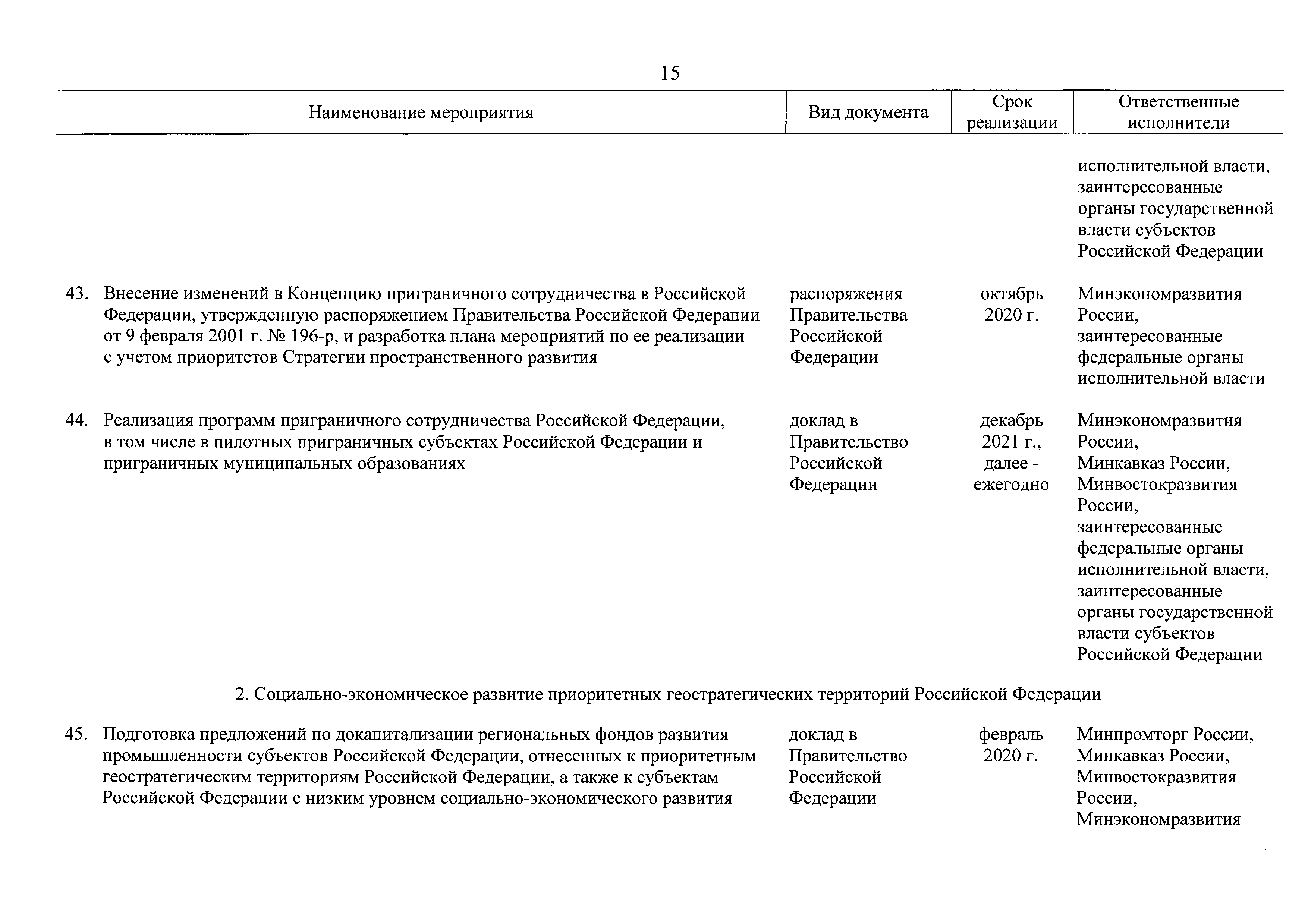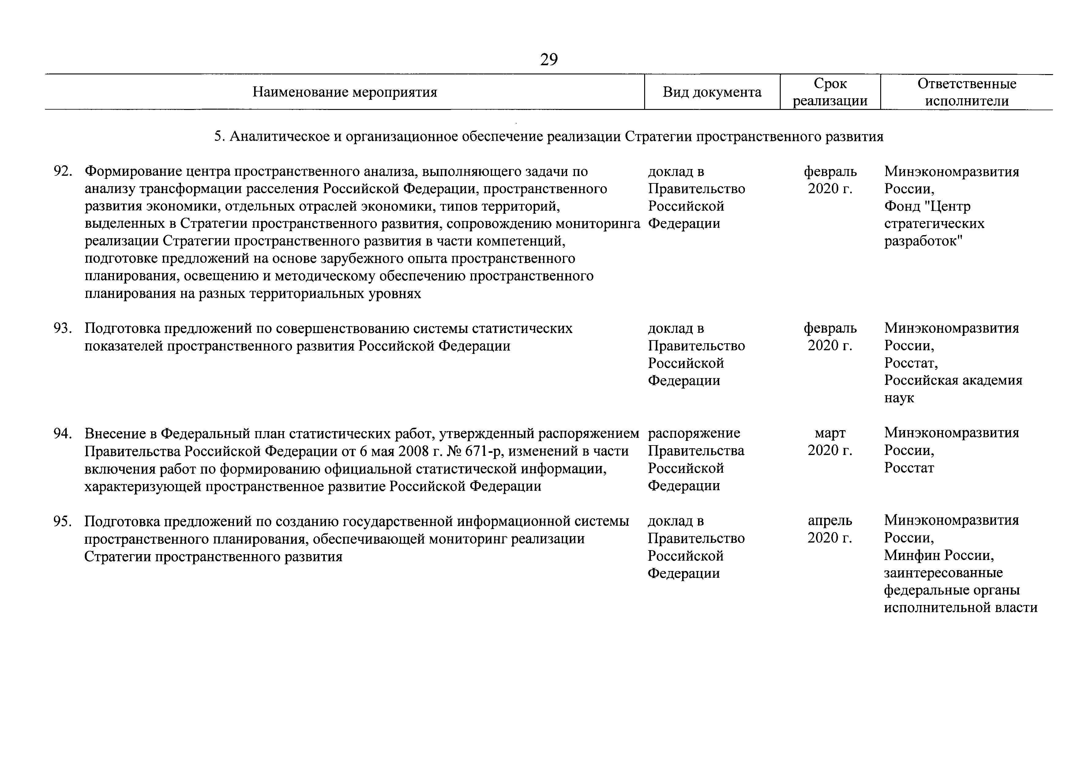 План реализации Стратегии пространственного развития Российской Федерации на период до 2025 года