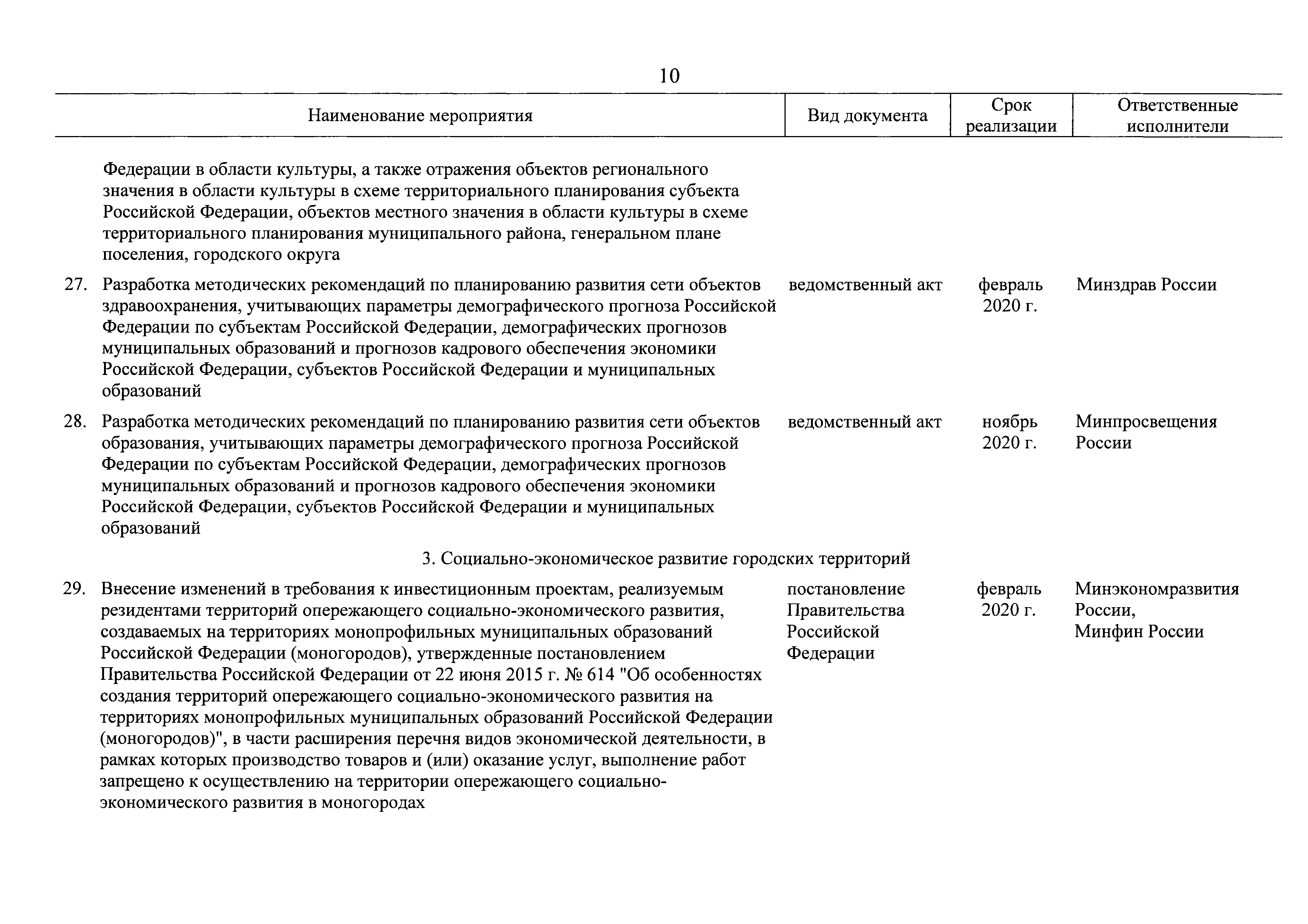 Постановление 614 «Об особенностях создания территорий опережающего социально-экономического развития на территориях монопрофильных муниципальных образований Российской Федерации (моногородов)»