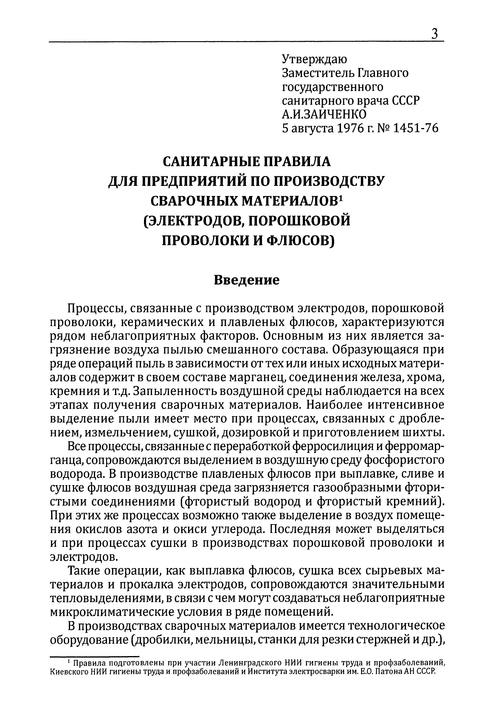 | Утверждён: | 05.08.1976 Заместитель Главного государственного санитарного врача CCCР (1451-76) |