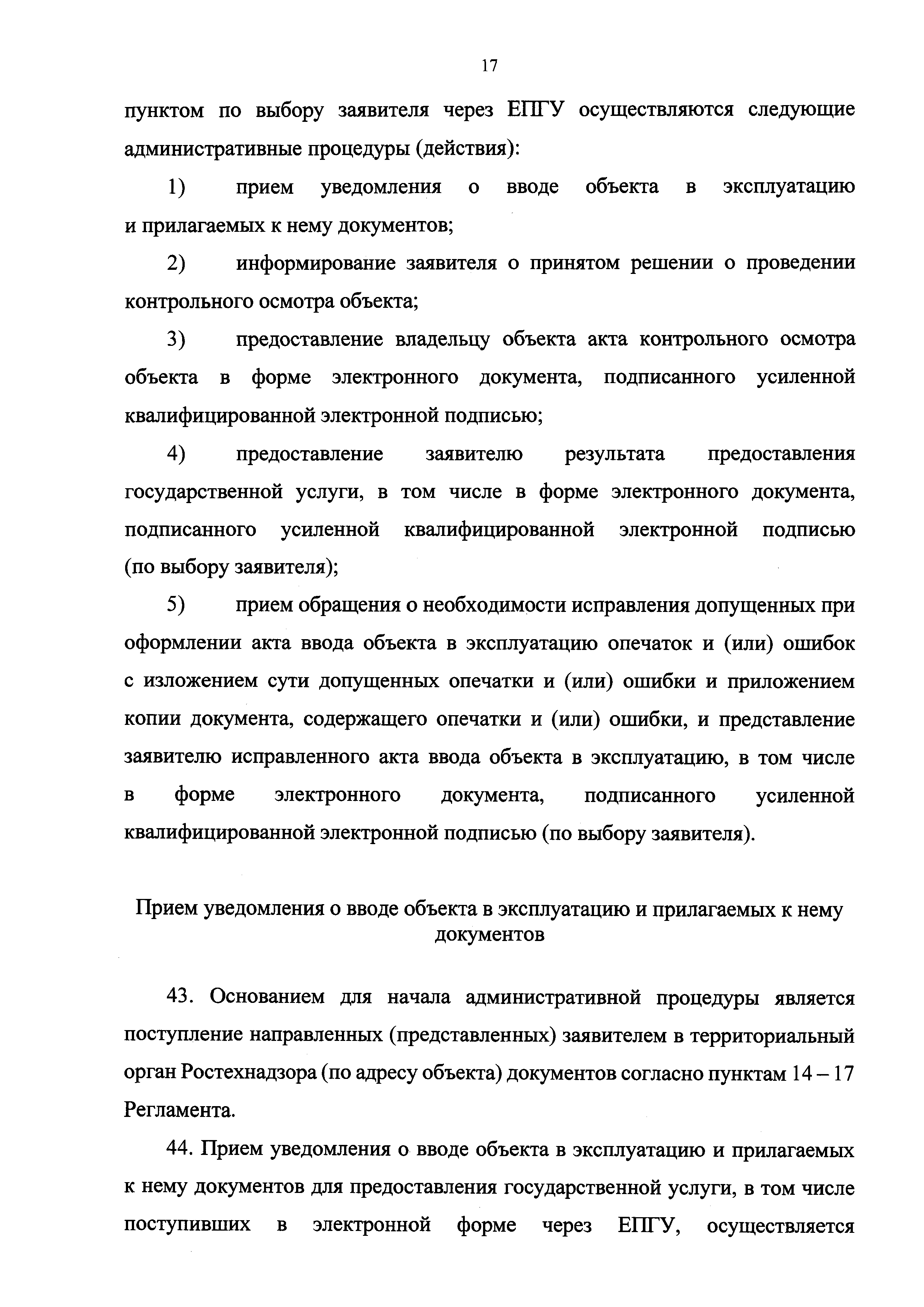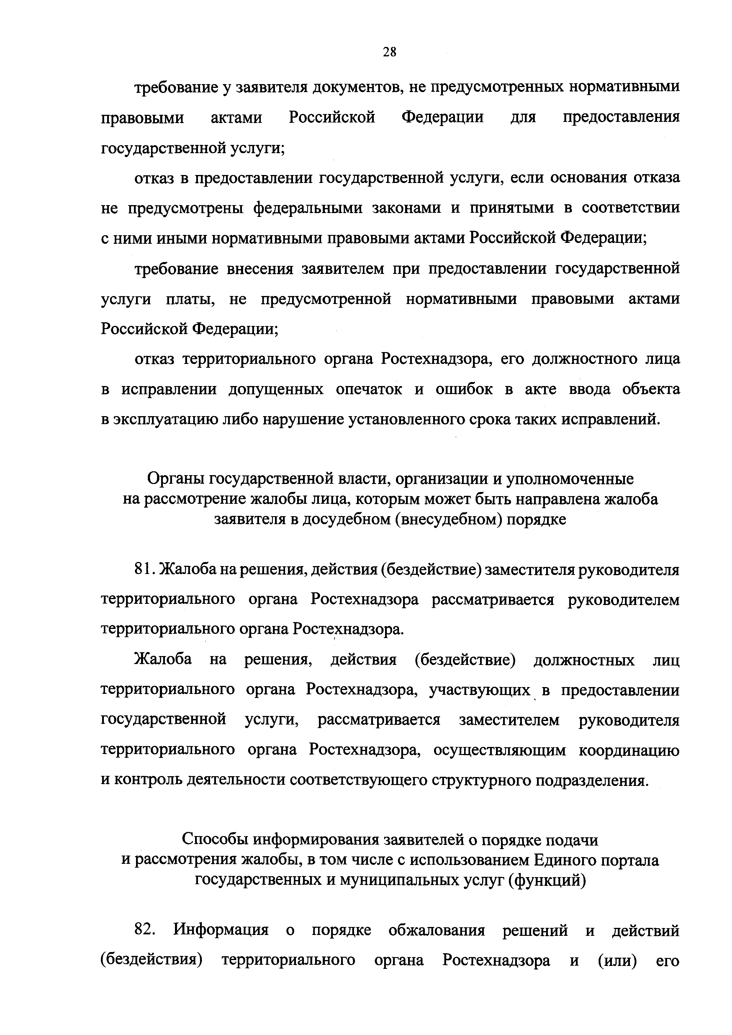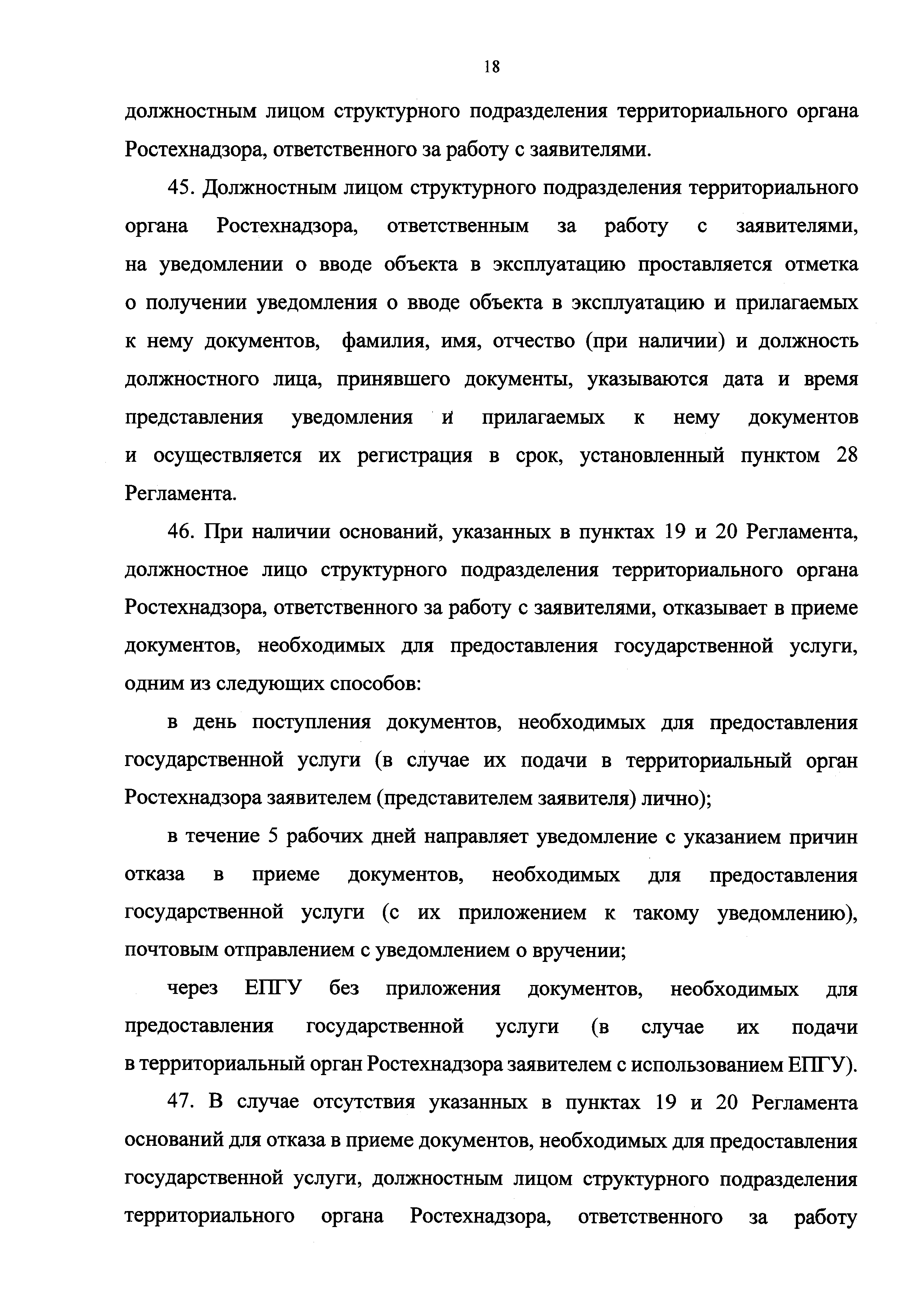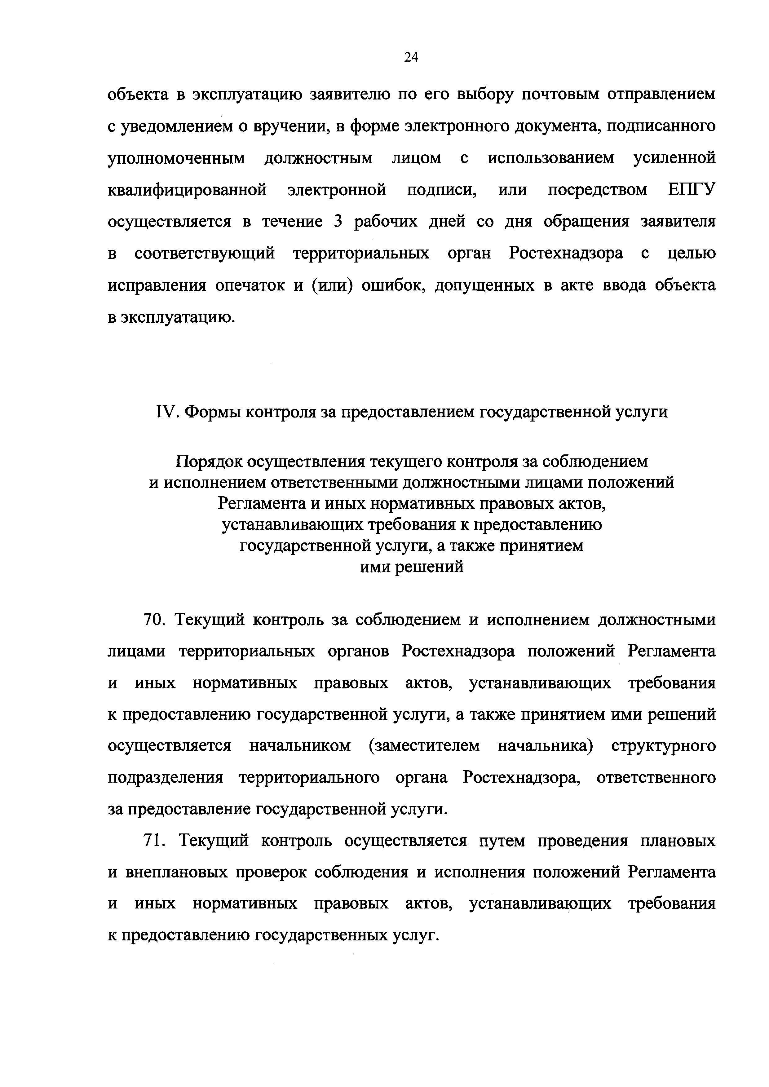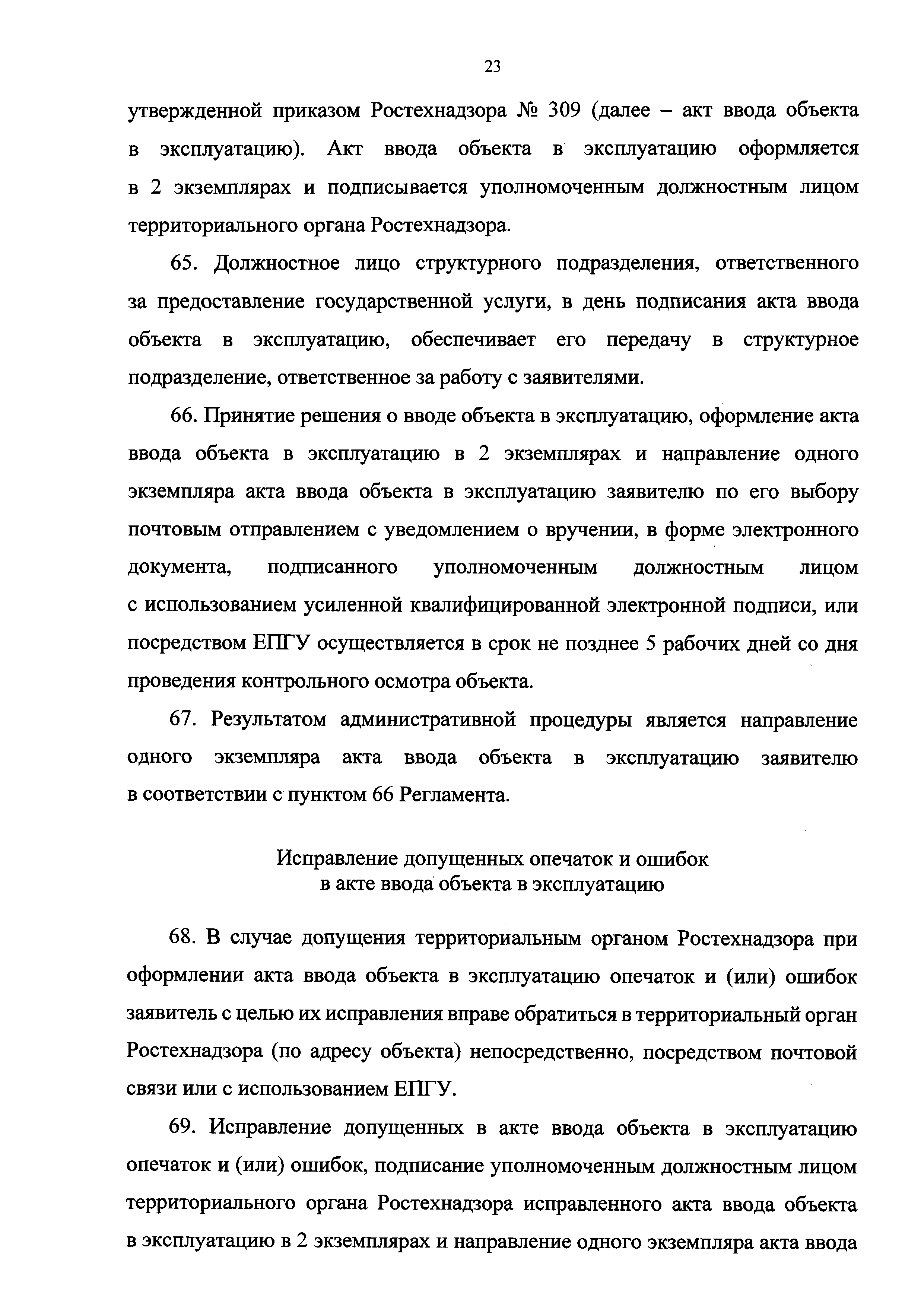 Административный регламент по предоставлению Федеральной службой по экологическому, технологическому и атомному надзору государственной услуги по вводу в эксплуатацию лифтов, подъемных платформ для инвалидов, пассажирских конвейеров (движущихся пешеходных дорожек) и эскалаторов, за исключением эскалаторов в метрополитенах, после осуществления их монтажа в связи с заменой или модернизации| Статус: | действует | | Название рус.: | Административный регламент по предоставлению Федеральной службой по экологическому, технологическому и атомному надзору государственной услуги по вводу в эксплуатацию лифтов, подъемных платформ для инвалидов, пассажирских конвейеров (движущихся пешеходных дорожек) и эскалаторов, за исключением эскалаторов в метрополитенах, после осуществления их монтажа в связи с заменой или модернизации | | Дата добавления в базу: | 01.01.2021 | | Дата актуализации: | 01.01.2021 | | Дата введения: | 20.01.2020 | | Область применения: | Регламент устанавливает сроки и последовательность административных процедур (действий) территориальных органов Ростехнадзора по предоставлению государственной услуги по вводу в эксплуатацию лифтов, подъемных платформ для инвалидов, пассажирских конвейеров (движущихся пешеходных дорожек) и эскалаторов, за исключением эскалаторов в метрополитенах, после осуществления их монтажа в связи с заменой или модернизации, порядок взаимодействия должностных лиц территориальных органов Ростехнадзора с заявителями | | Оглавление: | I. Общие положения II. Стандарт предоставления государственной услуги III. Состав, последовательностью и сроки выполнения административных процедур (действий), требования к порядку их выполнения, в том числе особенности выполнения административных процедур (действий) в электронной форме IV. Формы контроля за предоставлением государственной услуги V. Досудебный (внесудебный) порядок обжалования решений и действий (бездействия) территориальных органов Ростехнадзора, а также его должностных лиц | | Утверждён: | 27.11.2019 Федеральная служба по экологическому, технологическому и атомному надзору (454)