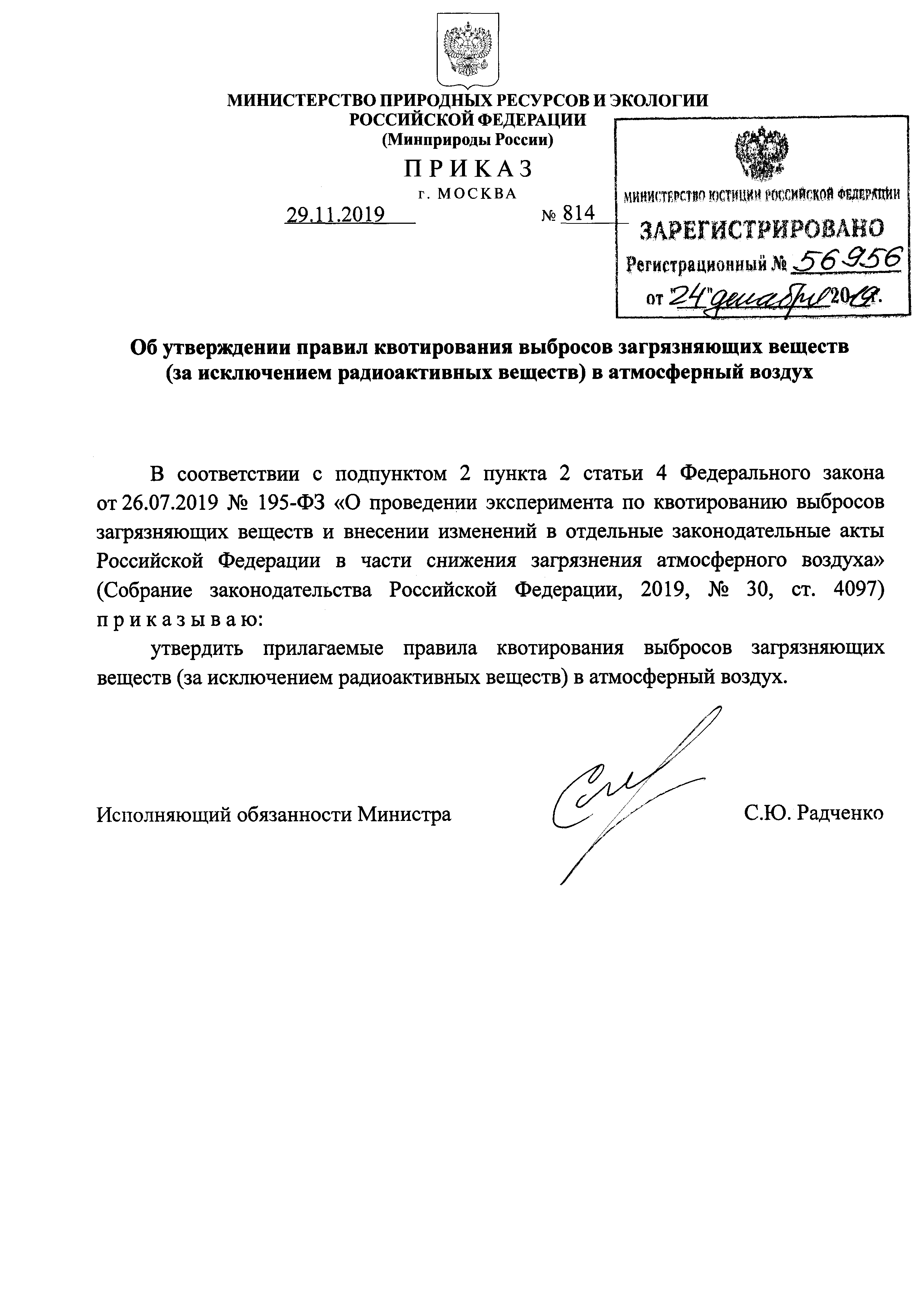 | Утверждён: | 29.11.2019 Министерство природных ресурсов и экологии Российской Федерации (814) |