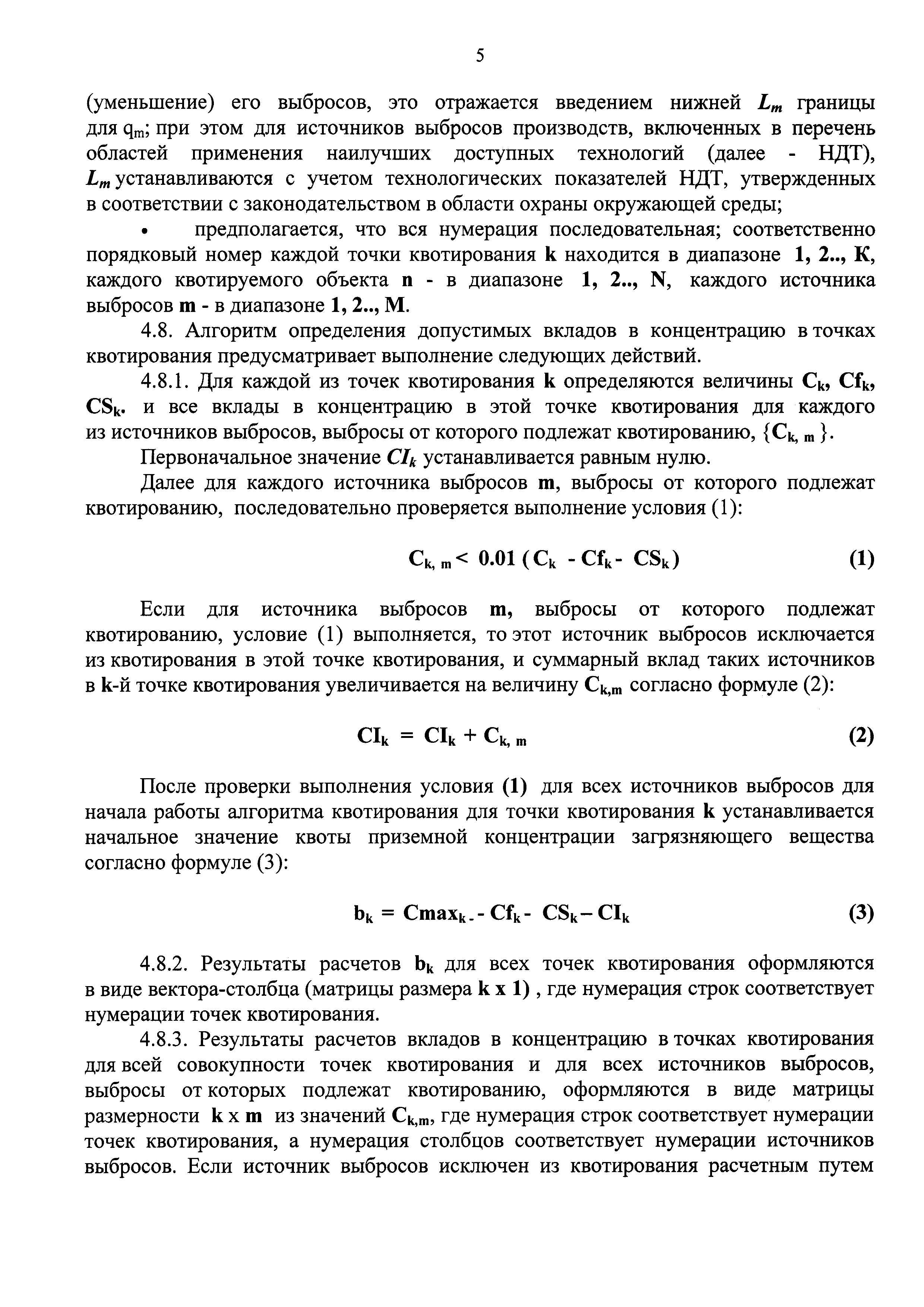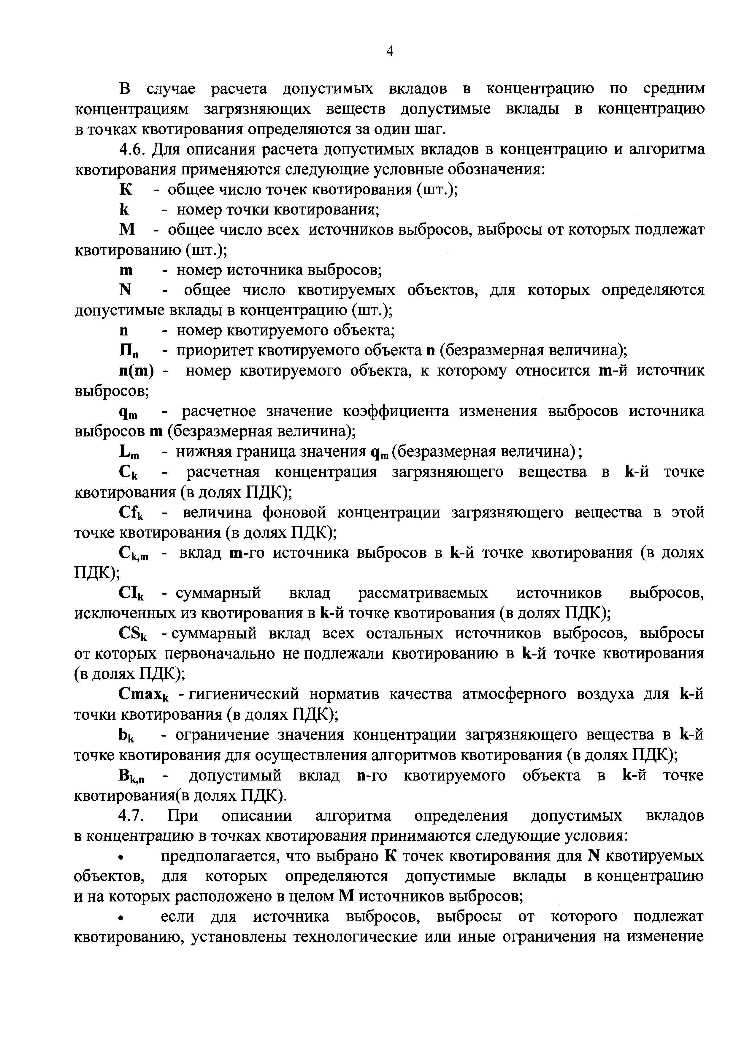 | Оглавление: | I. Общие положения II. Приоритеты при определении допустимых вкладов в концентрацию загрязняющих веществ в атмосферном воздухе III. Определение контрольных точек для квотирования выбросов IV. Расчет допустимых вкладов в концентрацию в точках квотирования V. Установление квот выбросов VI. Квотирование выбросов |