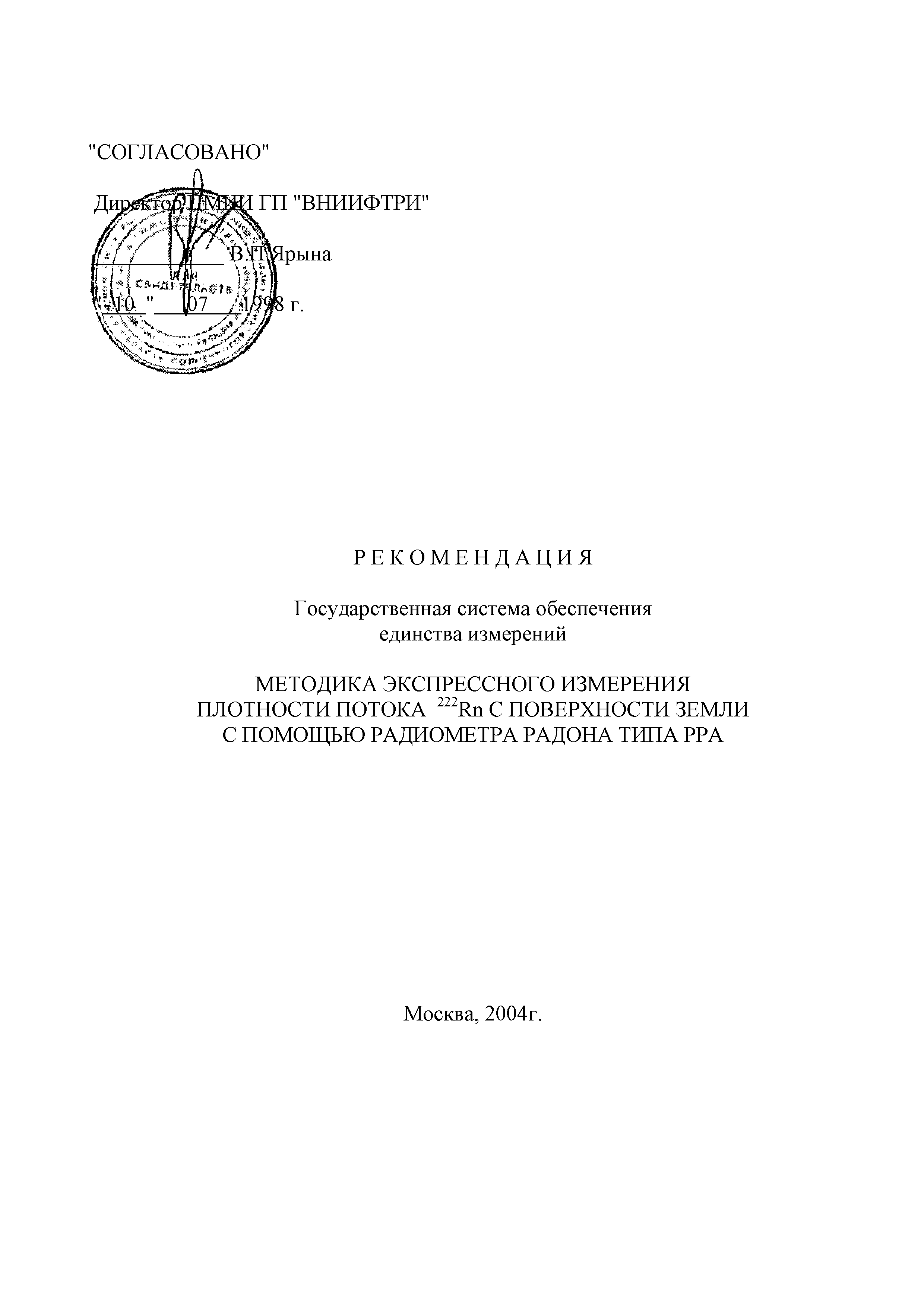 | Принят: | 10.07.1998 ЦМИИ ГП ВНИИФТРИ