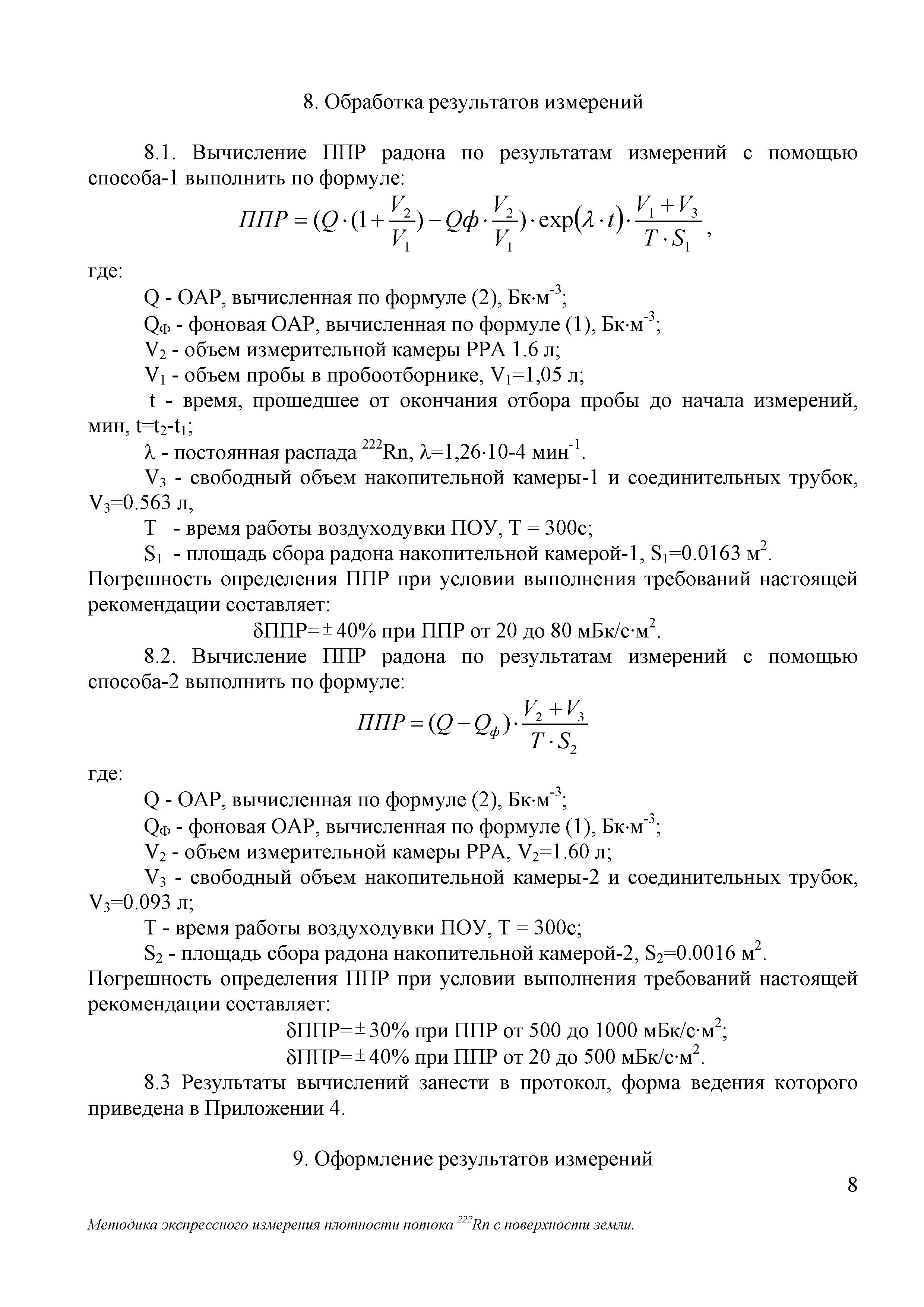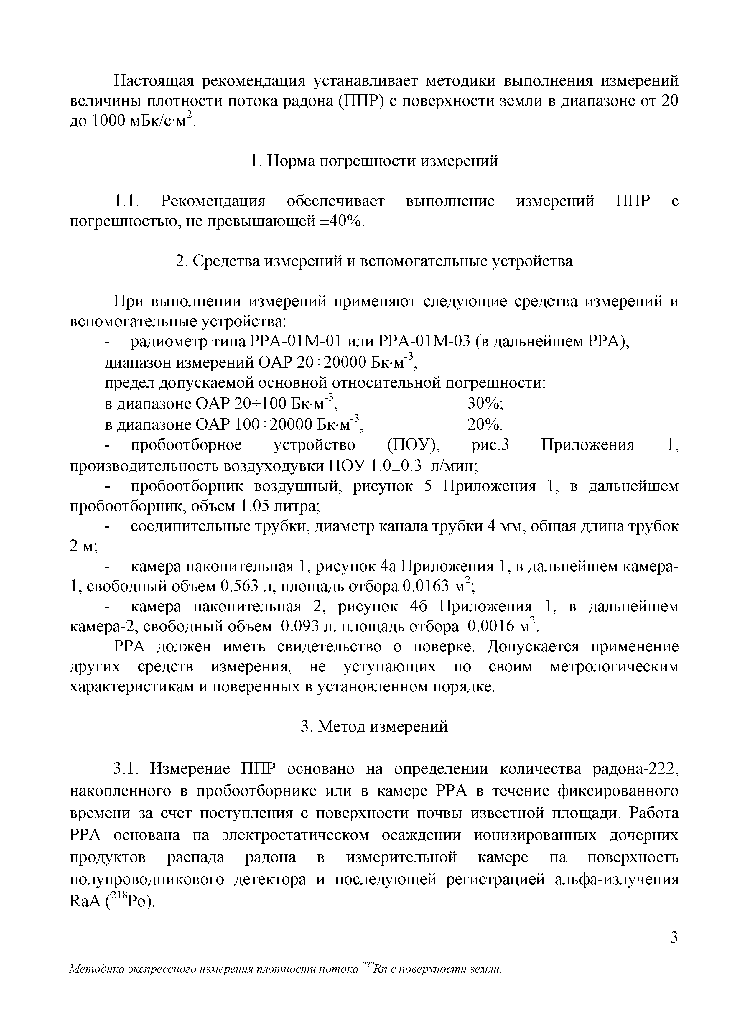 | Название рус.: | Рекомендация. Государственная система обеспечения единства измерений. Методика экспрессного измерения плотности потока 222Rn с поверхности земли с помощью радиометра радона типа РРА |