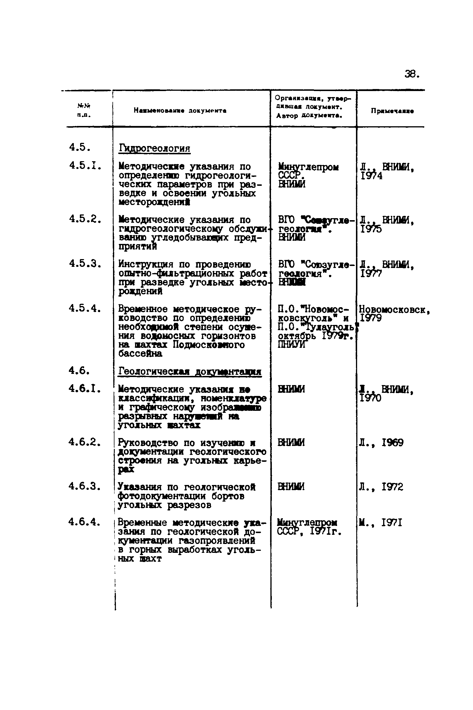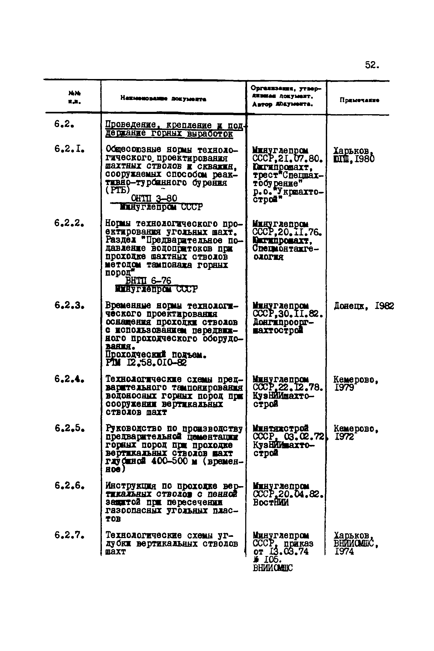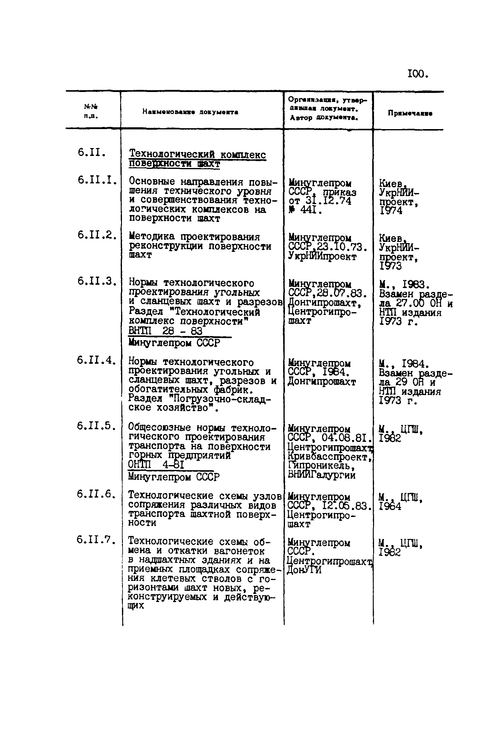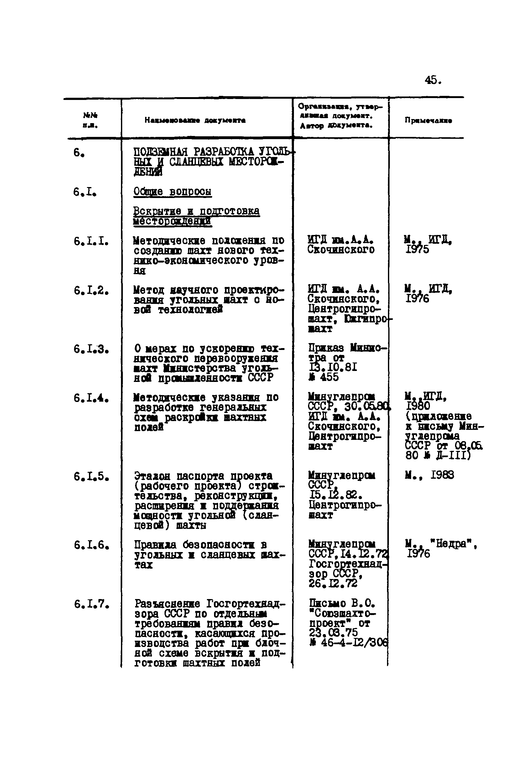 Перечень отраслевых нормативных документов и руководящих материалов по вопросам проектирования предприятий угольной промышленности| Статус: | справочные материалы, мп, тпр | | Название рус.: | Перечень отраслевых нормативных документов и руководящих материалов по вопросам проектирования предприятий угольной промышленности | | Дата добавления в базу: | 01.01.2021 | | Дата актуализации: | 01.01.2021 | | Область применения: | Перечень является периодическим изданием Центрогипрошахта и включает в себя отраслевые нормативные, директивные и руководящие материалы, используемые при проектировании предприятий угольной промышленности. Основными документами, входящими в Перечень, являются нормы технологического проектирования, инструкции, руководства, методики и другие работы, содержащие рекомендации по проектированию | | Оглавление: | 1. Перечни нормативных документов 2. Общие вопросы проектирования предприятий угольной промышленности 3. Отвод земель. Охрана окружающей среды 4. Геология. Гидрогеология 5. Маркшейдерия и геодезия 6. Подземная разработка угольных и сланцевых месторождений 7. Разработка угольных (сланцевых) месторождений открытым способом 8. Обогатительные фабрики 9. Буровзрывные работы на шахтах и разрезах 10. Горношахтное оборудование. Ремонт 11. Промышленные здания и сооружения 12. Промышленный транспорт 13. Складское хозяйство. Породные отвалы 14. Электроснабжение и электрооборудование. Автоматизация производственных процессов 15. Пневматическое хозяйство 16. Сантехника 17. Трубопроводы 18. Промсанитария. Гигиена труда 19. Экономика угольной промышленности 20. Управление угольными предприятиями и производственными процессами. Связь 21. НОТ в проектах 22. Инженерно-технические мероприятия гражданской обороны 23. Рационализация и изобретения 24. Информационное обслуживание | | Разработан: | Центрогипрошахт