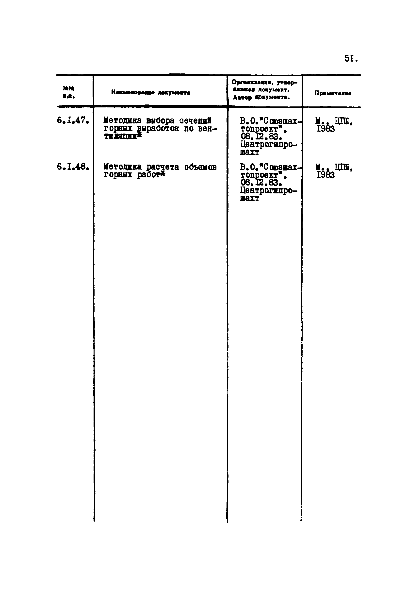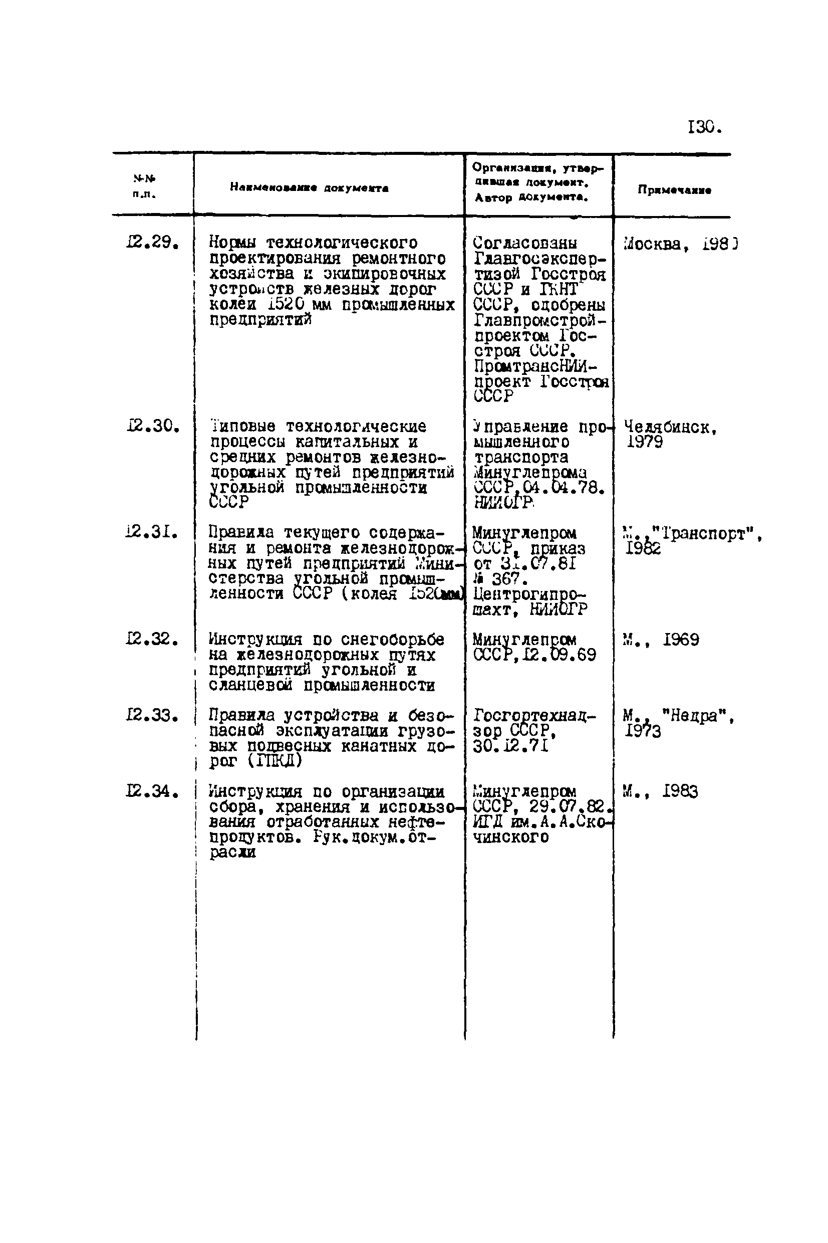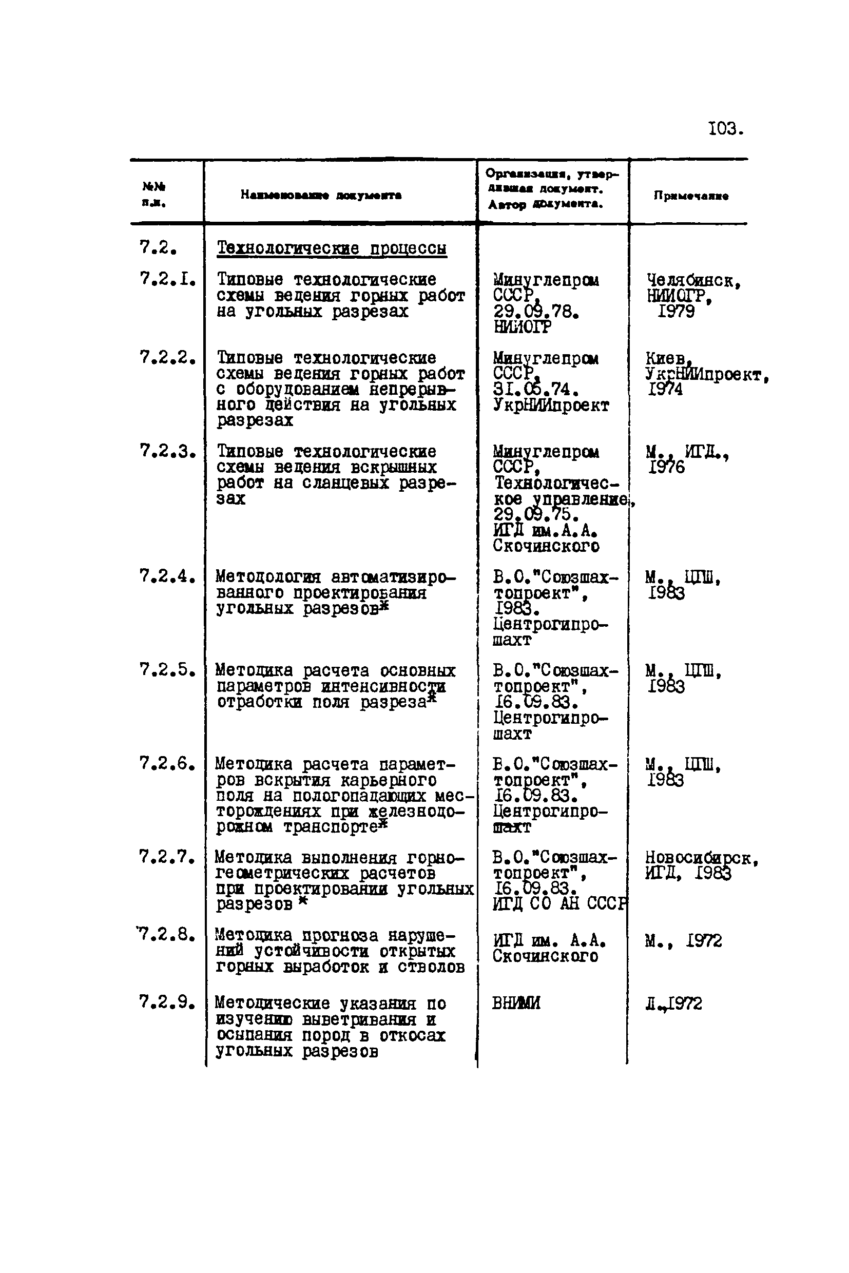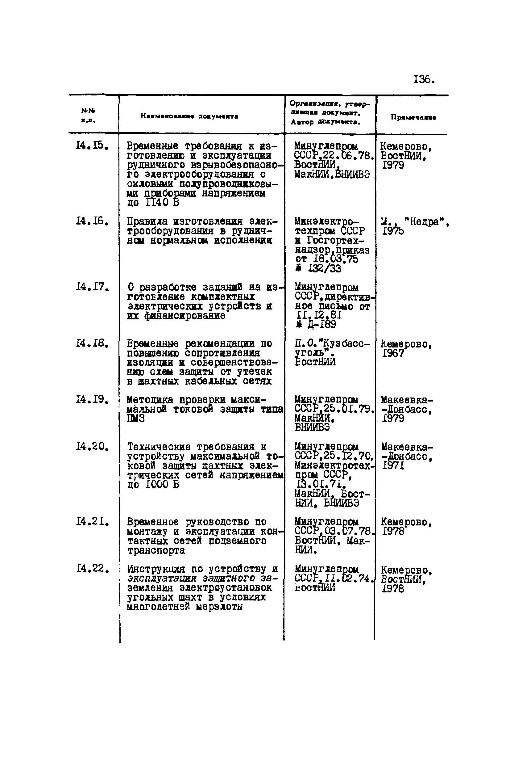 Перечень отраслевых нормативных документов и руководящих материалов по вопросам проектирования предприятий угольной промышленности| Статус: | справочные материалы, мп, тпр | | Название рус.: | Перечень отраслевых нормативных документов и руководящих материалов по вопросам проектирования предприятий угольной промышленности | | Дата добавления в базу: | 01.01.2021 | | Дата актуализации: | 01.01.2021 | | Область применения: | Перечень является периодическим изданием Центрогипрошахта и включает в себя отраслевые нормативные, директивные и руководящие материалы, используемые при проектировании предприятий угольной промышленности. Основными документами, входящими в Перечень, являются нормы технологического проектирования, инструкции, руководства, методики и другие работы, содержащие рекомендации по проектированию | | Оглавление: | 1. Перечни нормативных документов 2. Общие вопросы проектирования предприятий угольной промышленности 3. Отвод земель. Охрана окружающей среды 4. Геология. Гидрогеология 5. Маркшейдерия и геодезия 6. Подземная разработка угольных и сланцевых месторождений 7. Разработка угольных (сланцевых) месторождений открытым способом 8. Обогатительные фабрики 9. Буровзрывные работы на шахтах и разрезах 10. Горношахтное оборудование. Ремонт 11. Промышленные здания и сооружения 12. Промышленный транспорт 13. Складское хозяйство. Породные отвалы 14. Электроснабжение и электрооборудование. Автоматизация производственных процессов 15. Пневматическое хозяйство 16. Сантехника 17. Трубопроводы 18. Промсанитария. Гигиена труда 19. Экономика угольной промышленности 20. Управление угольными предприятиями и производственными процессами. Связь 21. НОТ в проектах 22. Инженерно-технические мероприятия гражданской обороны 23. Рационализация и изобретения 24. Информационное обслуживание | | Разработан: | Центрогипрошахт
