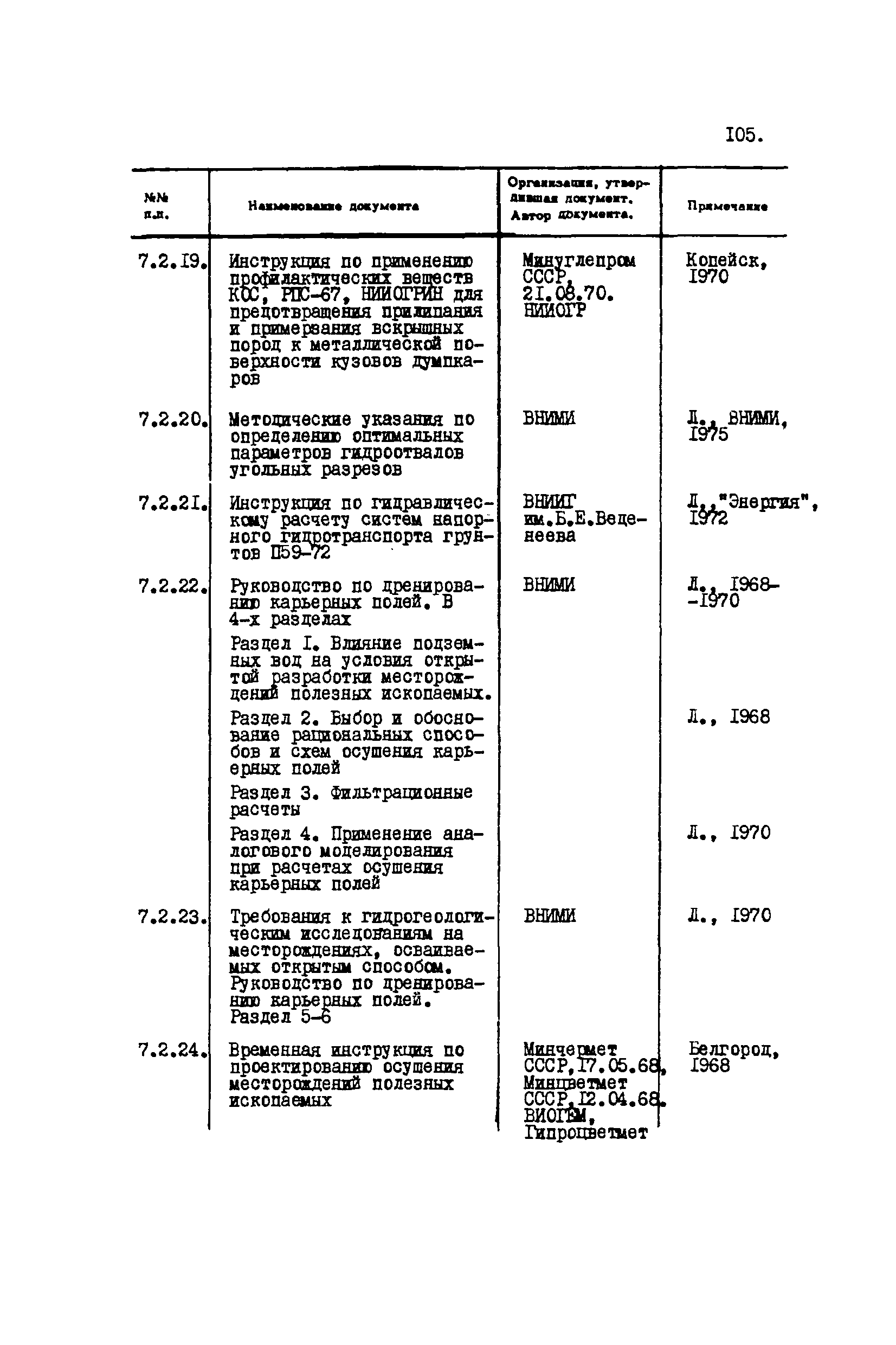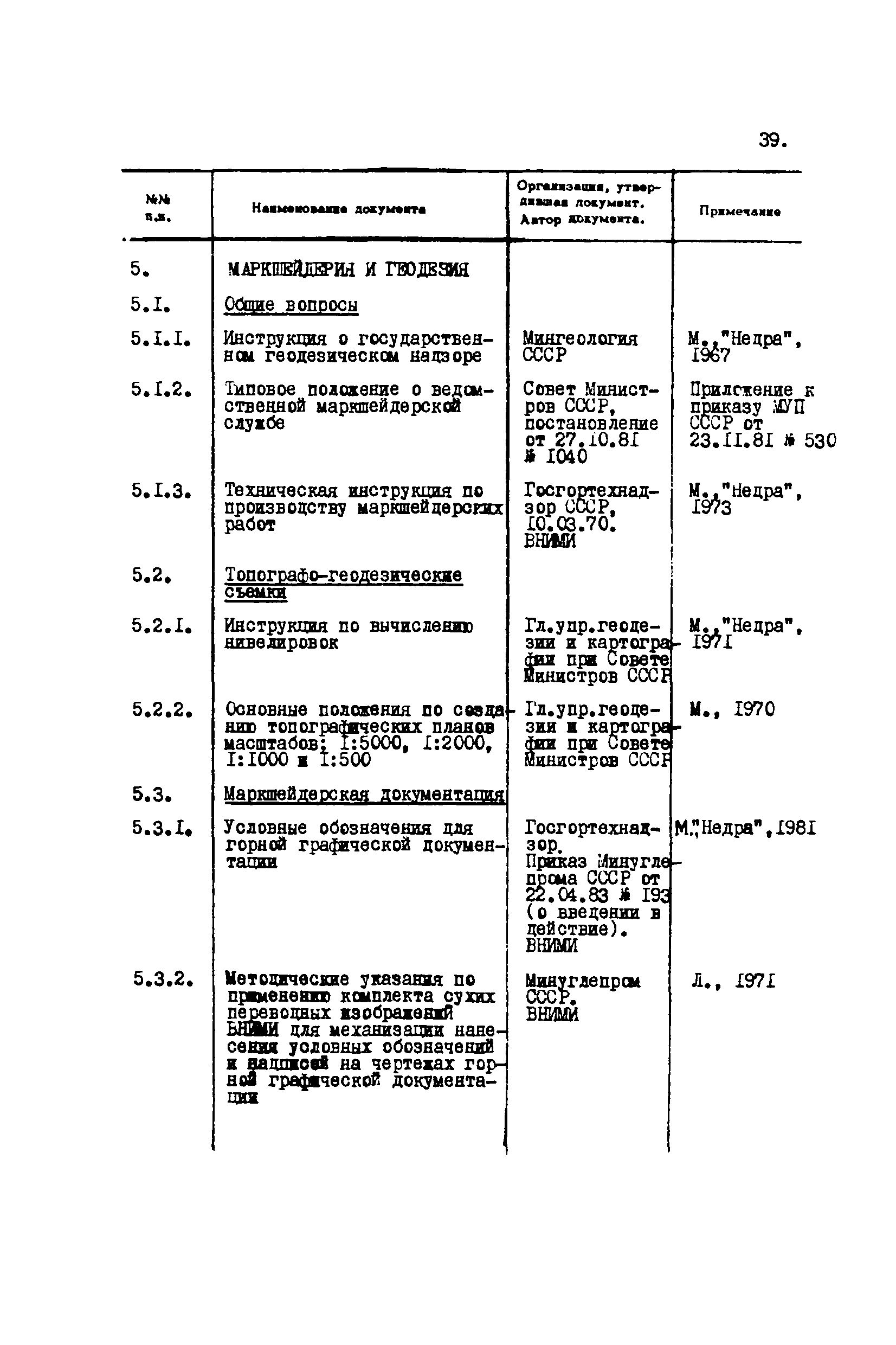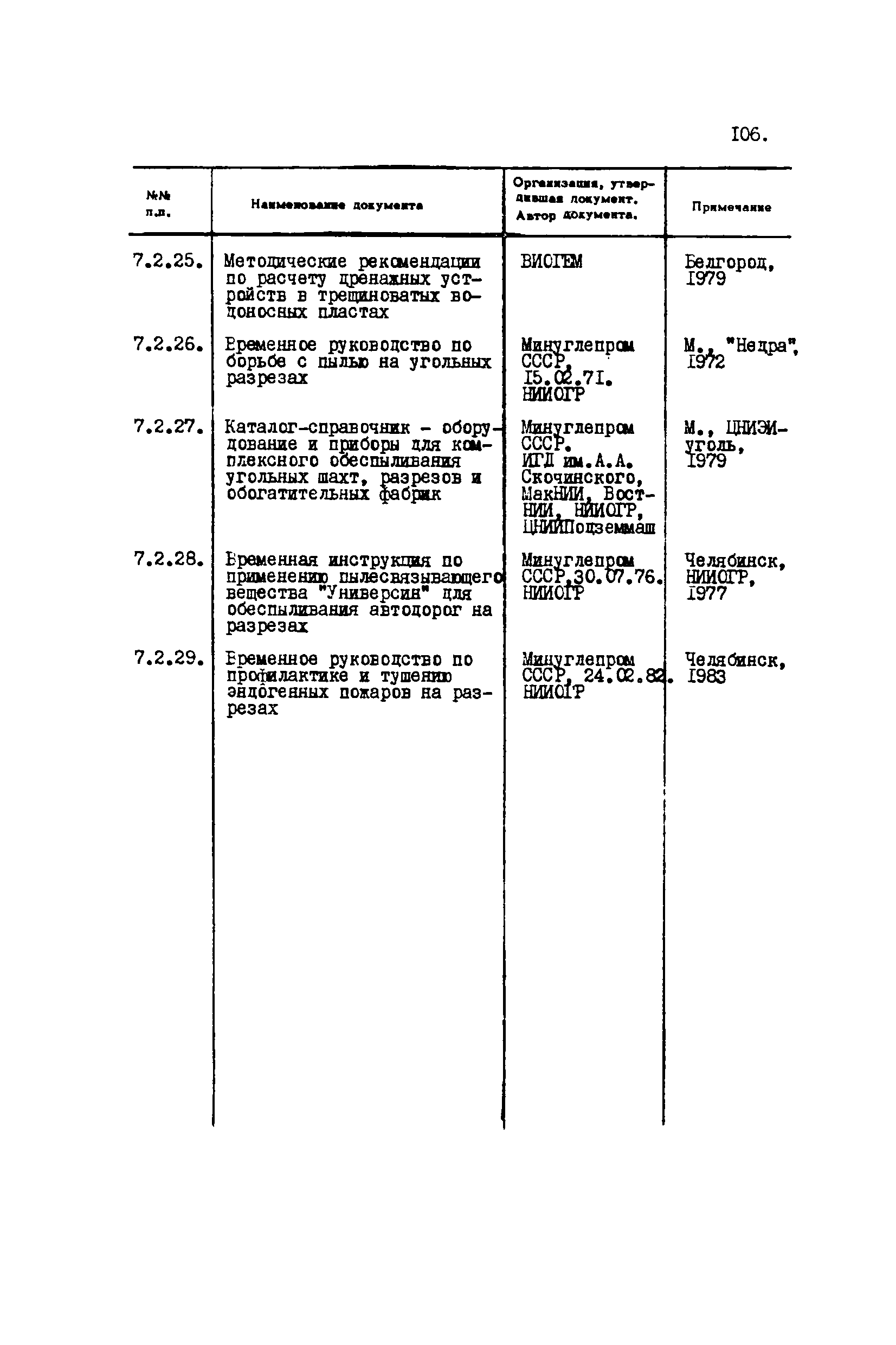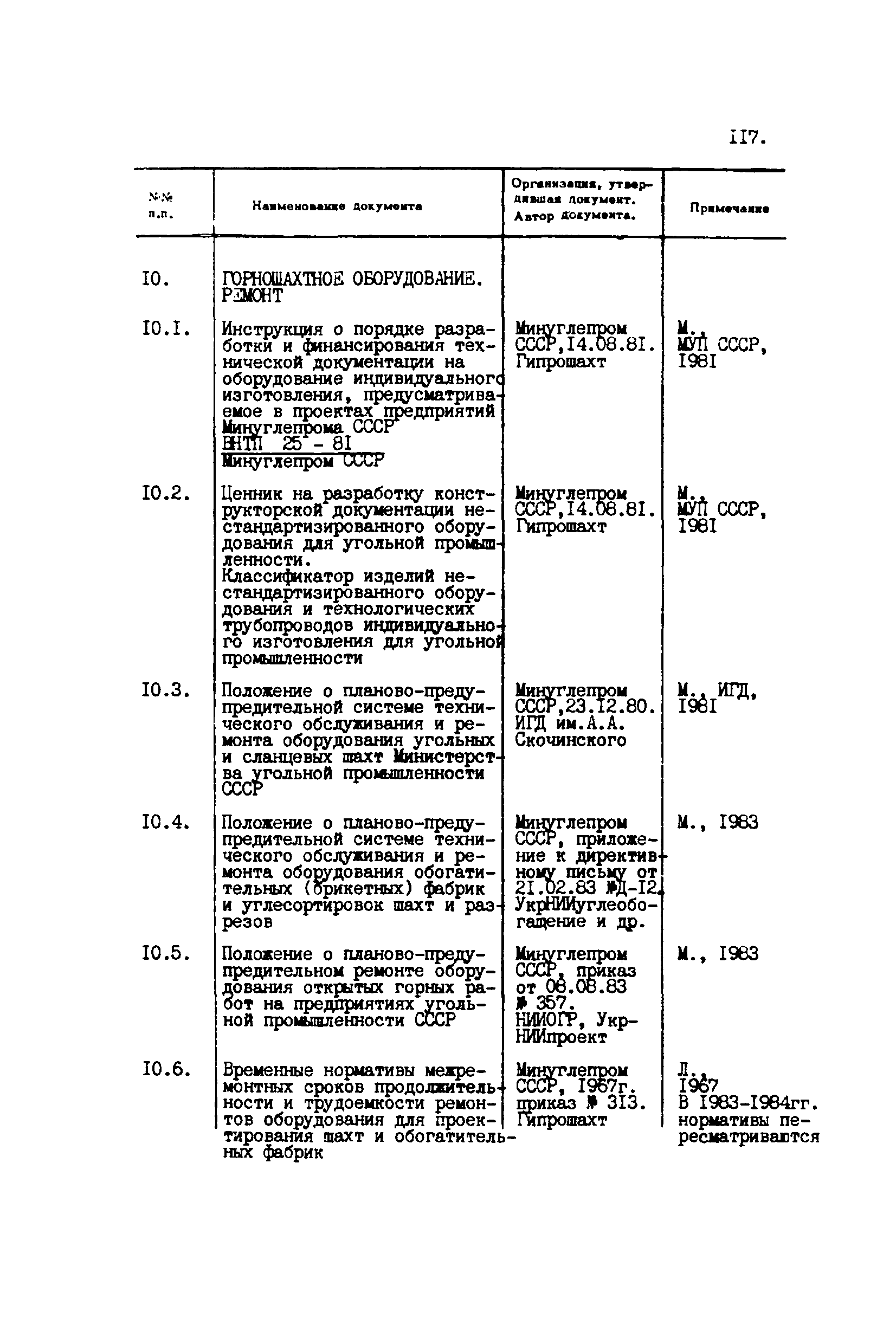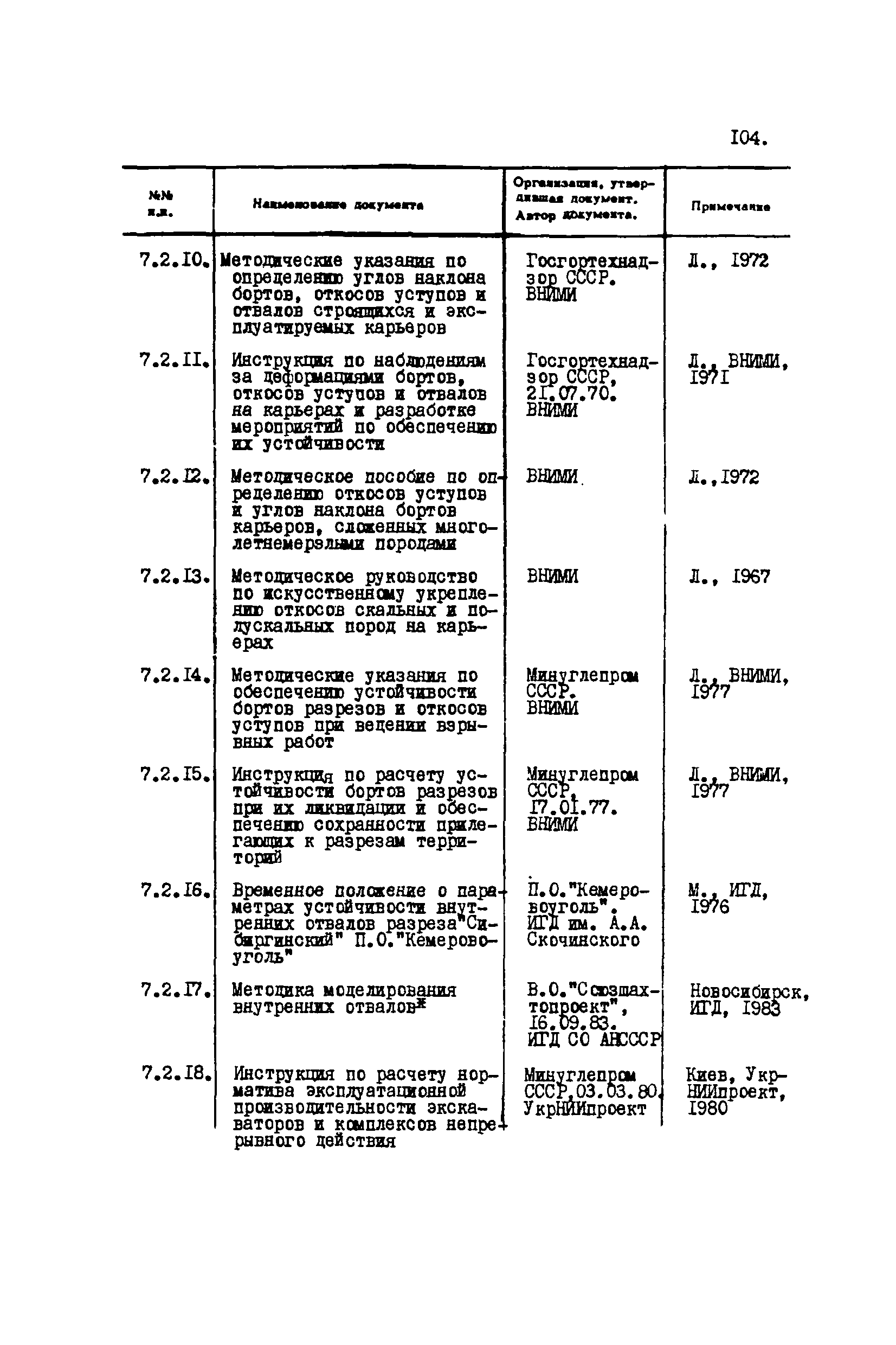 Перечень отраслевых нормативных документов и руководящих материалов по вопросам проектирования предприятий угольной промышленности| Статус: | справочные материалы, мп, тпр | | Название рус.: | Перечень отраслевых нормативных документов и руководящих материалов по вопросам проектирования предприятий угольной промышленности | | Дата добавления в базу: | 01.01.2021 | | Дата актуализации: | 01.01.2021 | | Область применения: | Перечень является периодическим изданием Центрогипрошахта и включает в себя отраслевые нормативные, директивные и руководящие материалы, используемые при проектировании предприятий угольной промышленности. Основными документами, входящими в Перечень, являются нормы технологического проектирования, инструкции, руководства, методики и другие работы, содержащие рекомендации по проектированию | | Оглавление: | 1. Перечни нормативных документов 2. Общие вопросы проектирования предприятий угольной промышленности 3. Отвод земель. Охрана окружающей среды 4. Геология. Гидрогеология 5. Маркшейдерия и геодезия 6. Подземная разработка угольных и сланцевых месторождений 7. Разработка угольных (сланцевых) месторождений открытым способом 8. Обогатительные фабрики 9. Буровзрывные работы на шахтах и разрезах 10. Горношахтное оборудование. Ремонт 11. Промышленные здания и сооружения 12. Промышленный транспорт 13. Складское хозяйство. Породные отвалы 14. Электроснабжение и электрооборудование. Автоматизация производственных процессов 15. Пневматическое хозяйство 16. Сантехника 17. Трубопроводы 18. Промсанитария. Гигиена труда 19. Экономика угольной промышленности 20. Управление угольными предприятиями и производственными процессами. Связь 21. НОТ в проектах 22. Инженерно-технические мероприятия гражданской обороны 23. Рационализация и изобретения 24. Информационное обслуживание | | Разработан: | Центрогипрошахт