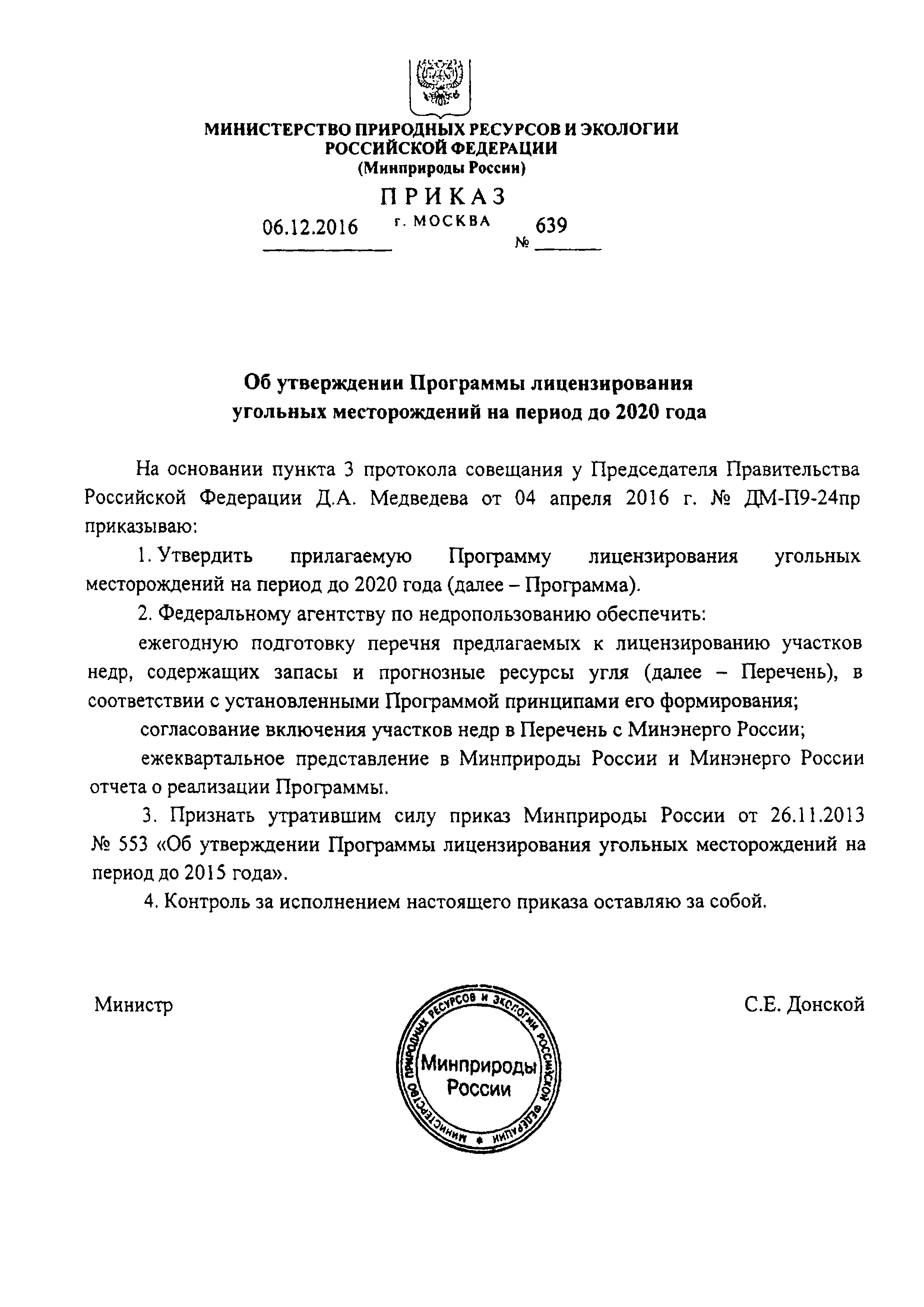 | Утверждён: | 06.12.2016 Министерство природных ресурсов и экологии Российской Федерации (639) |