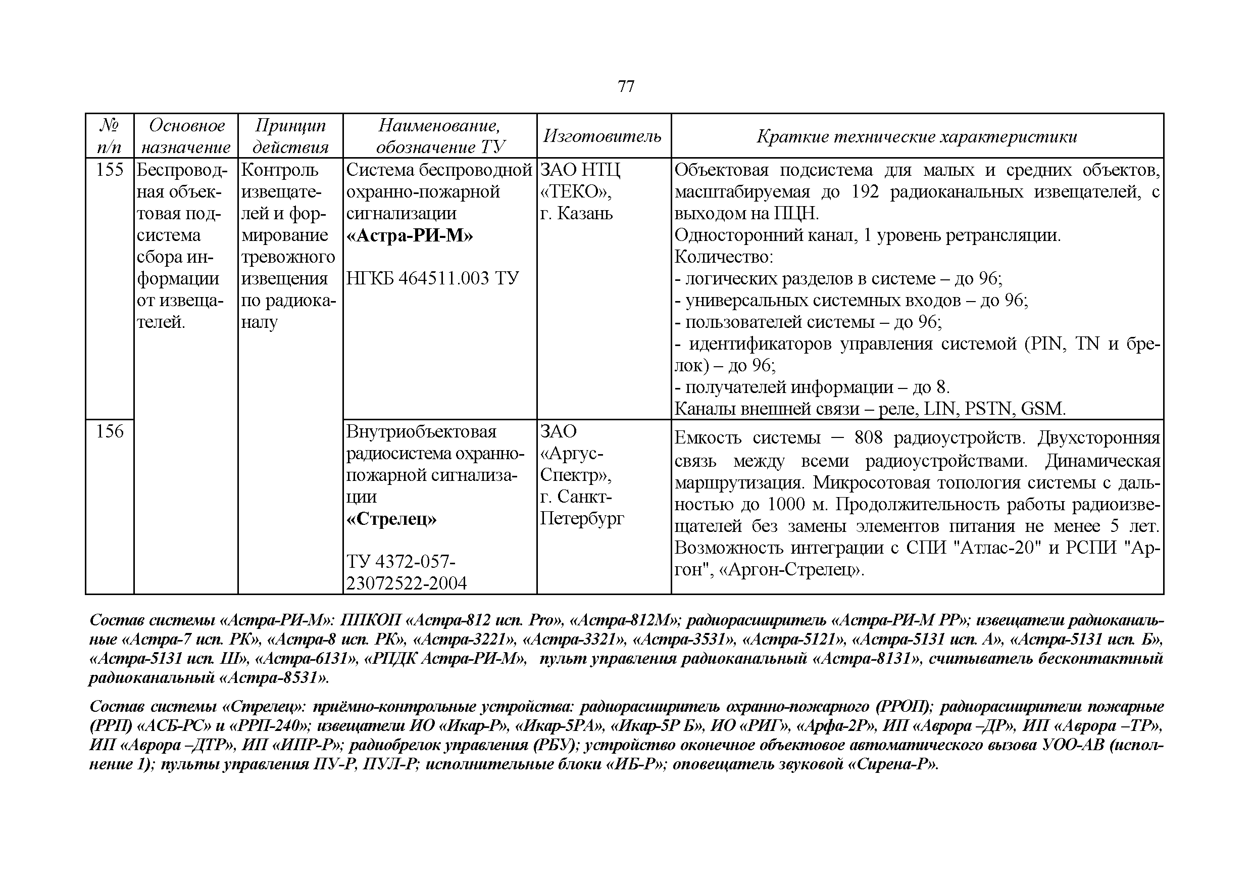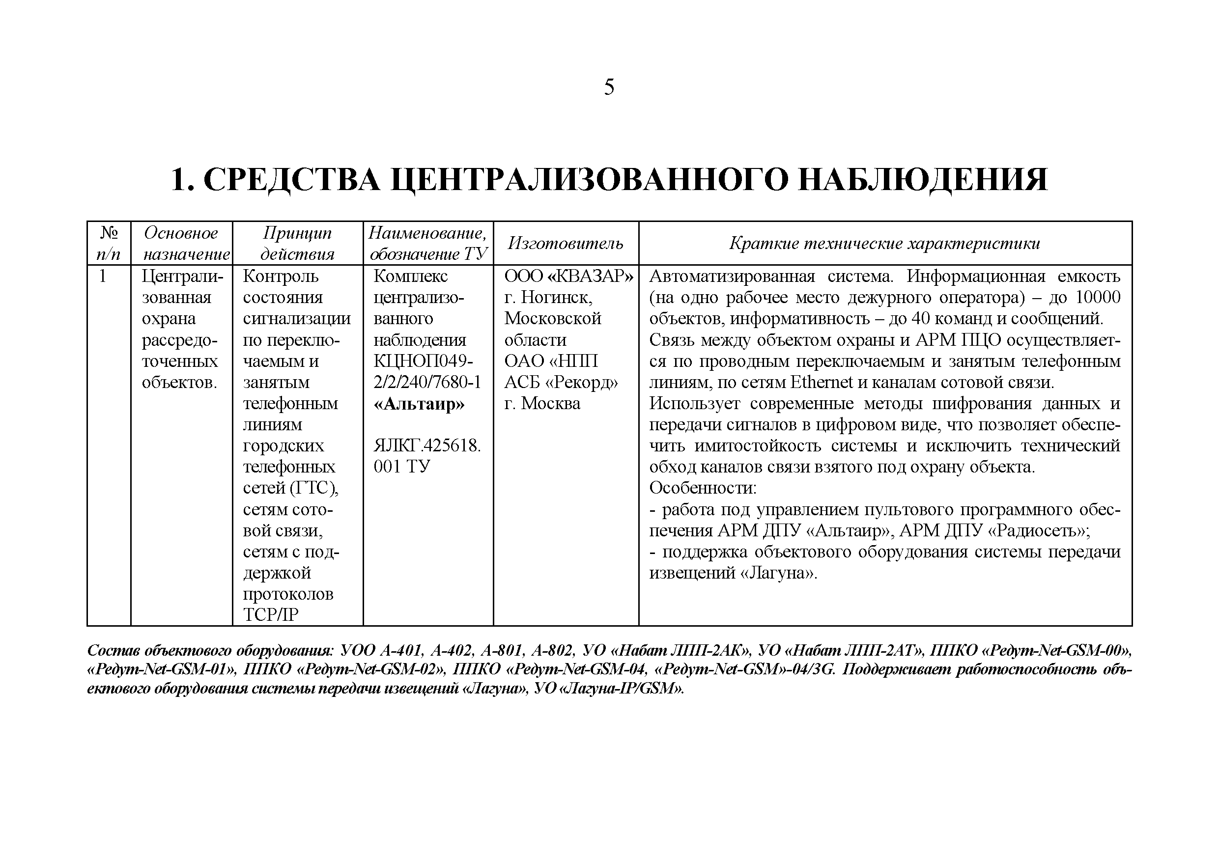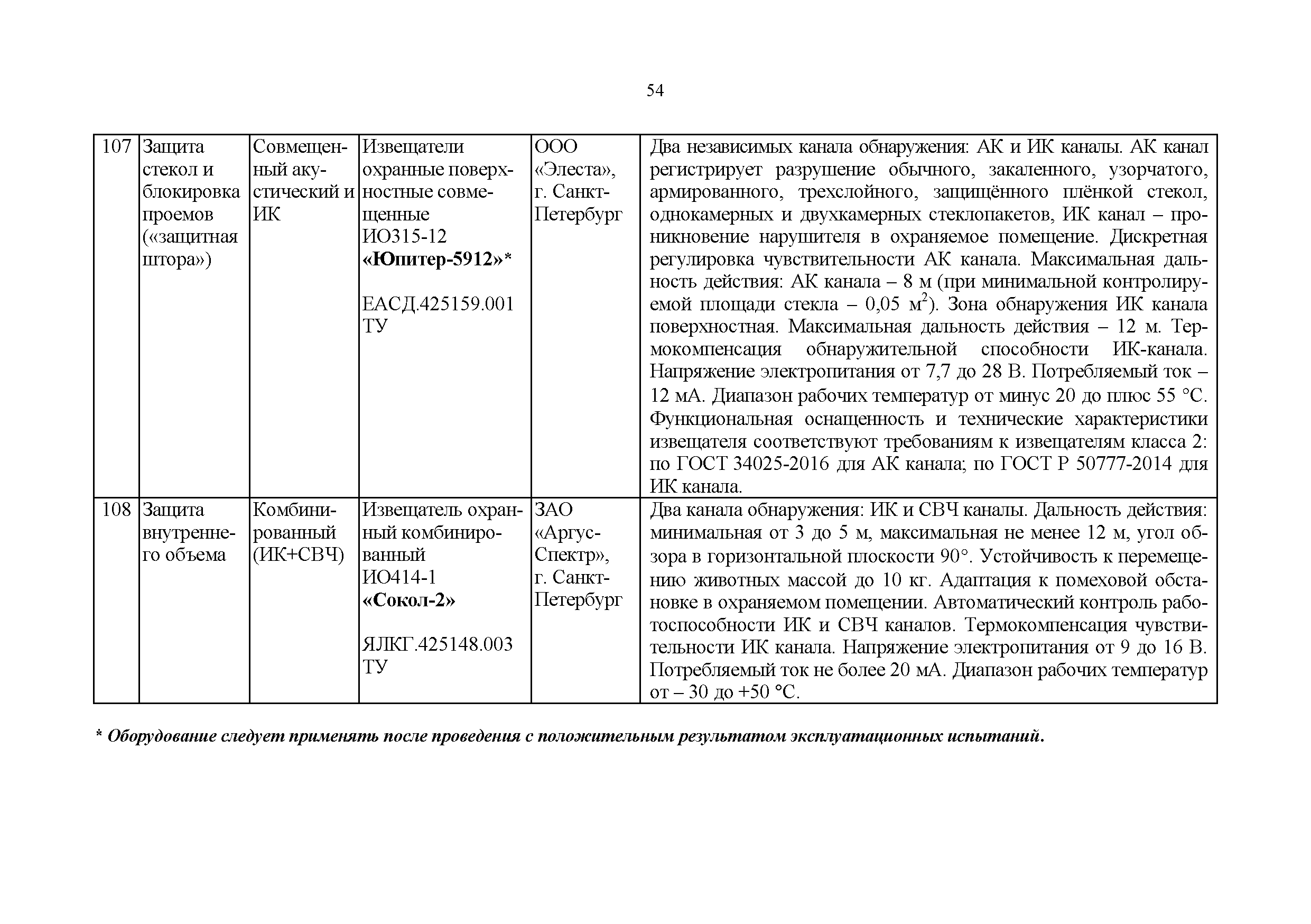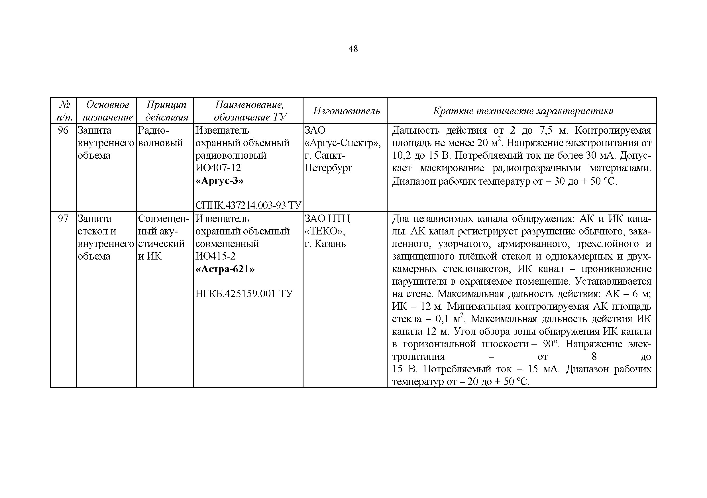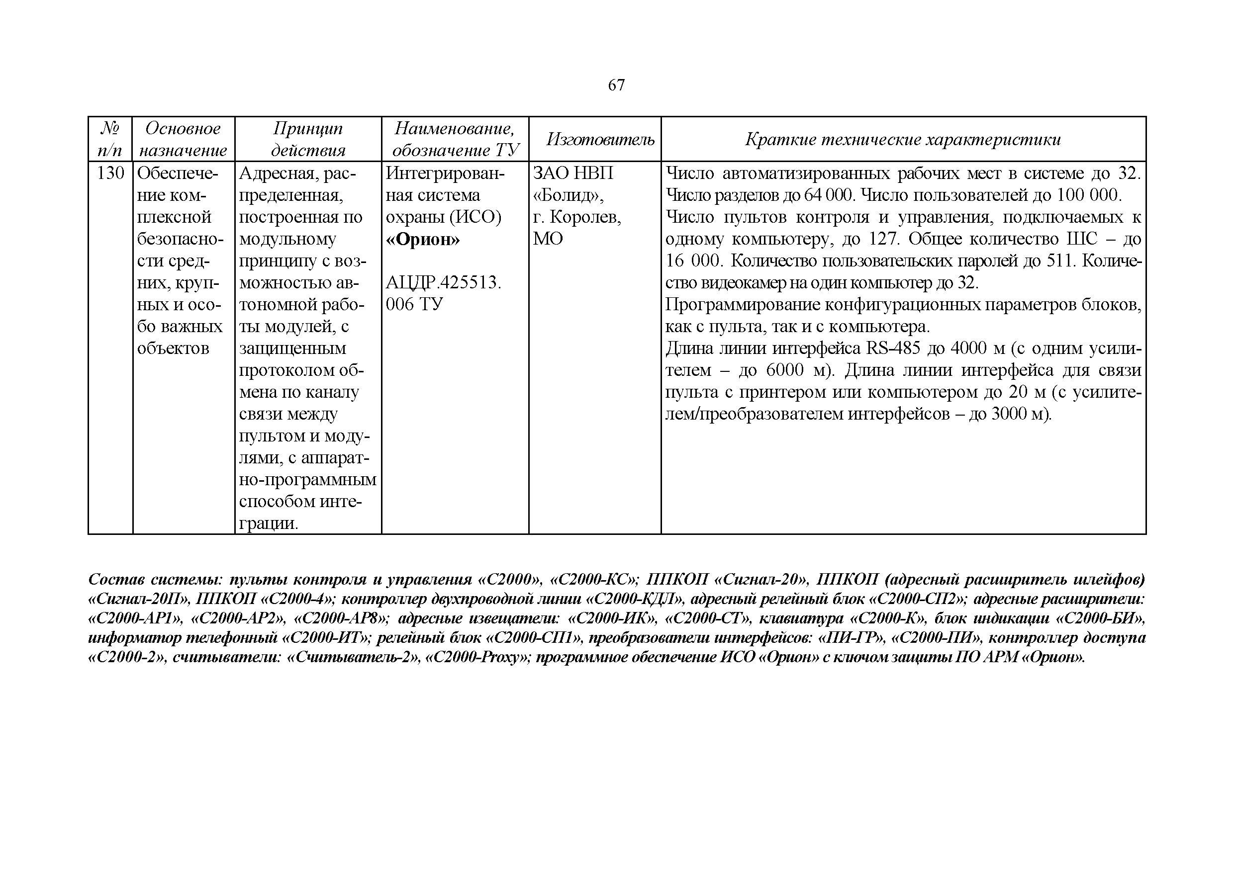 Список технических средств безопасности, удовлетворяющих "Единым требованиям к системам передачи извещений, объектовым техническим средствам охраны и охранным сигнально-противоугонным устройствам автотранспортных средств, предназначенным для применения в подразделениях вневедомственной охраны войск национальной гвардии Российской Федерации"| Статус: | не действует | | Название рус.: | Список технических средств безопасности, удовлетворяющих "Единым требованиям к системам передачи извещений, объектовым техническим средствам охраны и охранным сигнально-противоугонным устройствам автотранспортных средств, предназначенным для применения в подразделениях вневедомственной охраны войск национальной гвардии Российской Федерации" | | Дата добавления в базу: | 01.01.2021 | | Дата актуализации: | 01.01.2021 | | Область применения: | Список включает в себя аппаратуру, удовлетворяющую "Единым требованиям к системам передачи извещений, объектовым техническим средствам охраны и охранным сигнально-противоугонным устройствам автотранспортных средств, предназначенным для применения в подразделениях вневедомственной охраны войск национальной гвардии Российской Федерации". Список подготовлен в целях реализации единой технической политики в обеспечении надежной централизованной охраны объектов, квартир и других мест хранения личного имущества граждан. | | Оглавление: | Введение 1 Средства централизованного наблюдения 2 Средства обнаружения 2.1. Извещатели для помещений 2.2. Извещатели для открытых площадок 3 Объектовые средства 3.1. Интегрированные системы безопасности (комплексы технических средств безопасности, комбинированные системы безопасности) 3.2. Источники электропитания 3.3. Средства тревожной сигнализации 3.4. Средства беспроводной охранной сигнализации 3.5. Охранные сигнально-противоугонные устройства автотранспортных средств | | Разработан: | ФКУ НИЦ Охрана Росгвардии