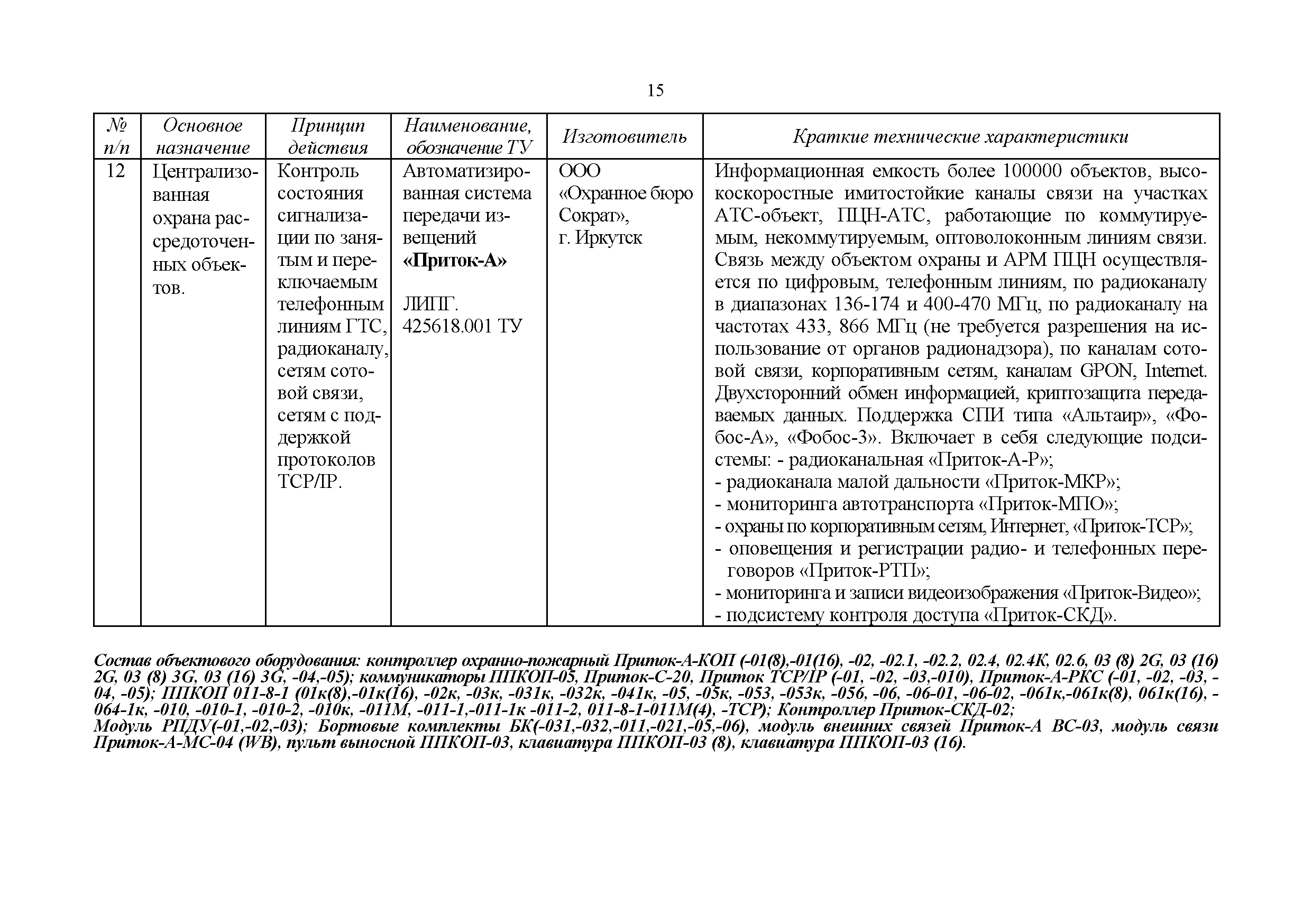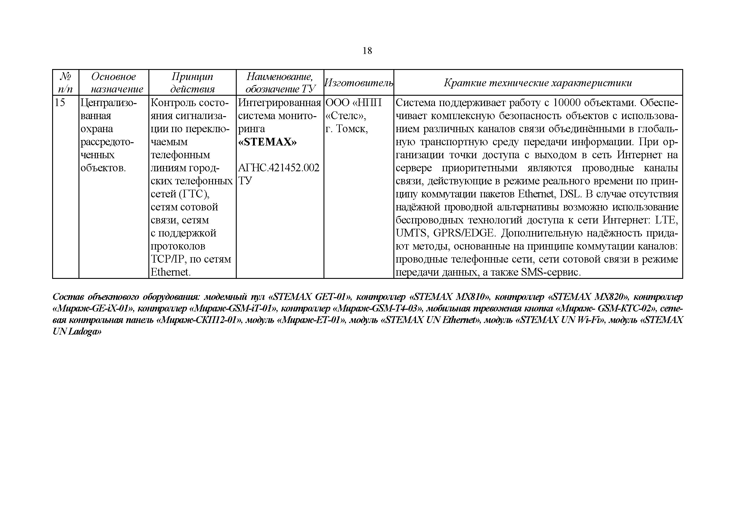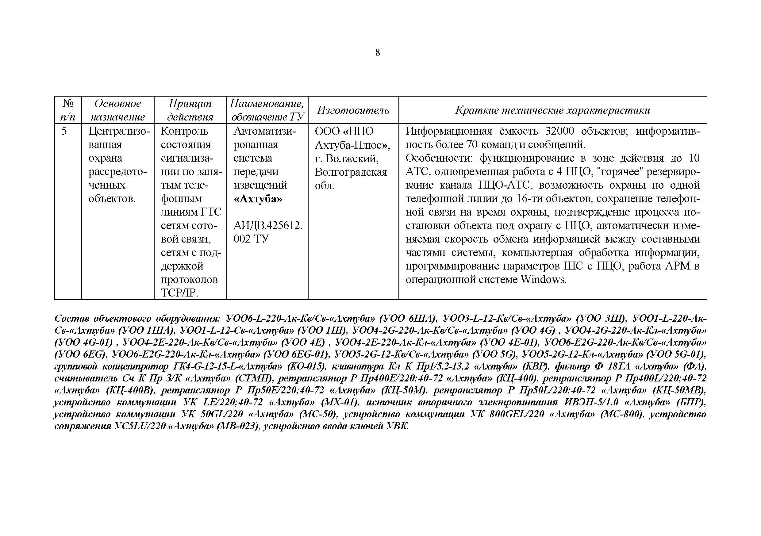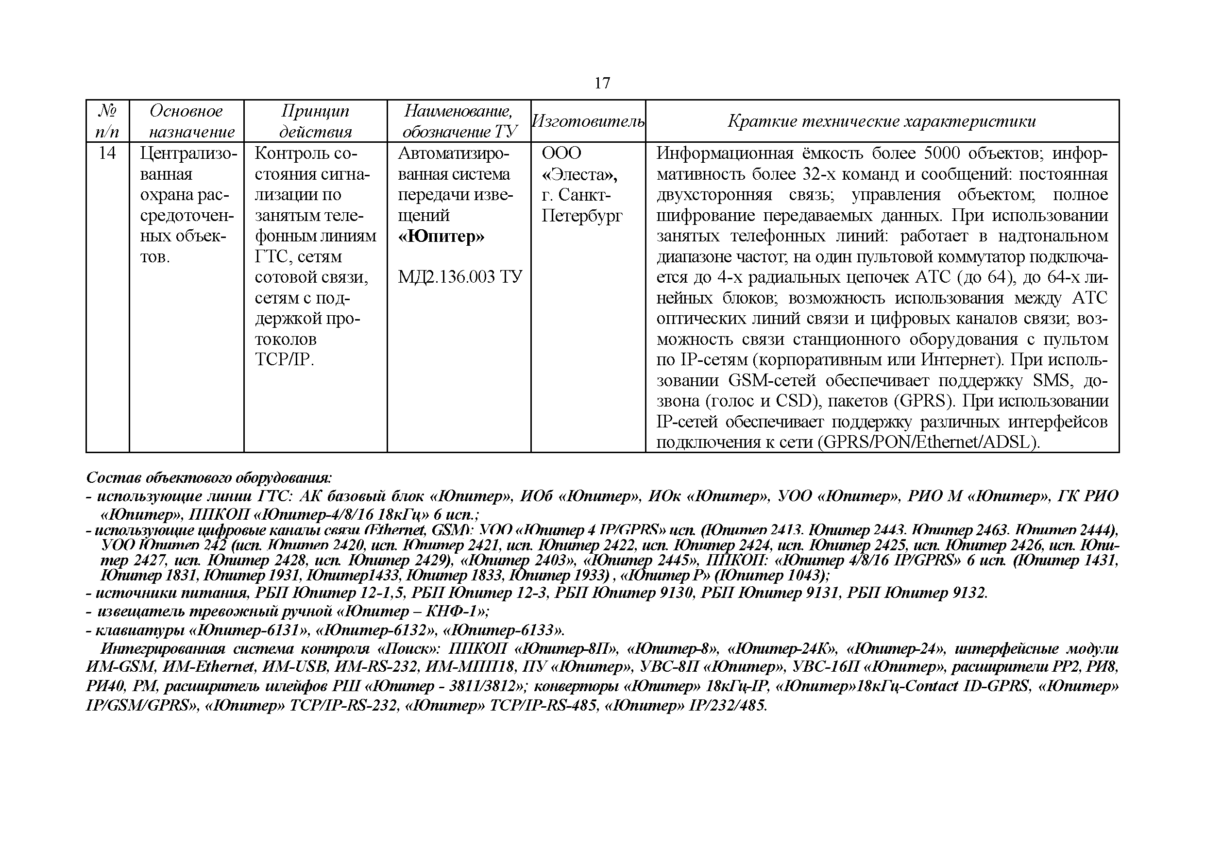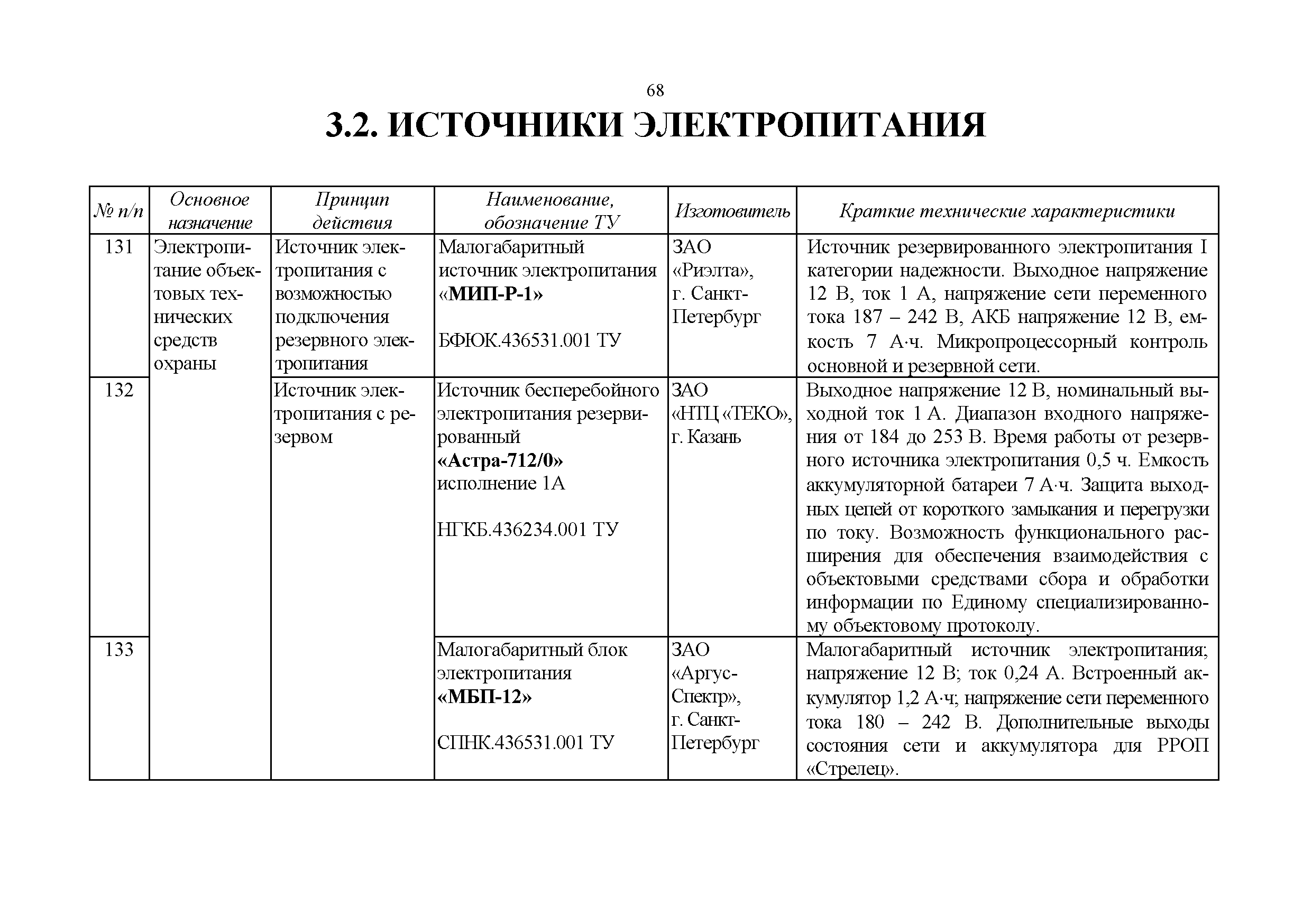 Список технических средств безопасности, удовлетворяющих "Единым требованиям к системам передачи извещений, объектовым техническим средствам охраны и охранным сигнально-противоугонным устройствам автотранспортных средств, предназначенным для применения в подразделениях вневедомственной охраны войск национальной гвардии Российской Федерации"| Статус: | не действует | | Название рус.: | Список технических средств безопасности, удовлетворяющих "Единым требованиям к системам передачи извещений, объектовым техническим средствам охраны и охранным сигнально-противоугонным устройствам автотранспортных средств, предназначенным для применения в подразделениях вневедомственной охраны войск национальной гвардии Российской Федерации" | | Дата добавления в базу: | 01.01.2021 | | Дата актуализации: | 01.01.2021 | | Область применения: | Список включает в себя аппаратуру, удовлетворяющую "Единым требованиям к системам передачи извещений, объектовым техническим средствам охраны и охранным сигнально-противоугонным устройствам автотранспортных средств, предназначенным для применения в подразделениях вневедомственной охраны войск национальной гвардии Российской Федерации". Список подготовлен в целях реализации единой технической политики в обеспечении надежной централизованной охраны объектов, квартир и других мест хранения личного имущества граждан. | | Оглавление: | Введение 1 Средства централизованного наблюдения 2 Средства обнаружения 2.1. Извещатели для помещений 2.2. Извещатели для открытых площадок 3 Объектовые средства 3.1. Интегрированные системы безопасности (комплексы технических средств безопасности, комбинированные системы безопасности) 3.2. Источники электропитания 3.3. Средства тревожной сигнализации 3.4. Средства беспроводной охранной сигнализации 3.5. Охранные сигнально-противоугонные устройства автотранспортных средств | | Разработан: | ФКУ НИЦ Охрана Росгвардии