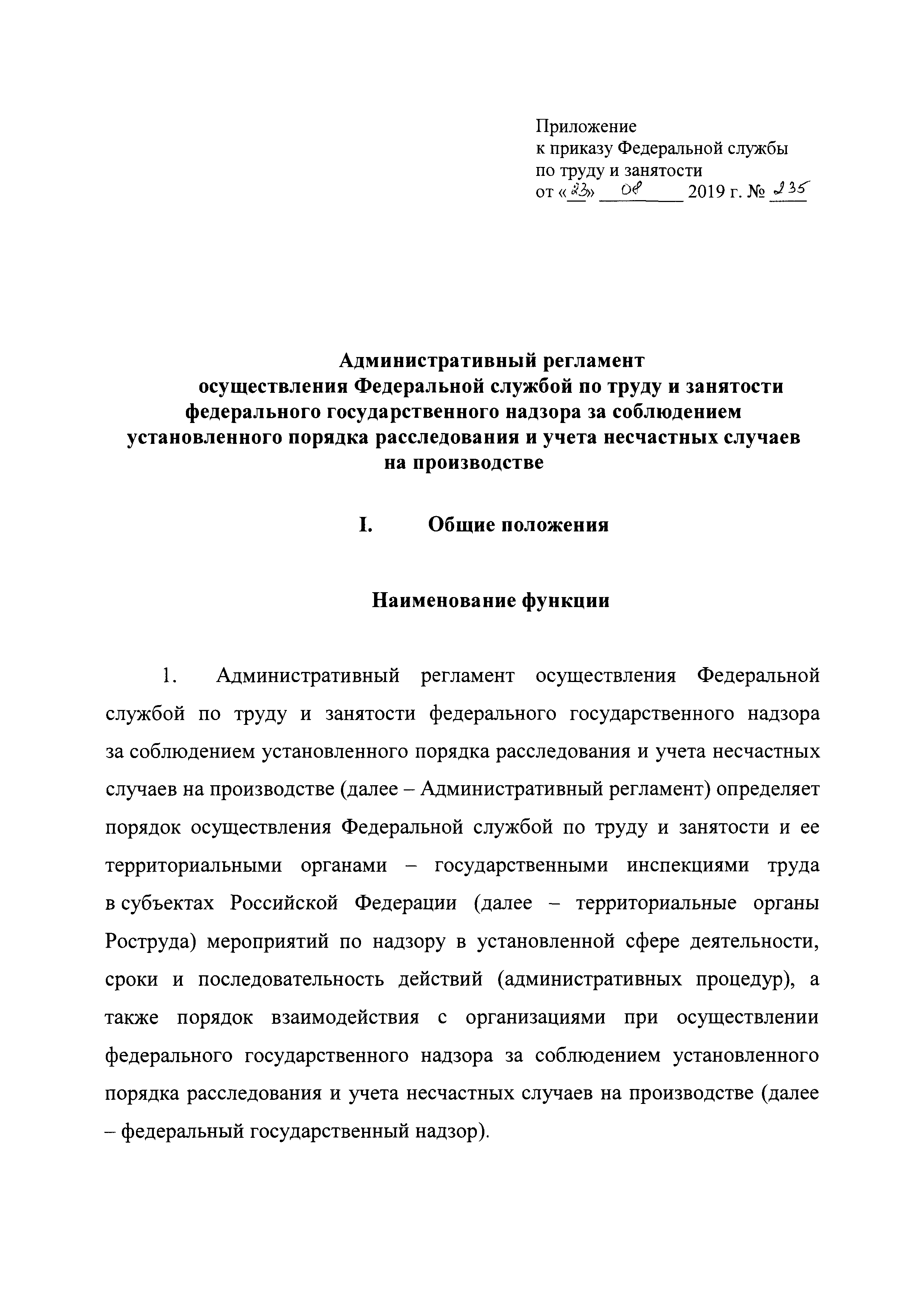 Административный регламент осуществления Федеральной службой по труду и занятости федерального государственного надзора за соблюдением установленного порядка расследования и учета несчастных случаев на производстве