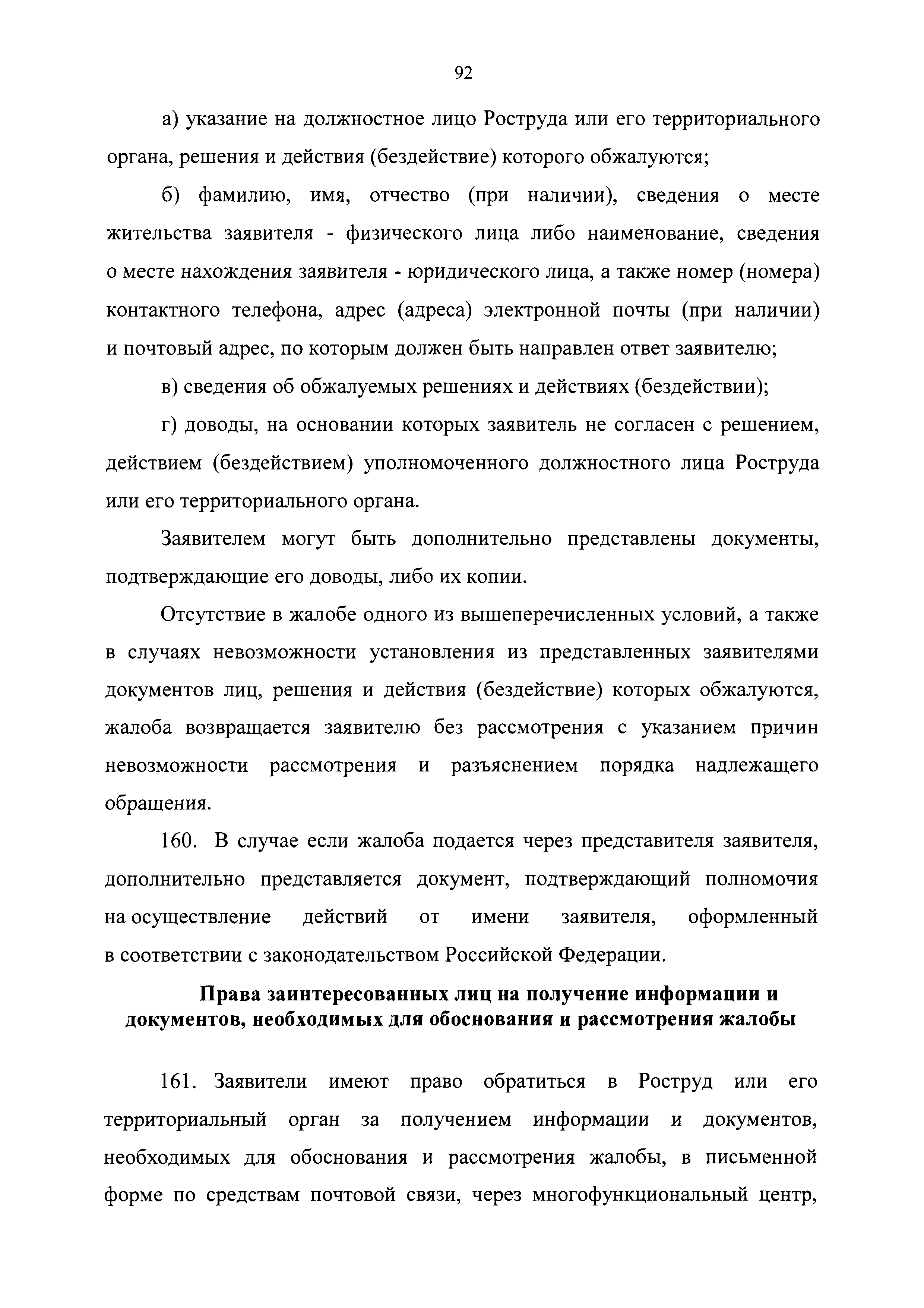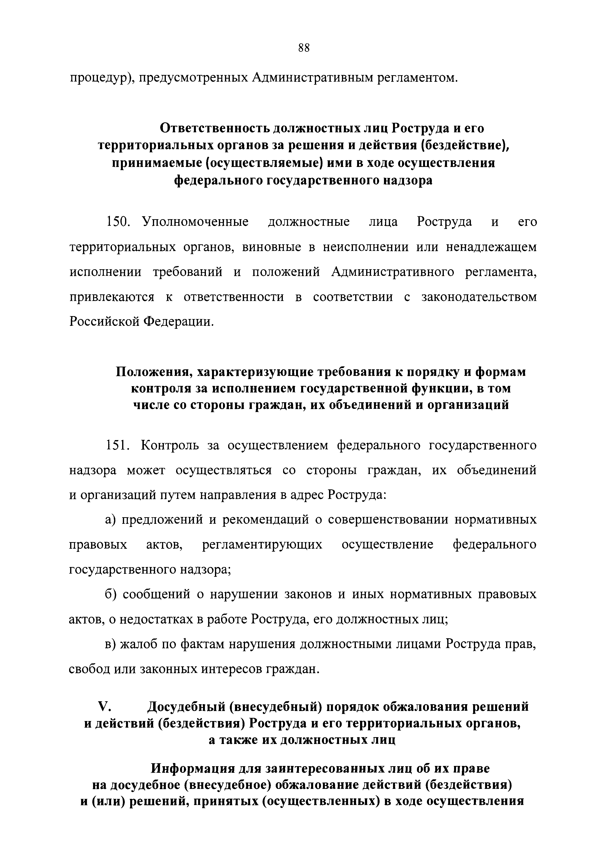 V. Досудебный (внесудебный) порядок обжалования решений и действий (бездействия) Роструда и его территориальных органов, а также их должностных лиц