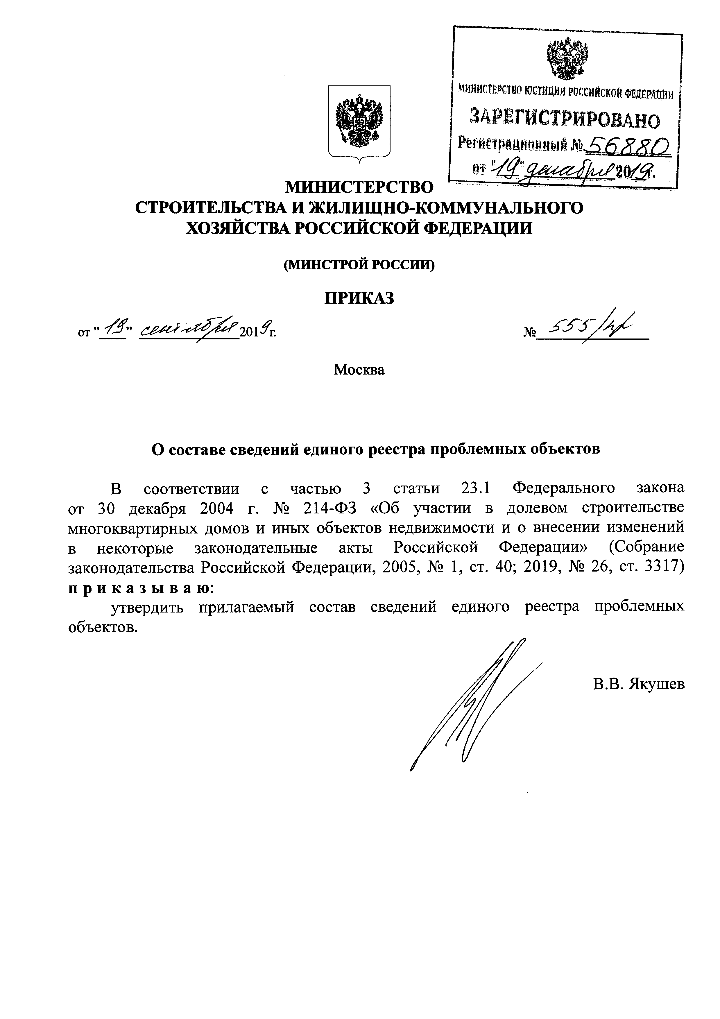 | Утверждён: | 19.09.2019 Министерство строительства и жилищно-коммунального хозяйства Российской Федерации (555/пр)