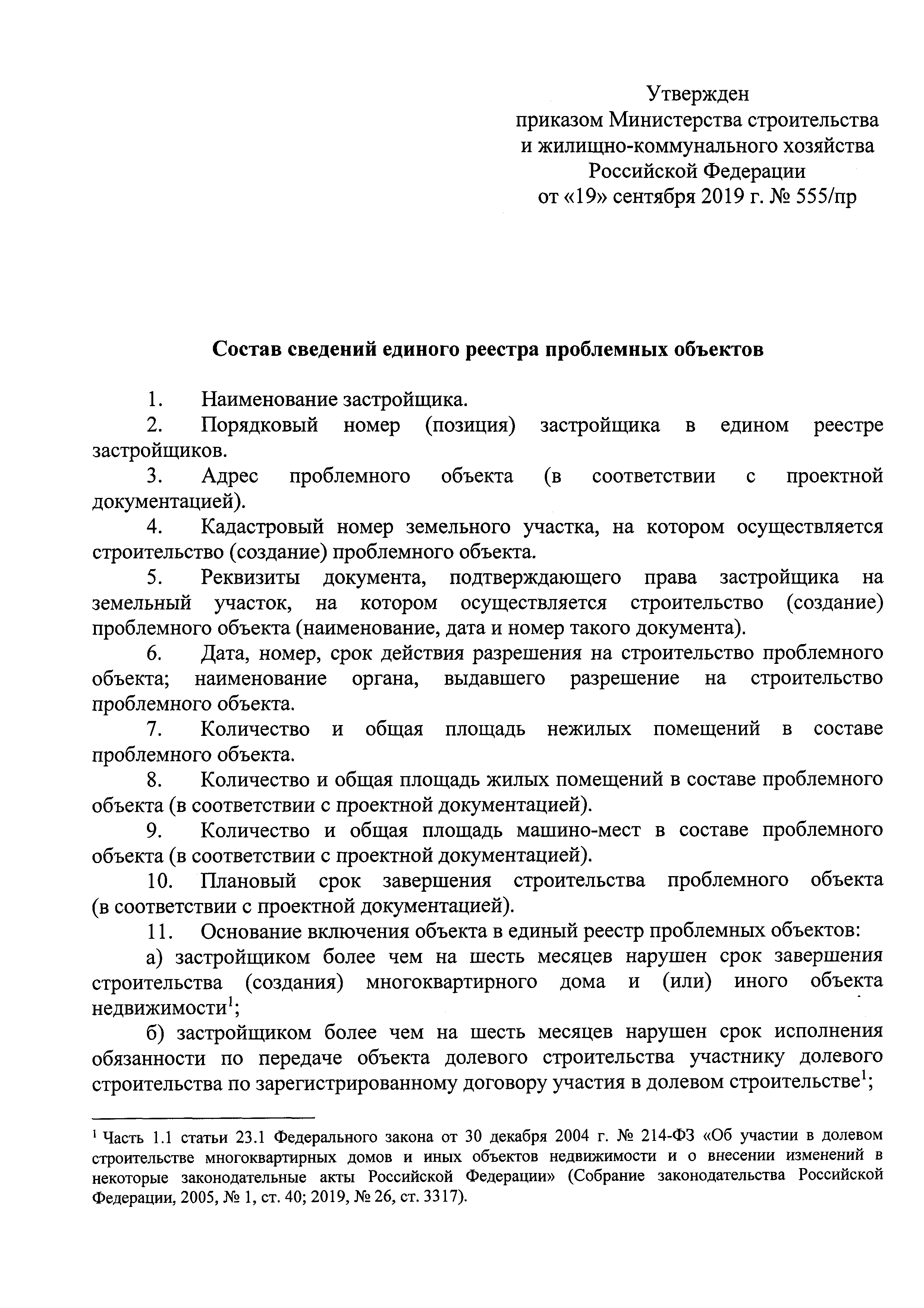 | Название рус.: | Состав сведений единого реестра проблемных объектов |