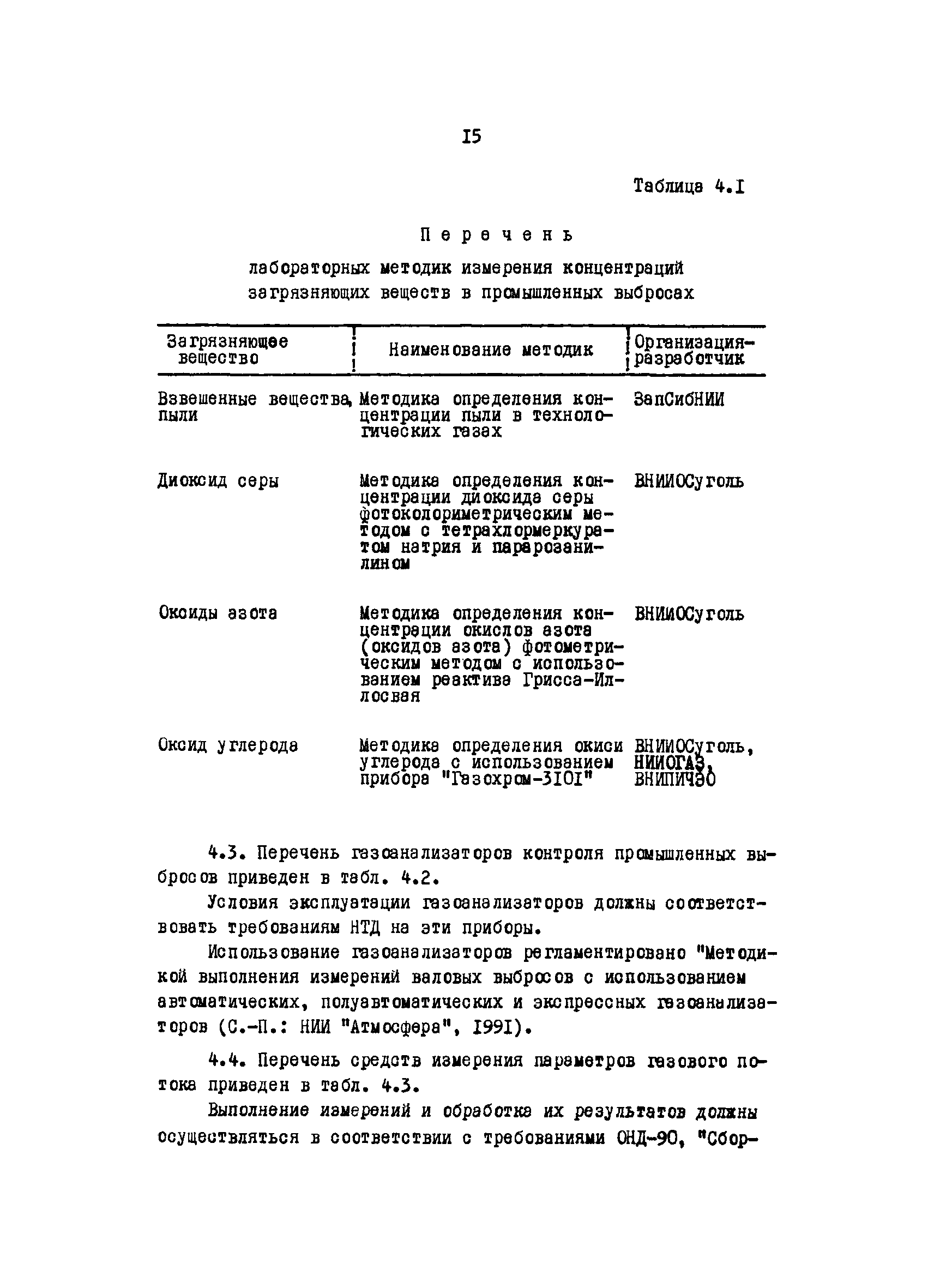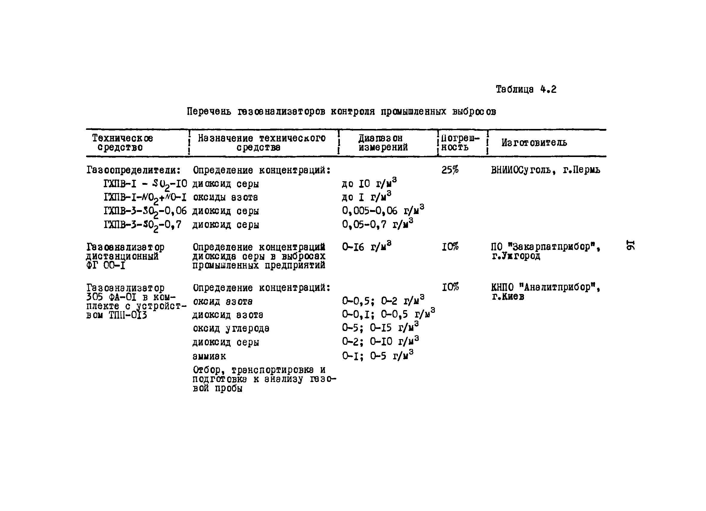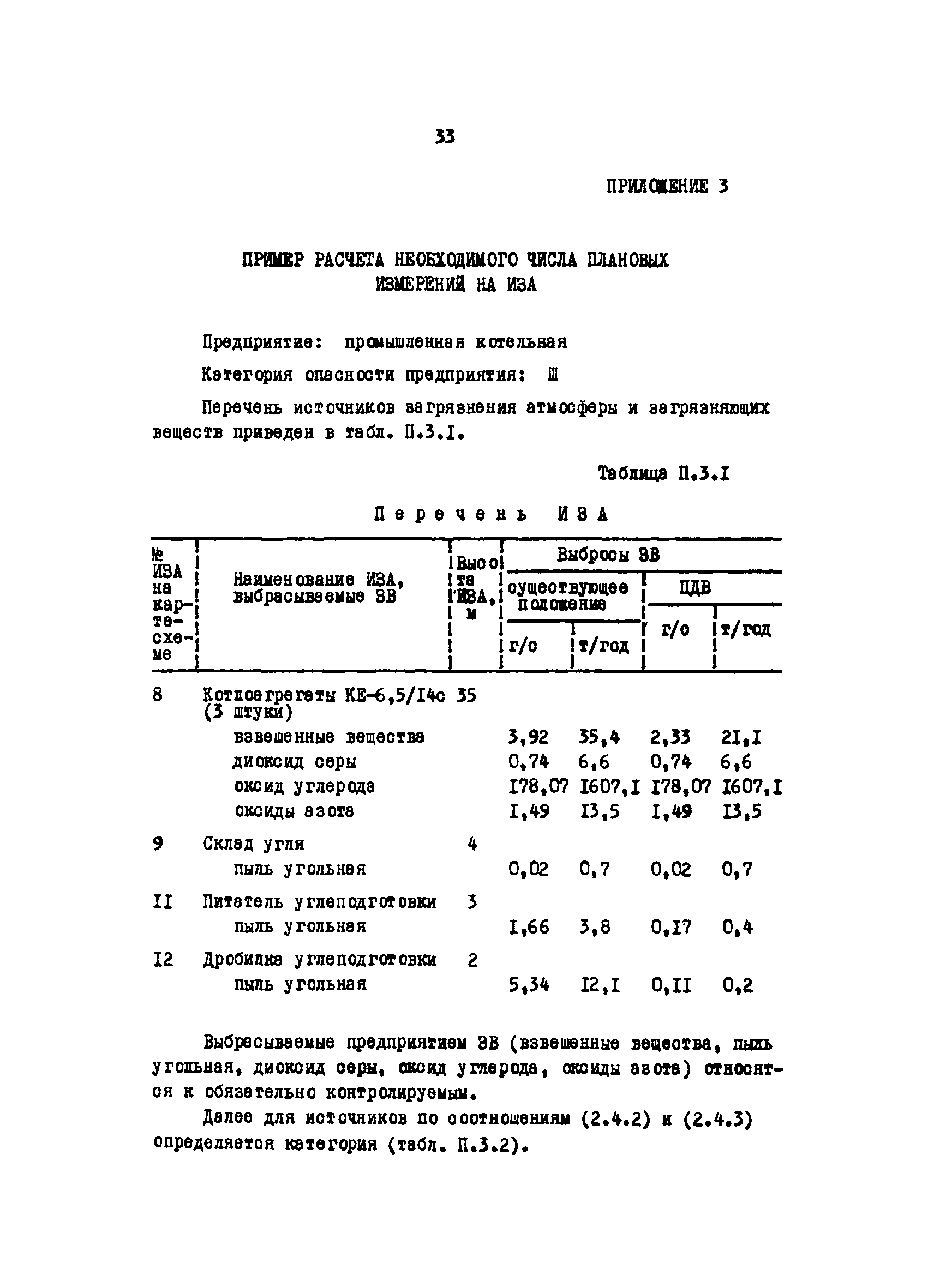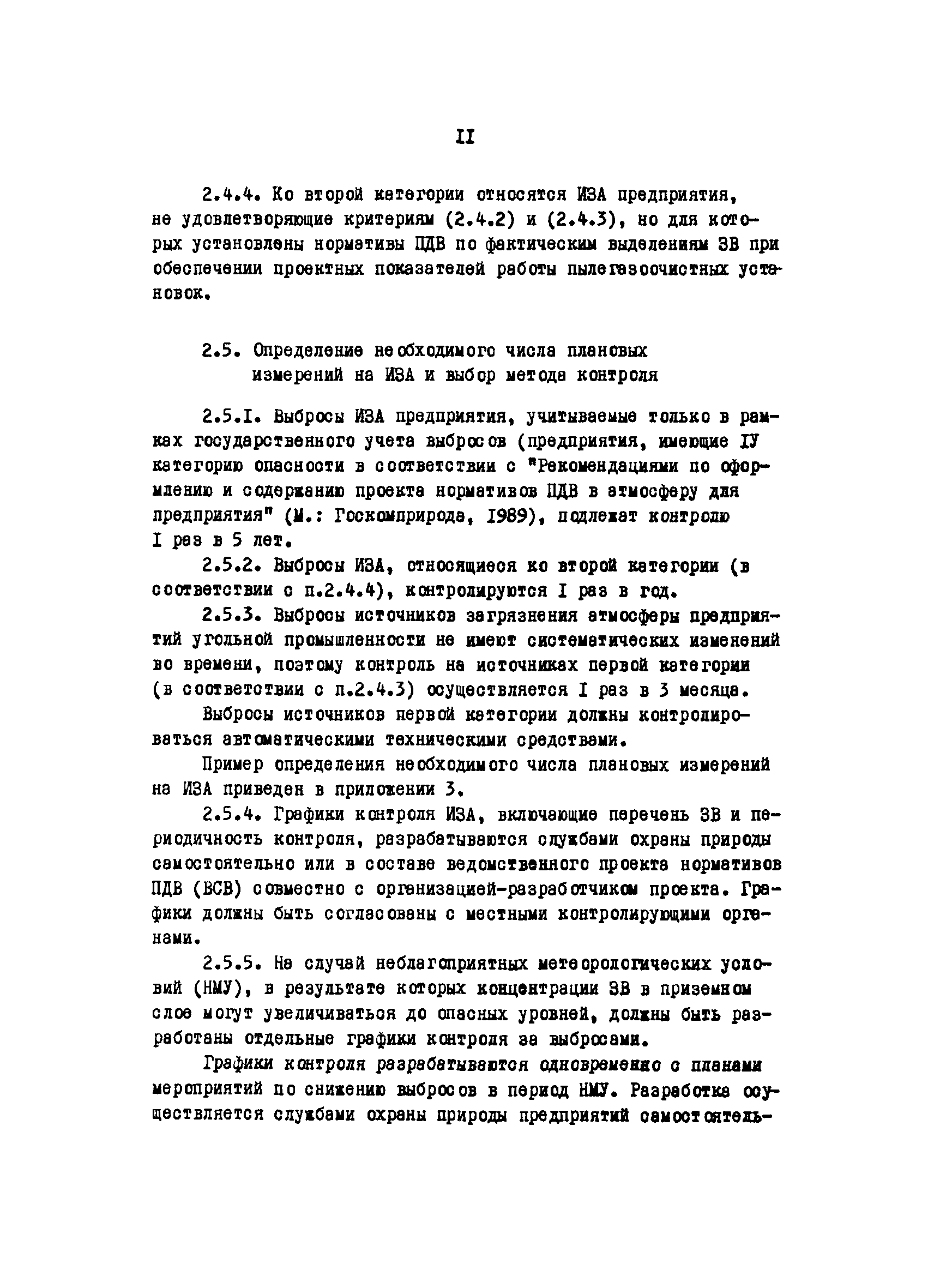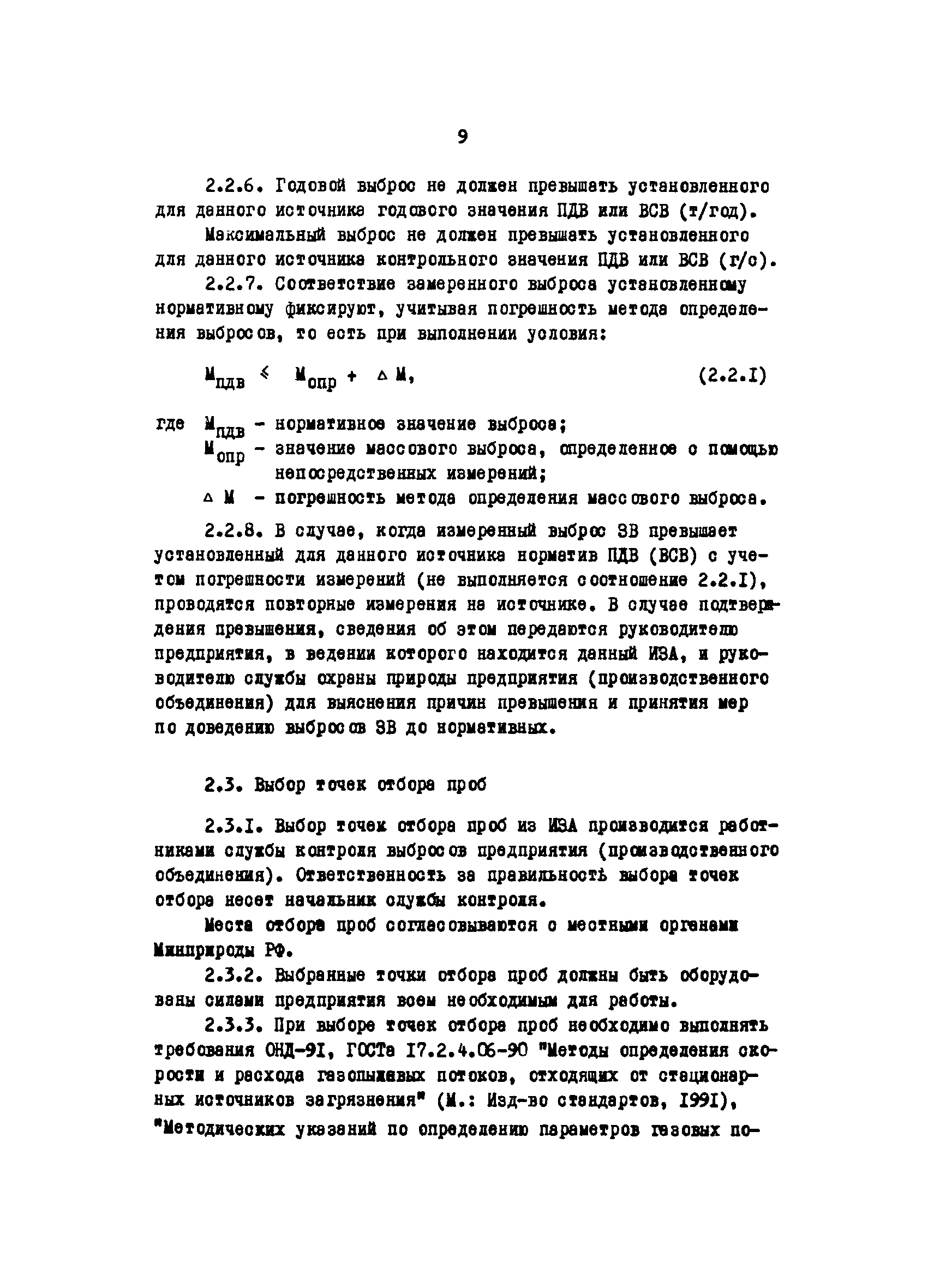 | Оглавление: | 1. Общие положения 2. Организация работ по контролю за выбросами на предприятиях 2.1. Создание службы контроля промышленных выбросов 2.2. Составление программы работ и проведение измерений 2.3. Выбор точек отбора проб 2.4. Определение перечня ЗВ и ИЗА, подлежащих контролю 2.5. Определение необходимого числа плановых измерений на ИЗА и выбор метода контроля 2.6. Составление отчетности о результатах контроля источников и обспечении соблюдения нормативов ПДВ (ВСВ) 3. Структура отраслевого контроля 4. Перечень применяемых методов и средств контроля выбросов загрязняющих веществ в атмосферу 5. Перечень нормативно-технических документов, используемых при организации контроля Приложение 1 Порядок и пример расчета численности сотрудников, занимающихся контролем выбросов ВЗ в атмосферу Приложение 2 Техника безопасности при проведении измерений Приложение 3 Пример расчета необходимого числа плановых измерений на ИЗА Приложение 4 Порядок определения запыленности отходящих газов на организованных ИЗА Приложение 5 Порядок контроля газоочистного оборудования |