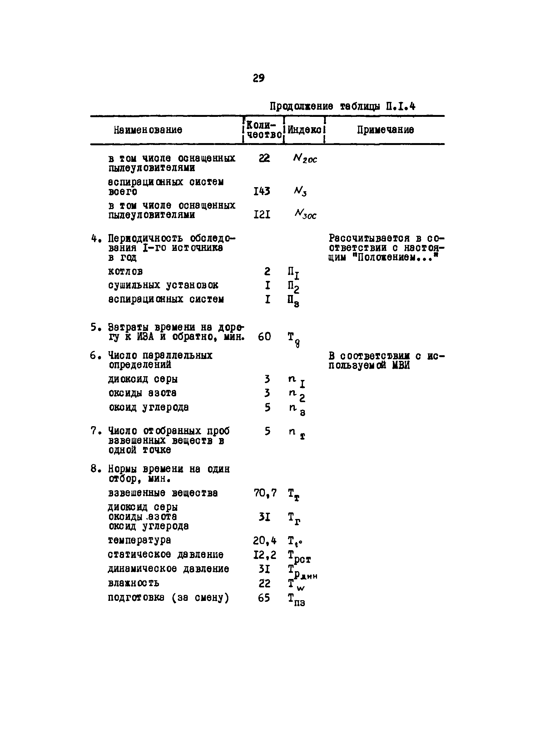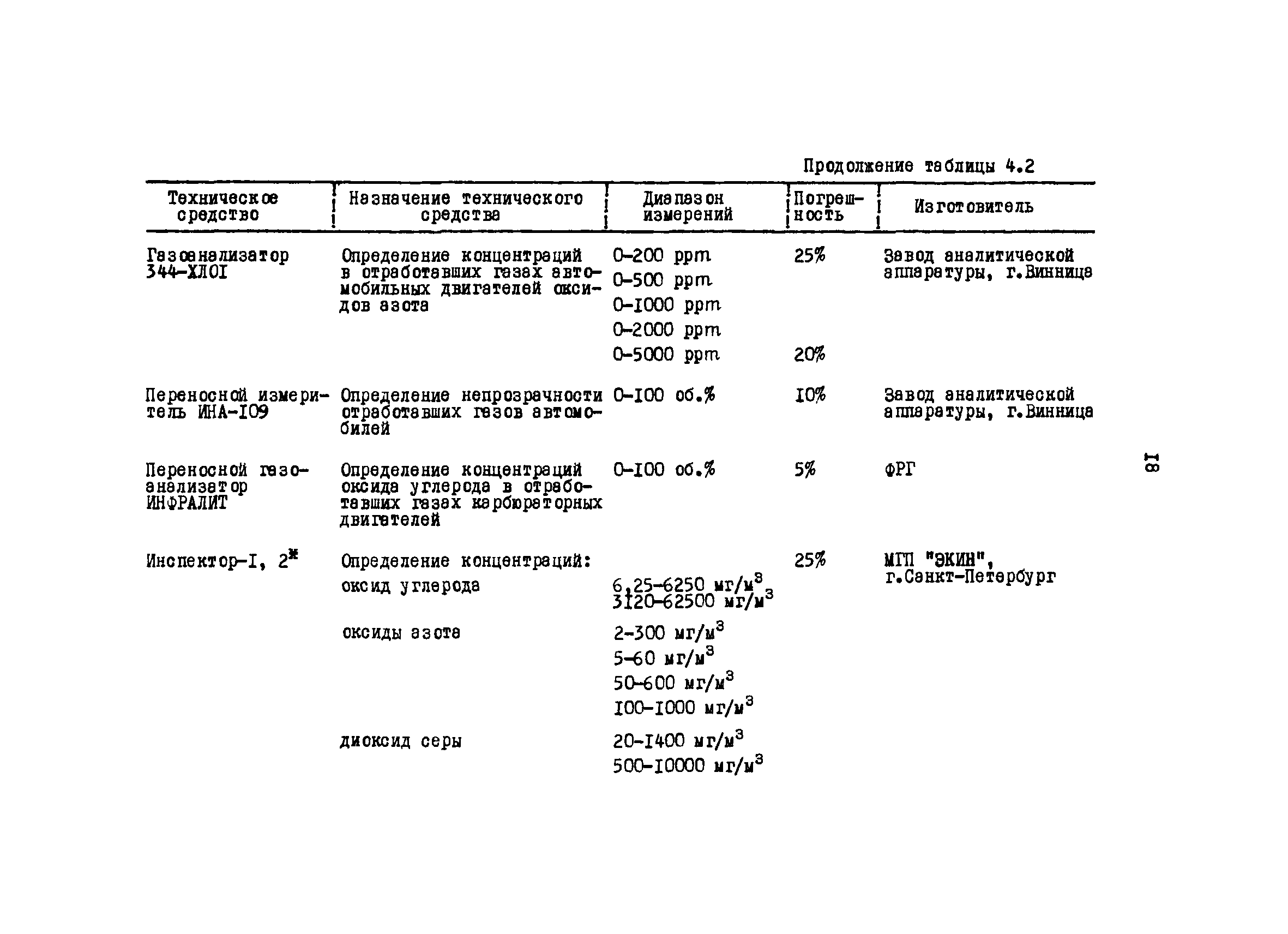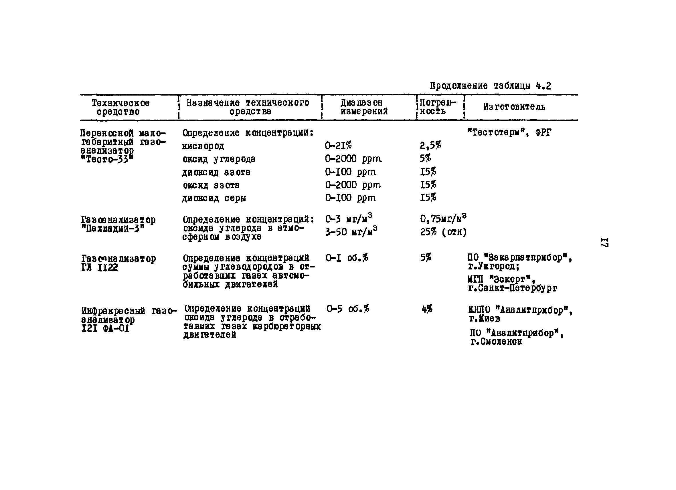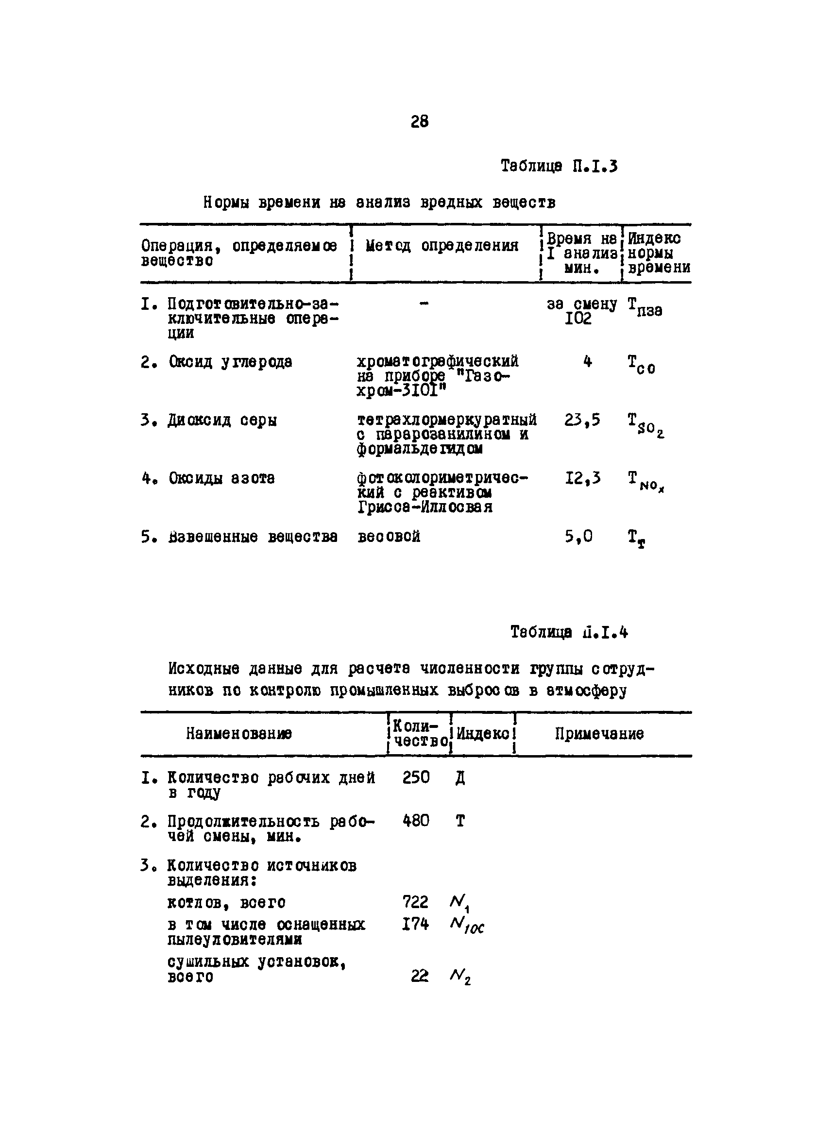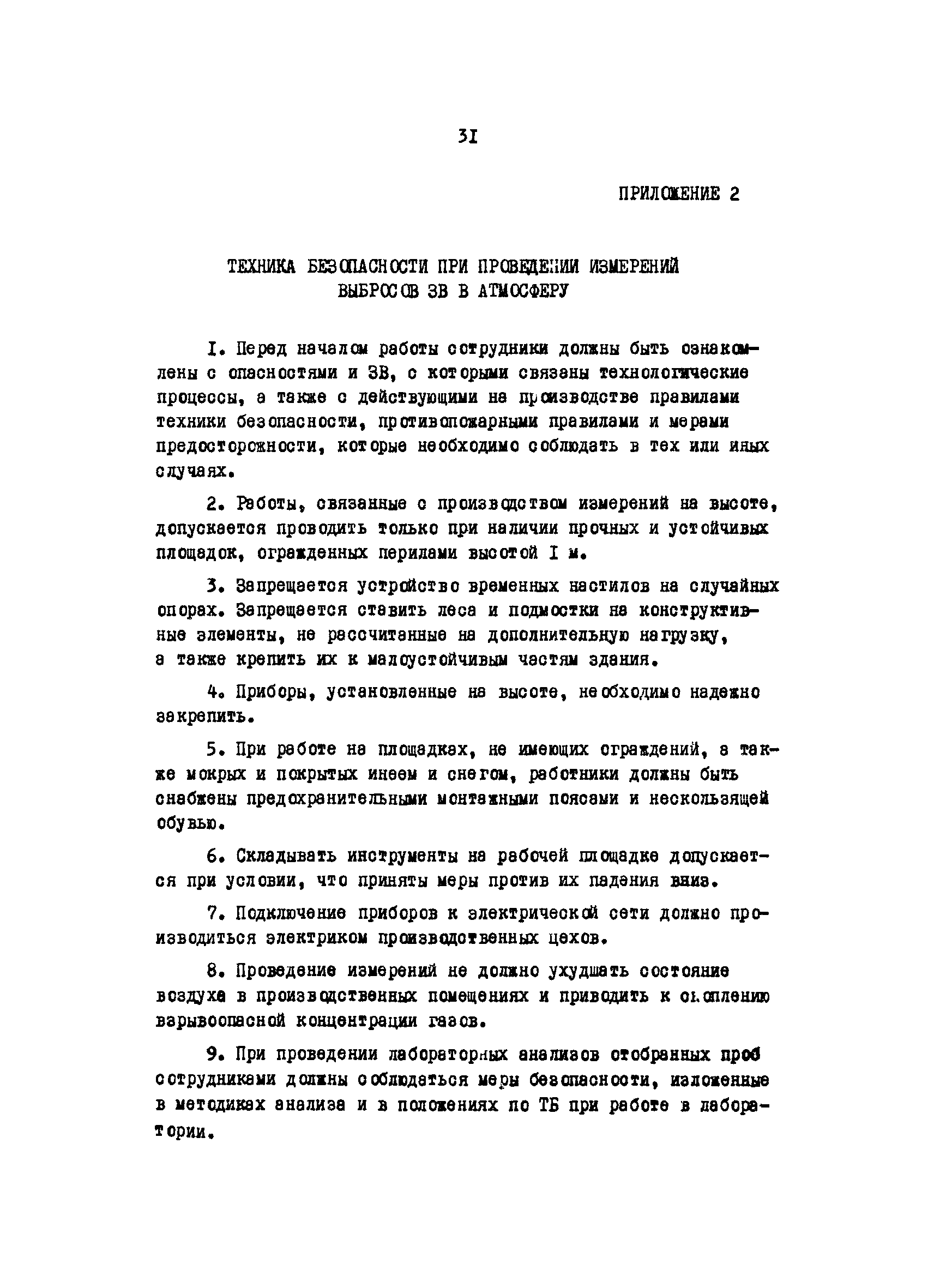 | Оглавление: | 1. Общие положения 2. Организация работ по контролю за выбросами на предприятиях 2.1. Создание службы контроля промышленных выбросов 2.2. Составление программы работ и проведение измерений 2.3. Выбор точек отбора проб 2.4. Определение перечня ЗВ и ИЗА, подлежащих контролю 2.5. Определение необходимого числа плановых измерений на ИЗА и выбор метода контроля 2.6. Составление отчетности о результатах контроля источников и обспечении соблюдения нормативов ПДВ (ВСВ) 3. Структура отраслевого контроля 4. Перечень применяемых методов и средств контроля выбросов загрязняющих веществ в атмосферу 5. Перечень нормативно-технических документов, используемых при организации контроля Приложение 1 Порядок и пример расчета численности сотрудников, занимающихся контролем выбросов ВЗ в атмосферу Приложение 2 Техника безопасности при проведении измерений Приложение 3 Пример расчета необходимого числа плановых измерений на ИЗА Приложение 4 Порядок определения запыленности отходящих газов на организованных ИЗА Приложение 5 Порядок контроля газоочистного оборудования |