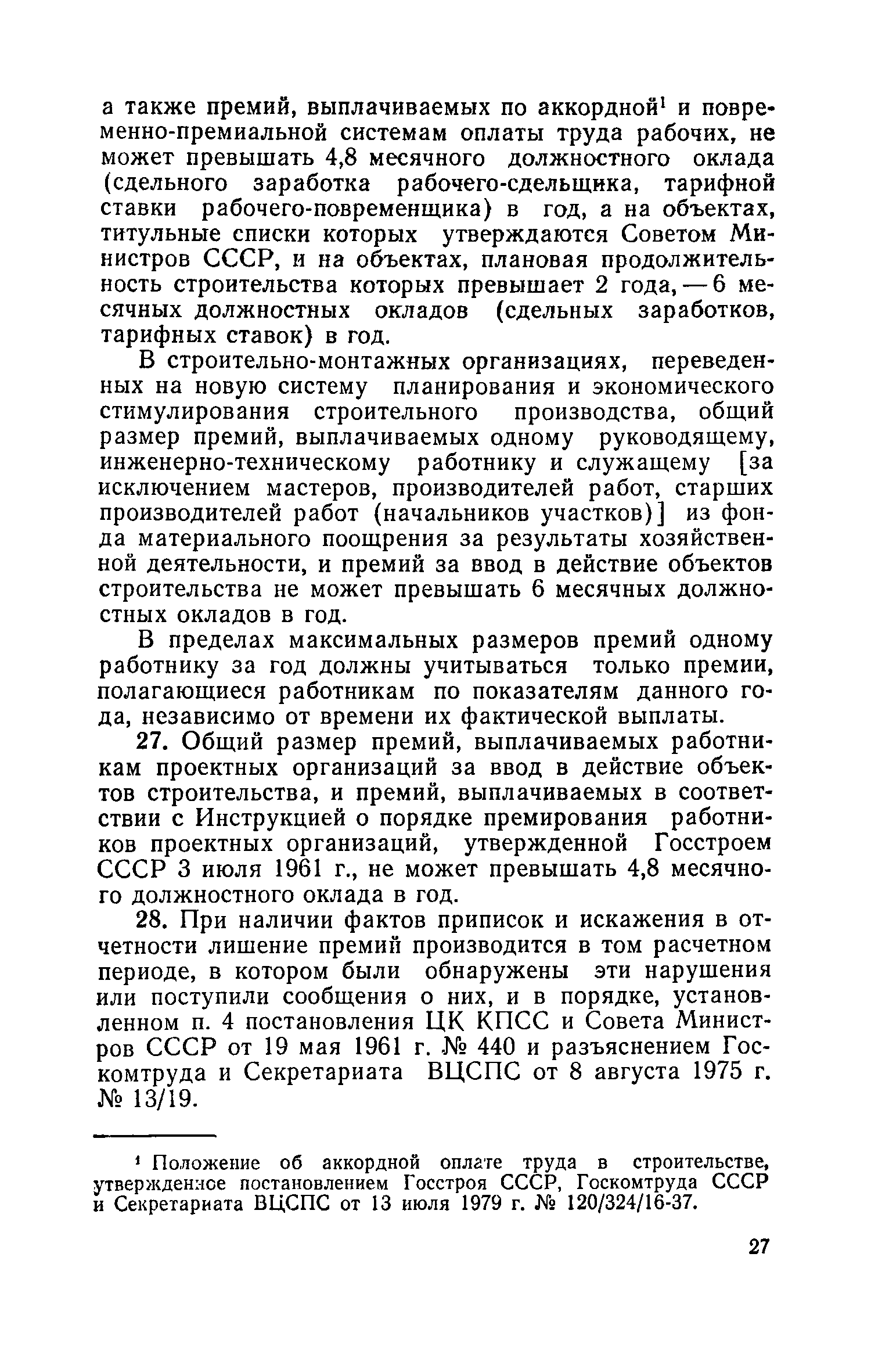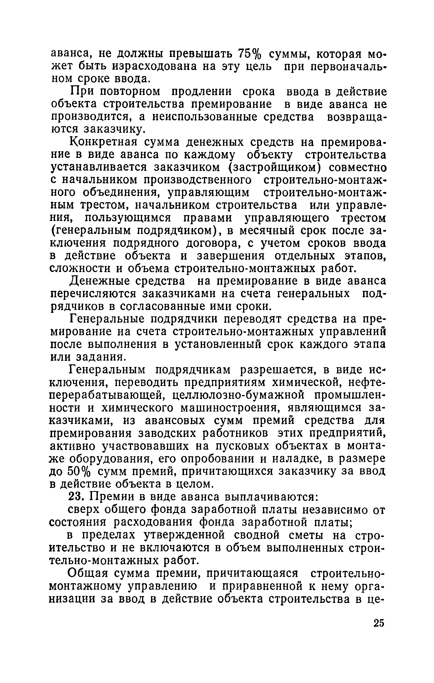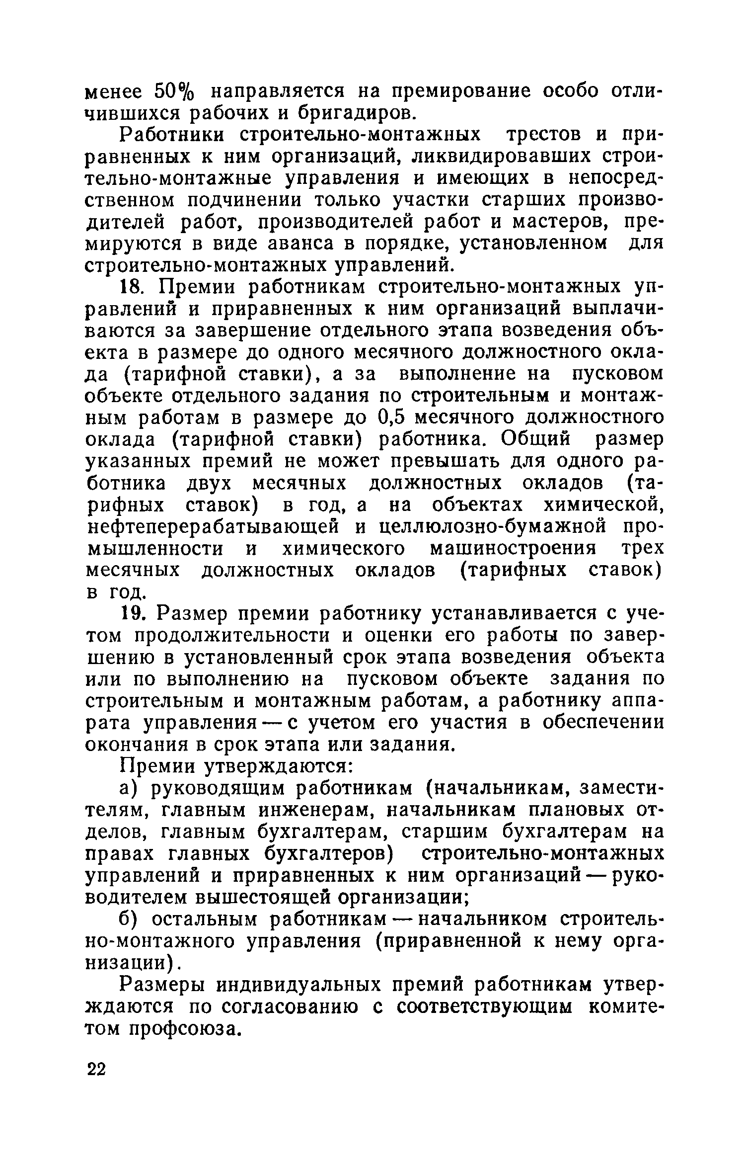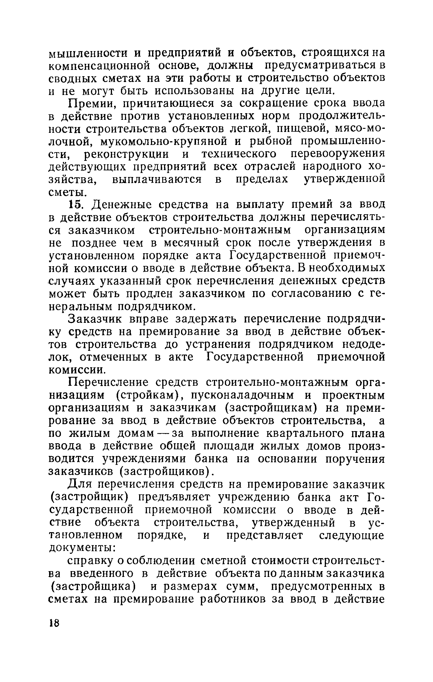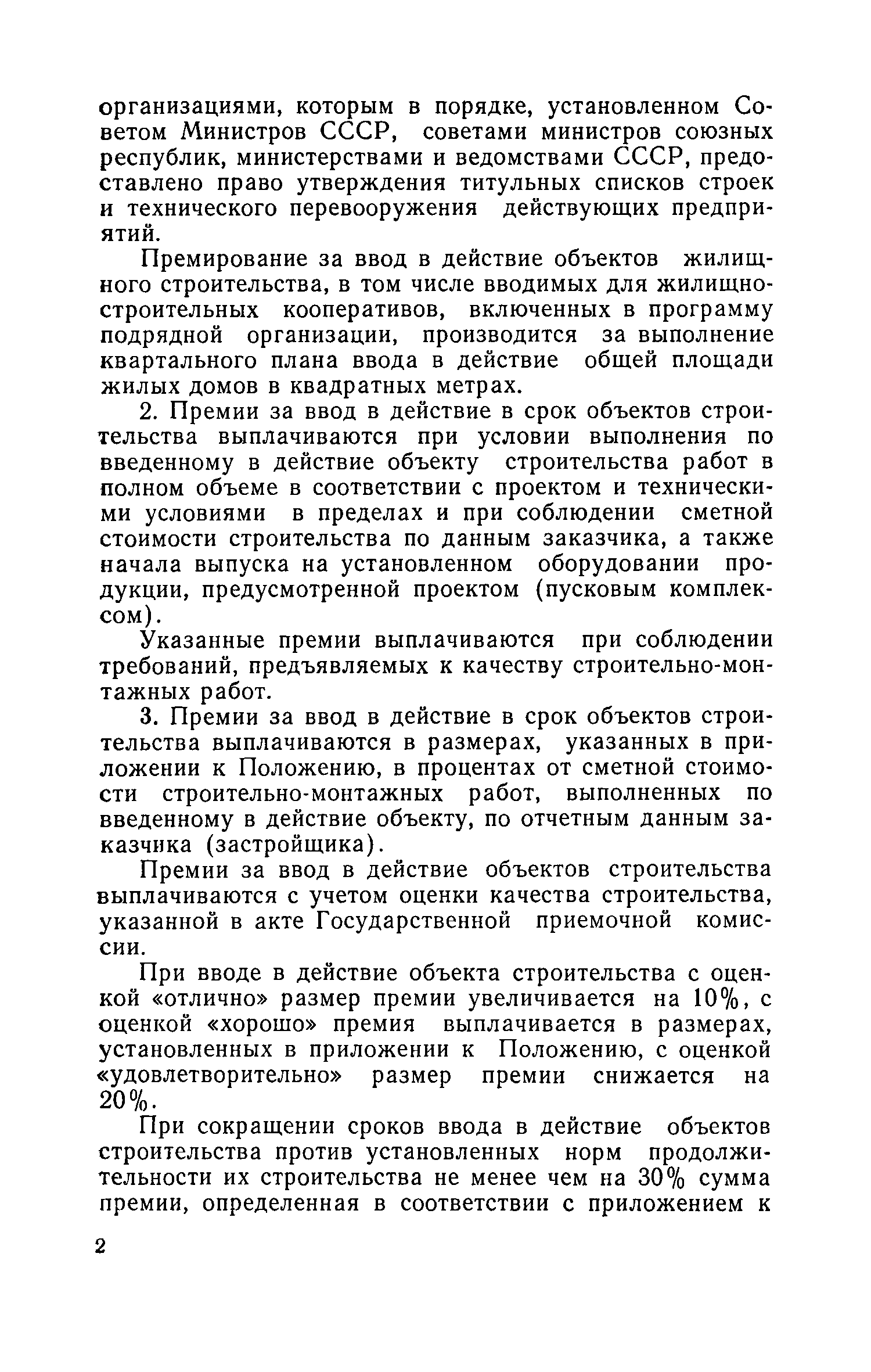 | Оглавление: | Премирование за ввод в действие производственных мощностей и объектов строительства Премирование в виде аванса за счет сумм премий, установленных за ввод в действие производственных мощностей и объектов строительства Общие положения Приложение. Размеры премий за ввод в действие в срок производственных мощностей и объектов строительства в процентах от сметной стоимости выполненных строительно-монтажных работ |