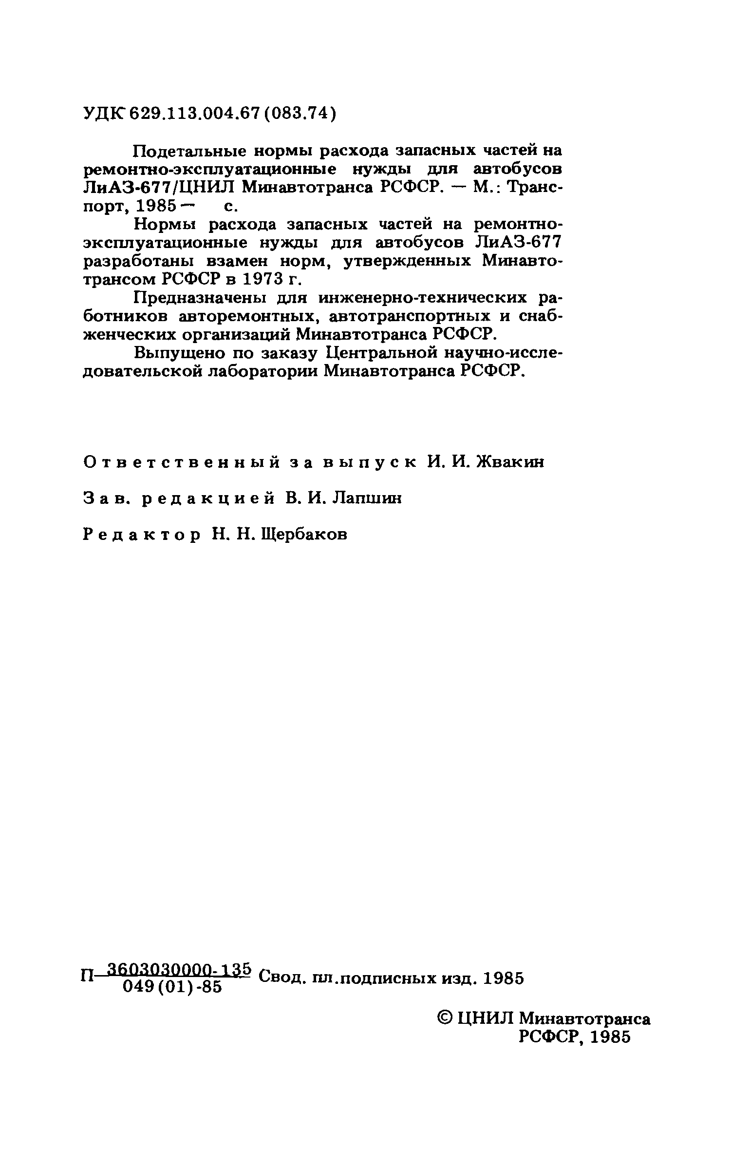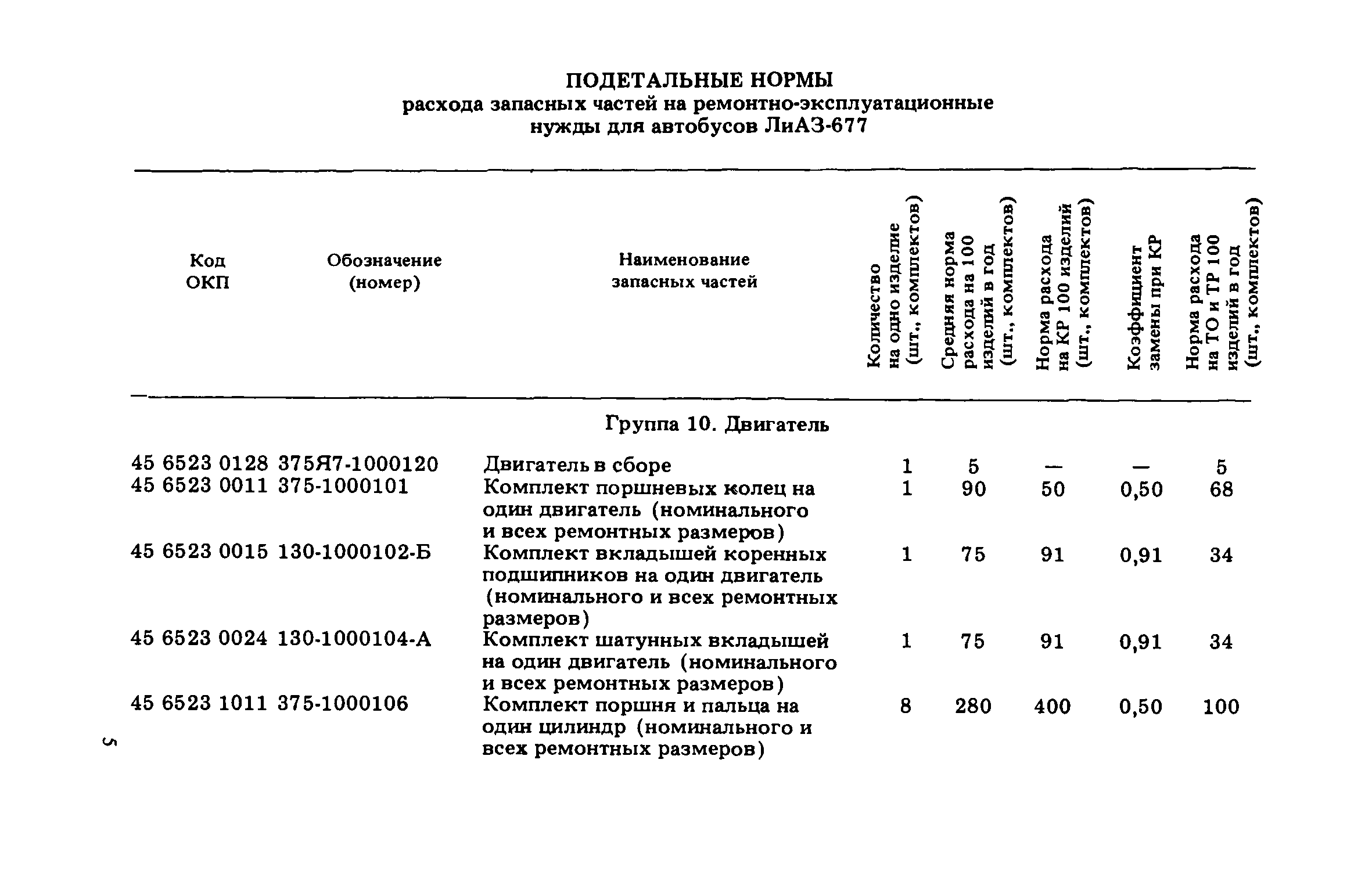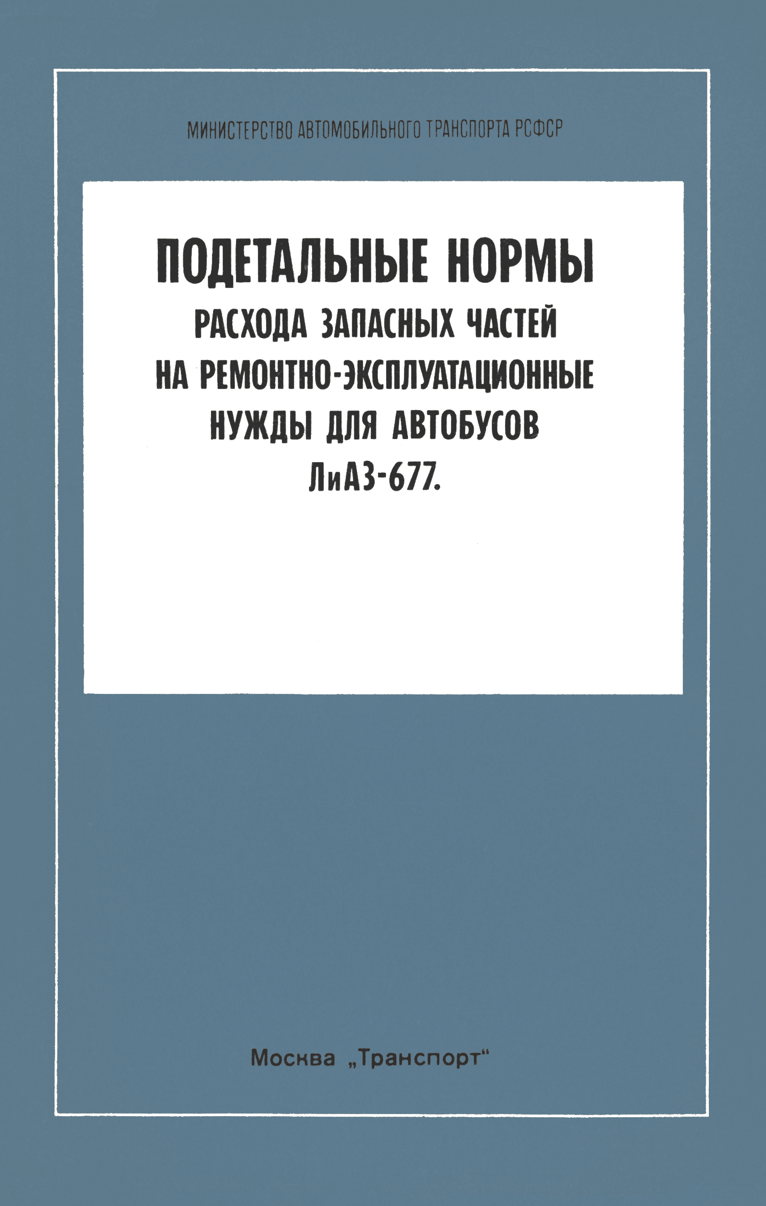 | Название рус.: | Подетальные нормы расхода запасных частей на ремонтно-эксплуатационные нужды для автобусов ЛиАЗ-677 |