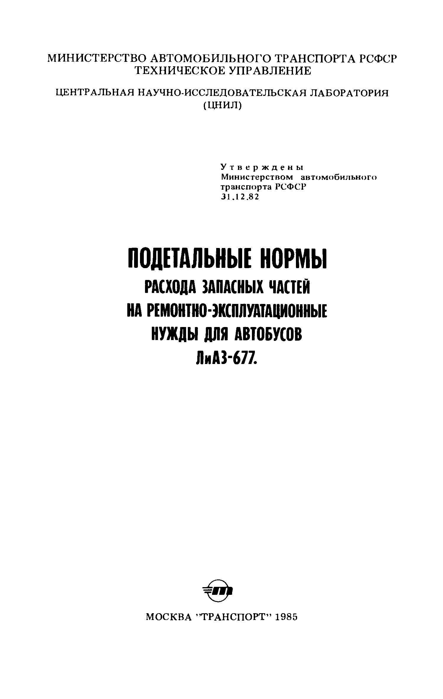 | Утверждён: | 31.12.1982 Министерство автомобильного транспорта РСФСР